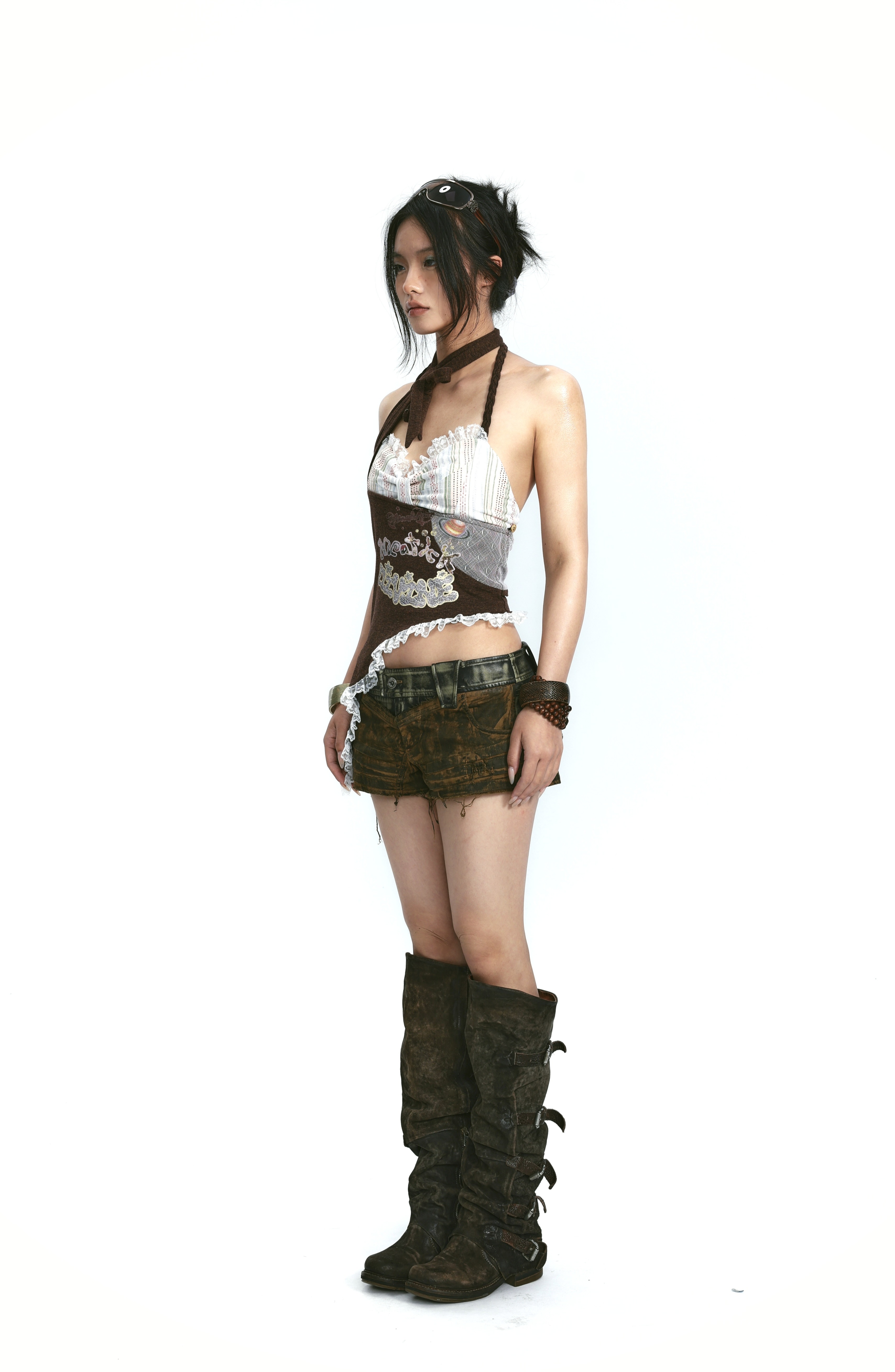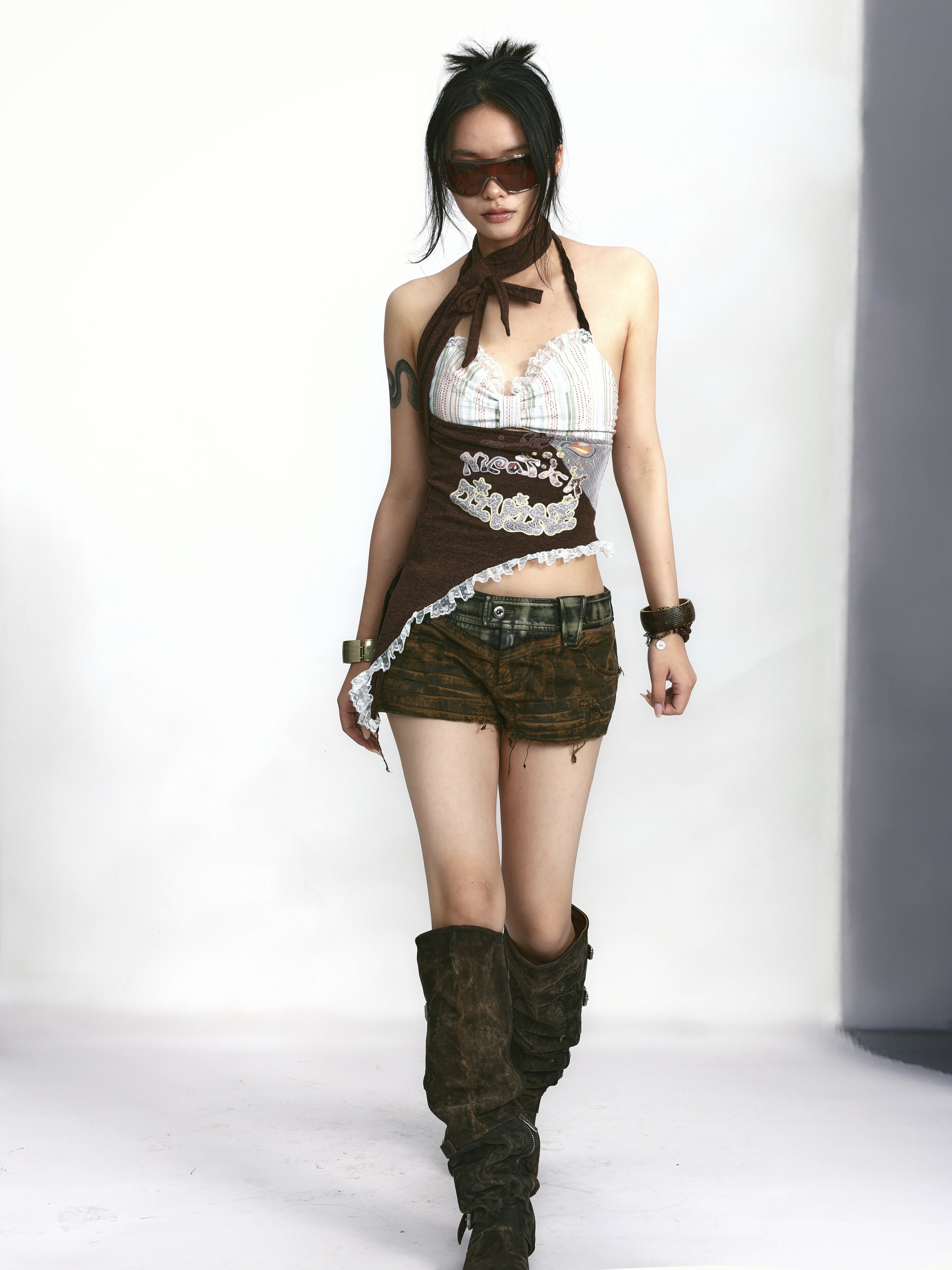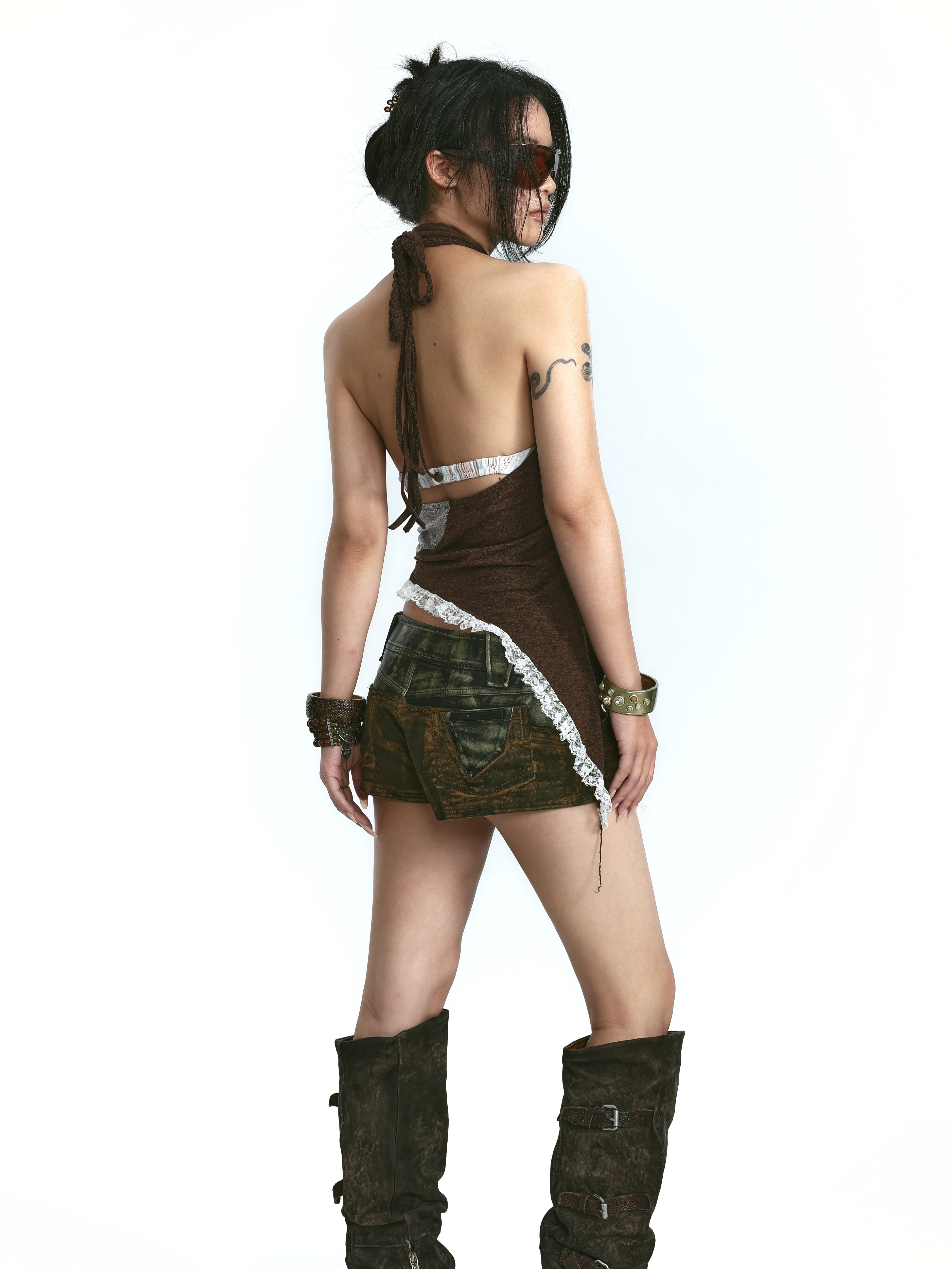 Lace Panel Halterneck Cami Set – Knit Mesh Detail