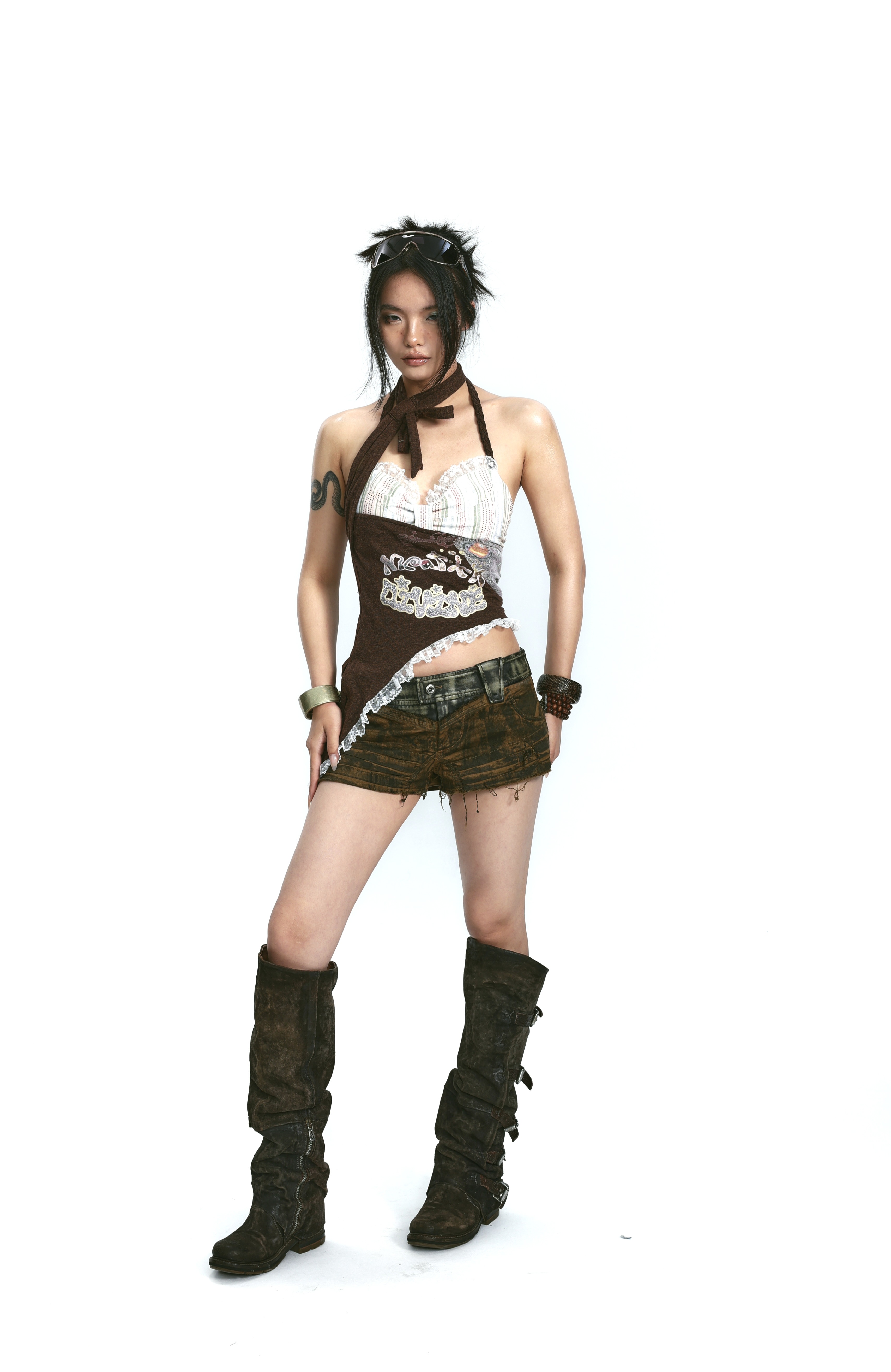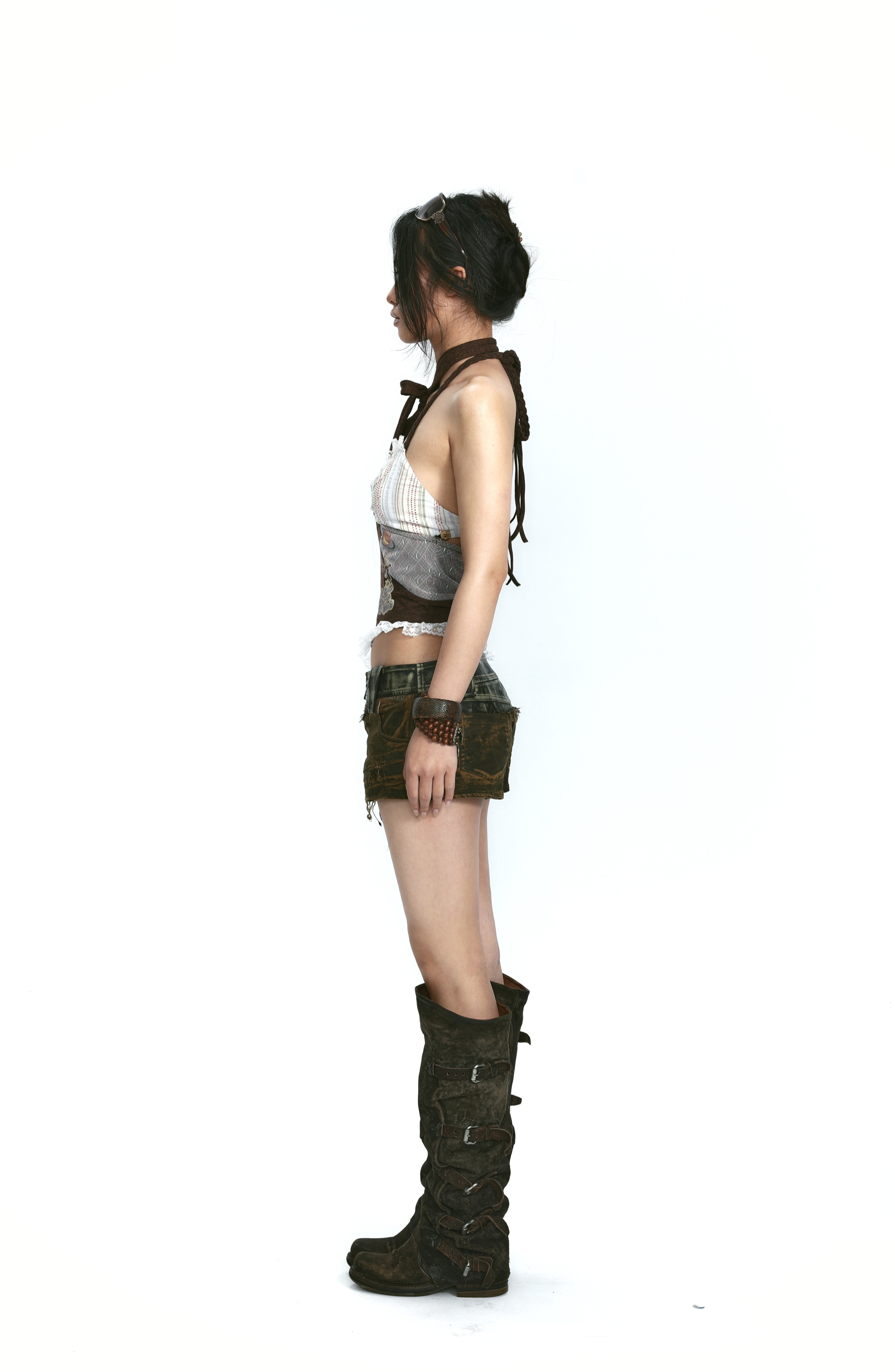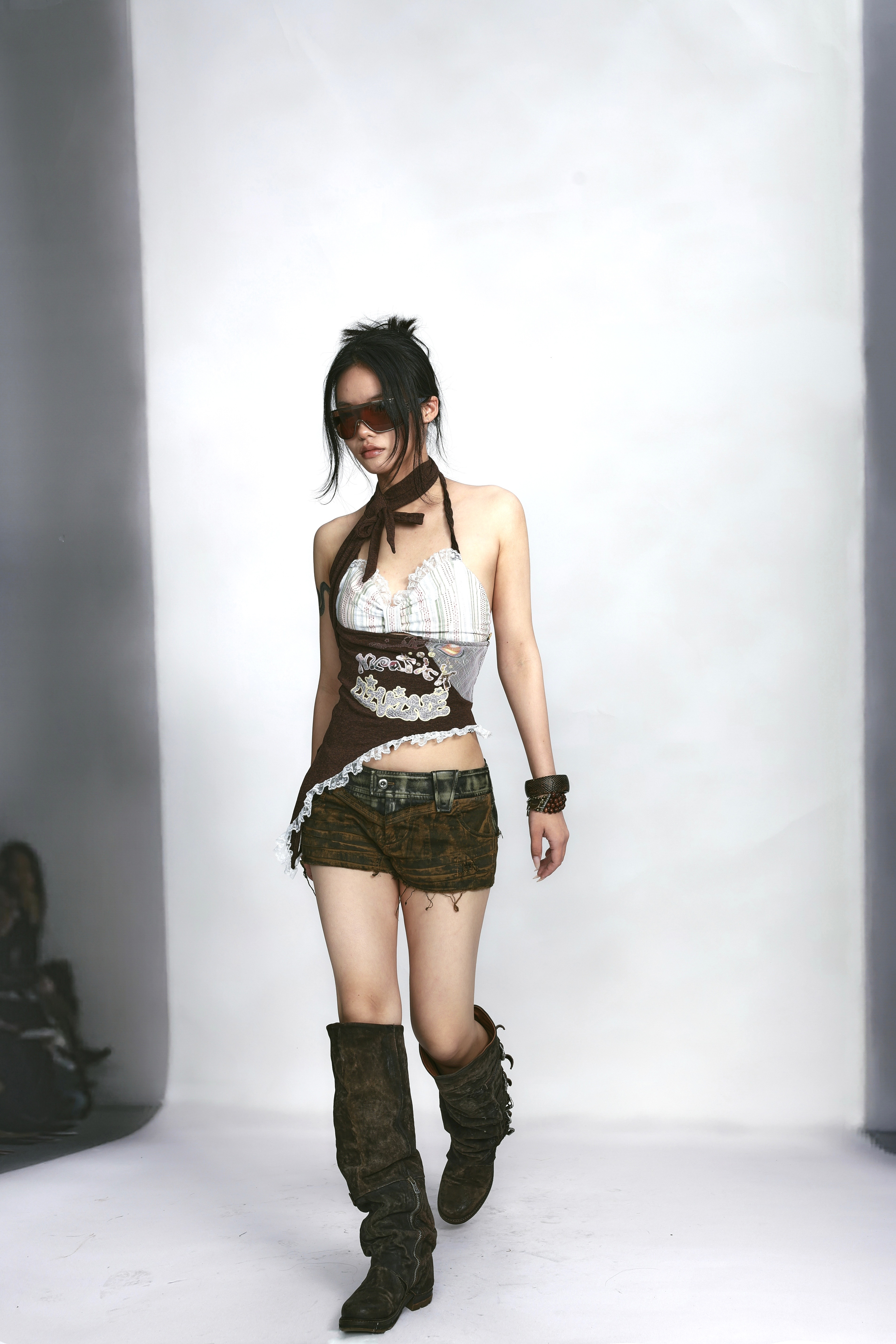 Lace Panel Halterneck Cami Set – Knit Mesh Detail