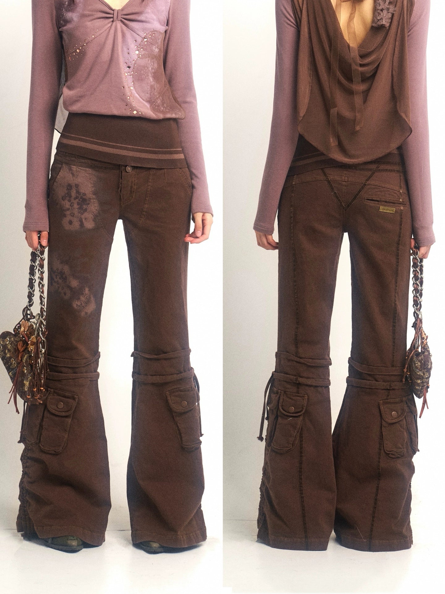 Distressed Flared Trousers – Raw-Edge Low-Rise Look