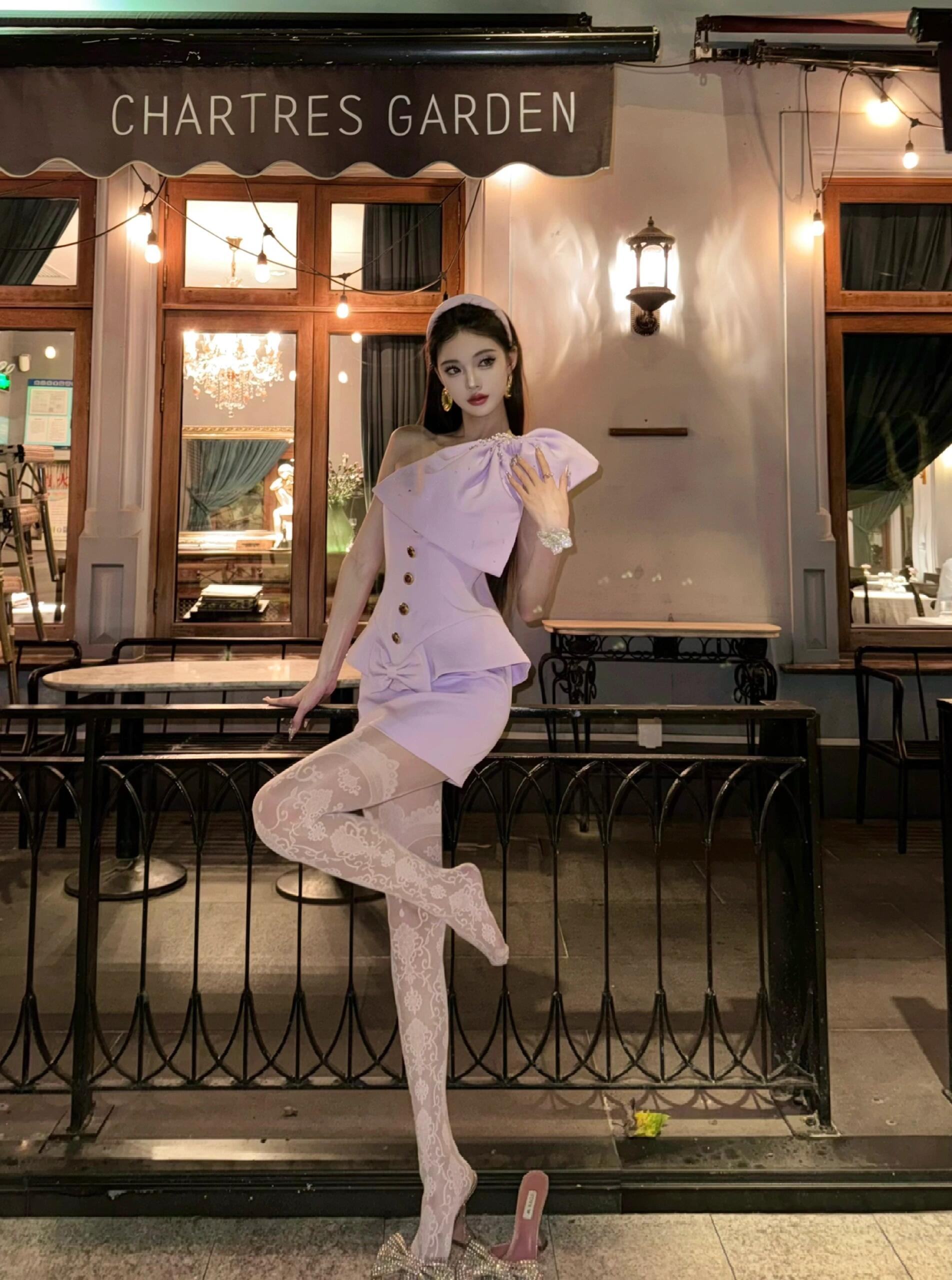 Purple Luxe Dresses – Rich Women's Niche Heavy Industry Bow-Accent Birthday Gowns