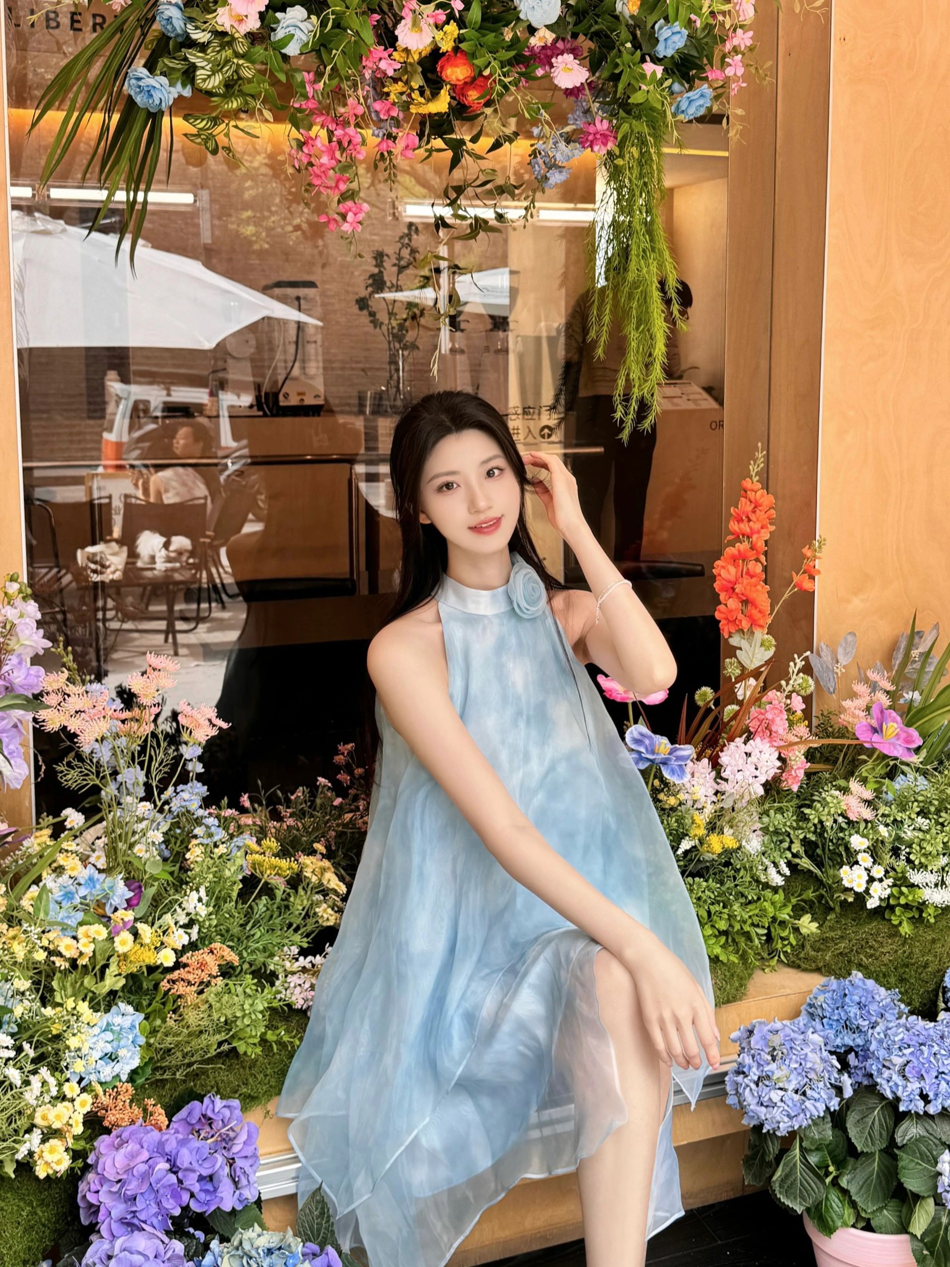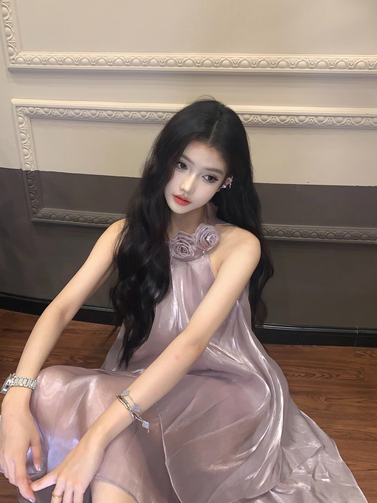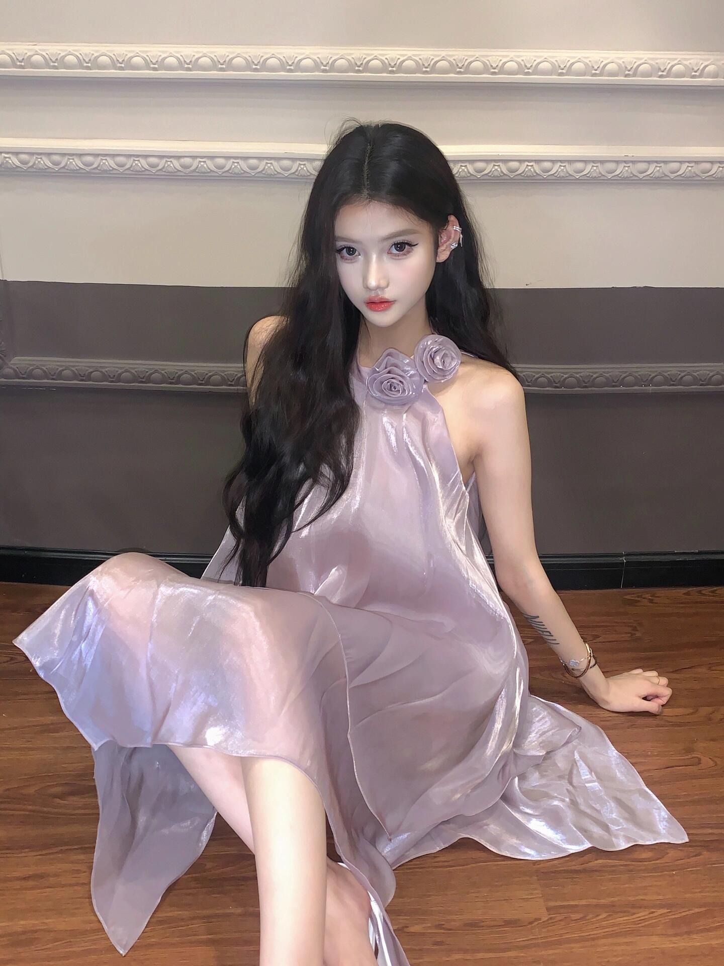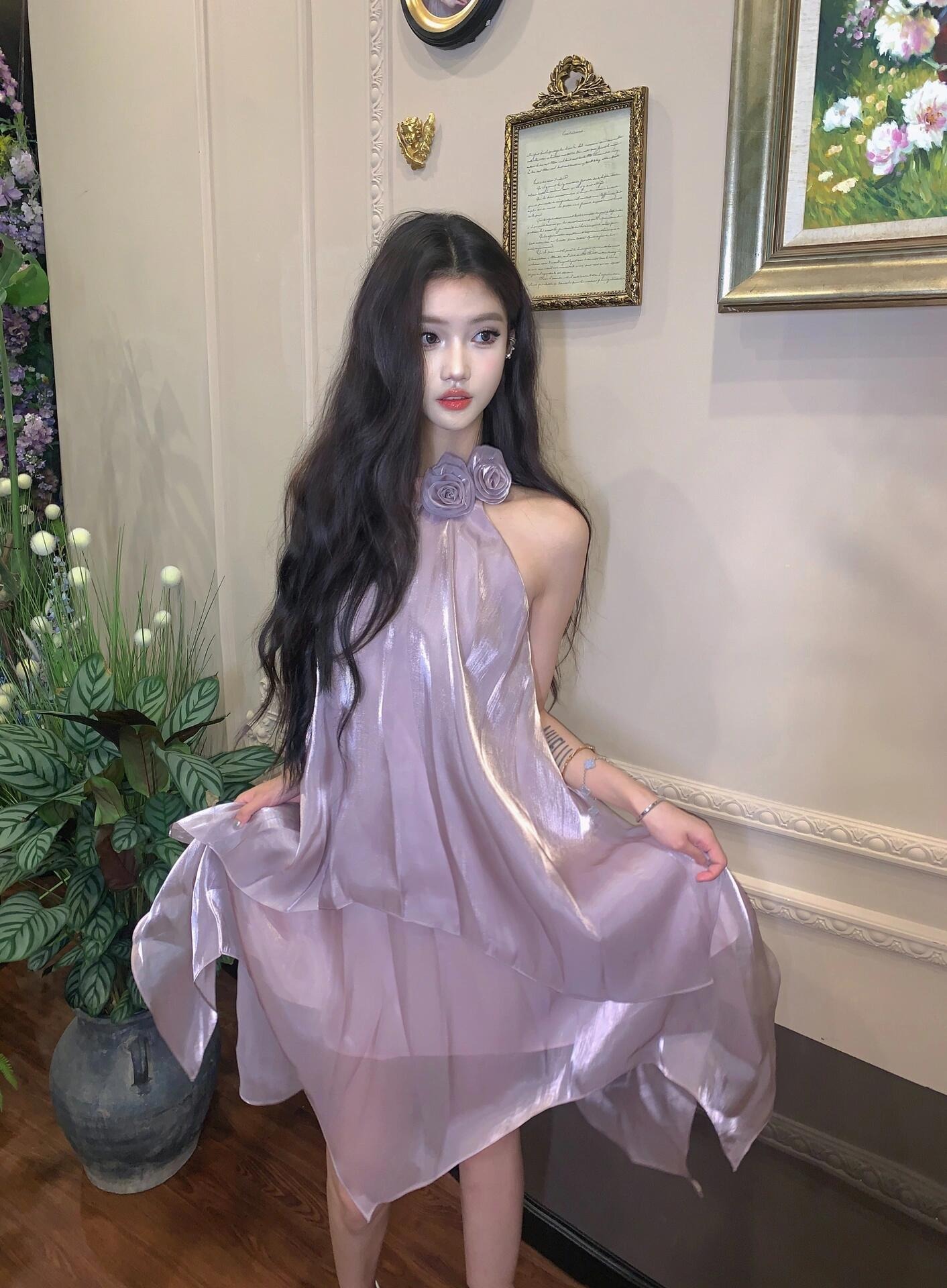 Purple Halterneck Mesh Dress – Celebrity-Inspired Irregular Tulle Skirt