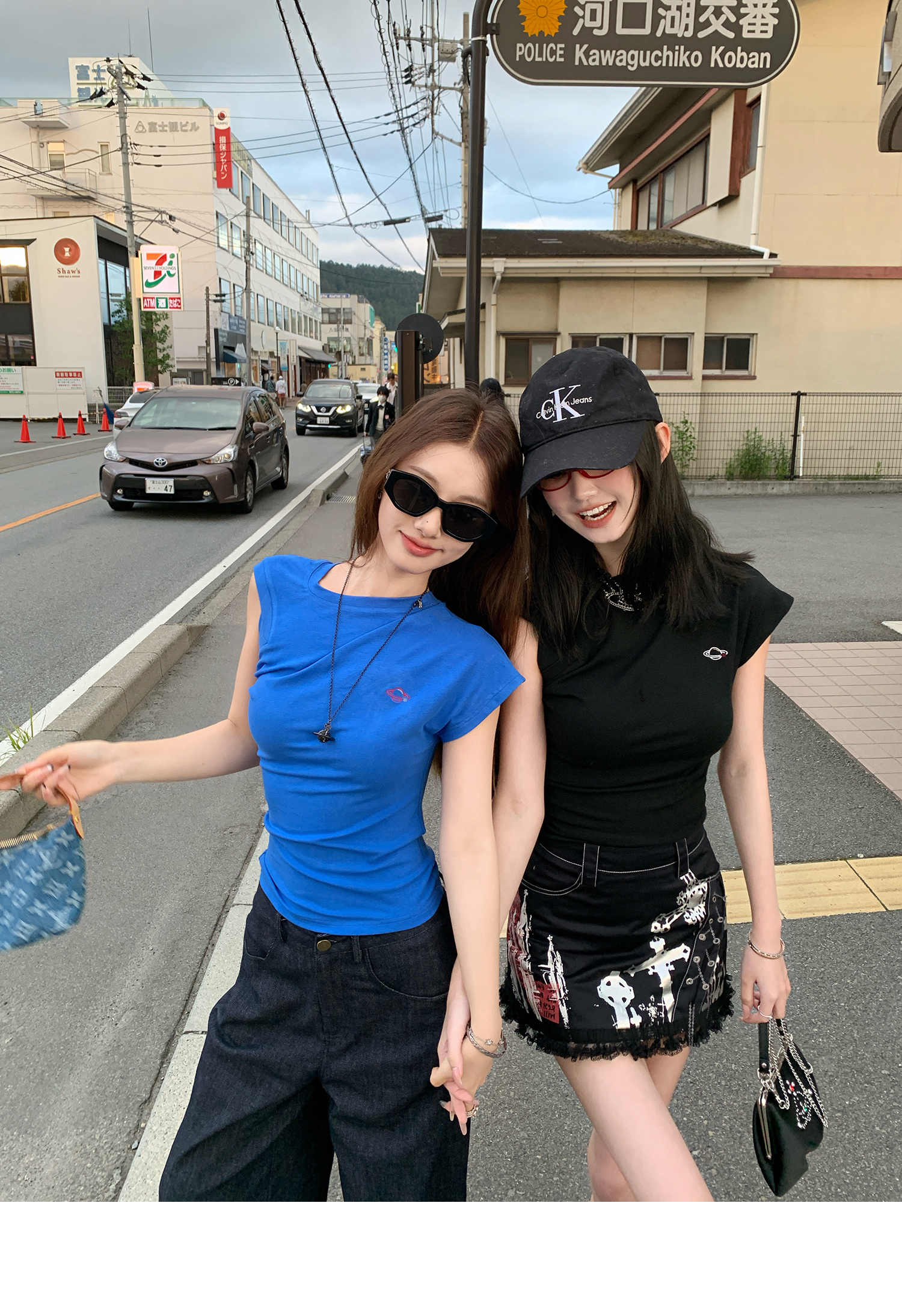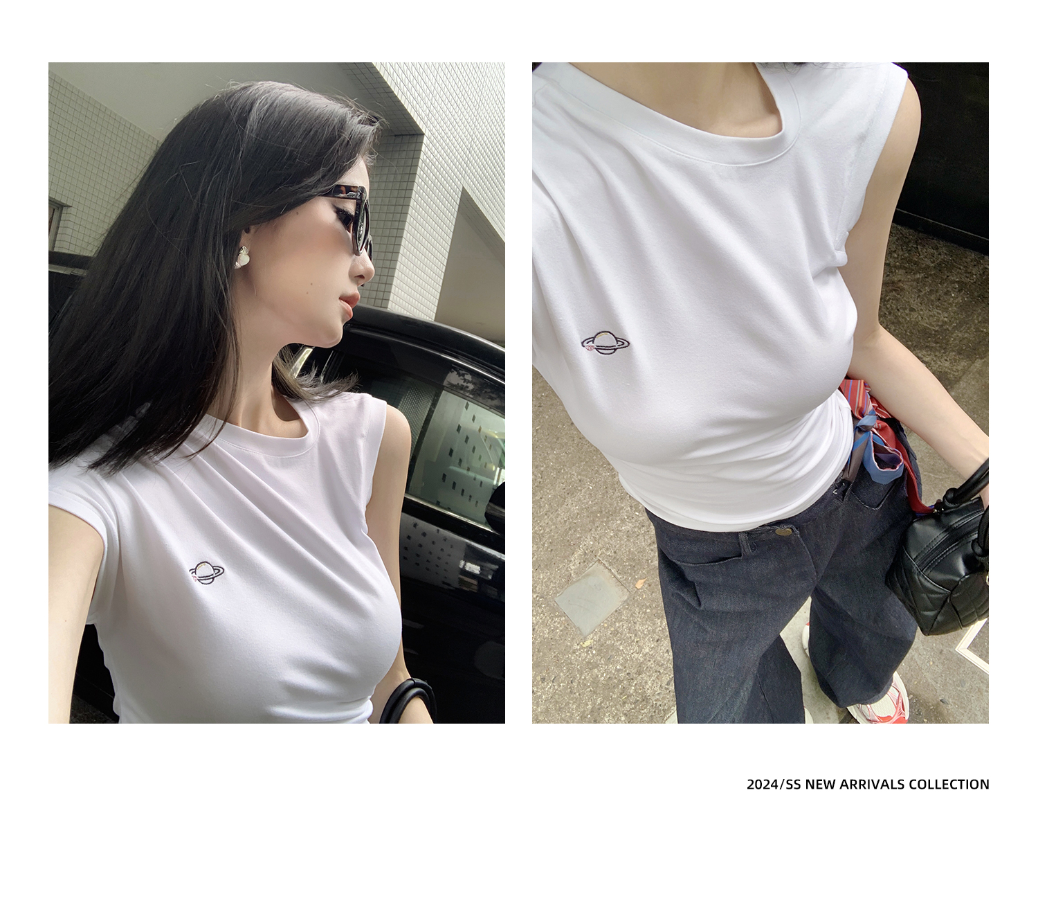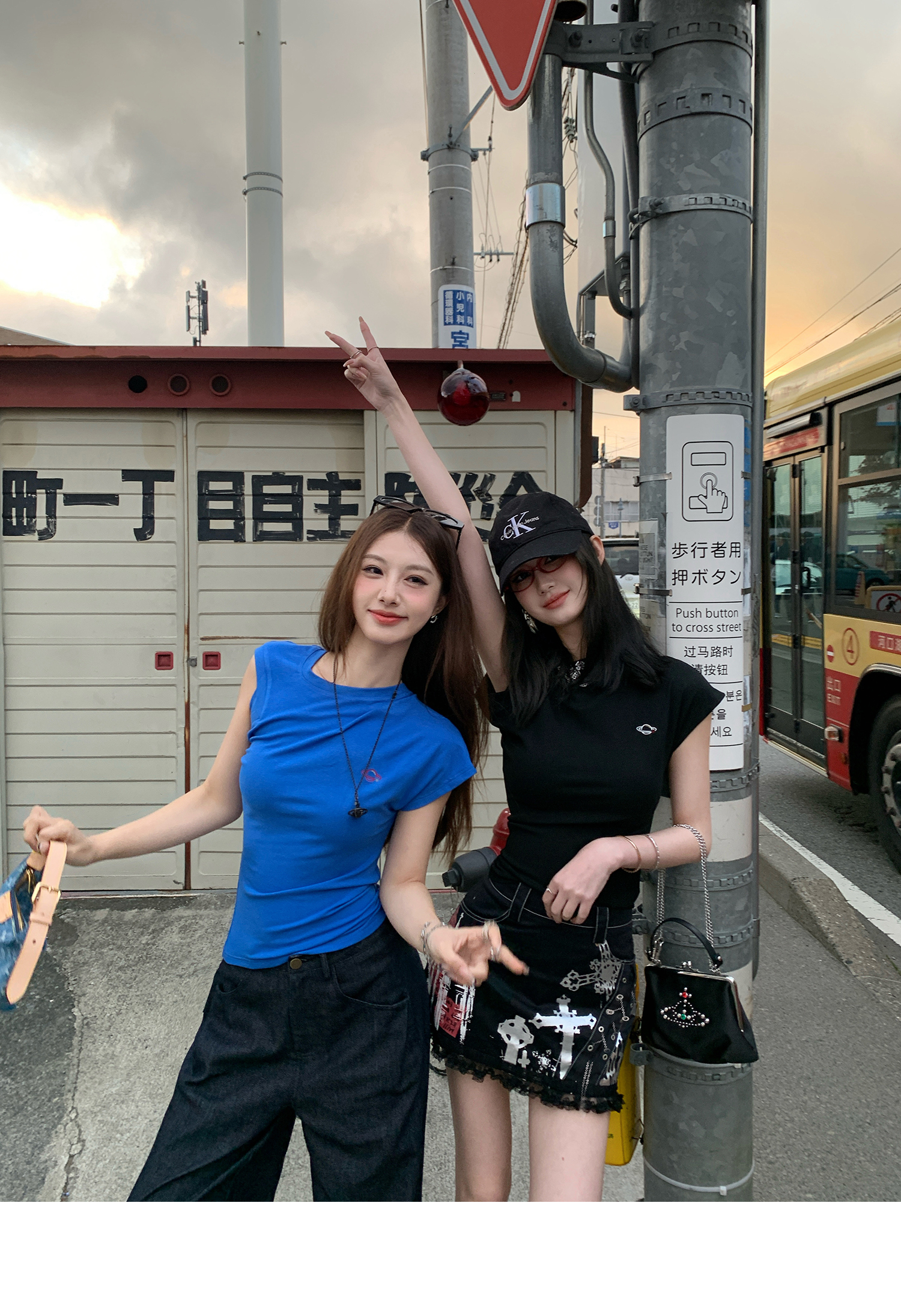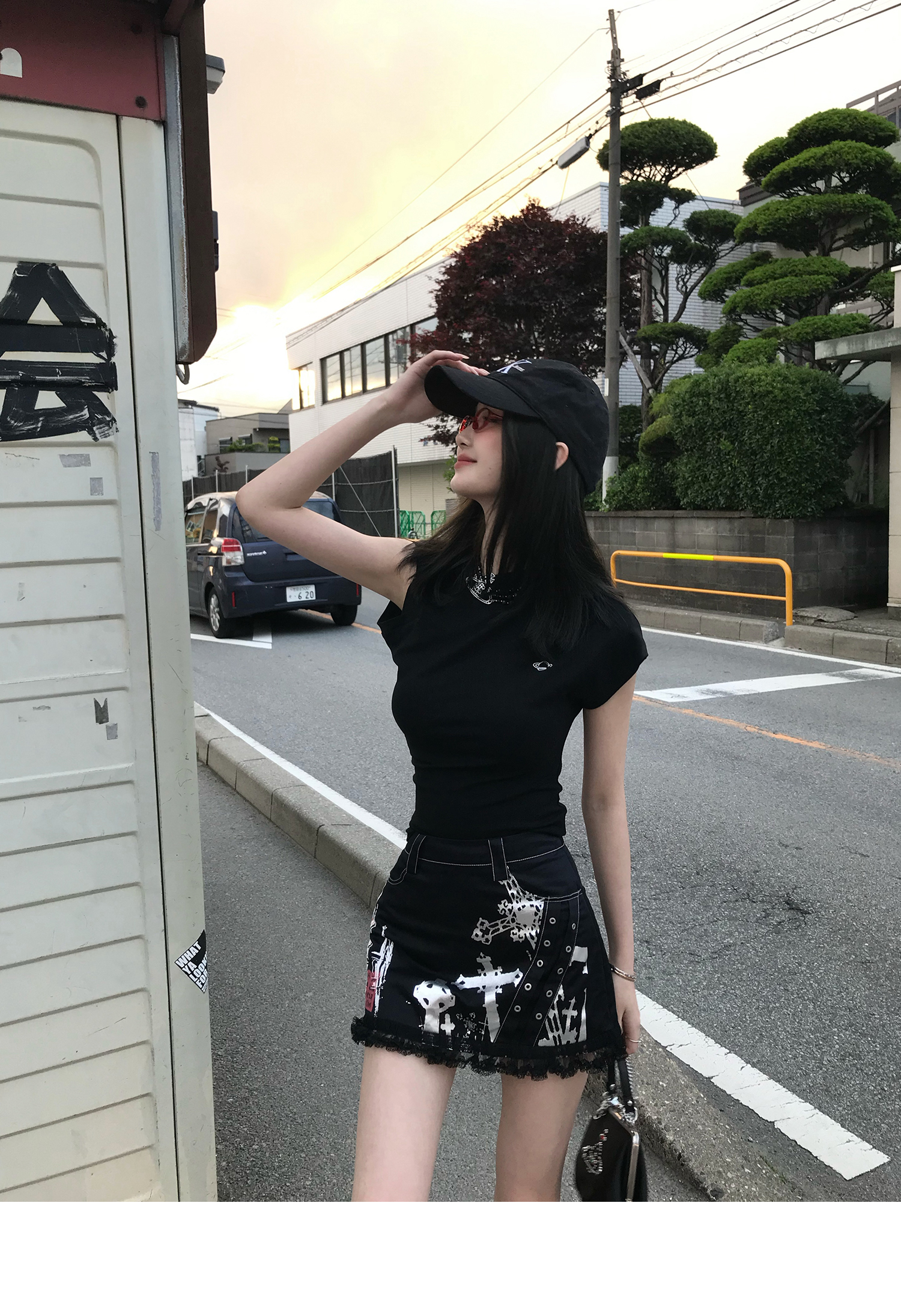 [Rebellious Punk] Asymmetrical White Short-Sleeve Top - Summer Spicy Girl Style