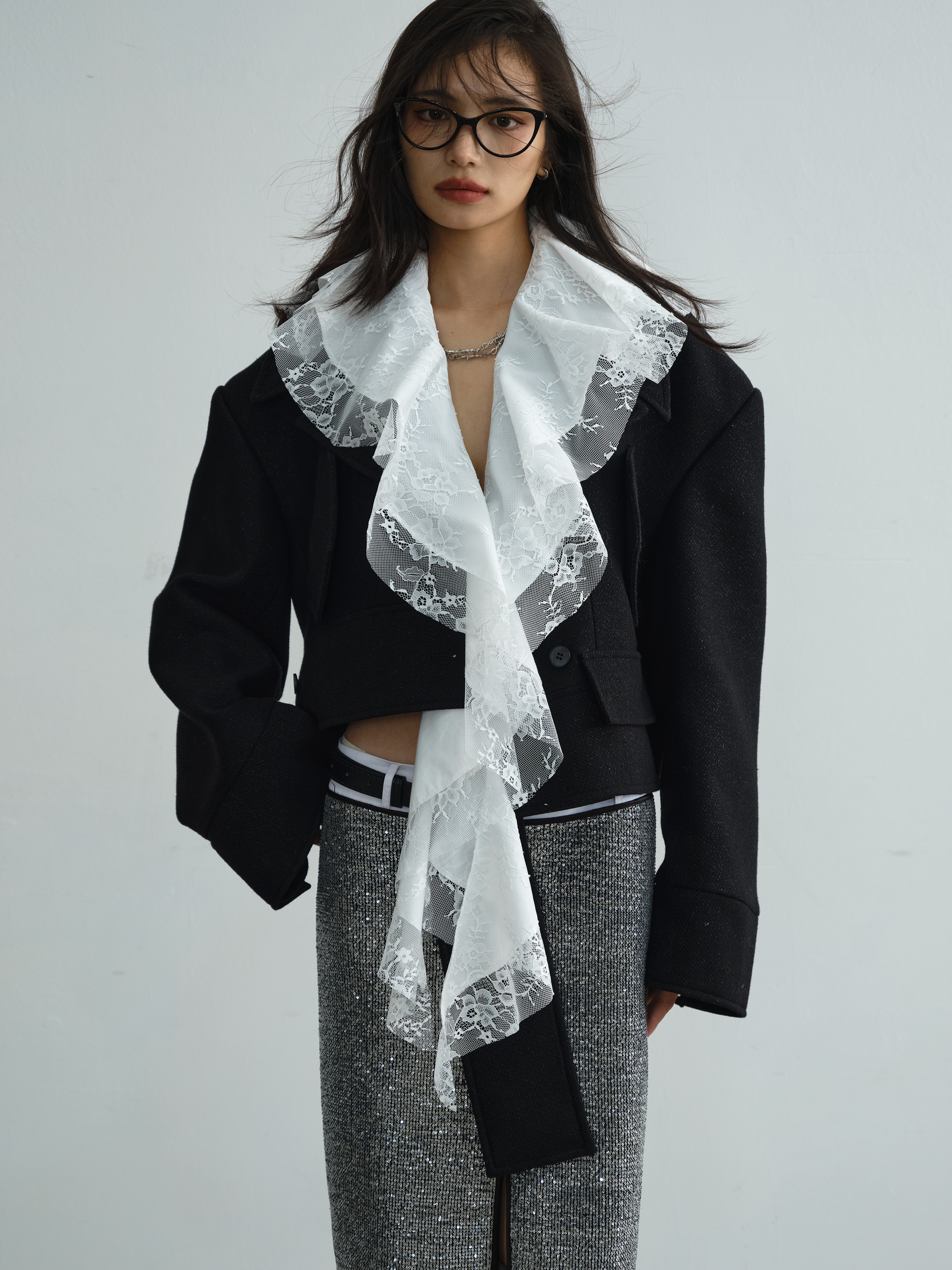 Detachable Lace Ruffle Woolen Short Coat