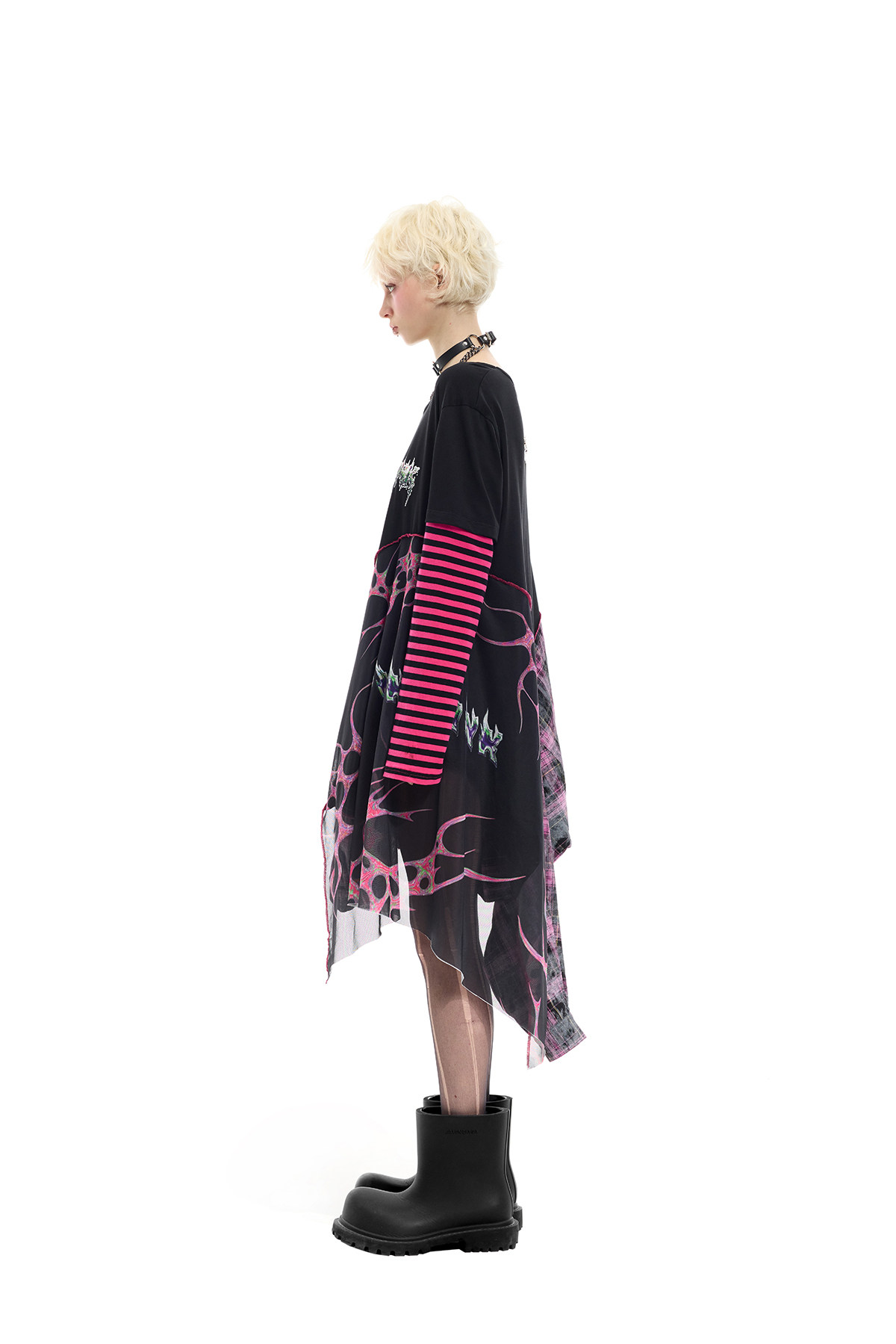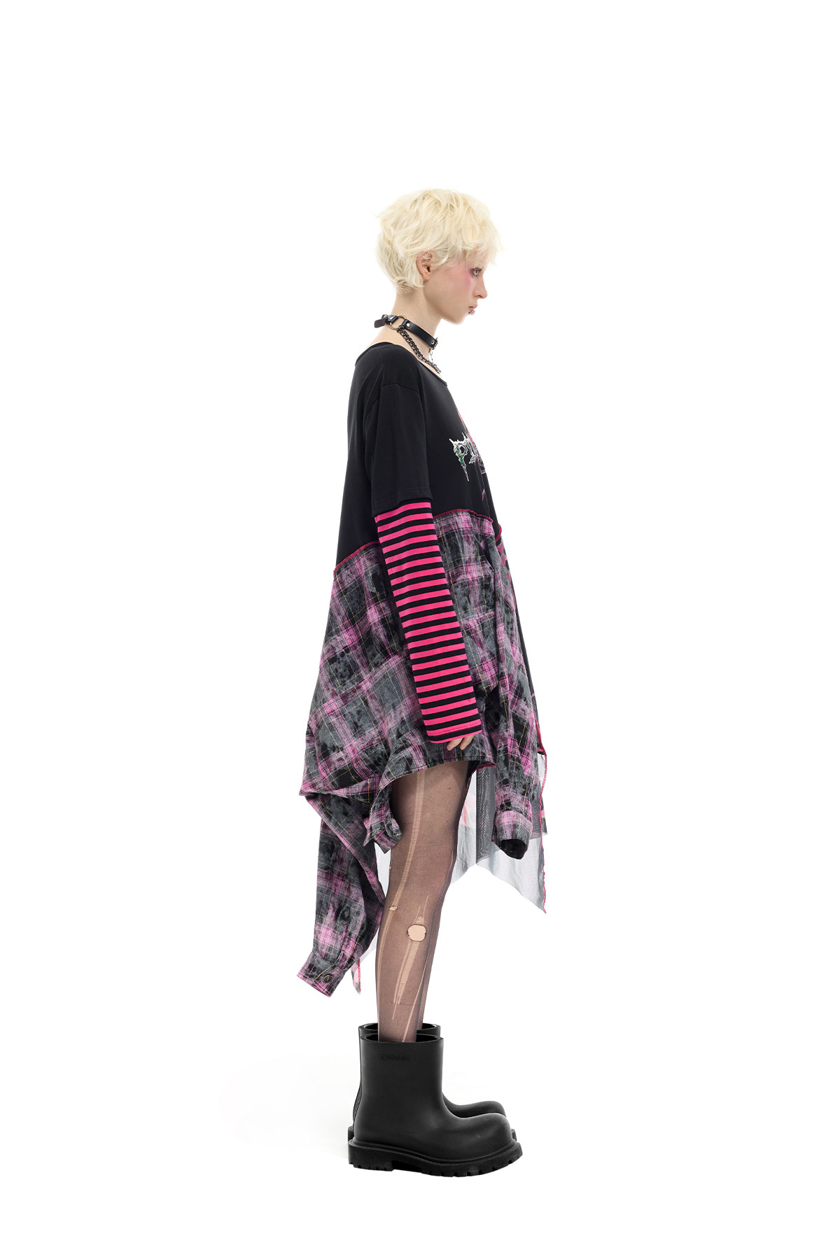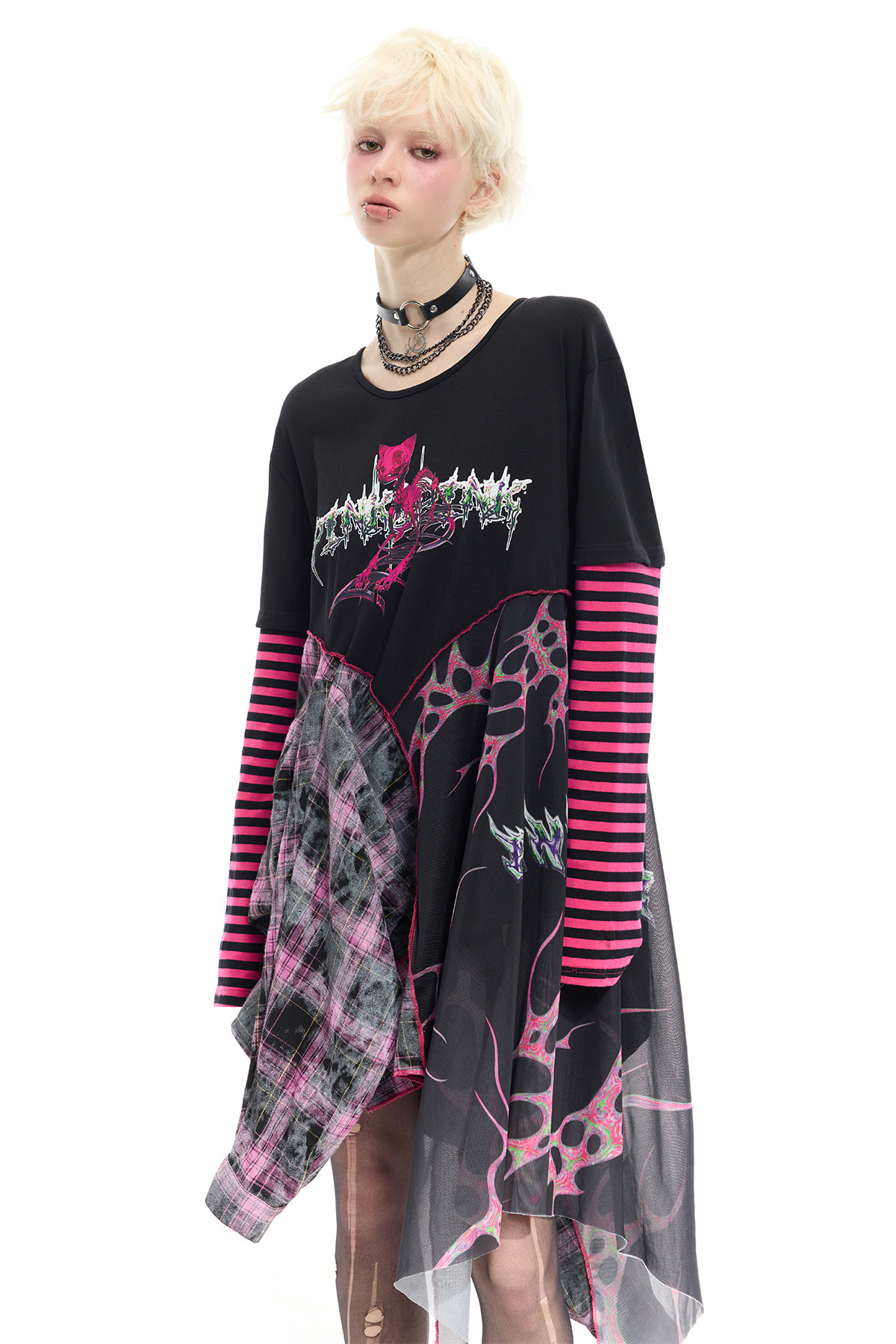 Reverse Stripe Tee & Mesh-Spliced Y2K Hot Girl Dress