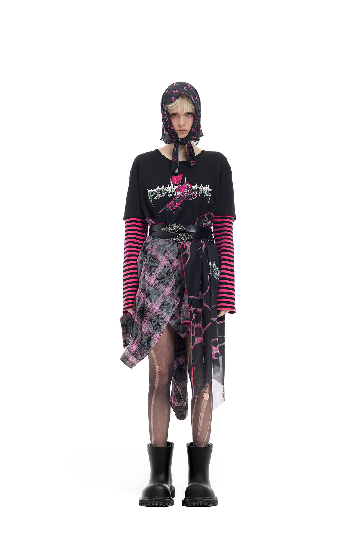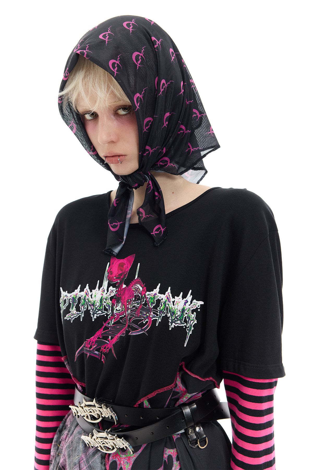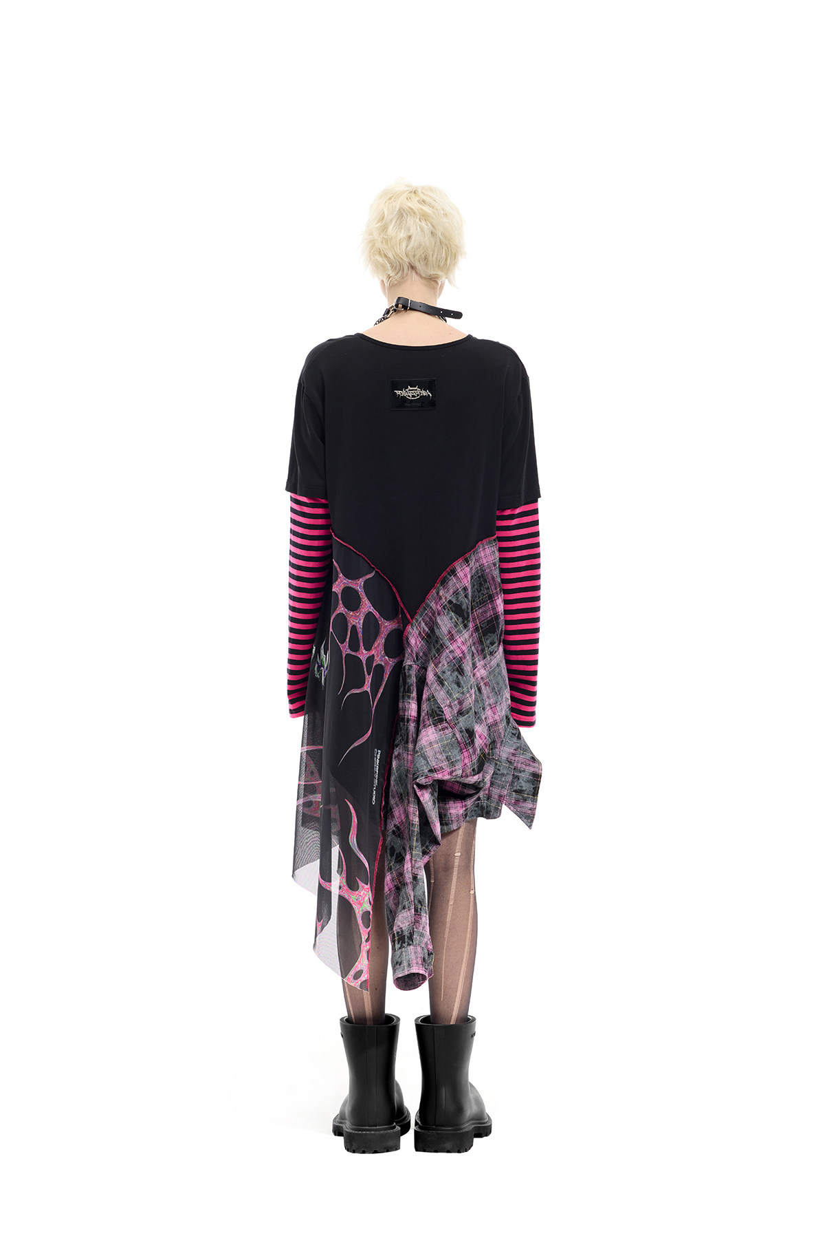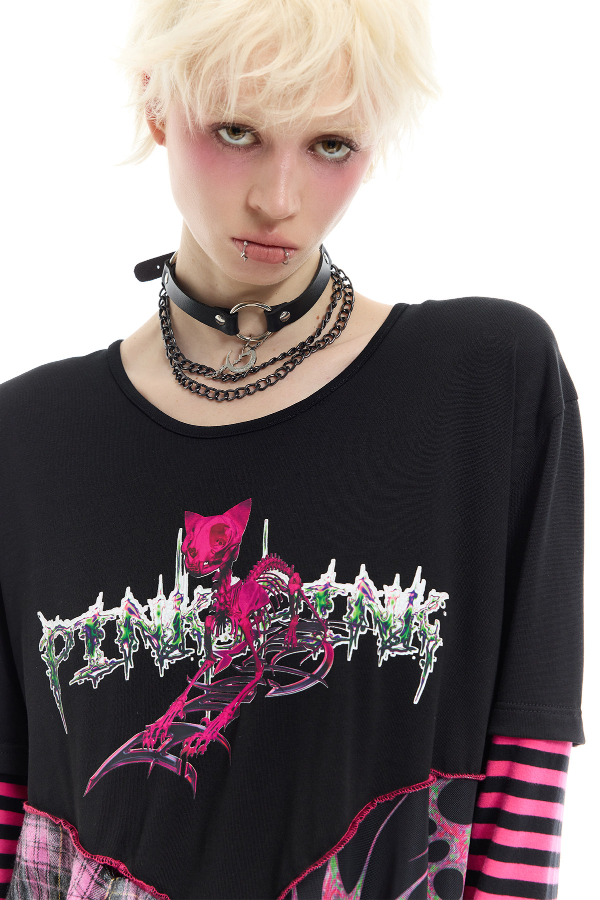 Reverse Stripe Tee & Mesh-Spliced Y2K Hot Girl Dress