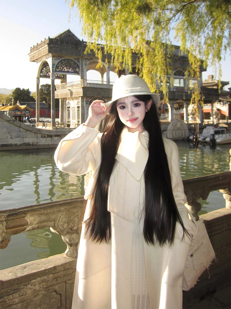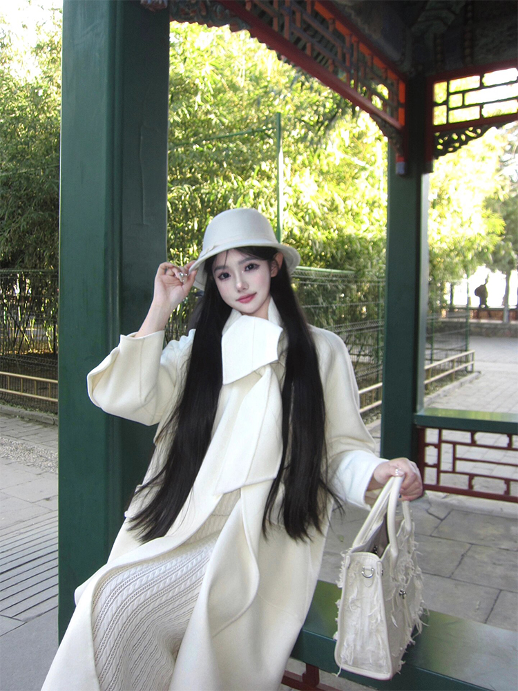 Reversible Cashmere Cloak – Hepburn-Style Cream White Woolen Elegance
