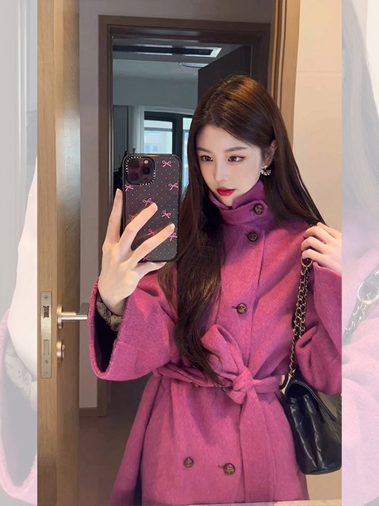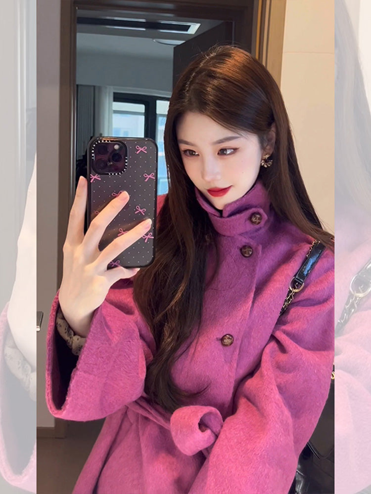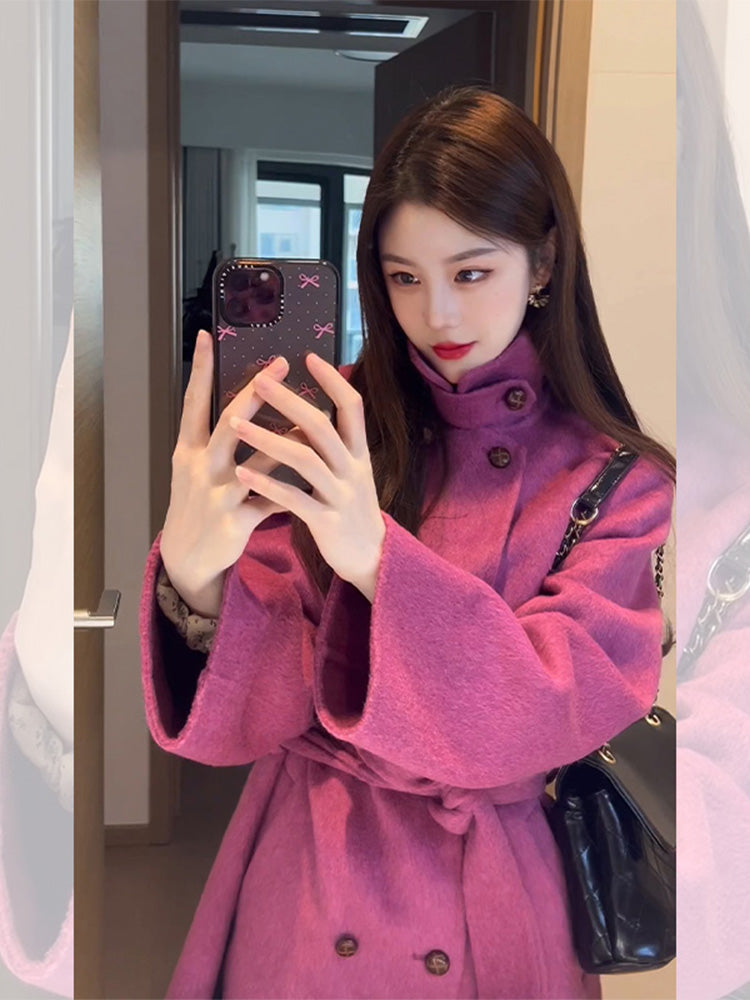 Reversible Cashmere Coat – Elegant Mid-Length Stand Collar Wool Cape