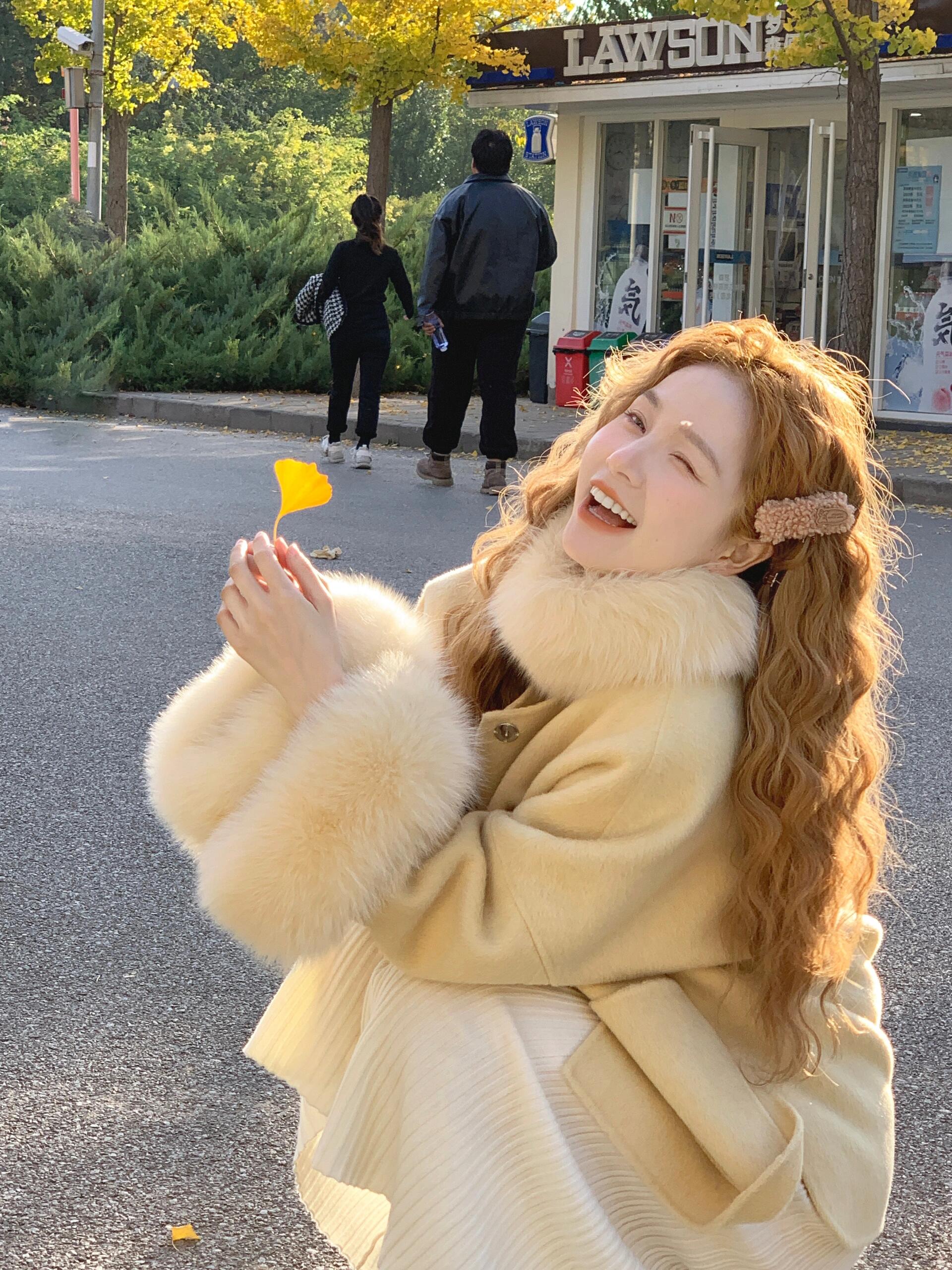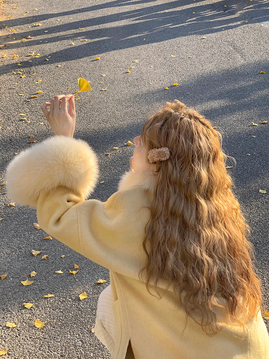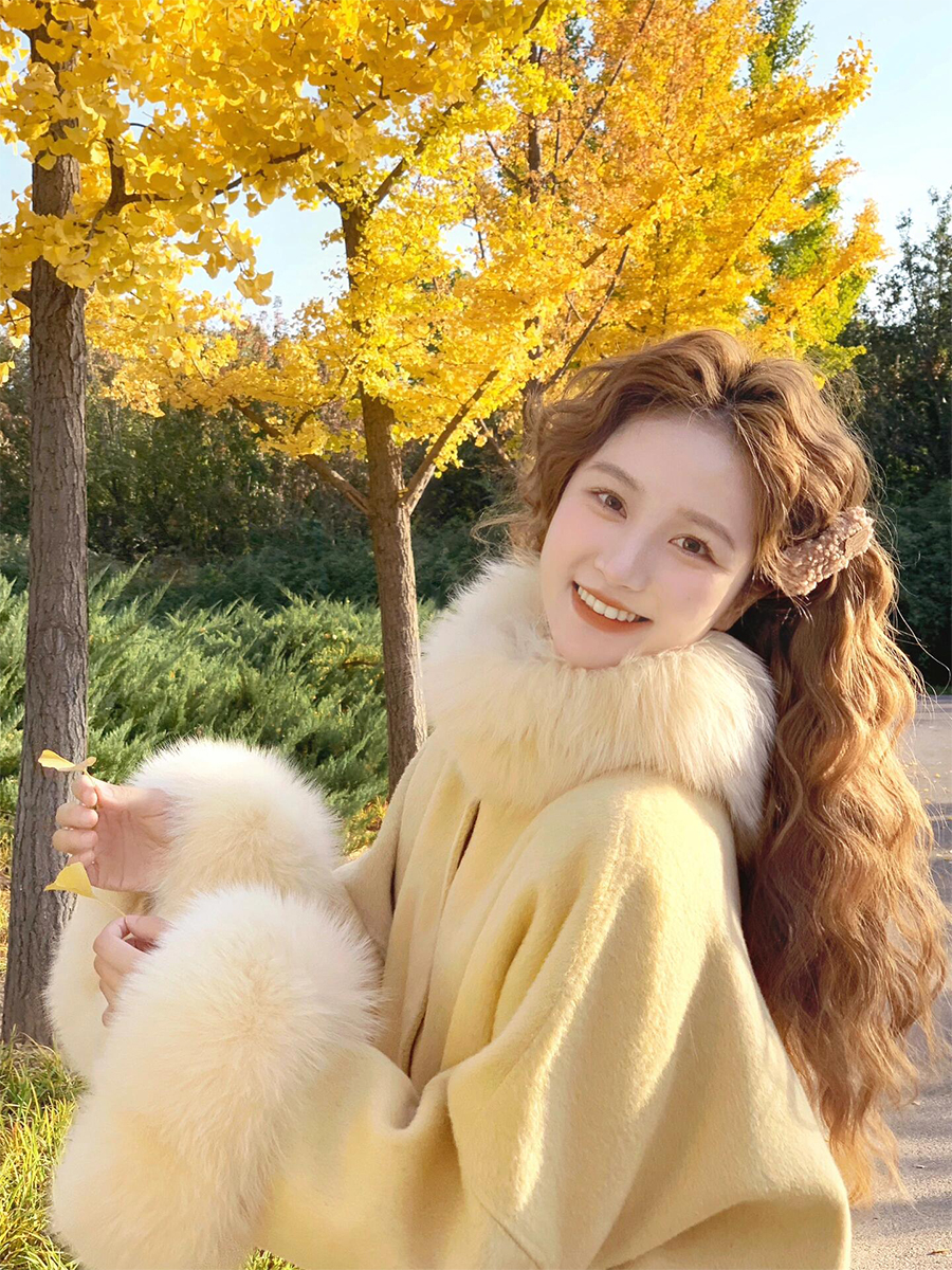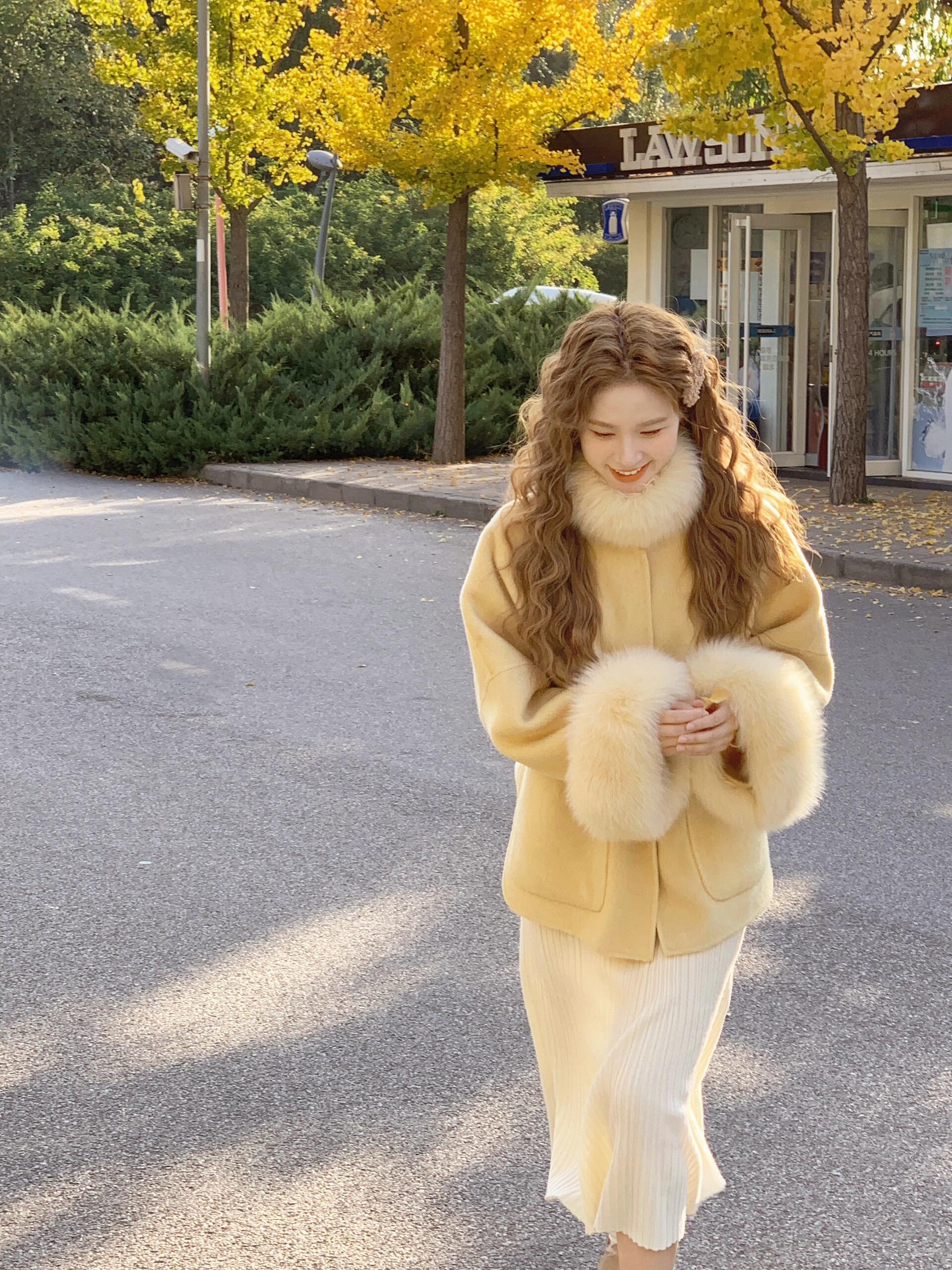 Golden Wool Cape – Luxe Korean Fox Fur Cashmere Outerwear