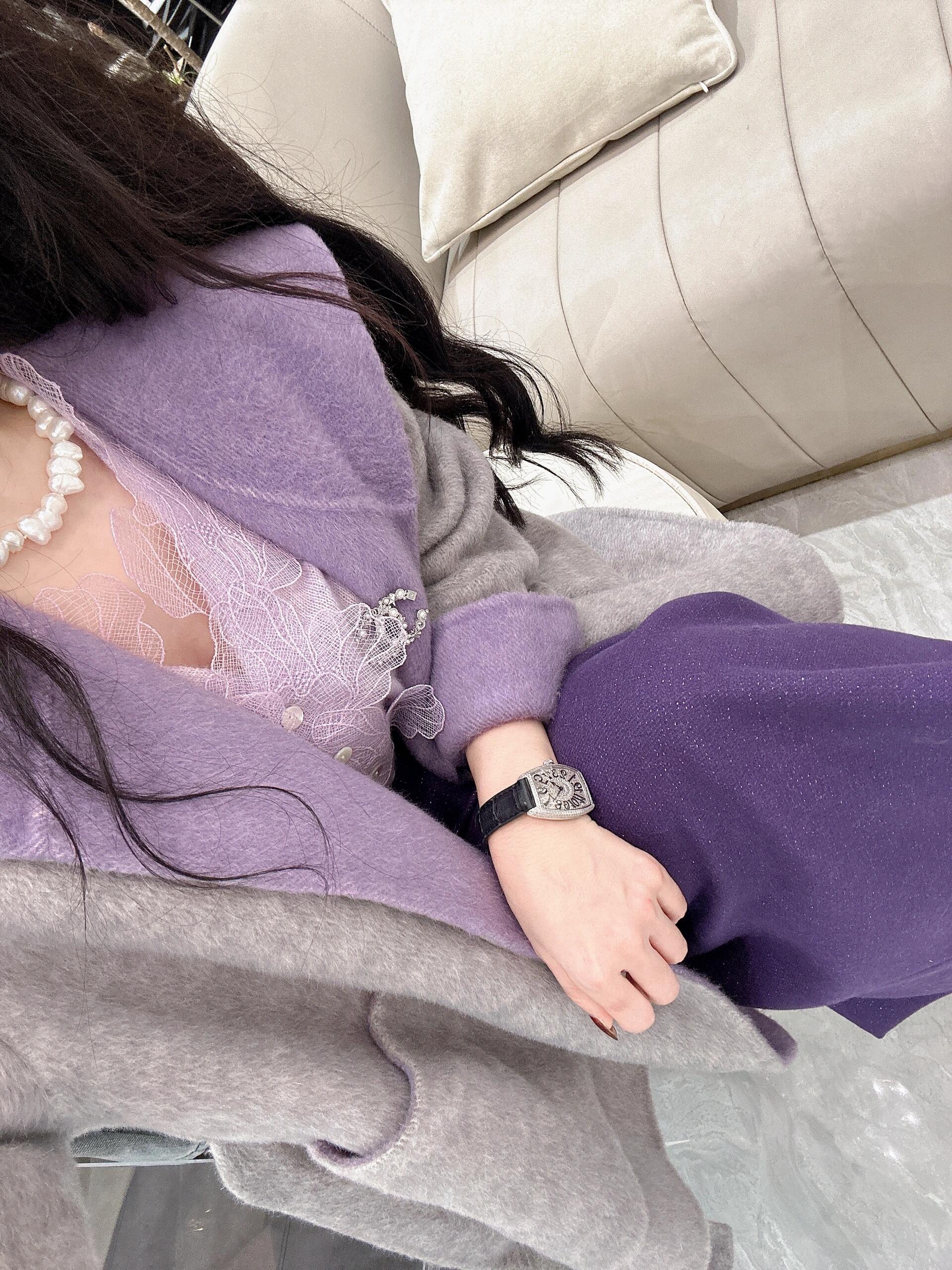 Reversible Cashmere Coat – Chic Short Lace-Up Celebrity Woolen Jacket