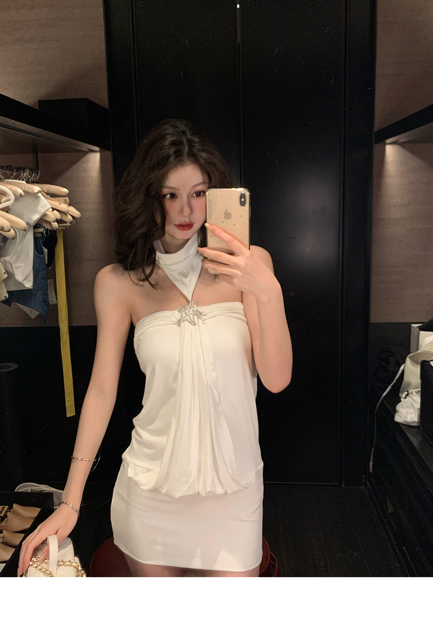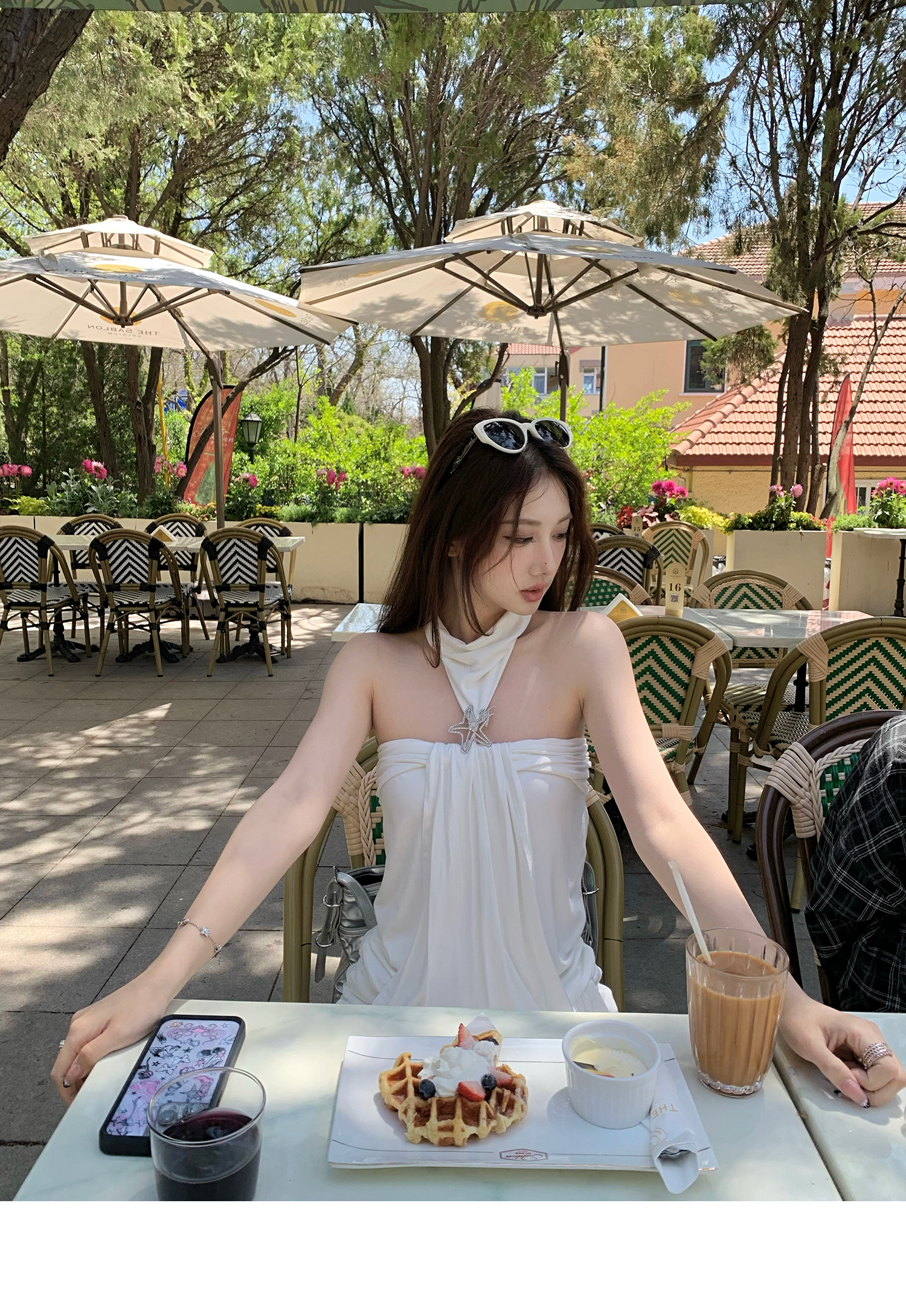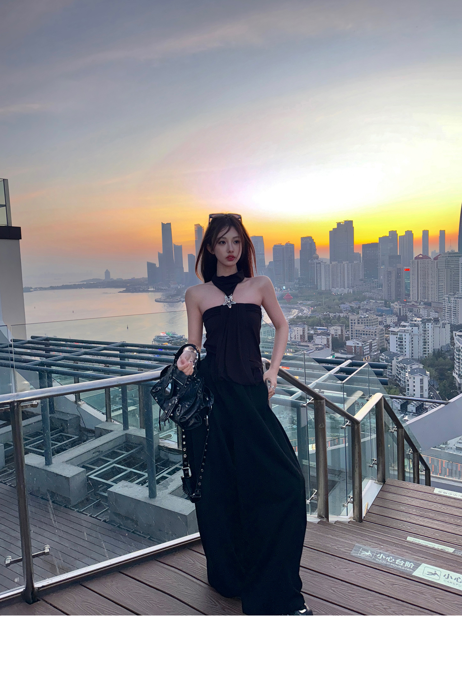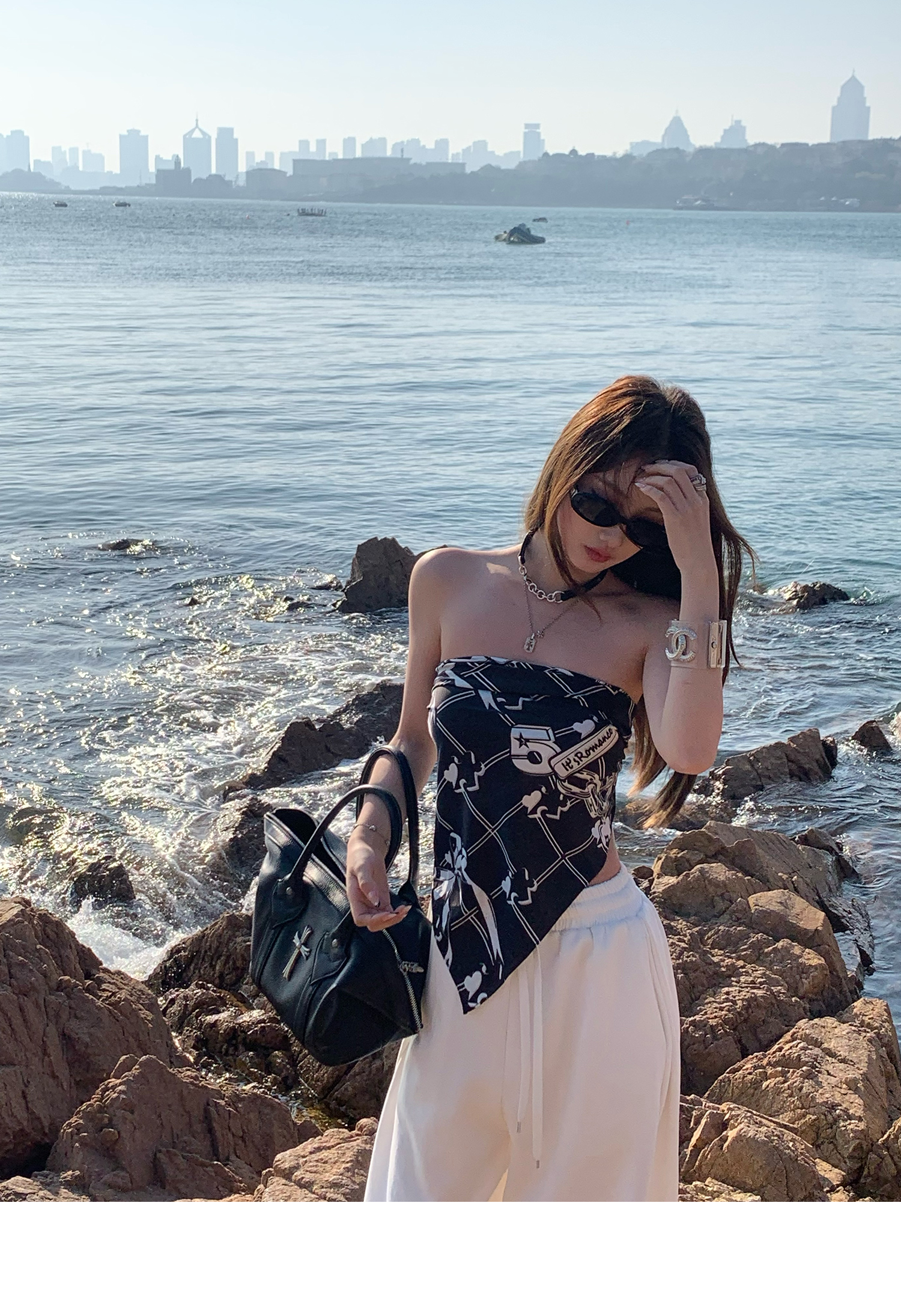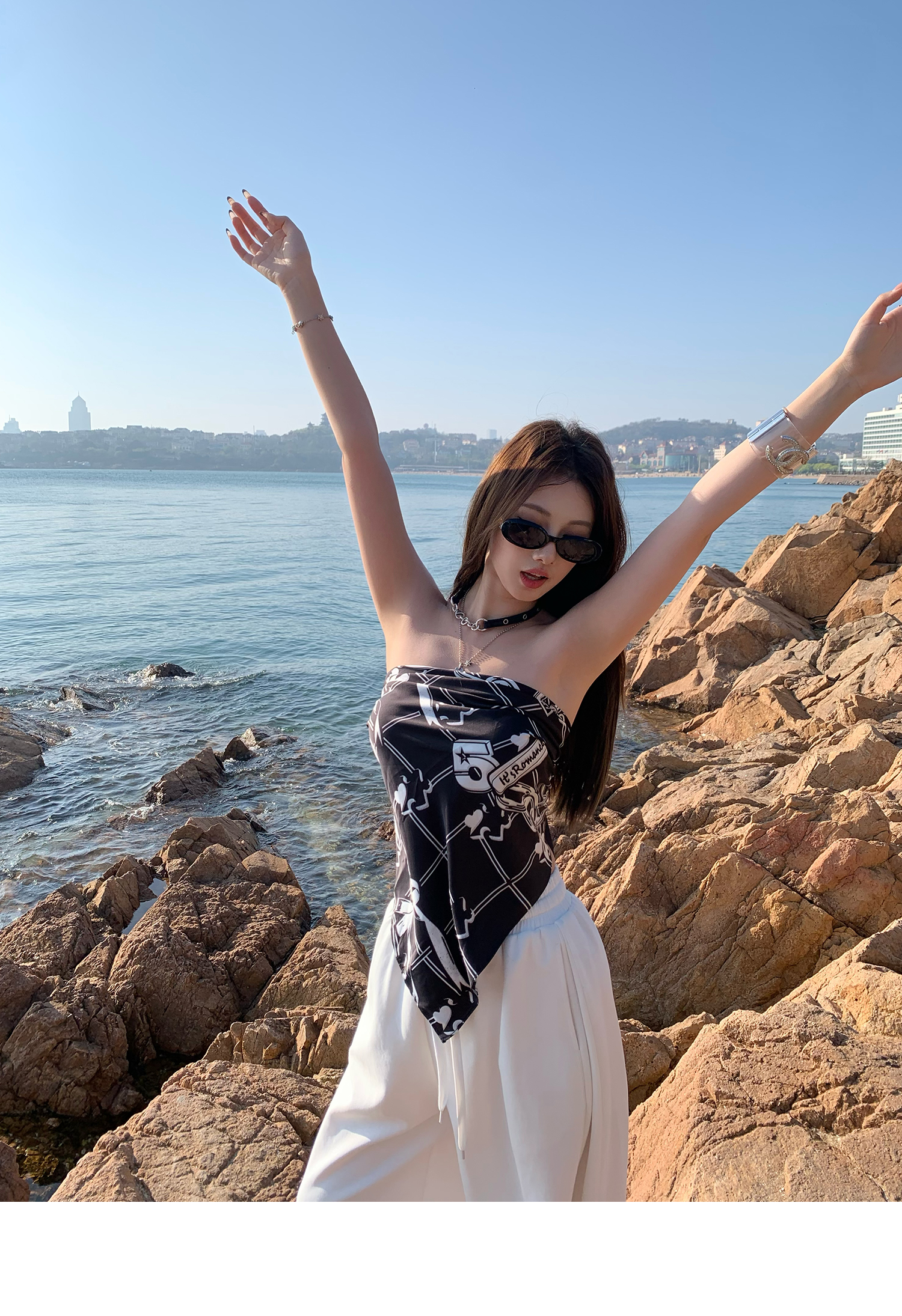 [Rose Accent] White Summer Two-Piece Set - Stylish Wide-Leg Pants