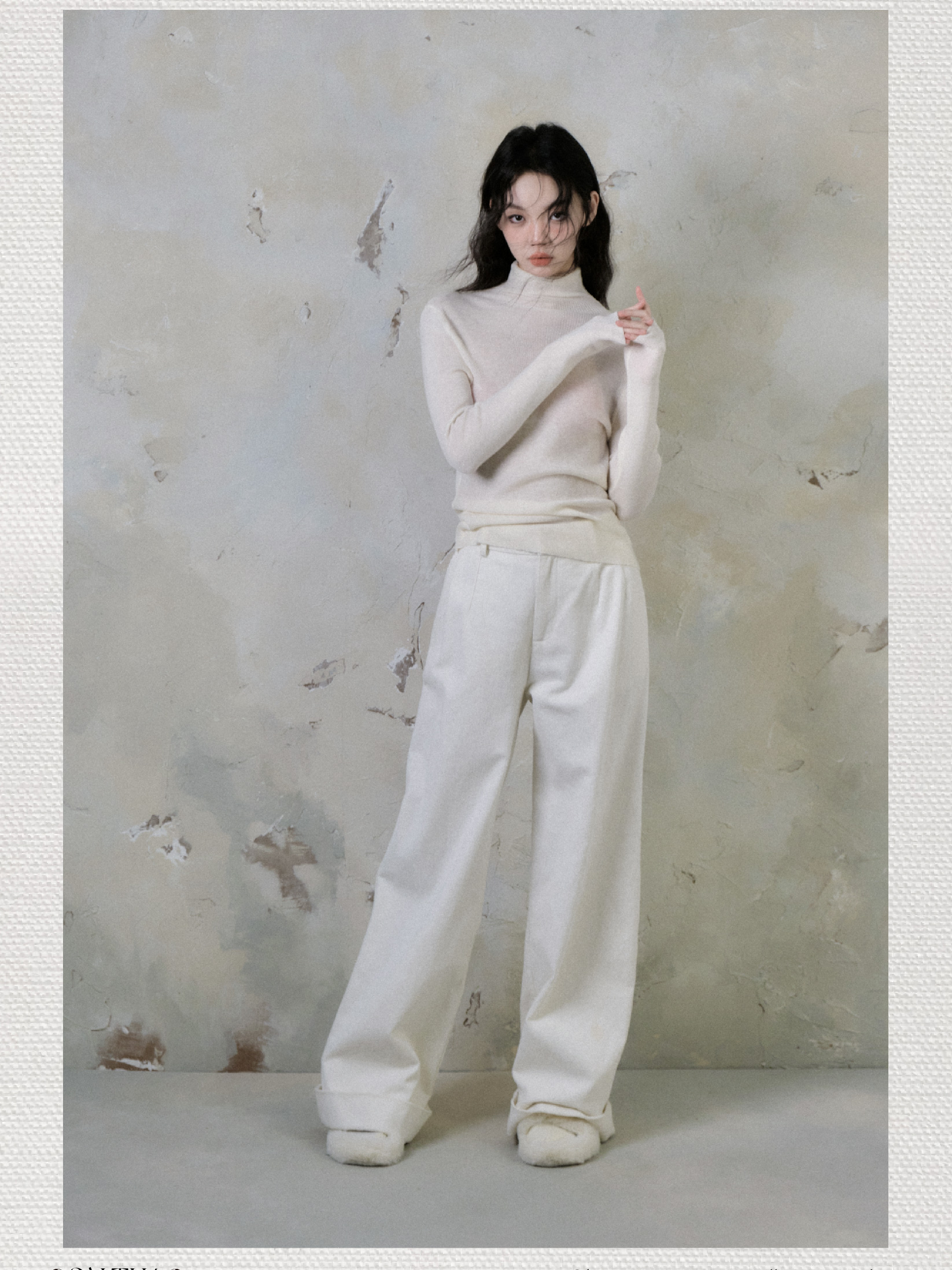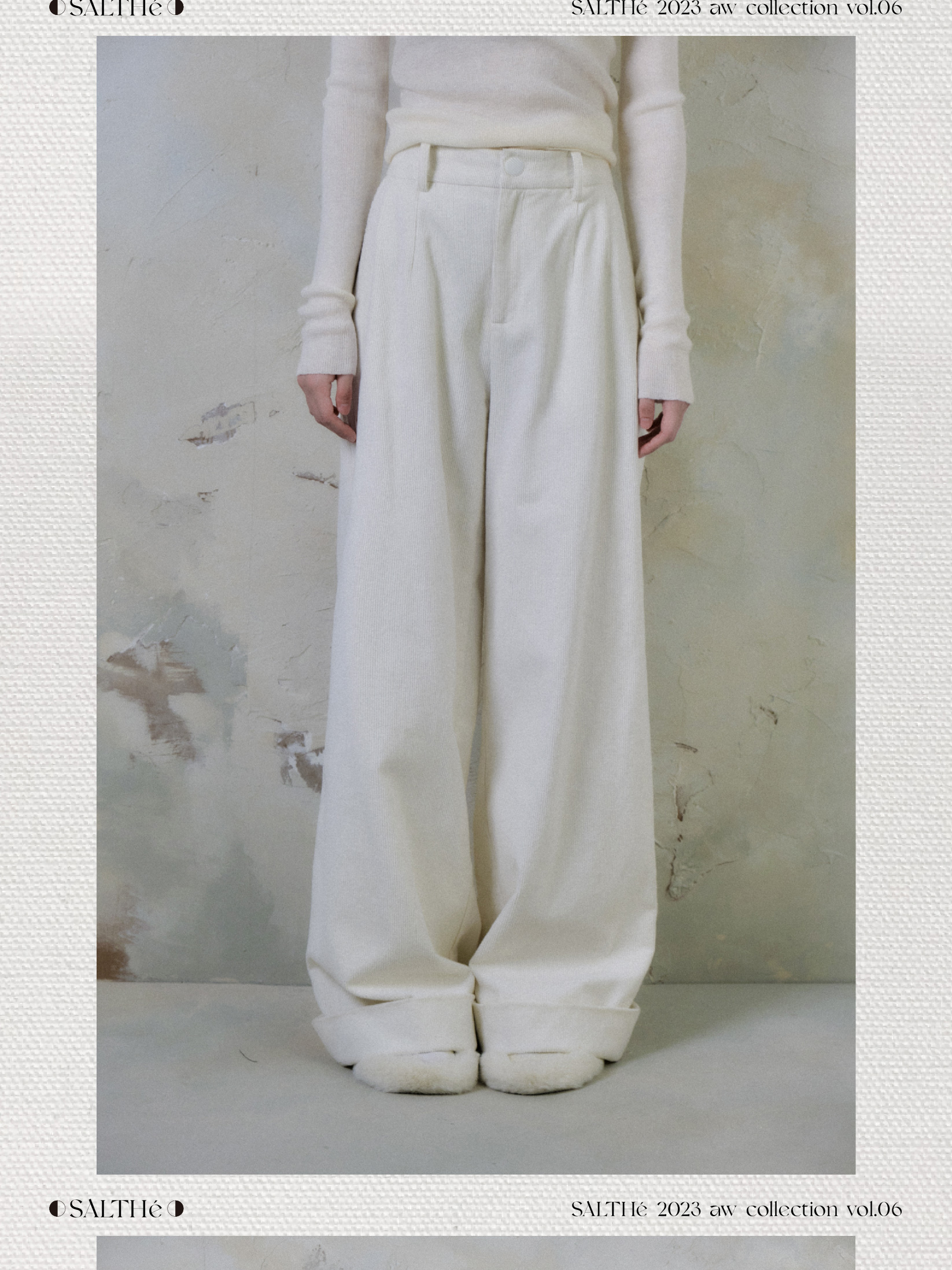 Cream Sweet Cheese High Waisted Corduroy Wide Leg Pants