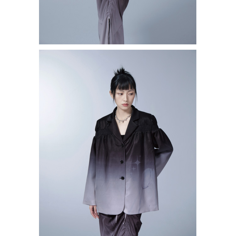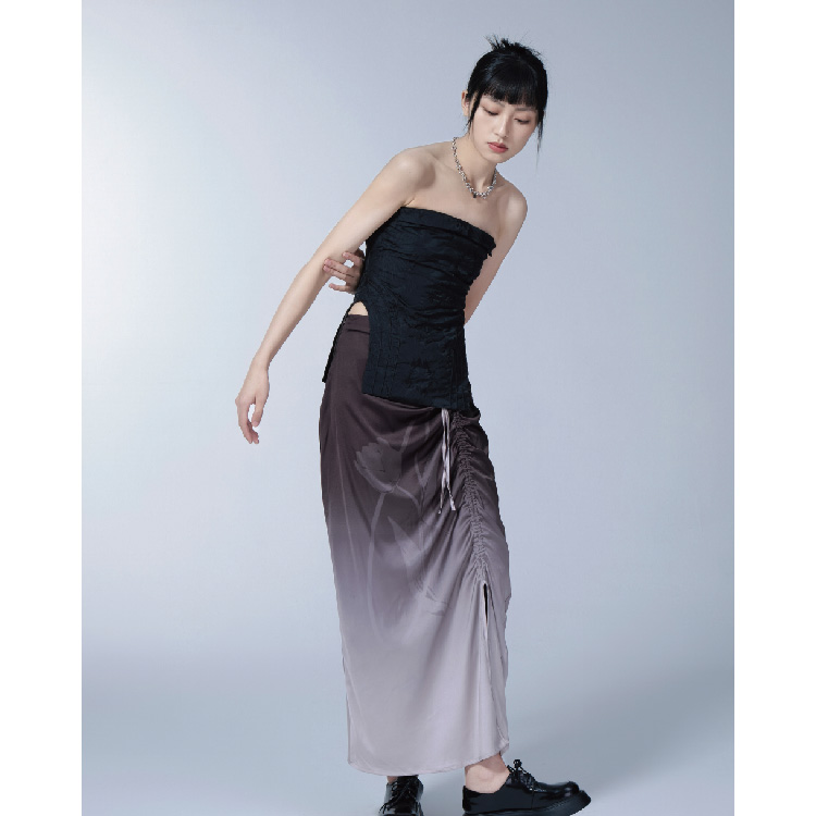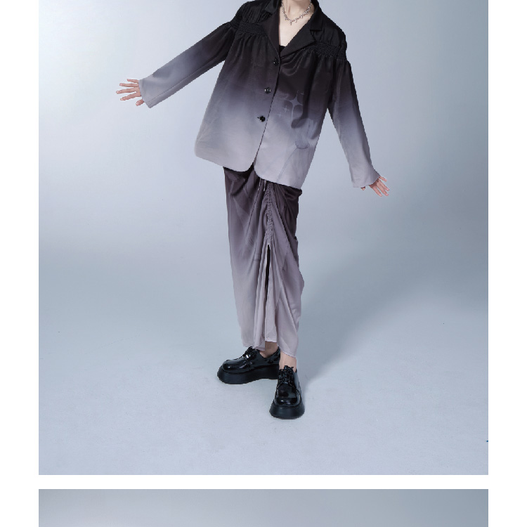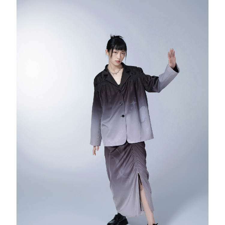 Purple Gradual Tulip Star Printed Satin Half Skirt