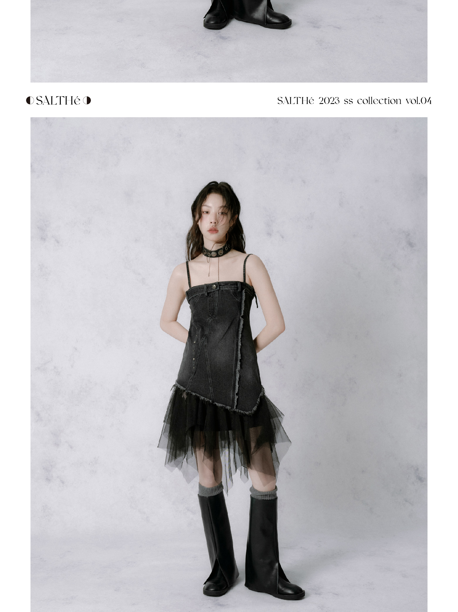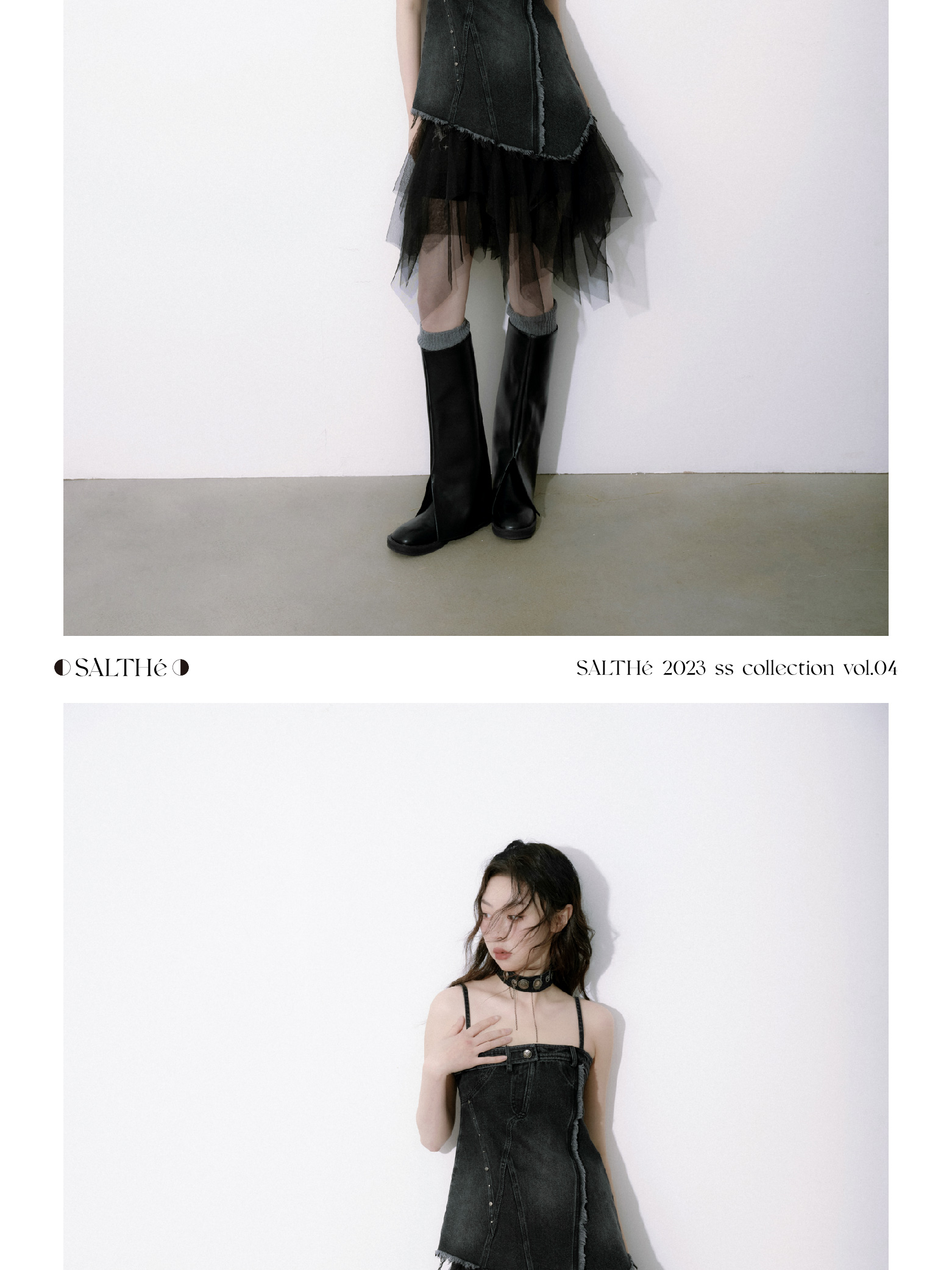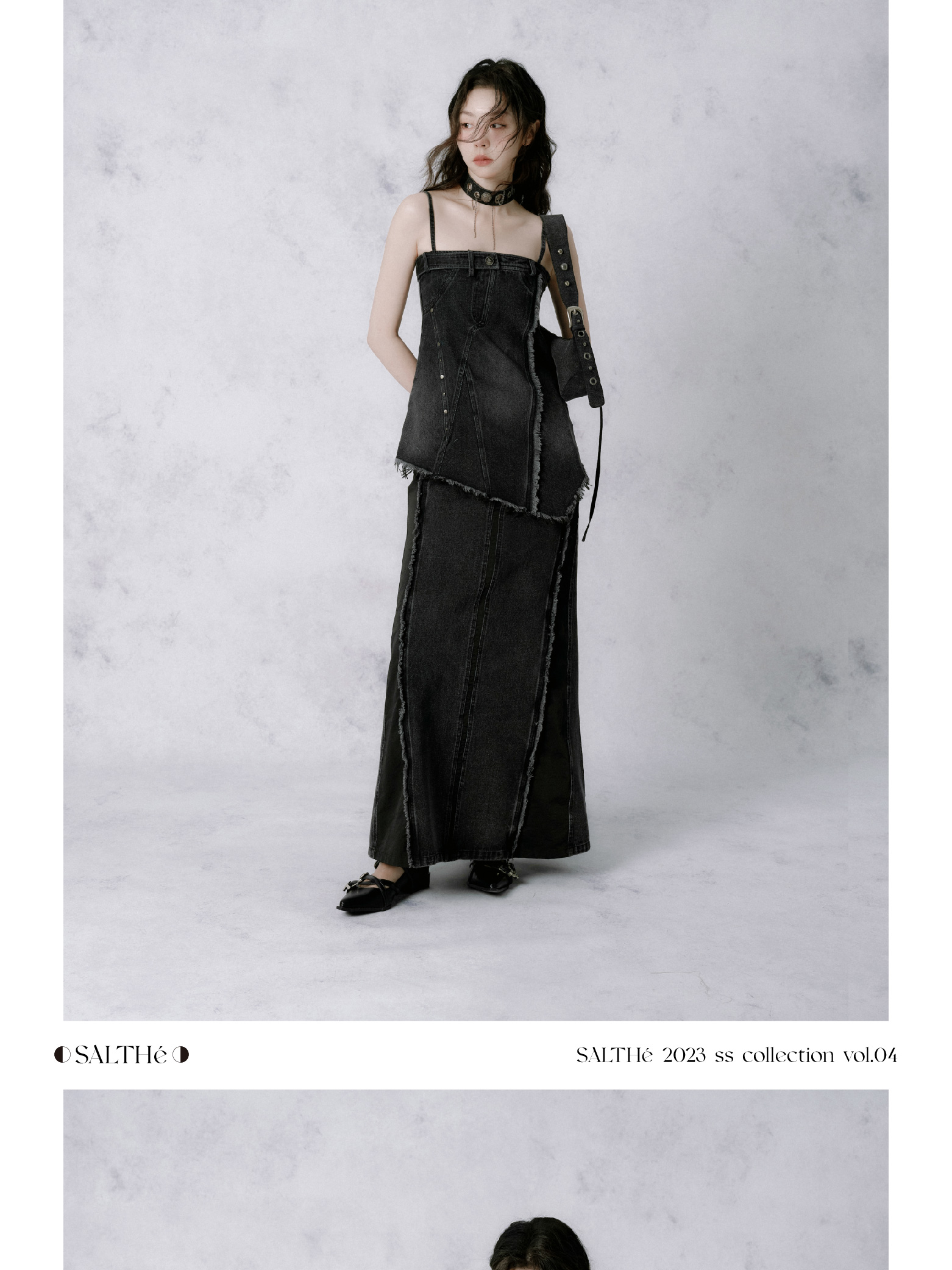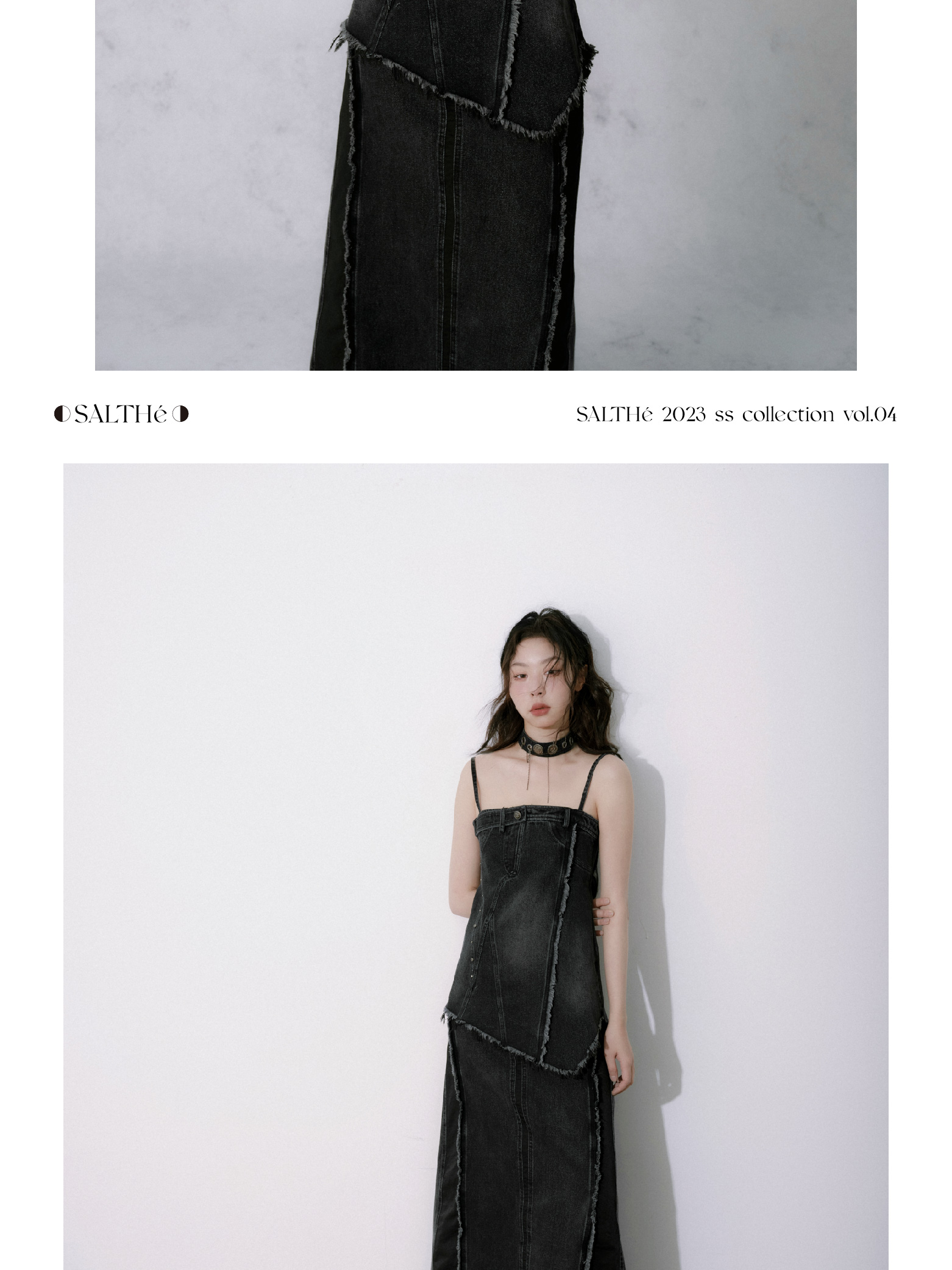 Waste Soil Denim Ragged Edge Splicing Black Sling Dress