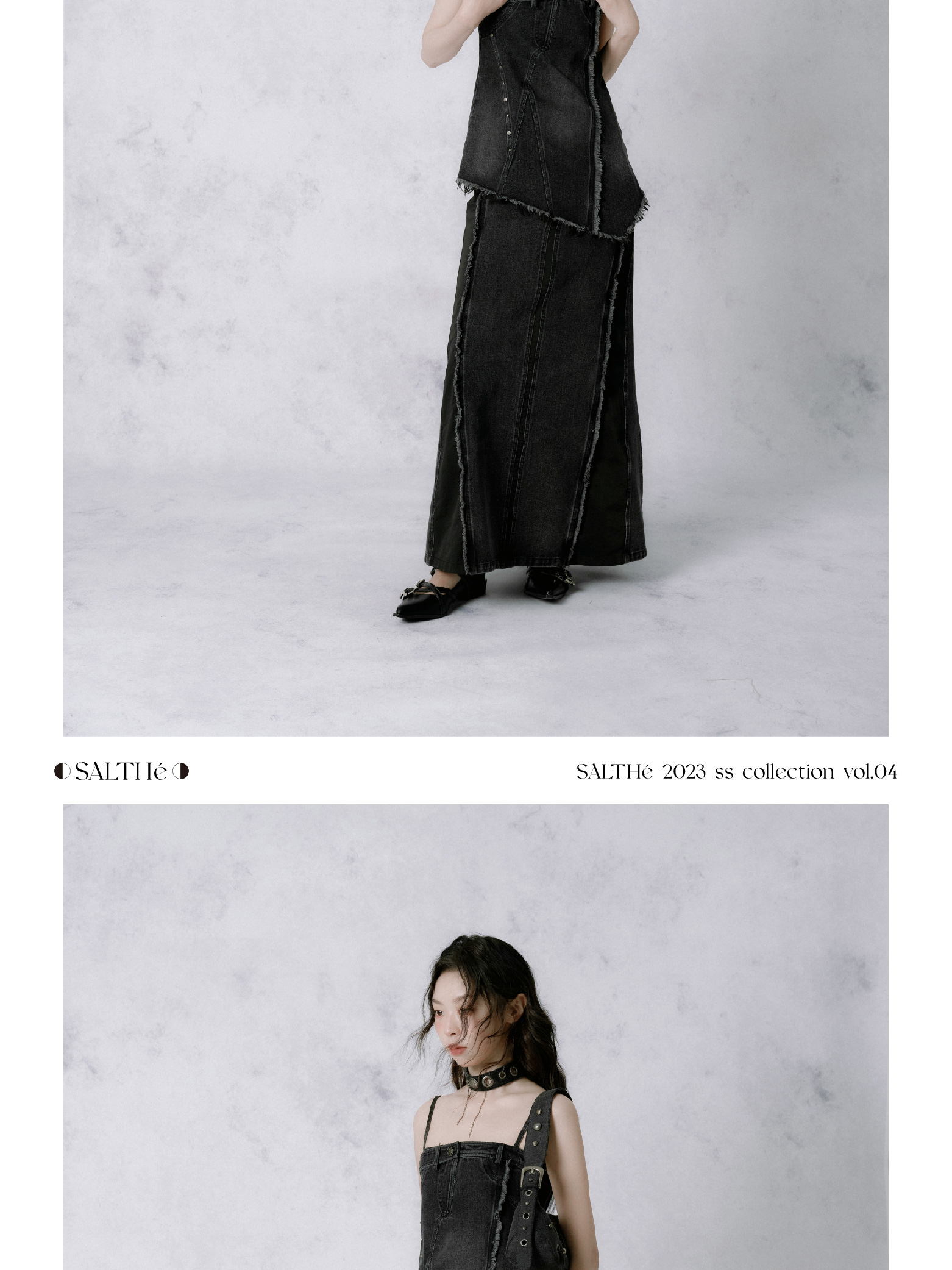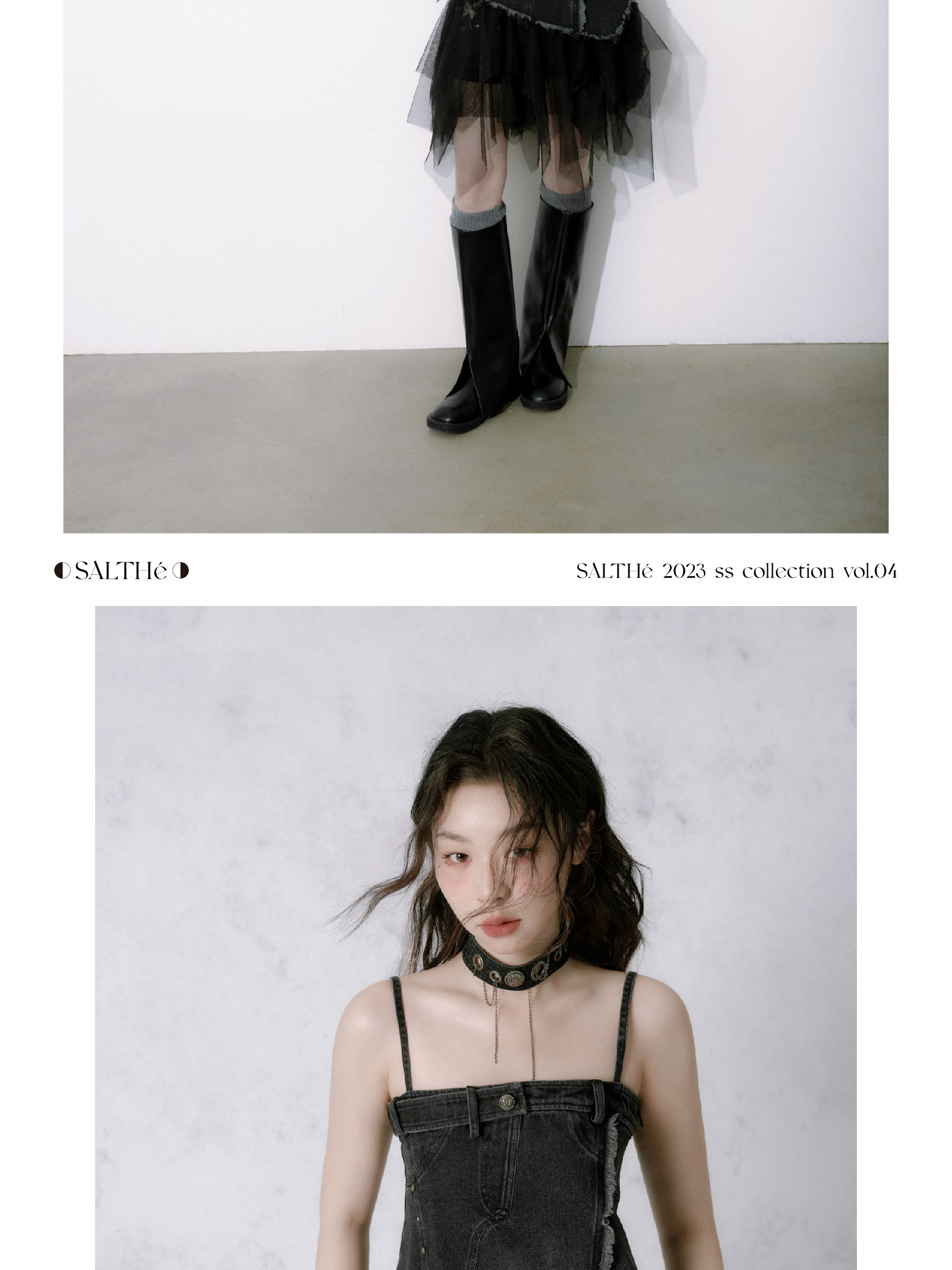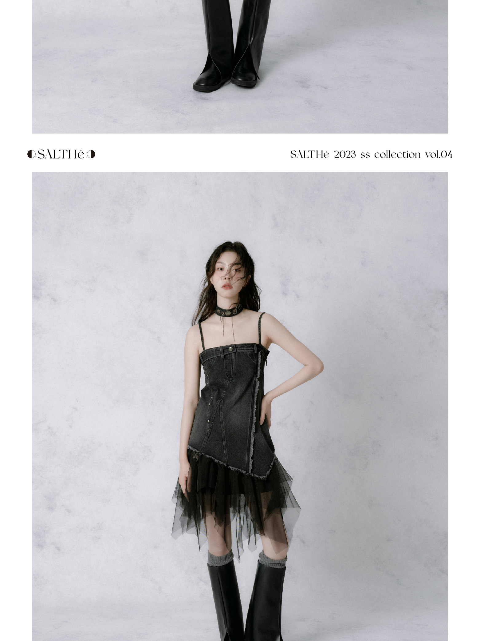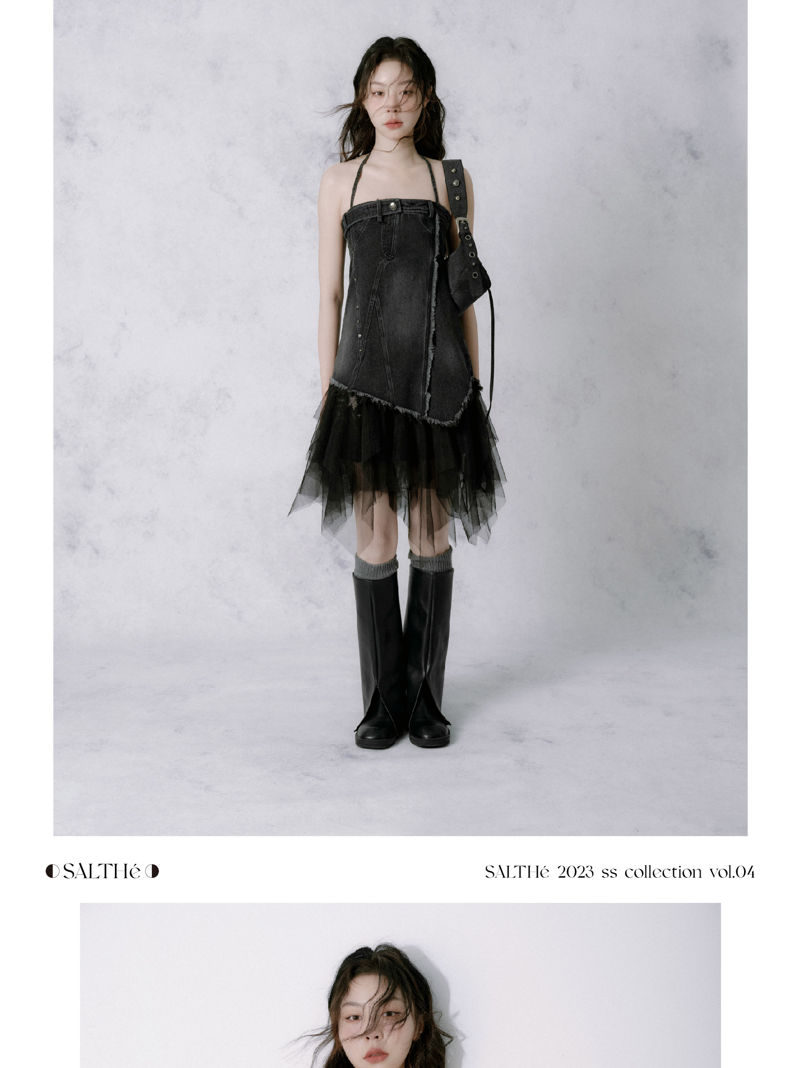 Waste Soil Denim Ragged Edge Splicing Black Sling Dress