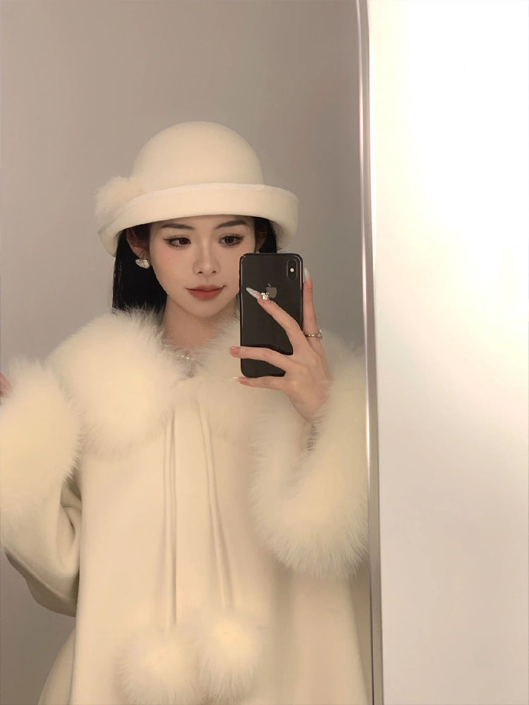 Elegant Tweed Cashmere Coat – Petite Gold Cloak Wool Jacket