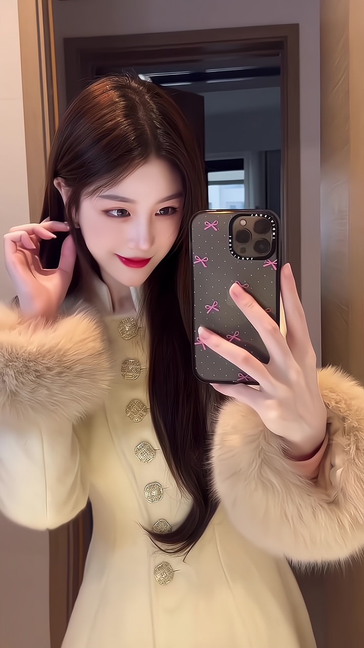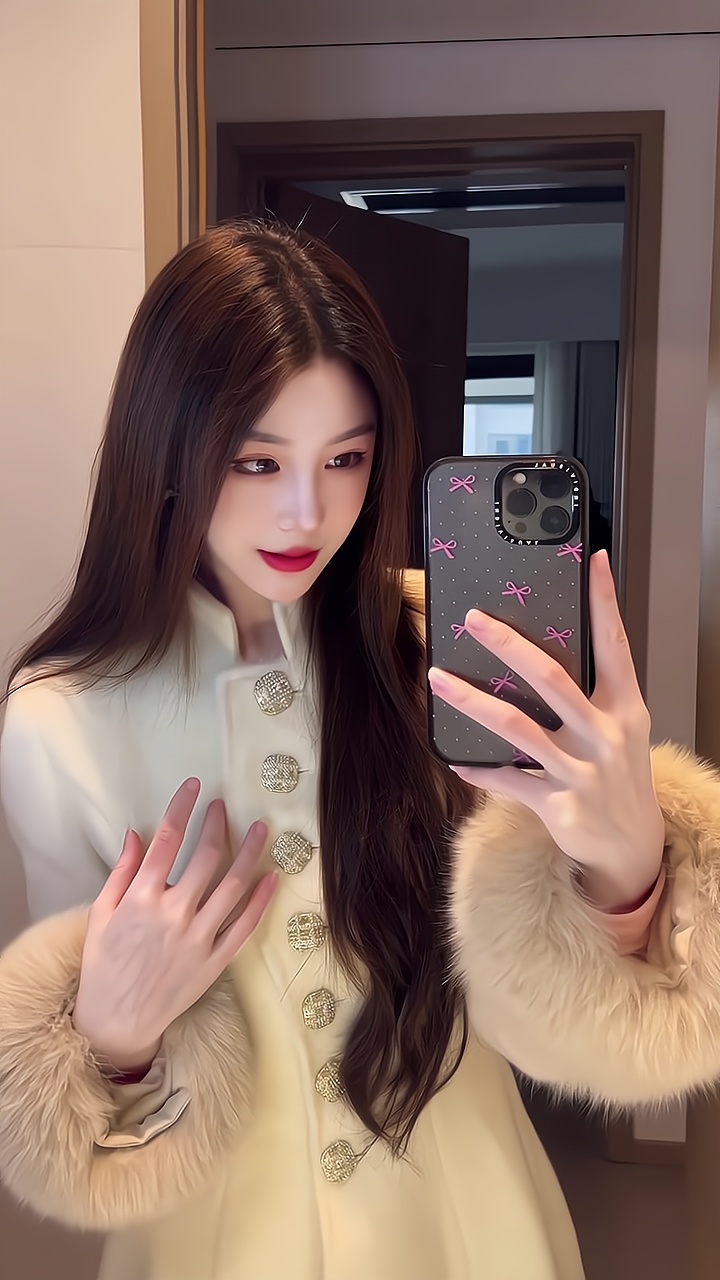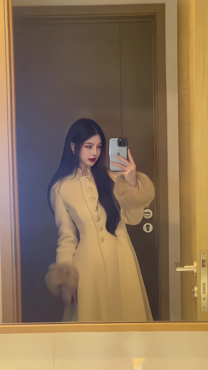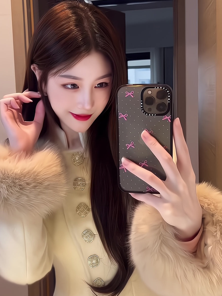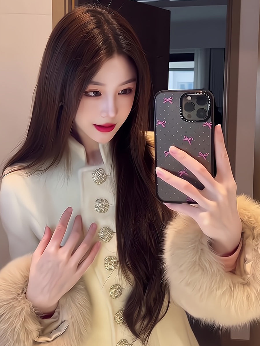 Gold-Tone Cashmere Coat – Fox Fur-Trimmed Elegant Tweed Jacket