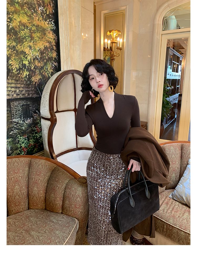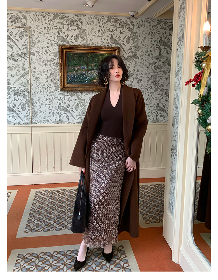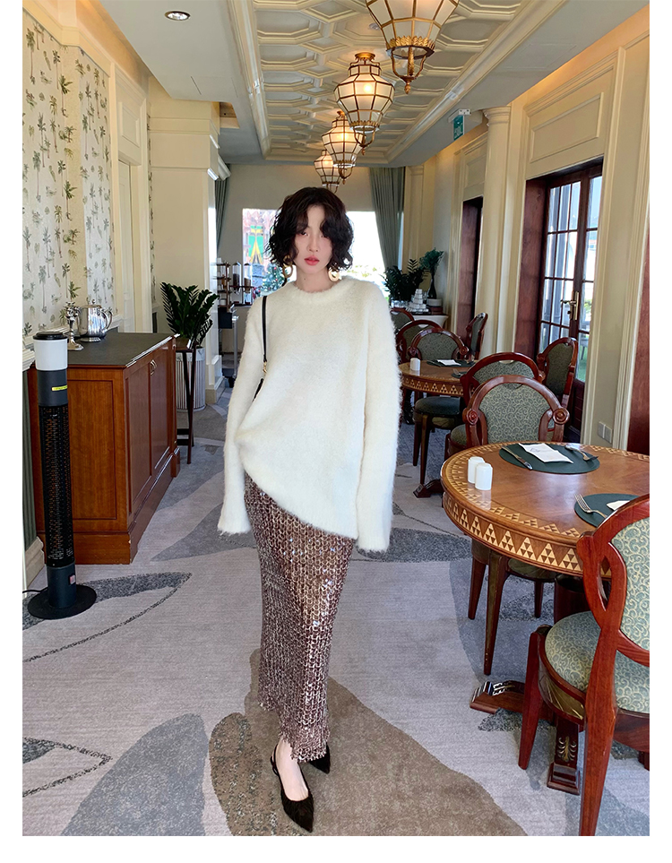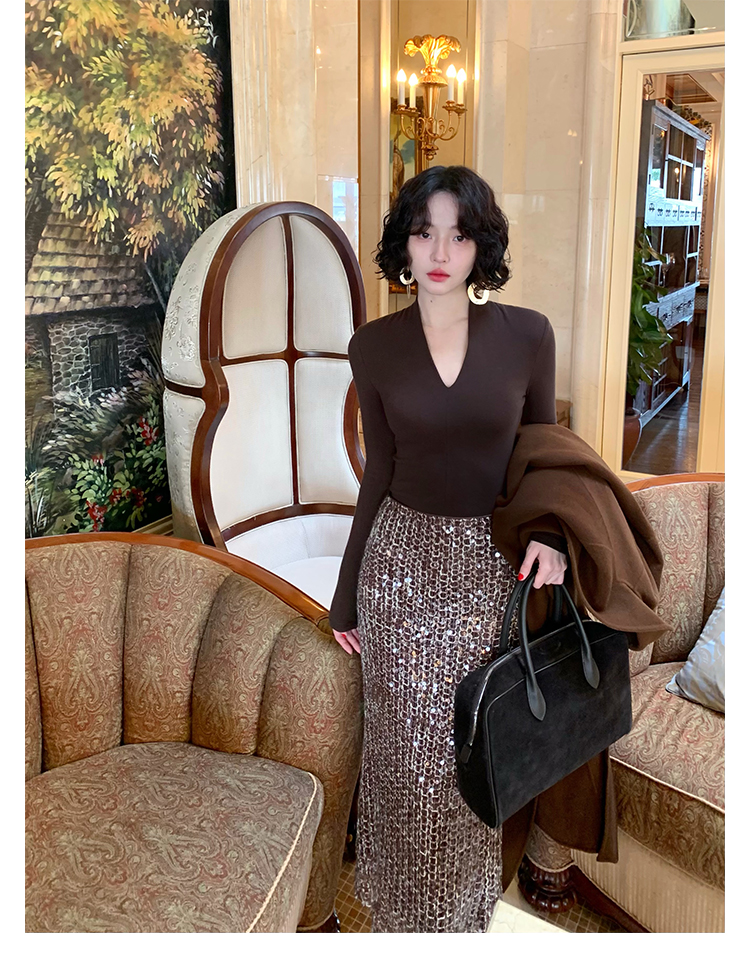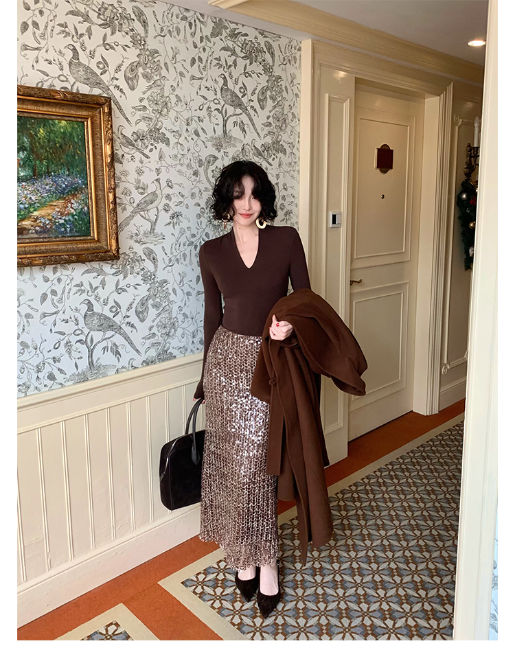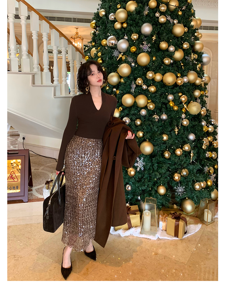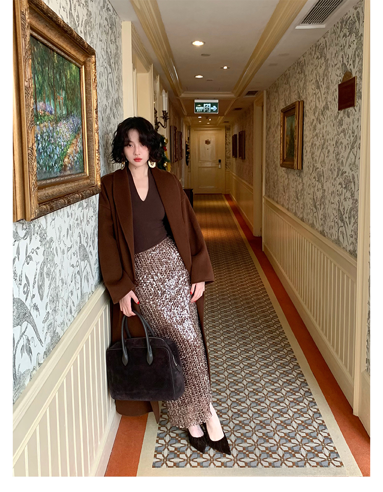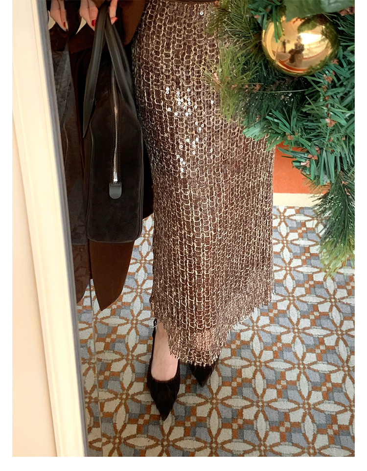 Sequined Skirt Evening Dress with Hollow Braided Design