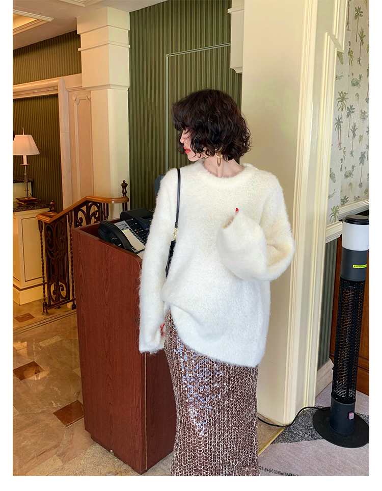 Body fabric:90% acrylic 5.1% nylon 4.9% polyester (excluding glue, sequins and sewing thread)