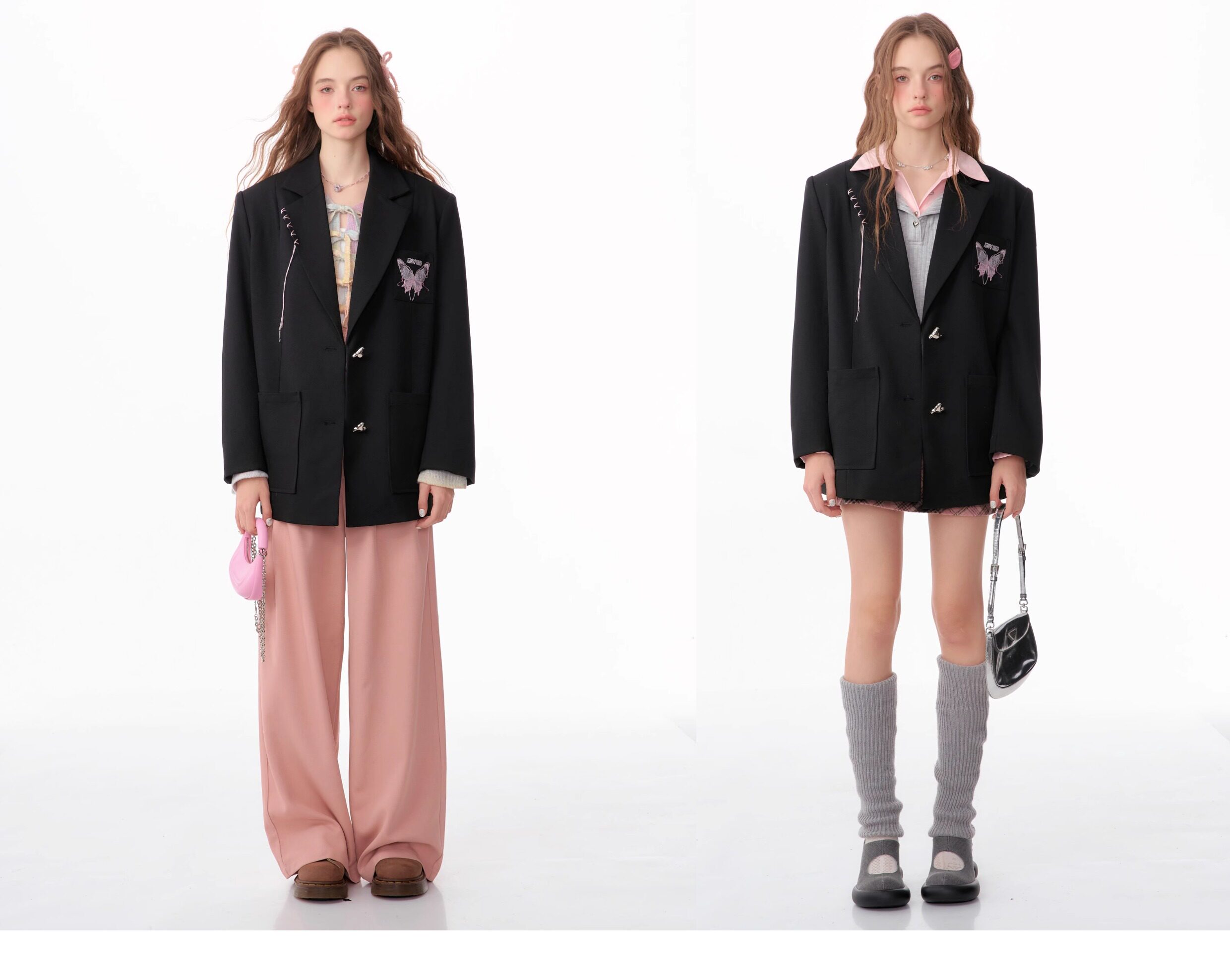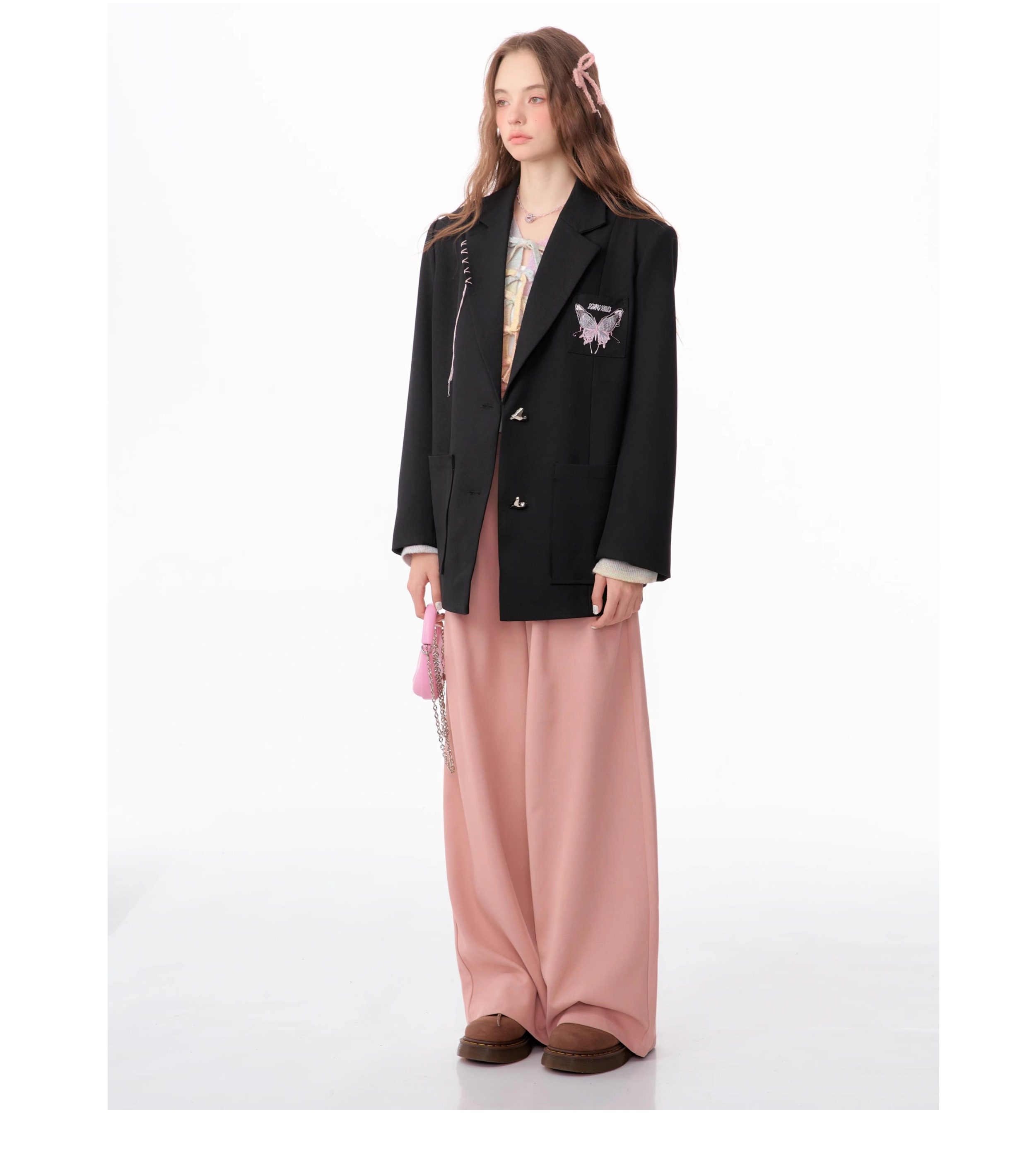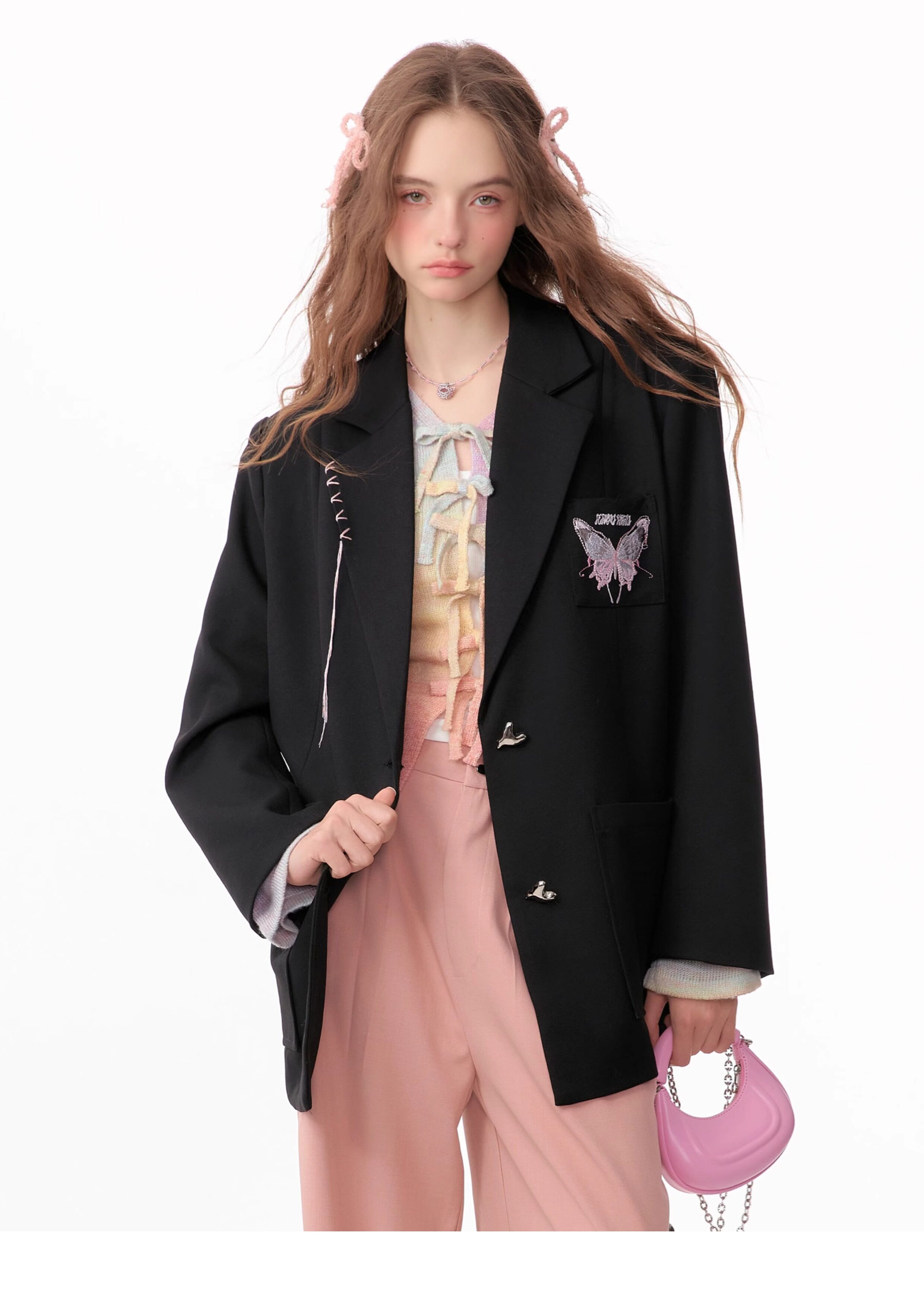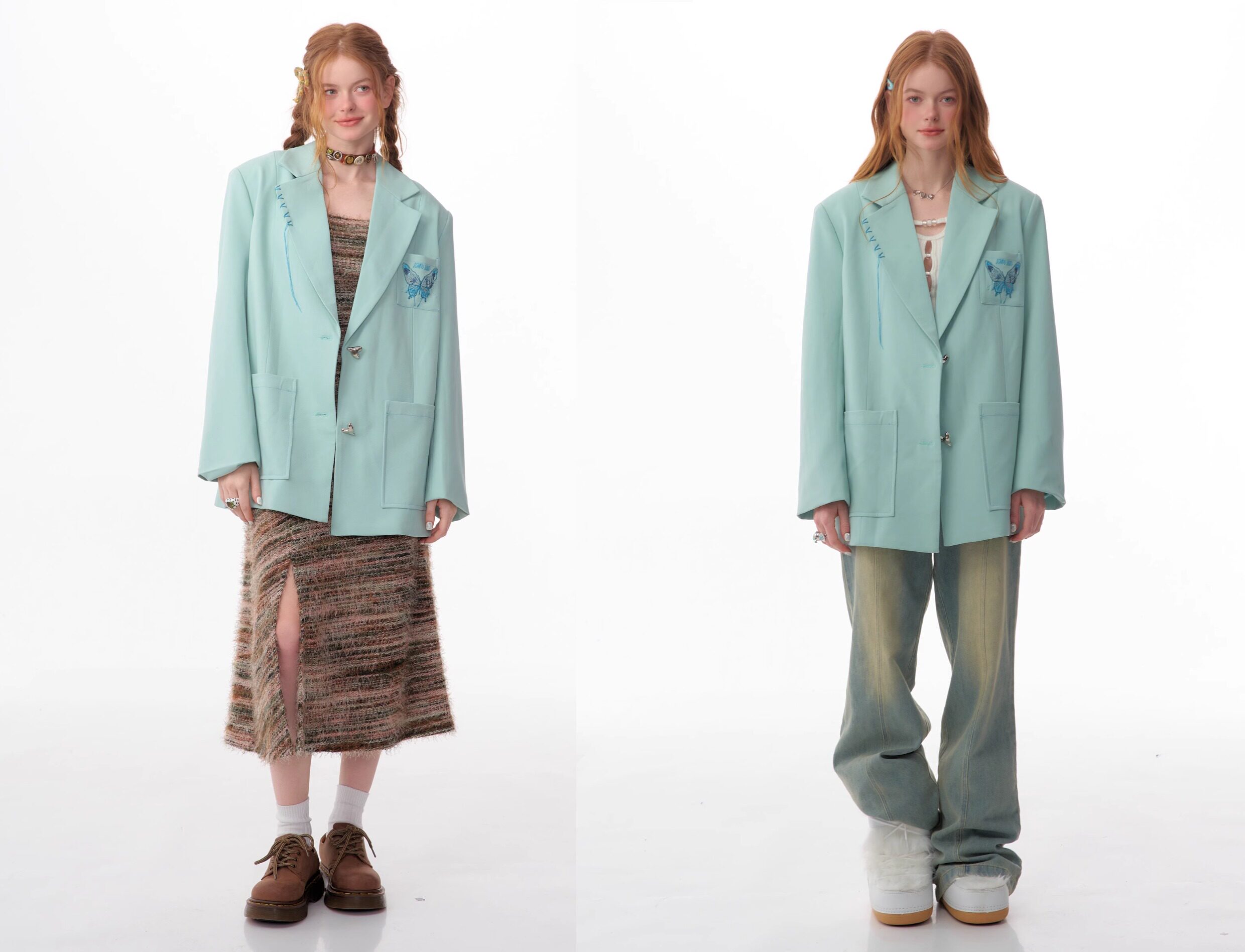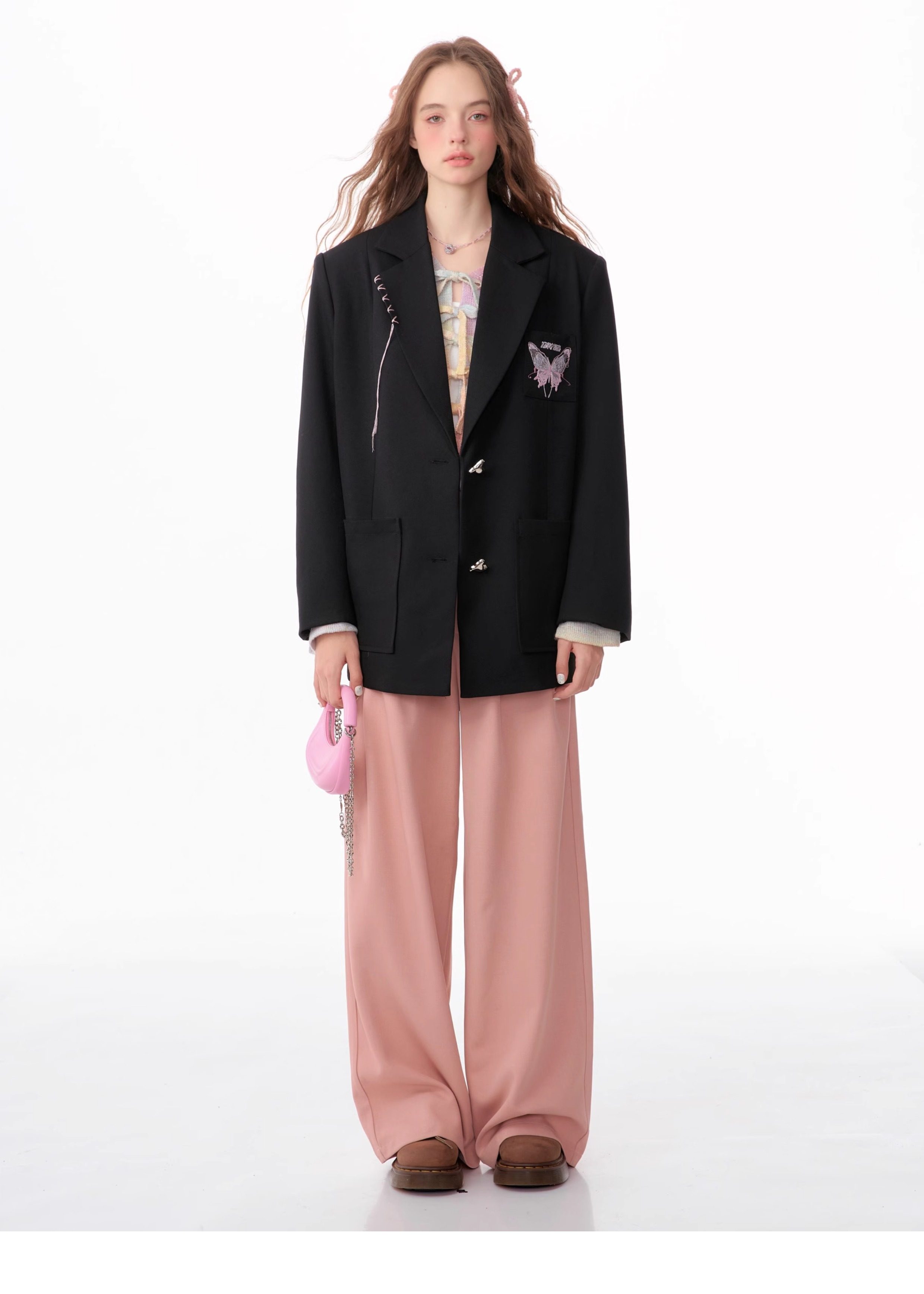 Butterfly Embroidery Oversized Suit Coat | Retro Casual Set for Spring/Autumn