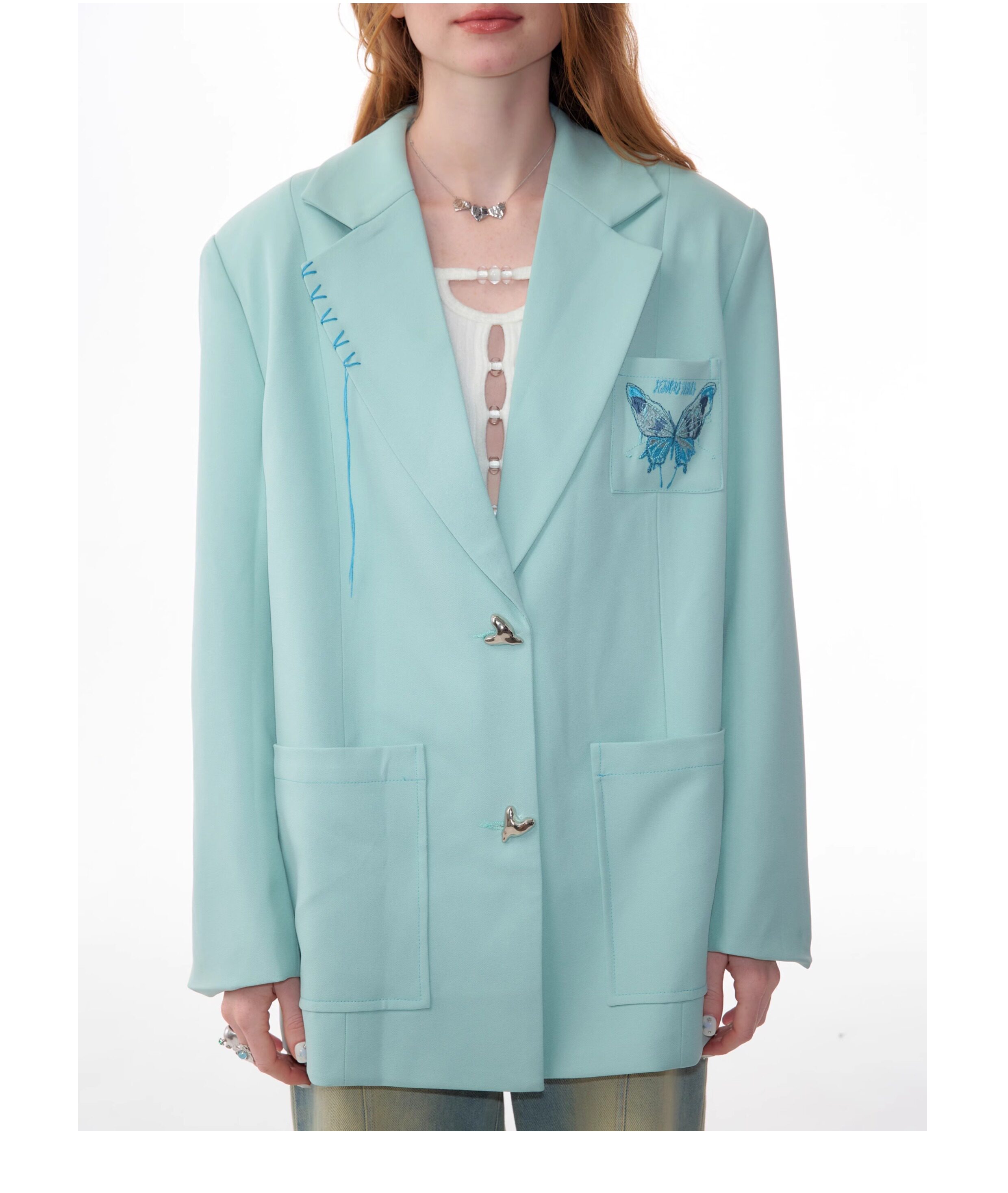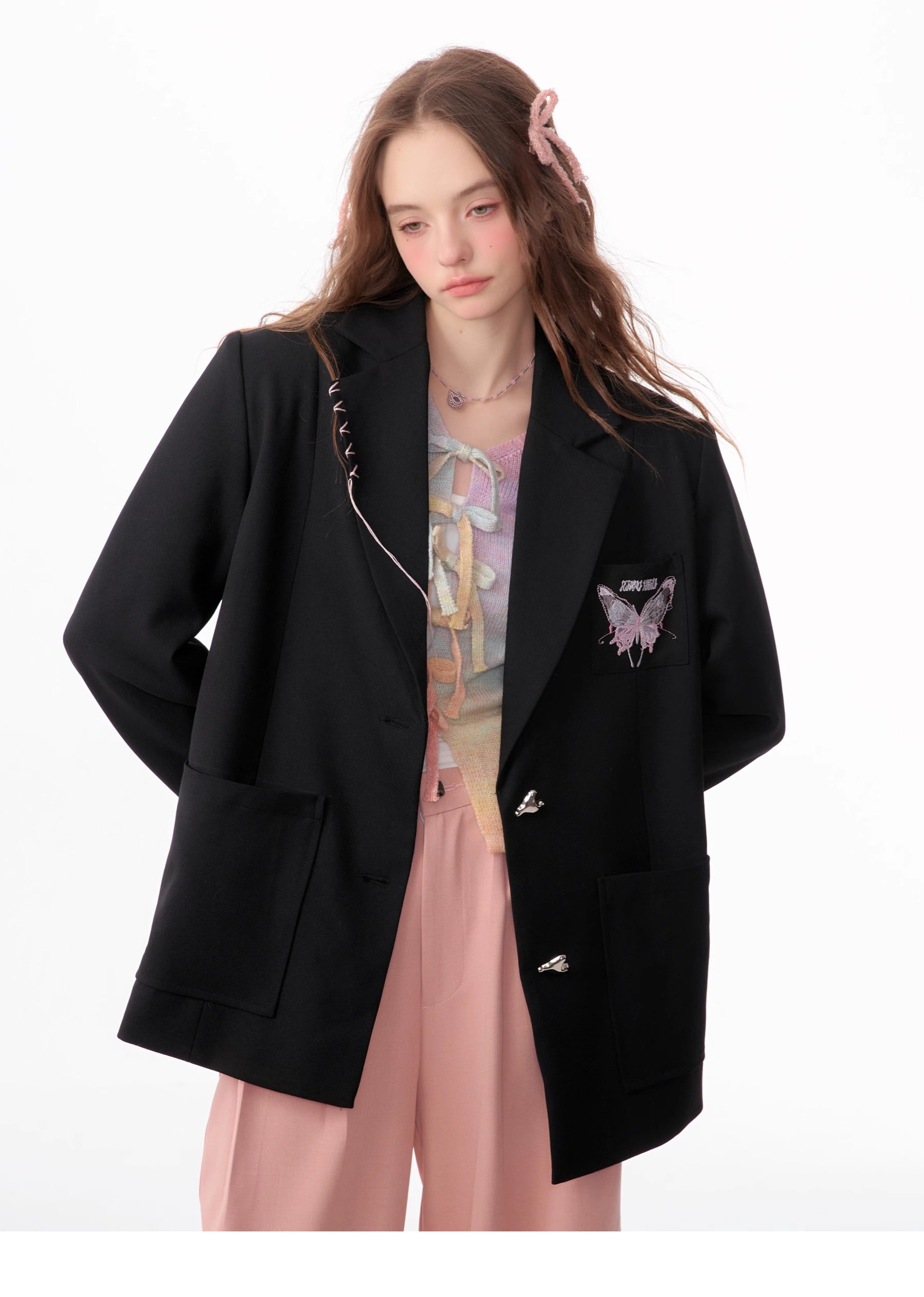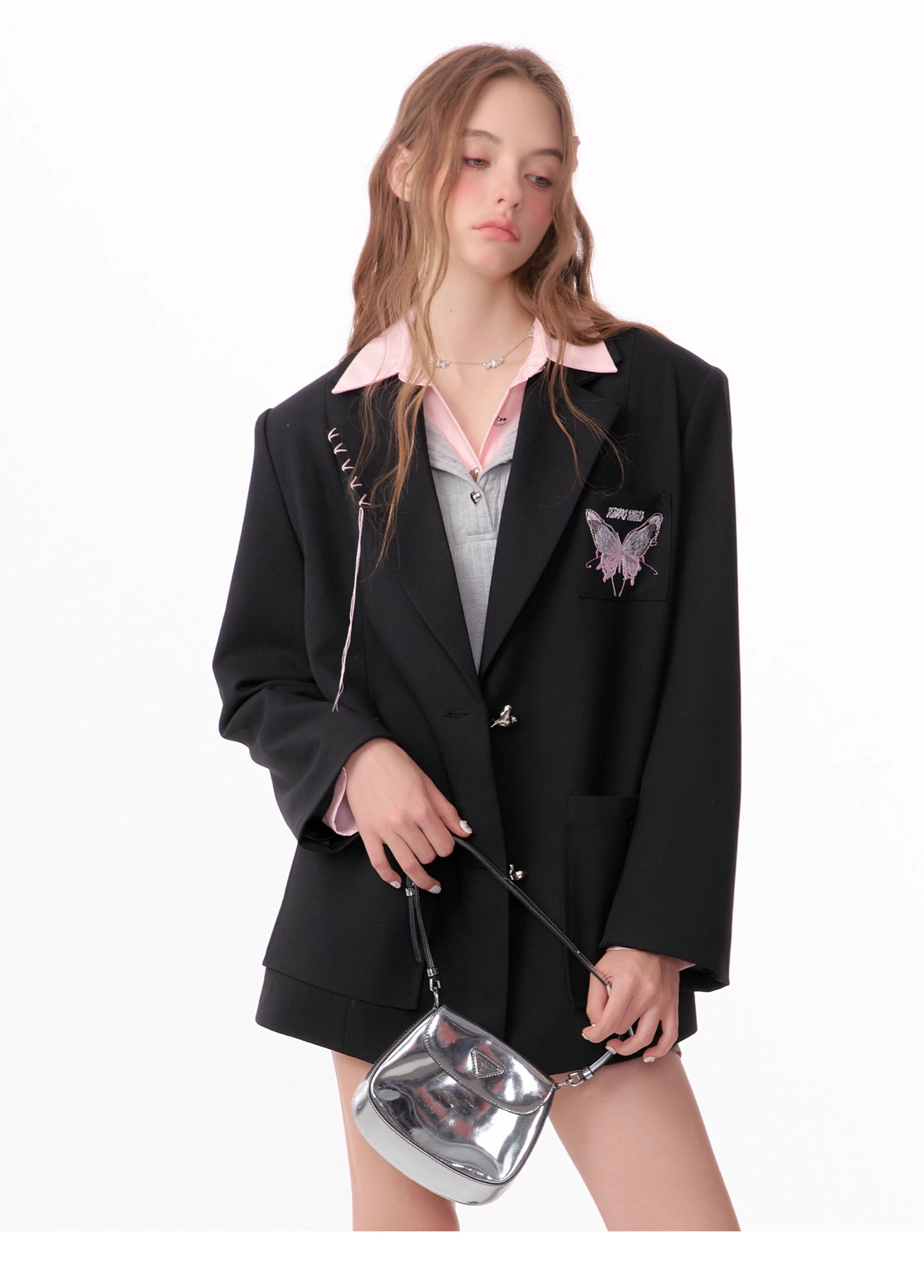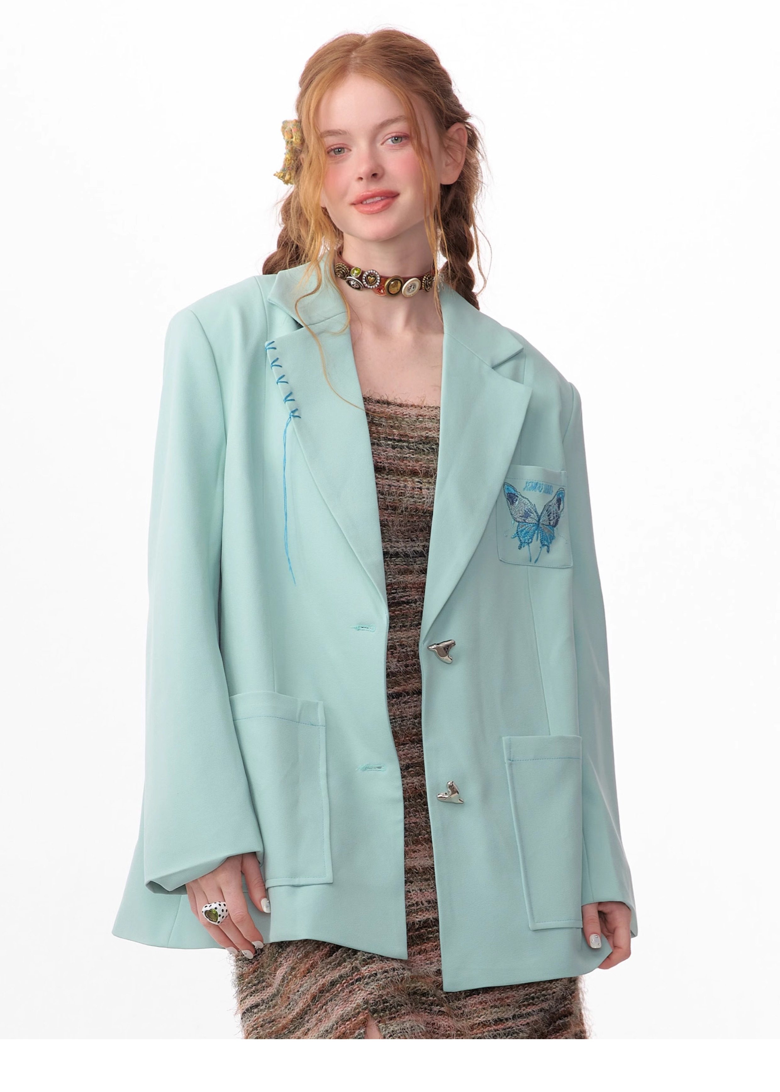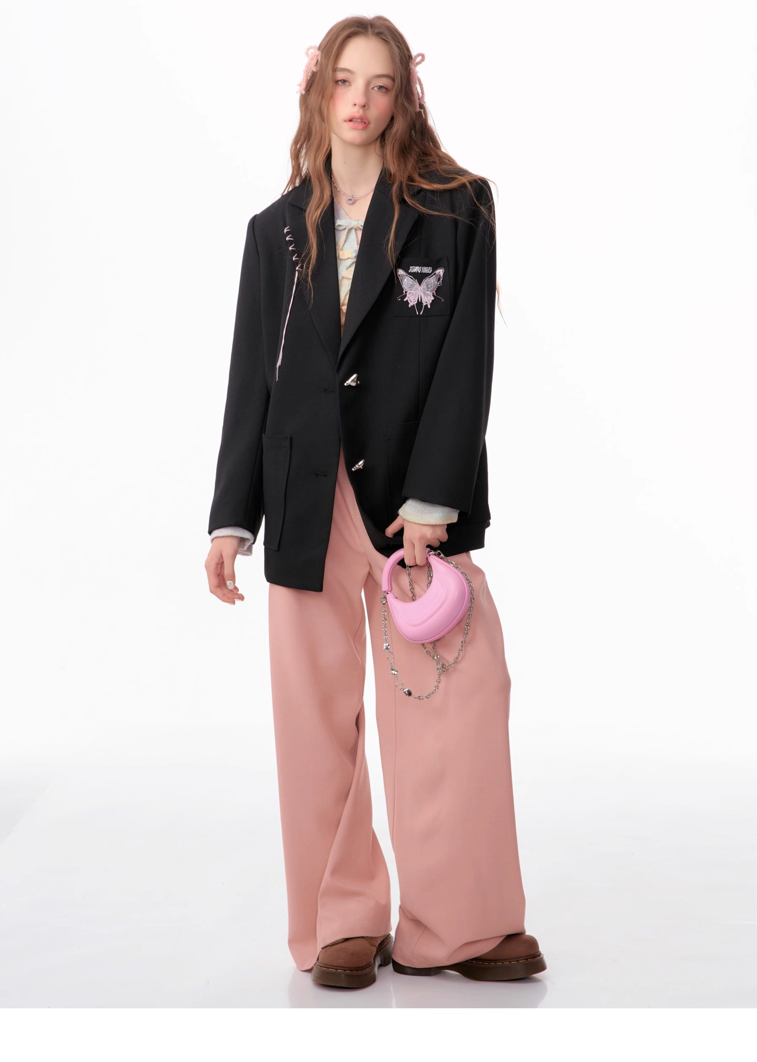Butterfly Embroidery Oversized Suit Coat | Retro Casual Set for Spring/Autumn
