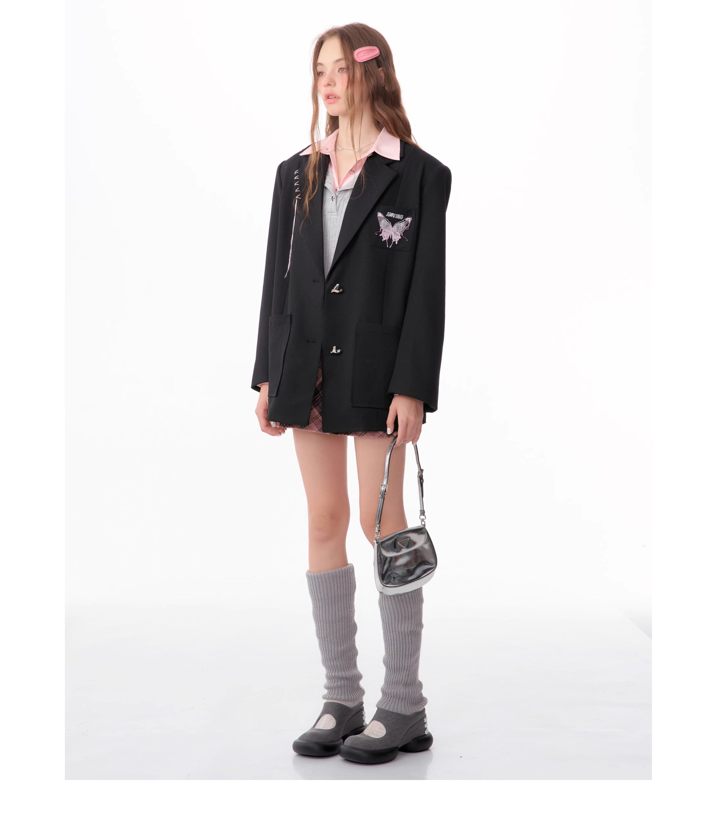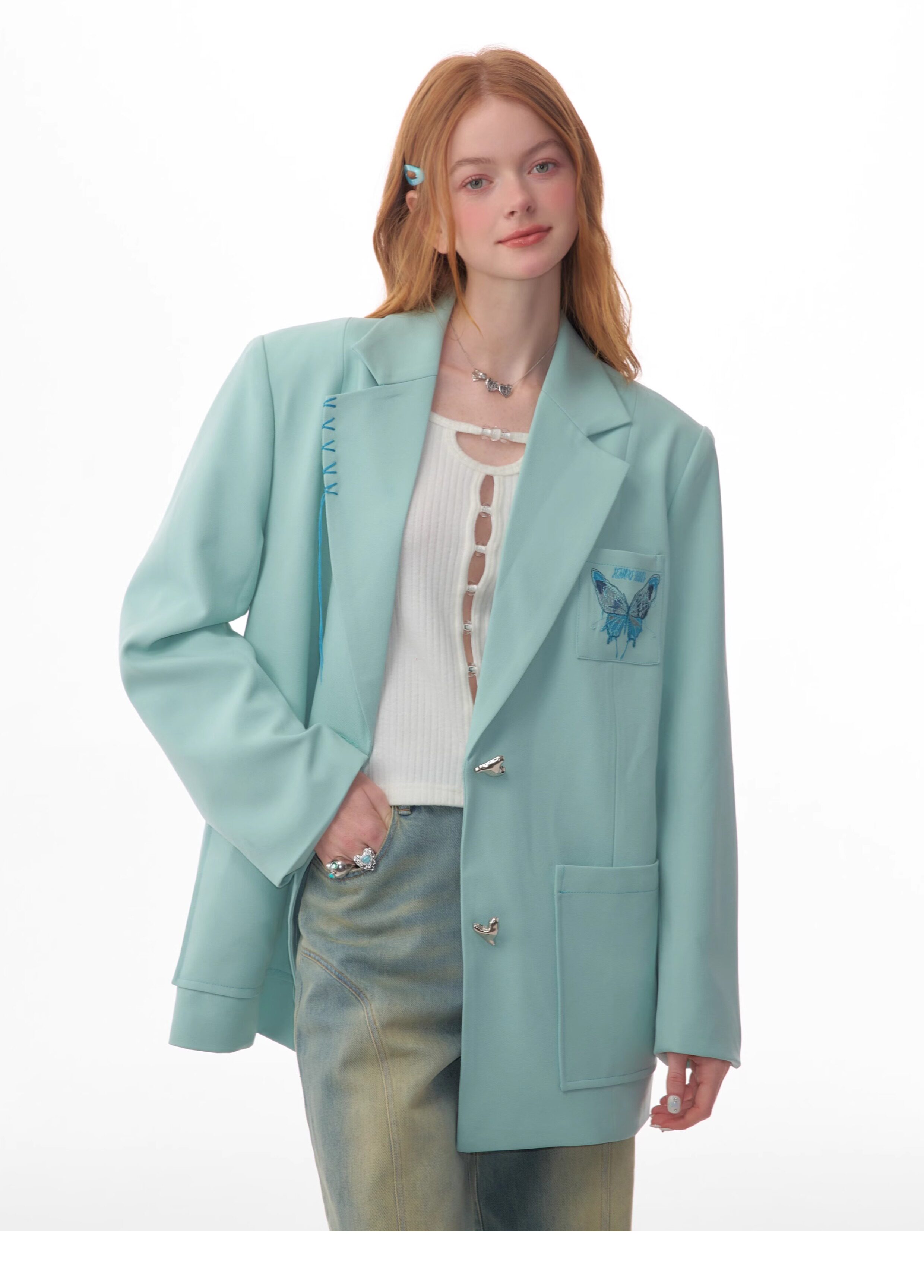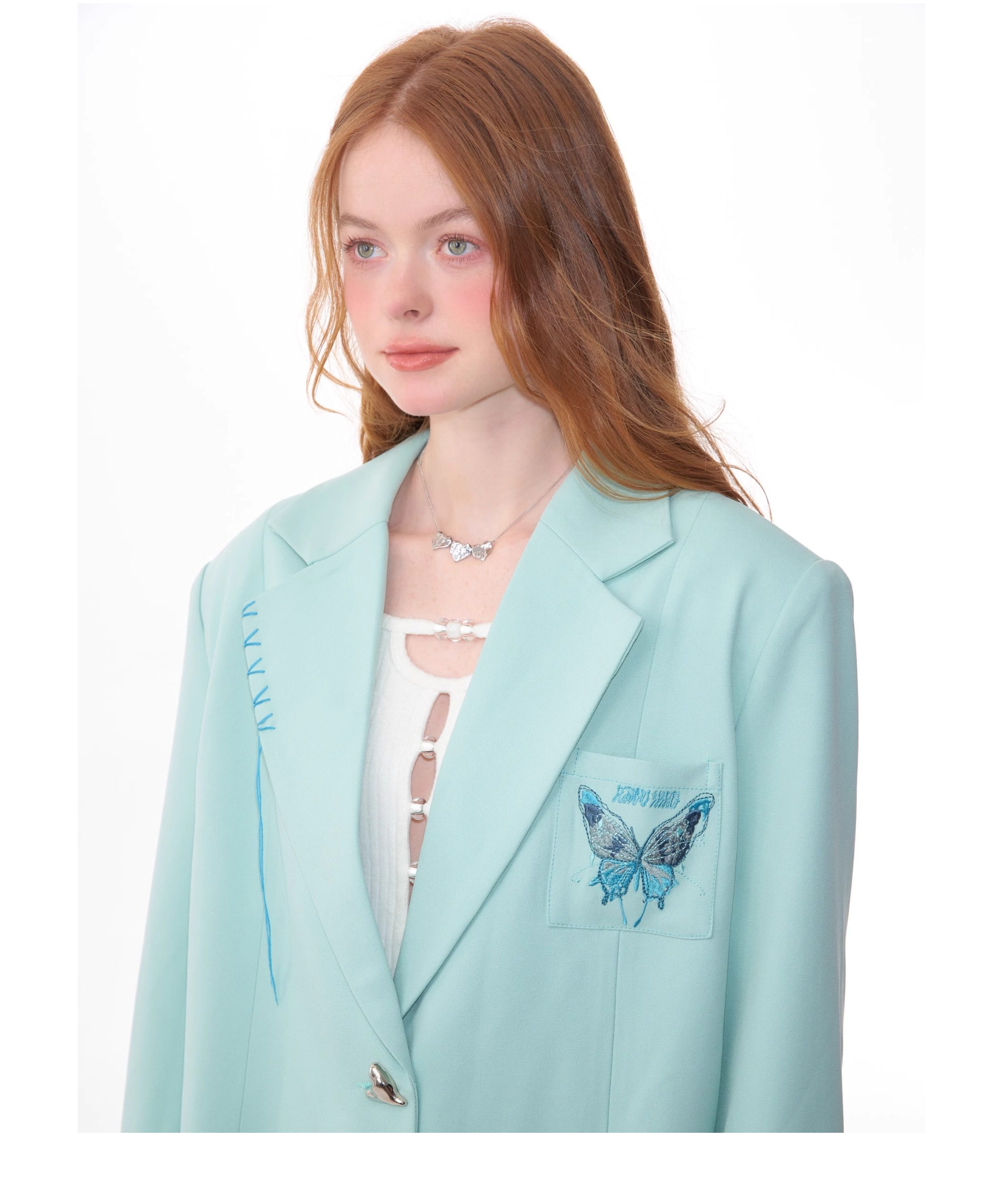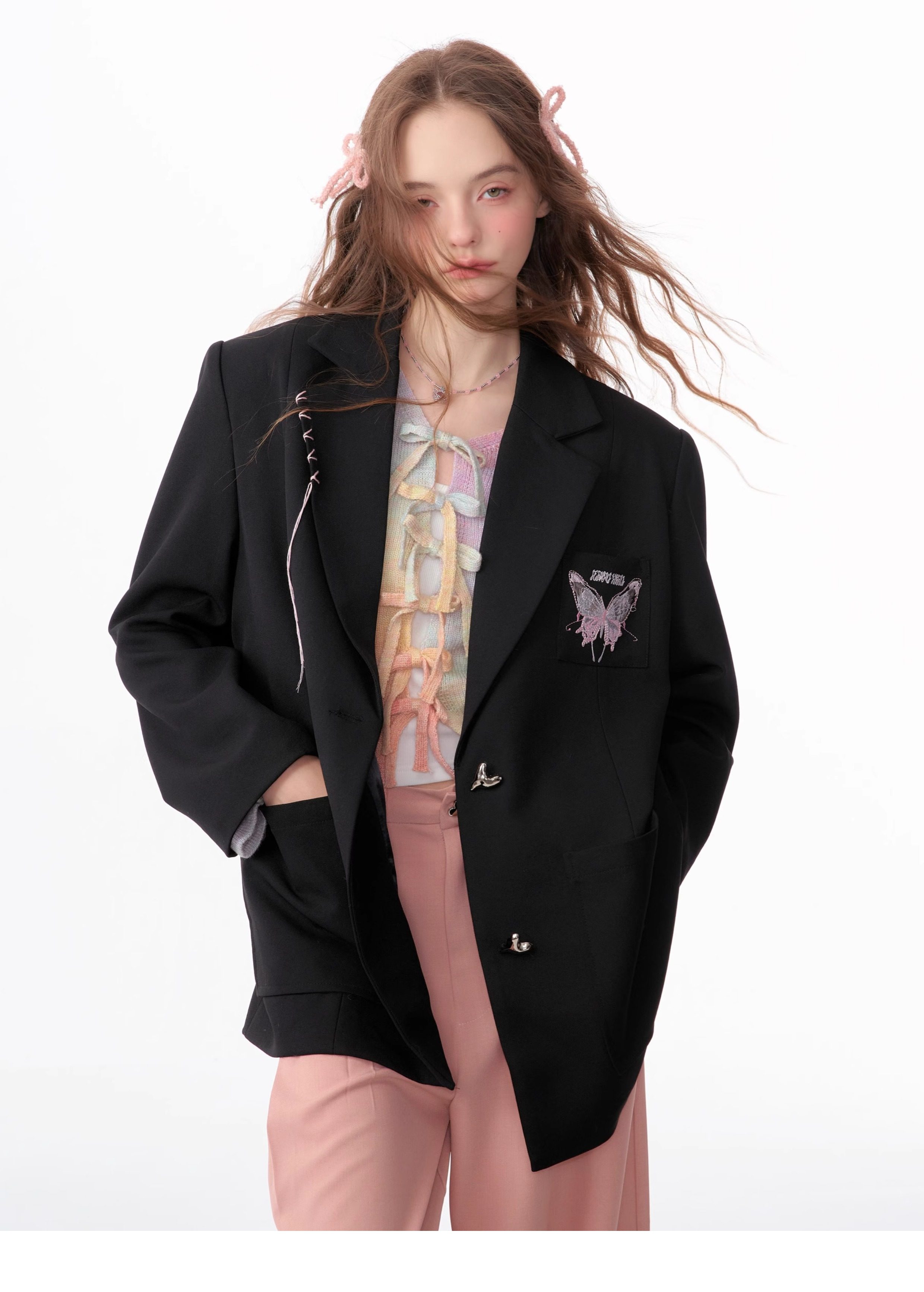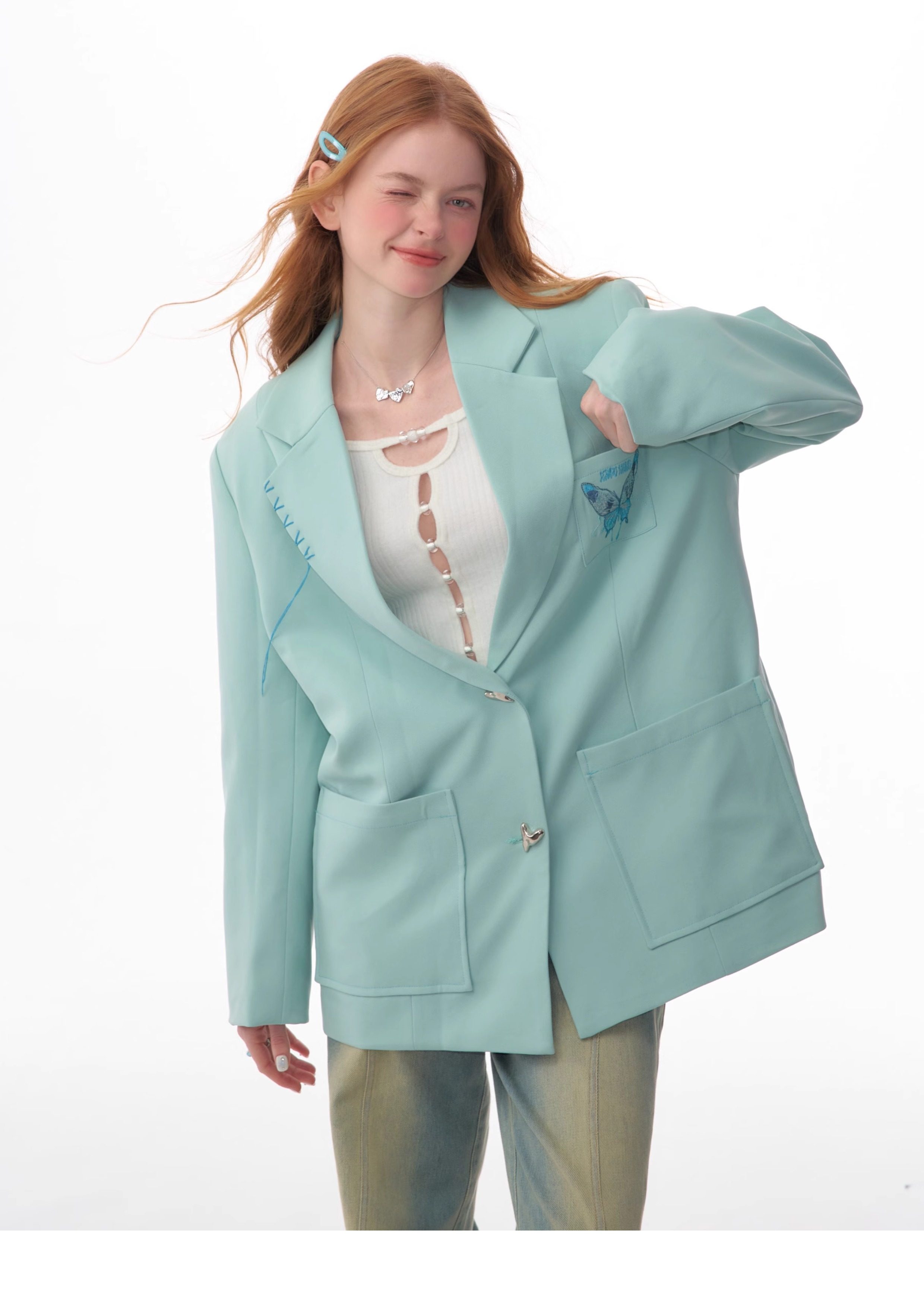 Butterfly Embroidery Oversized Suit Coat | Retro Casual Set for Spring/Autumn