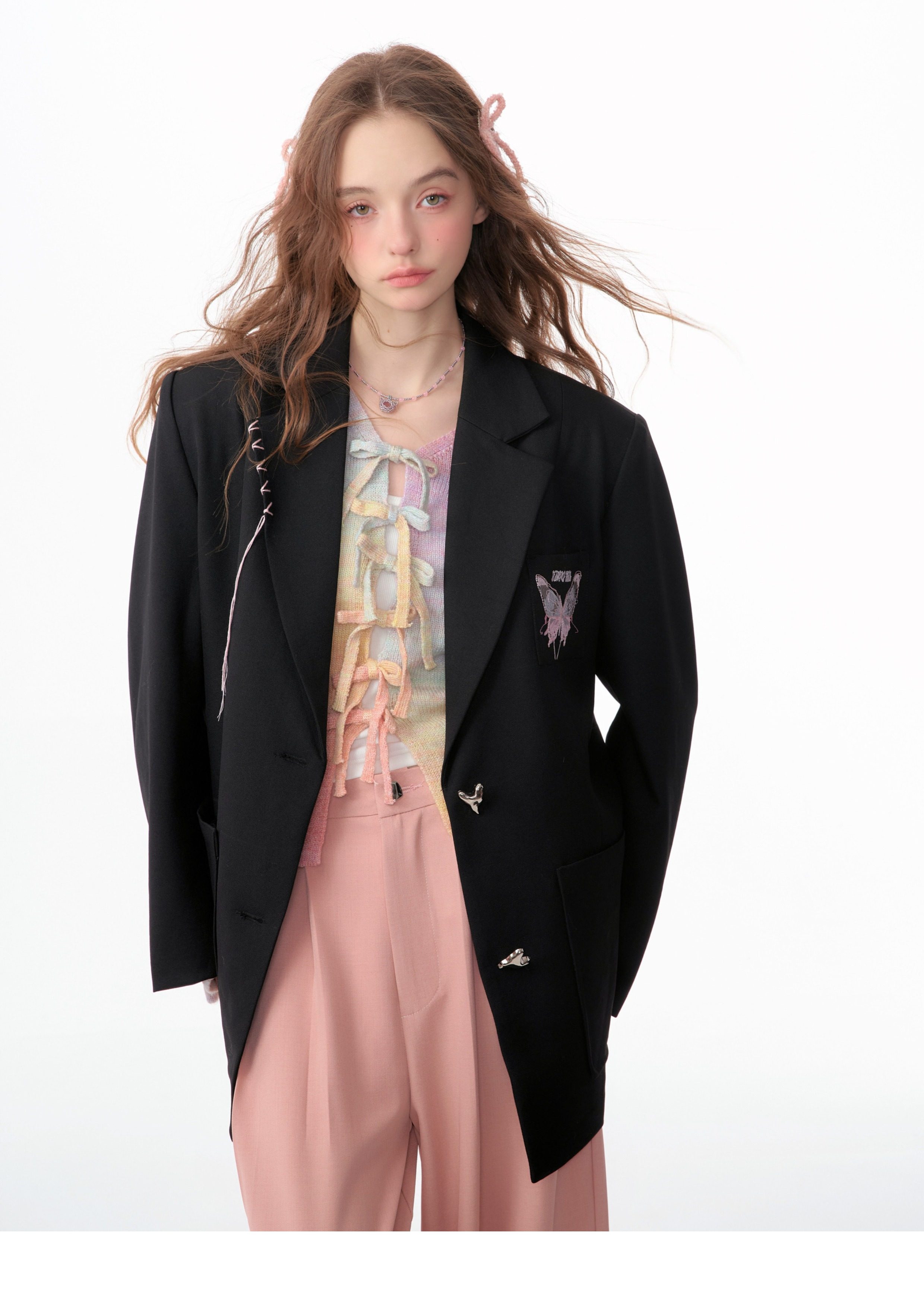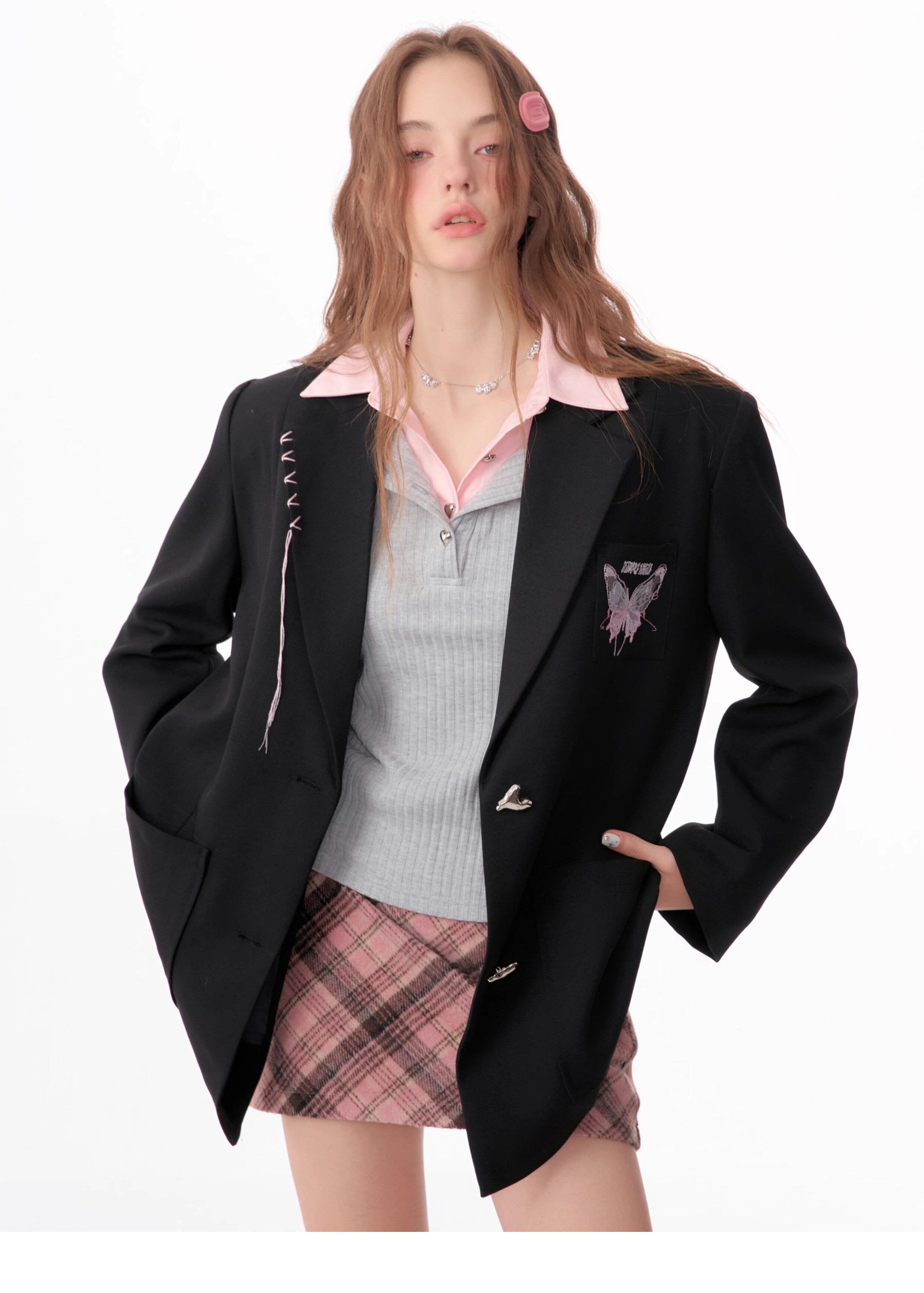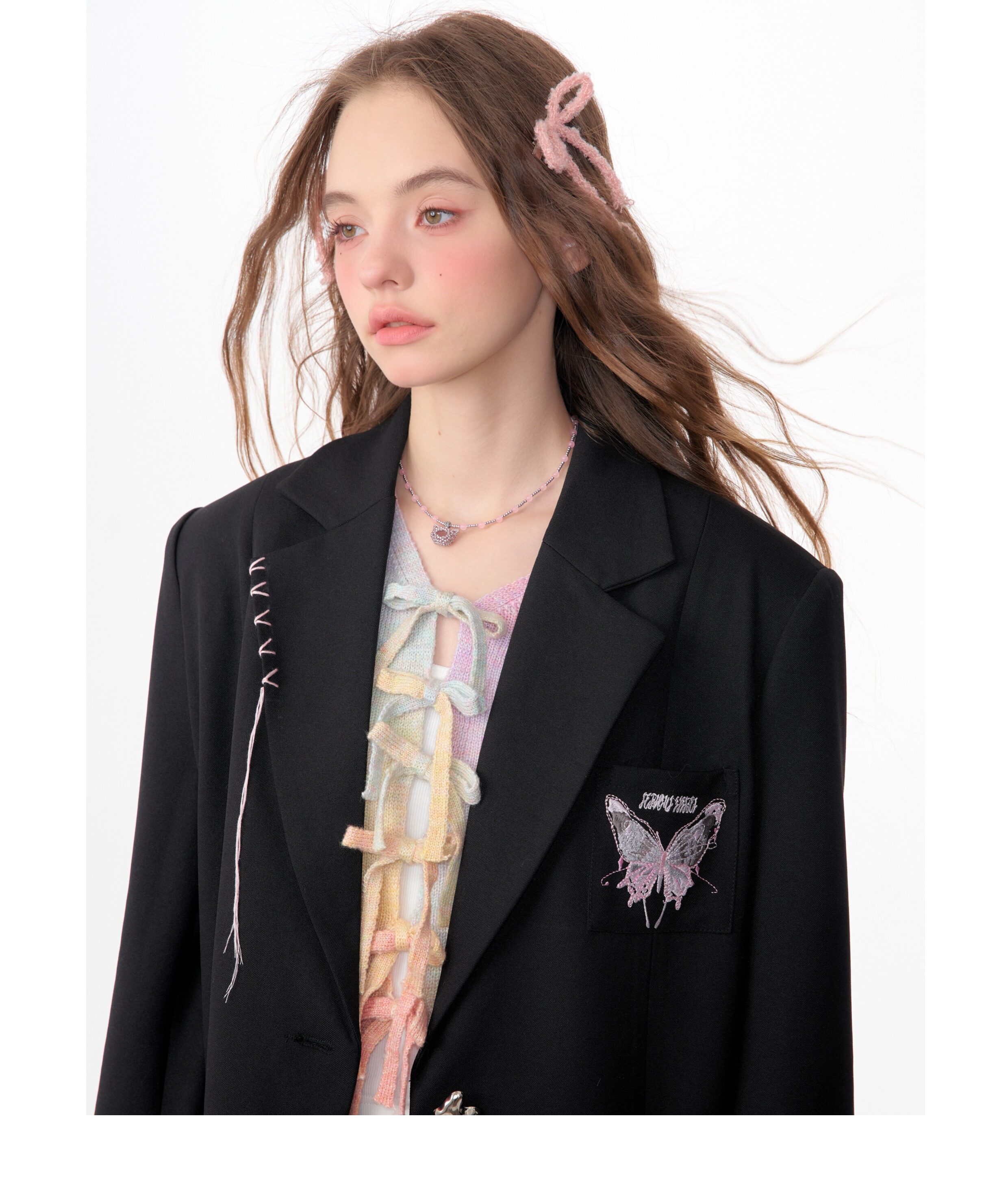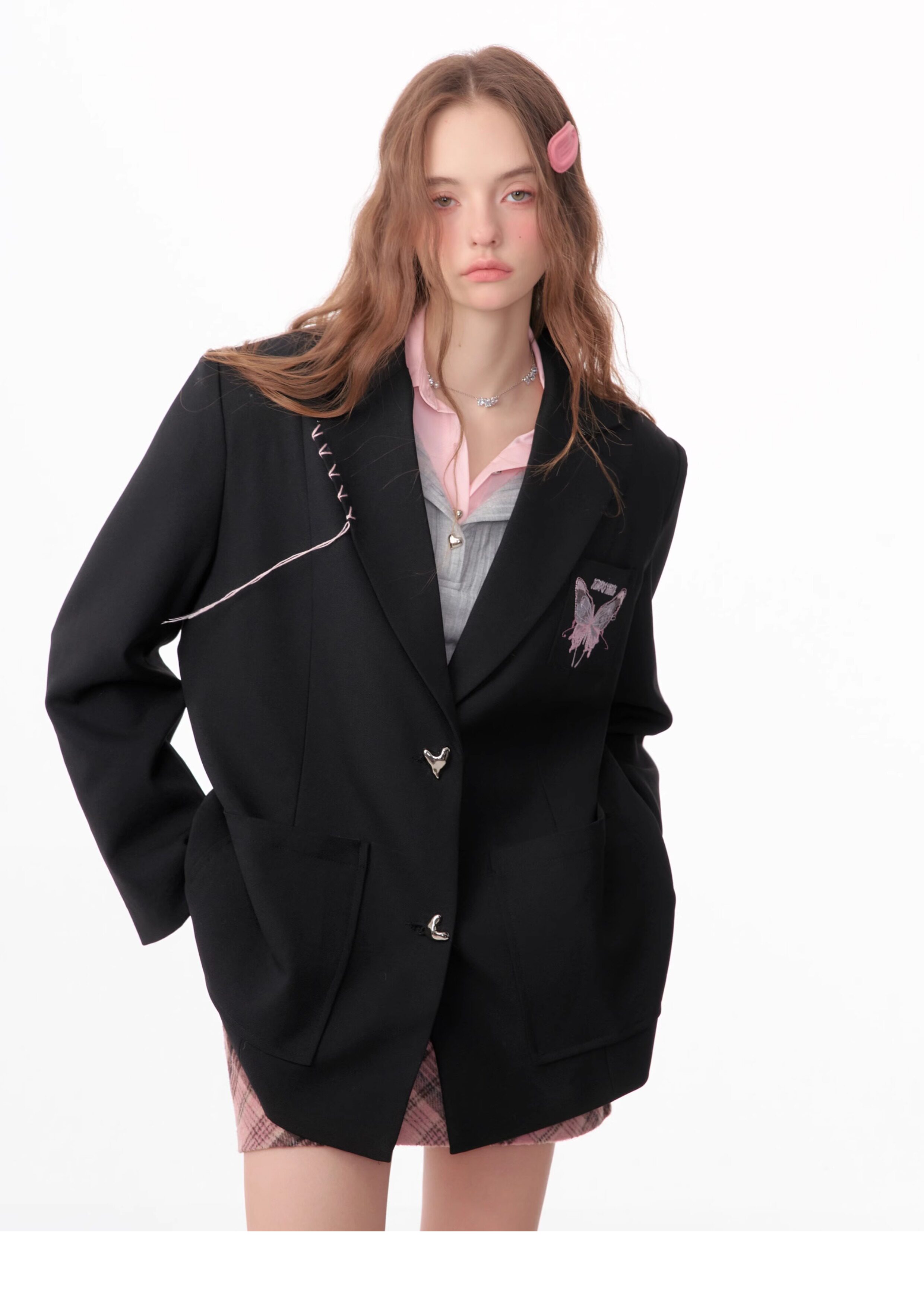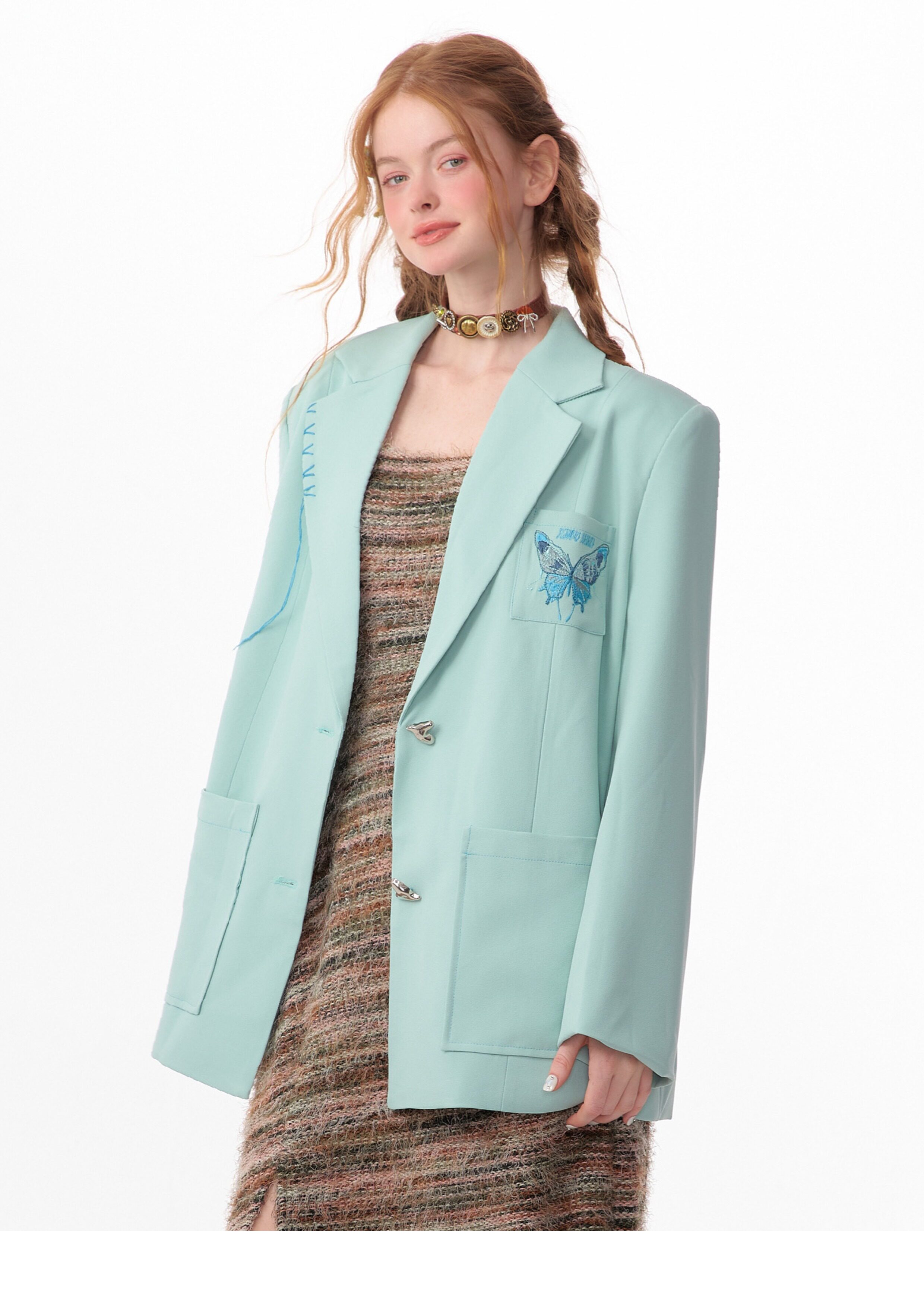 Butterfly Embroidery Oversized Suit Coat | Retro Casual Set for Spring/Autumn