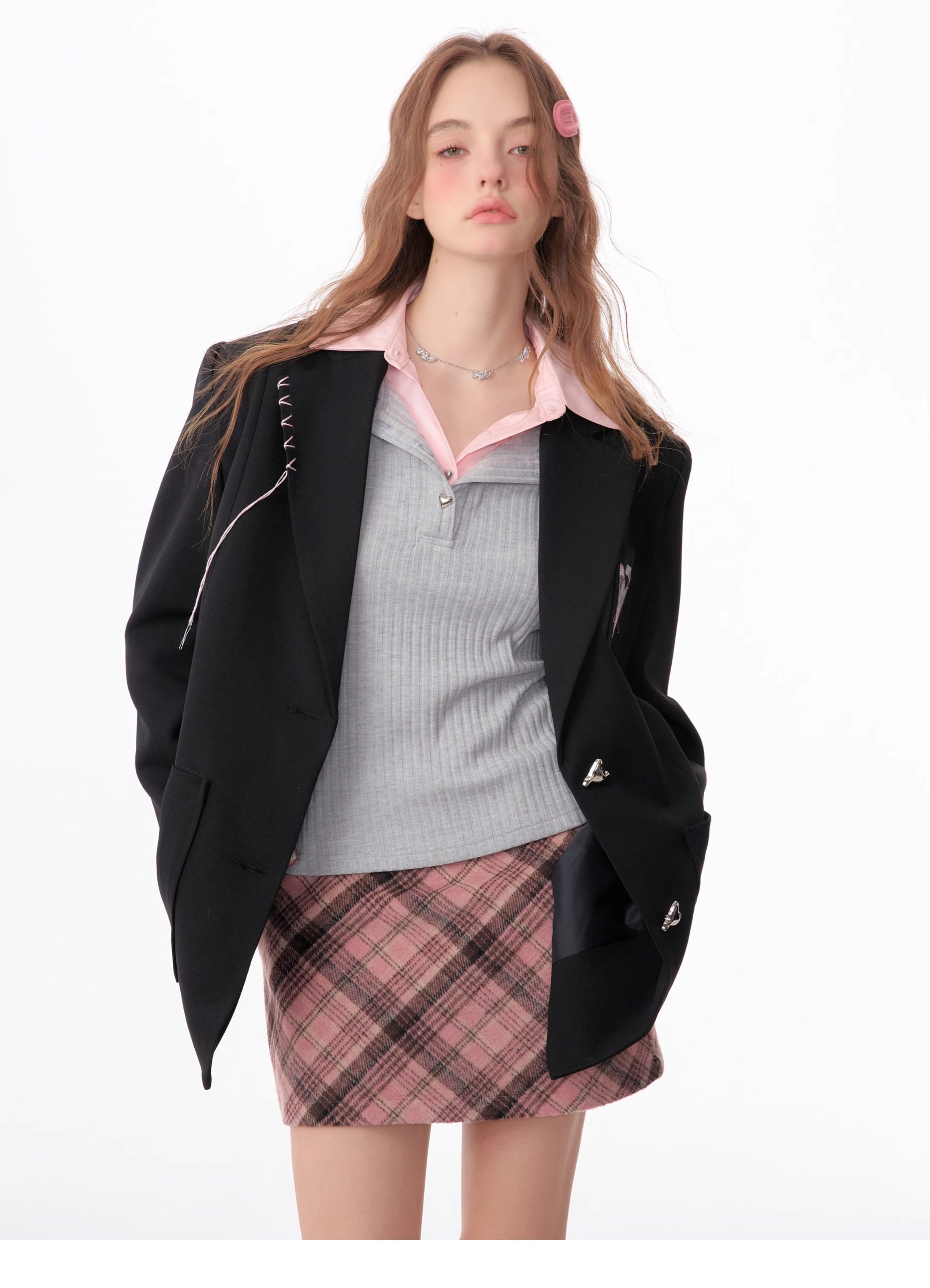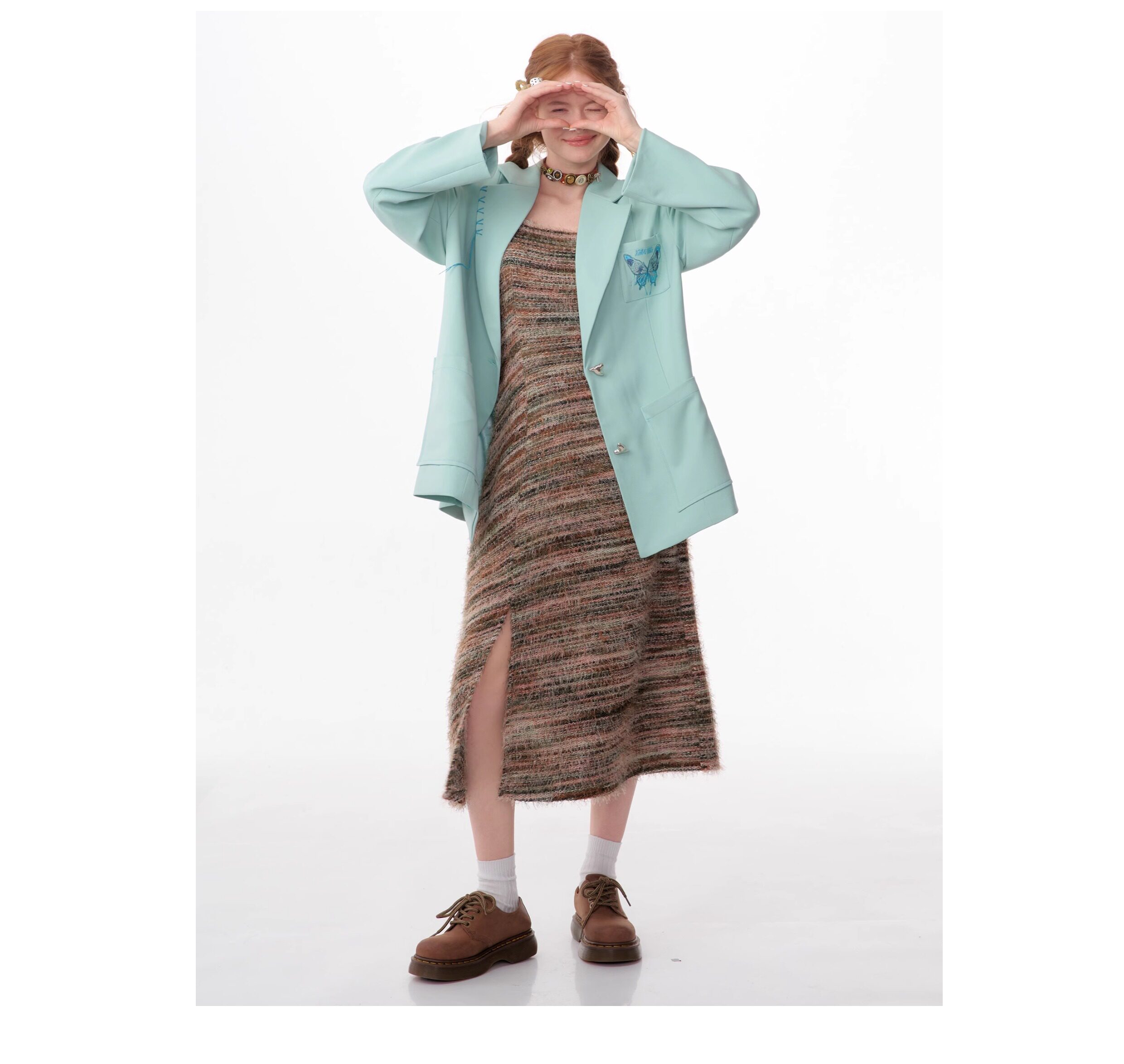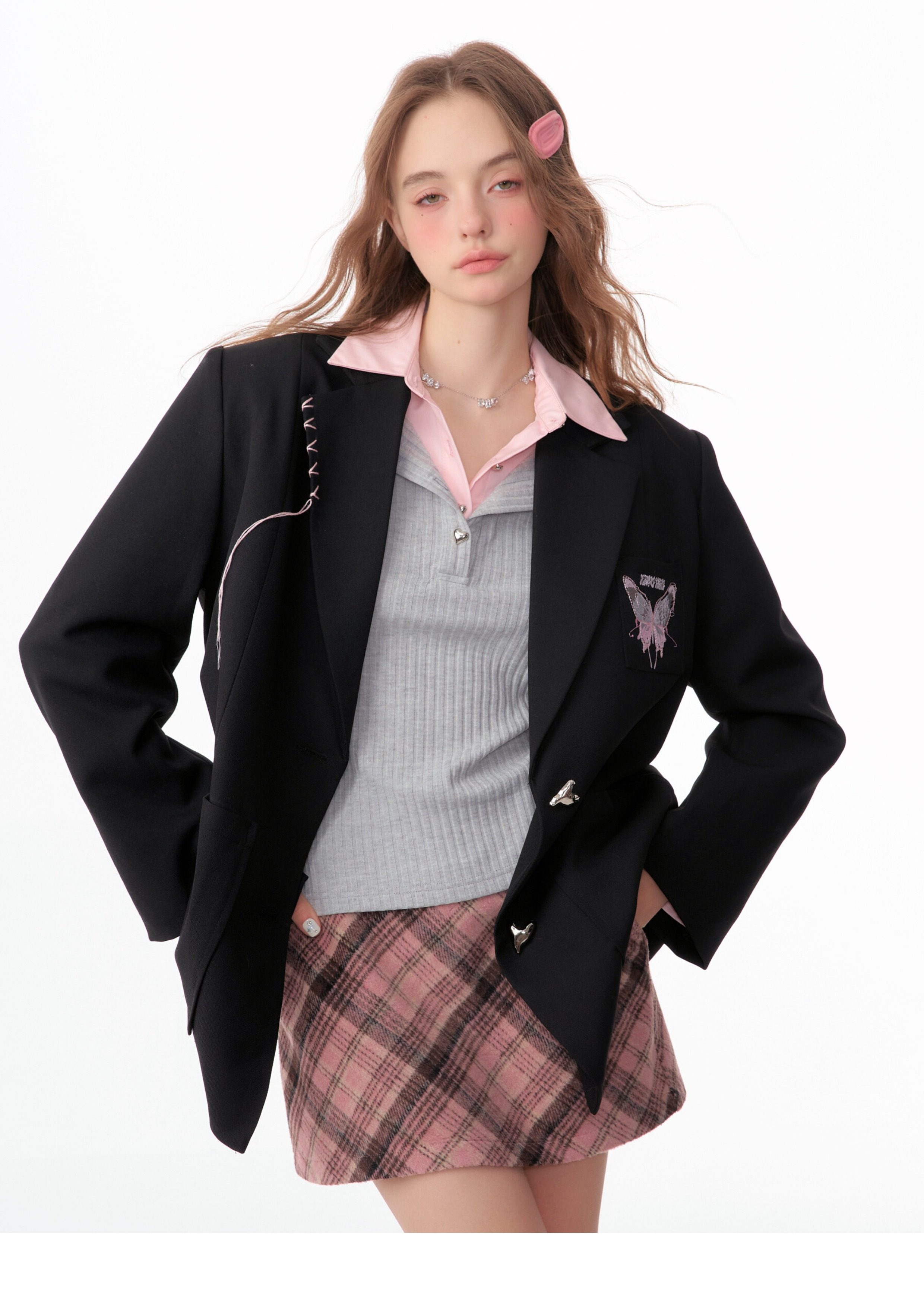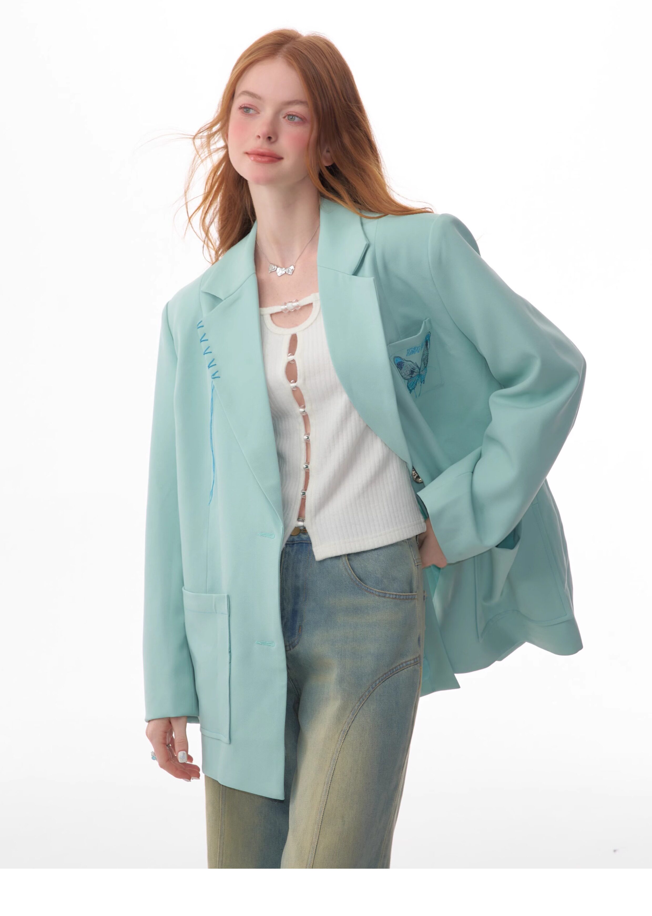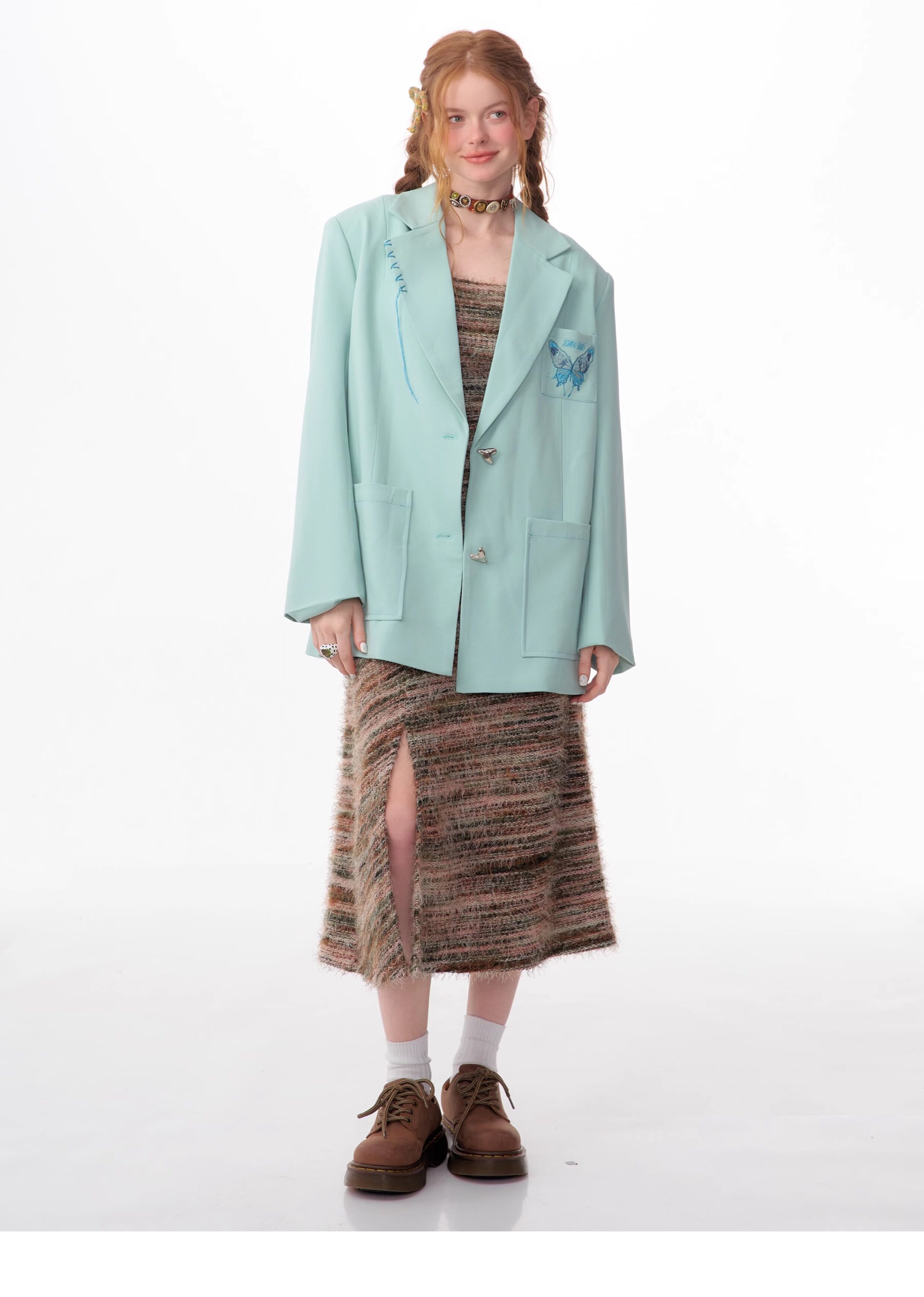 Butterfly Embroidery Oversized Suit Coat | Retro Casual Set for Spring/Autumn