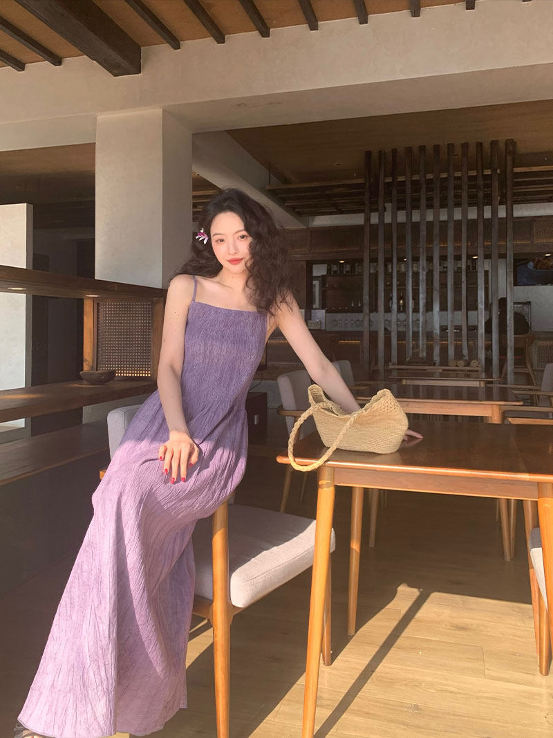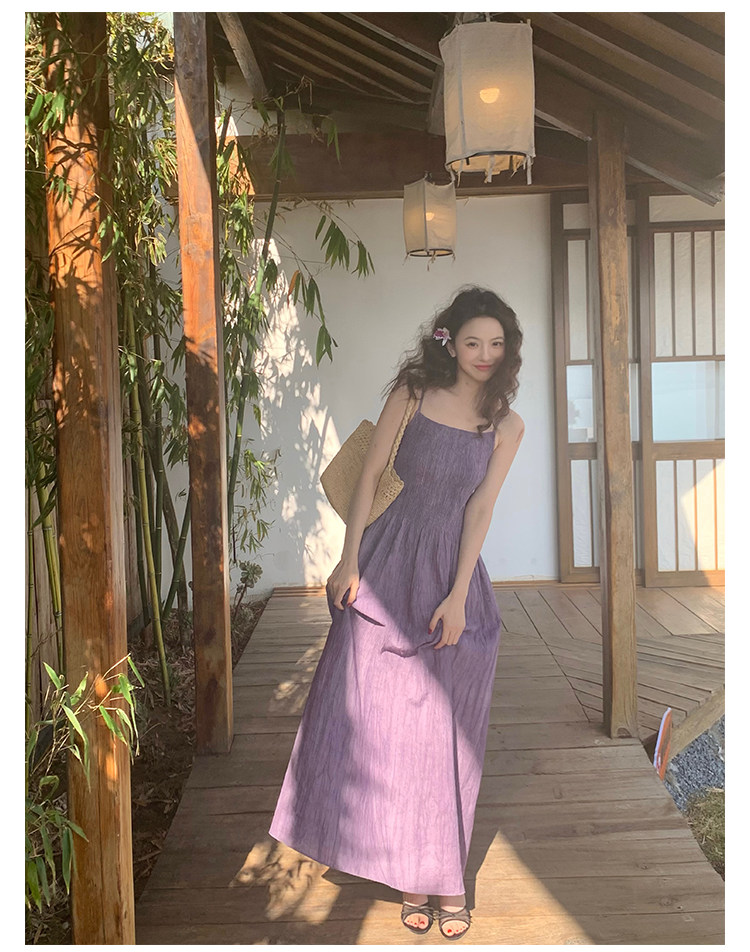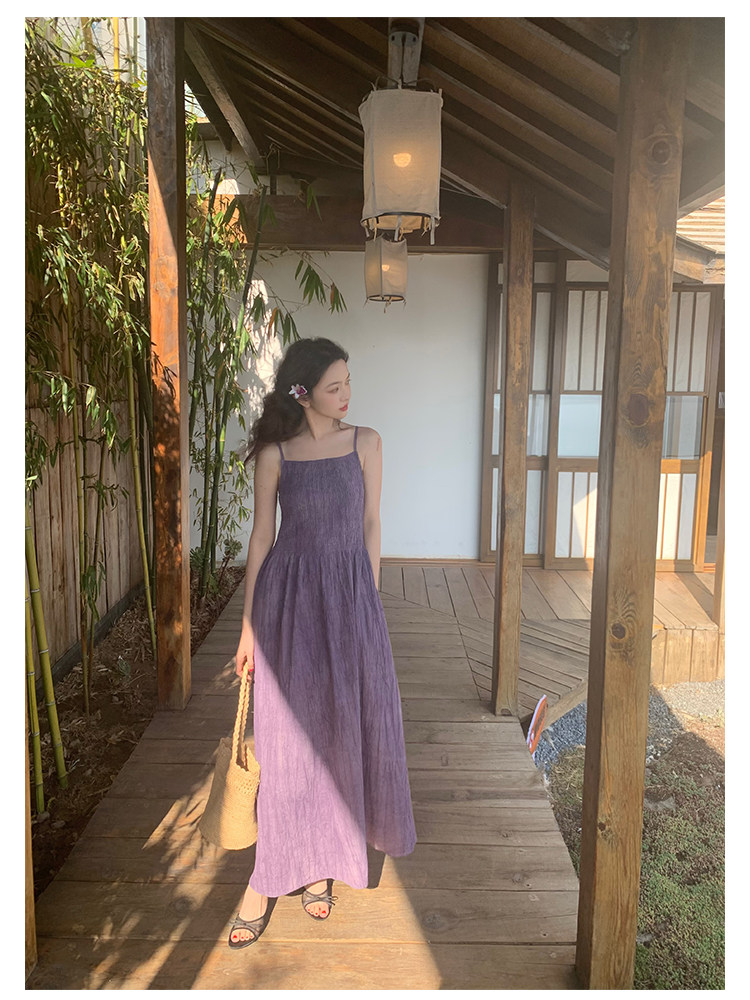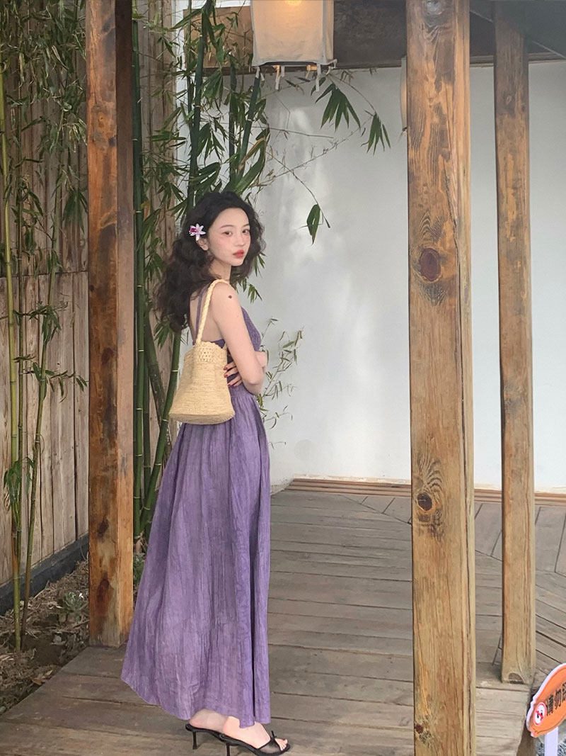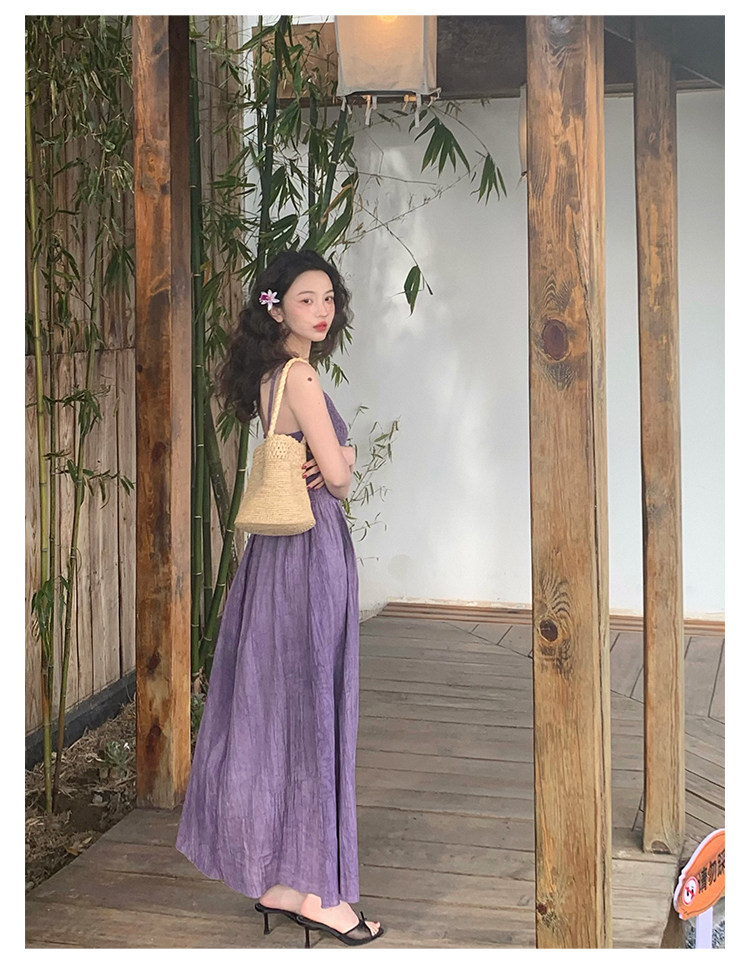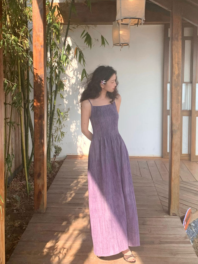 Retro Tie-Dye Slim Suspender Dress