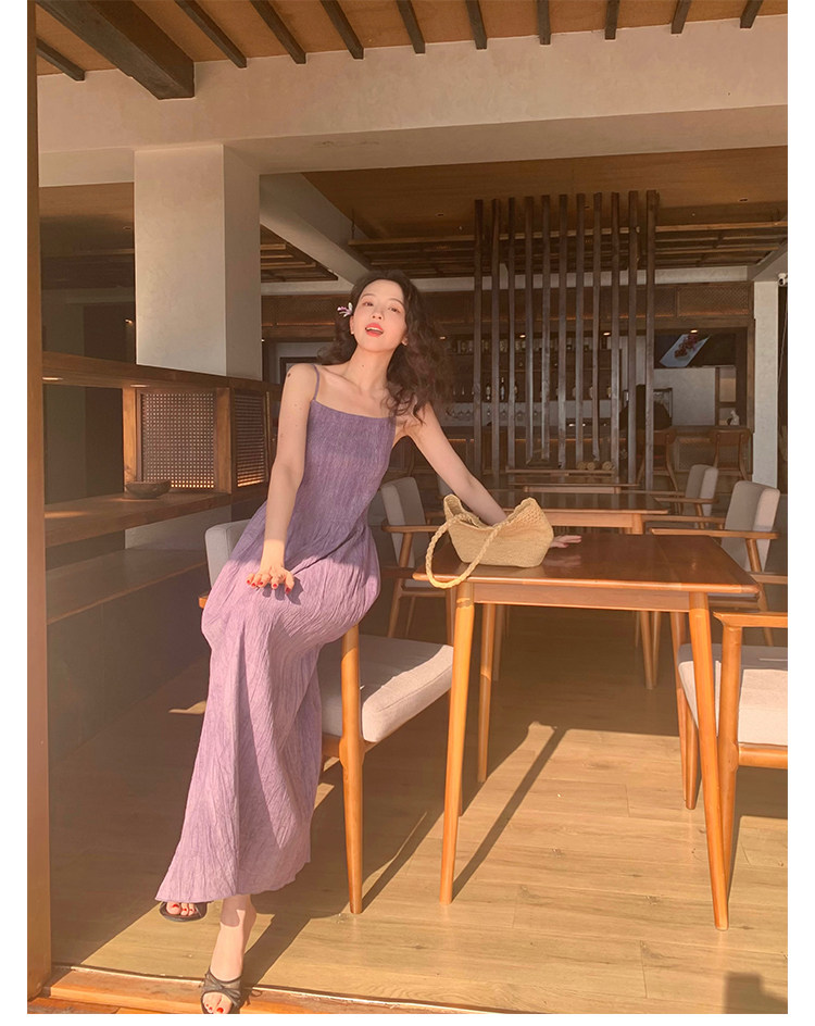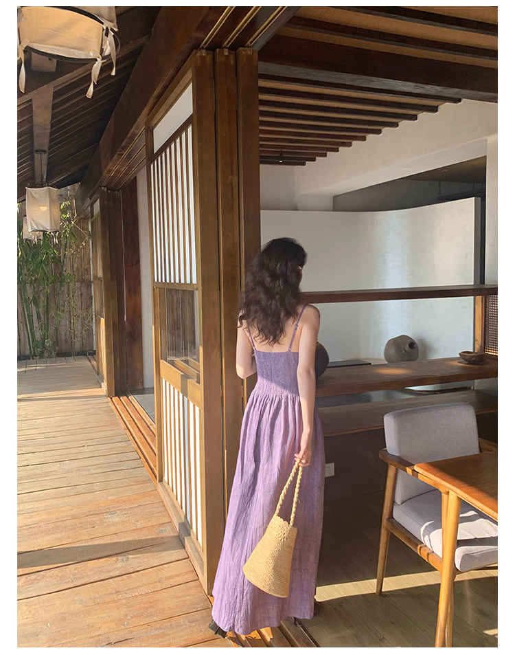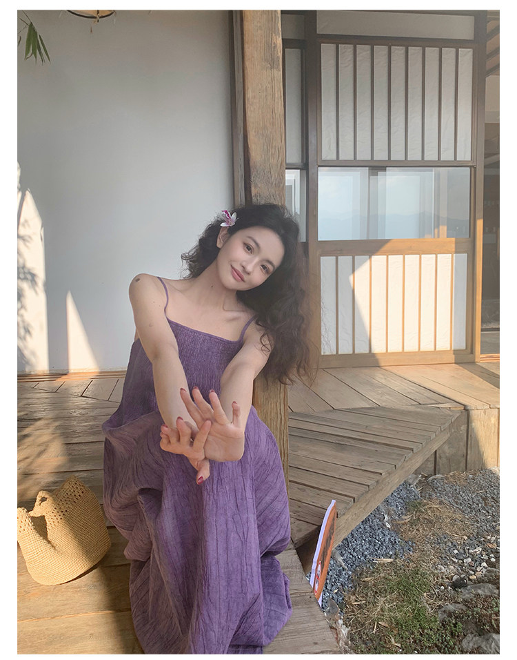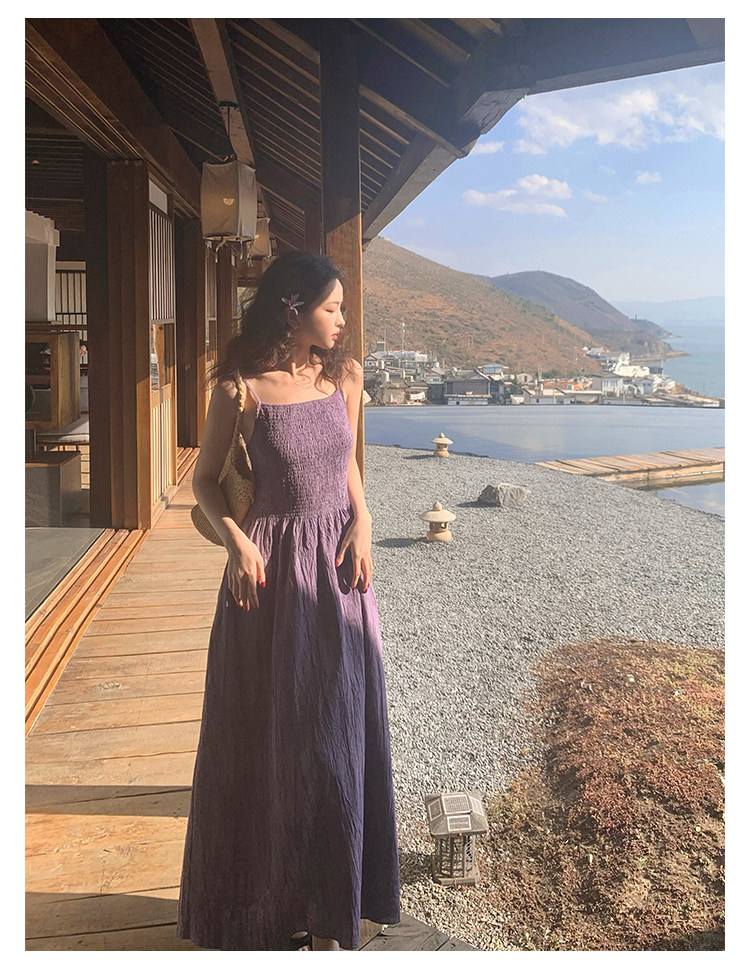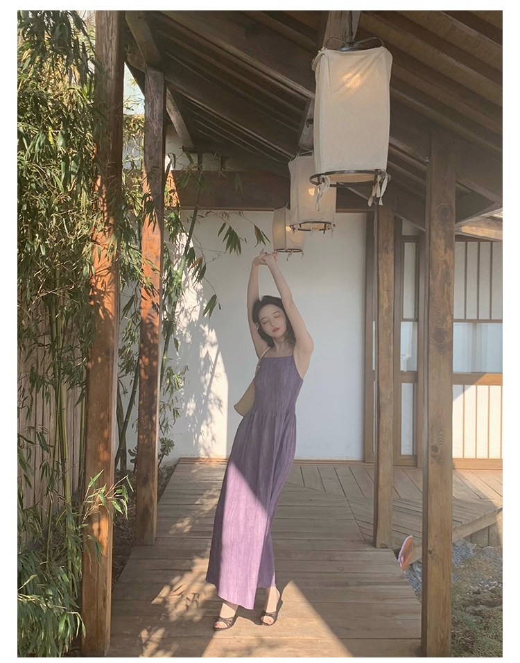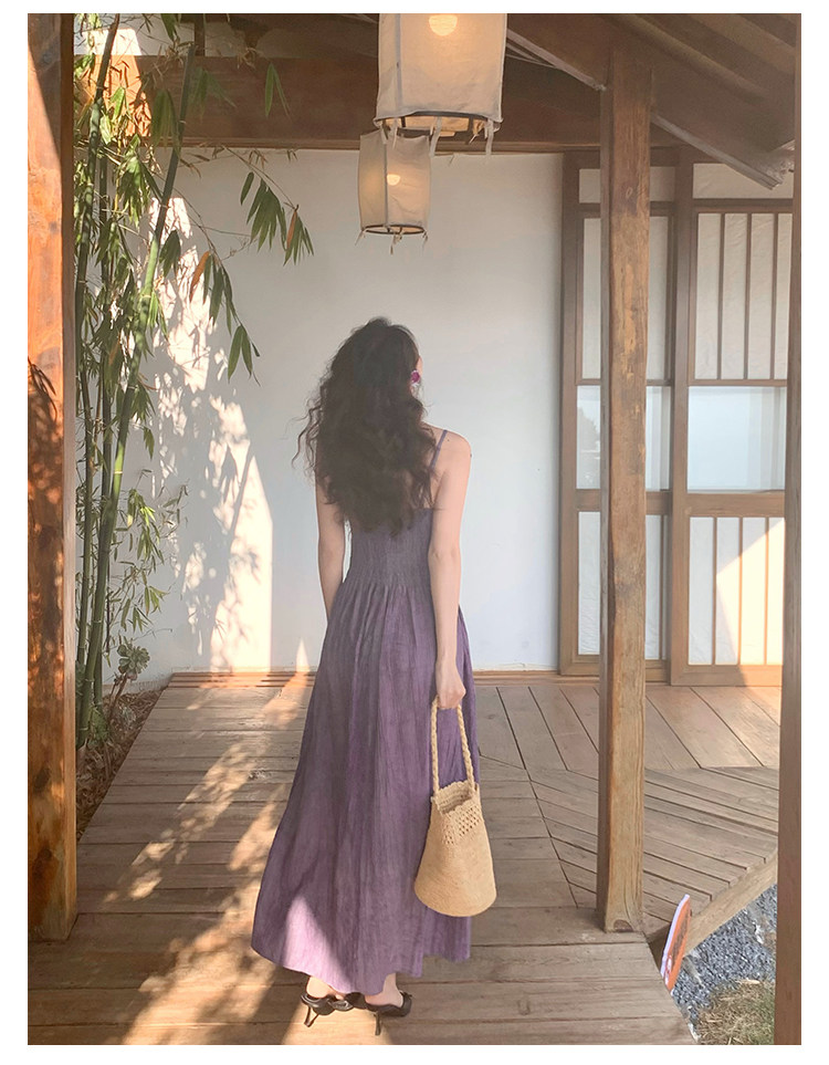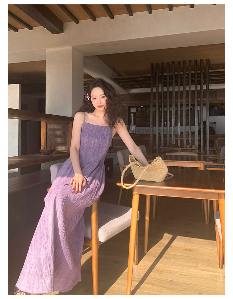 Retro Tie-Dye Slim Suspender Dress