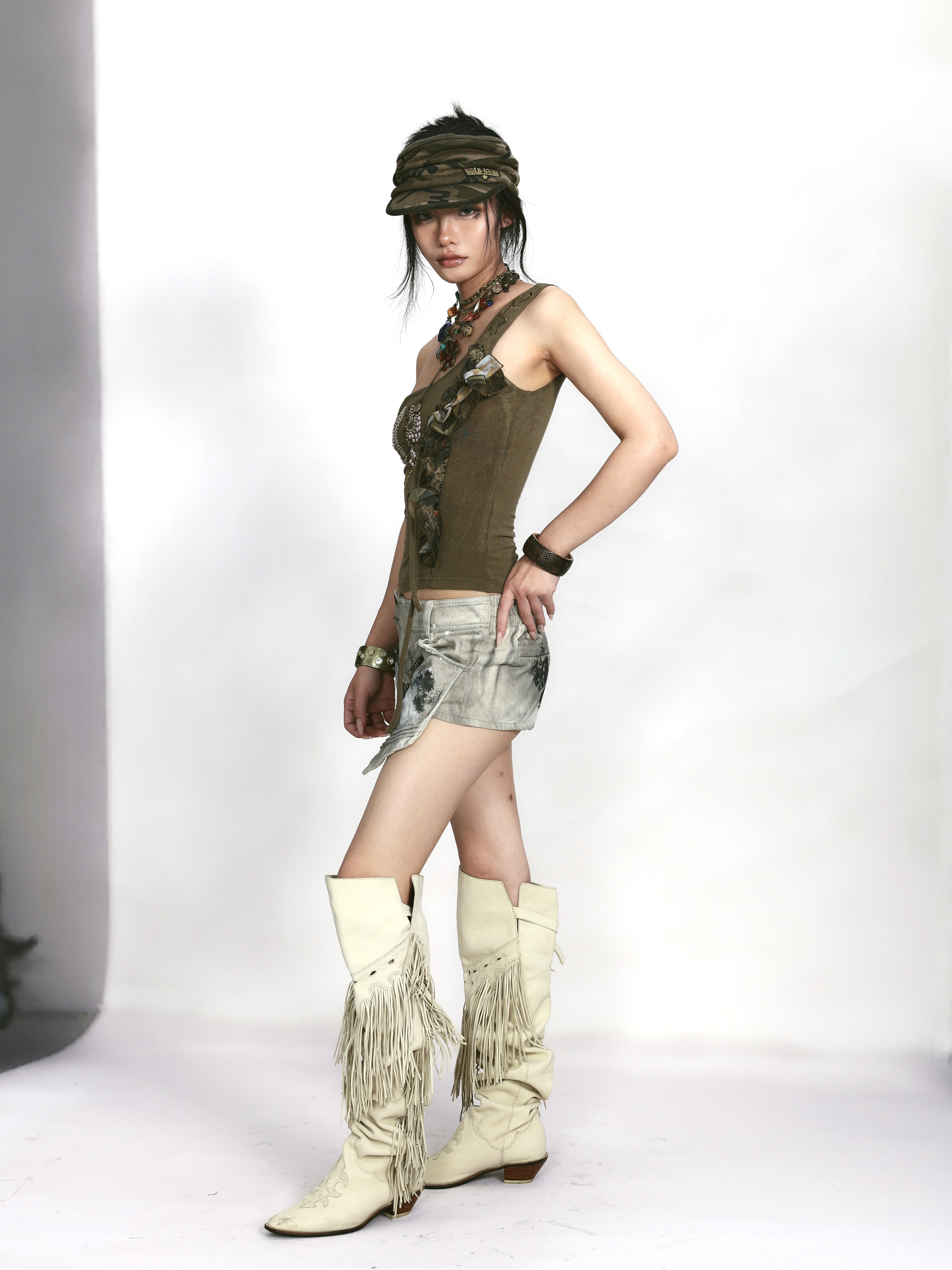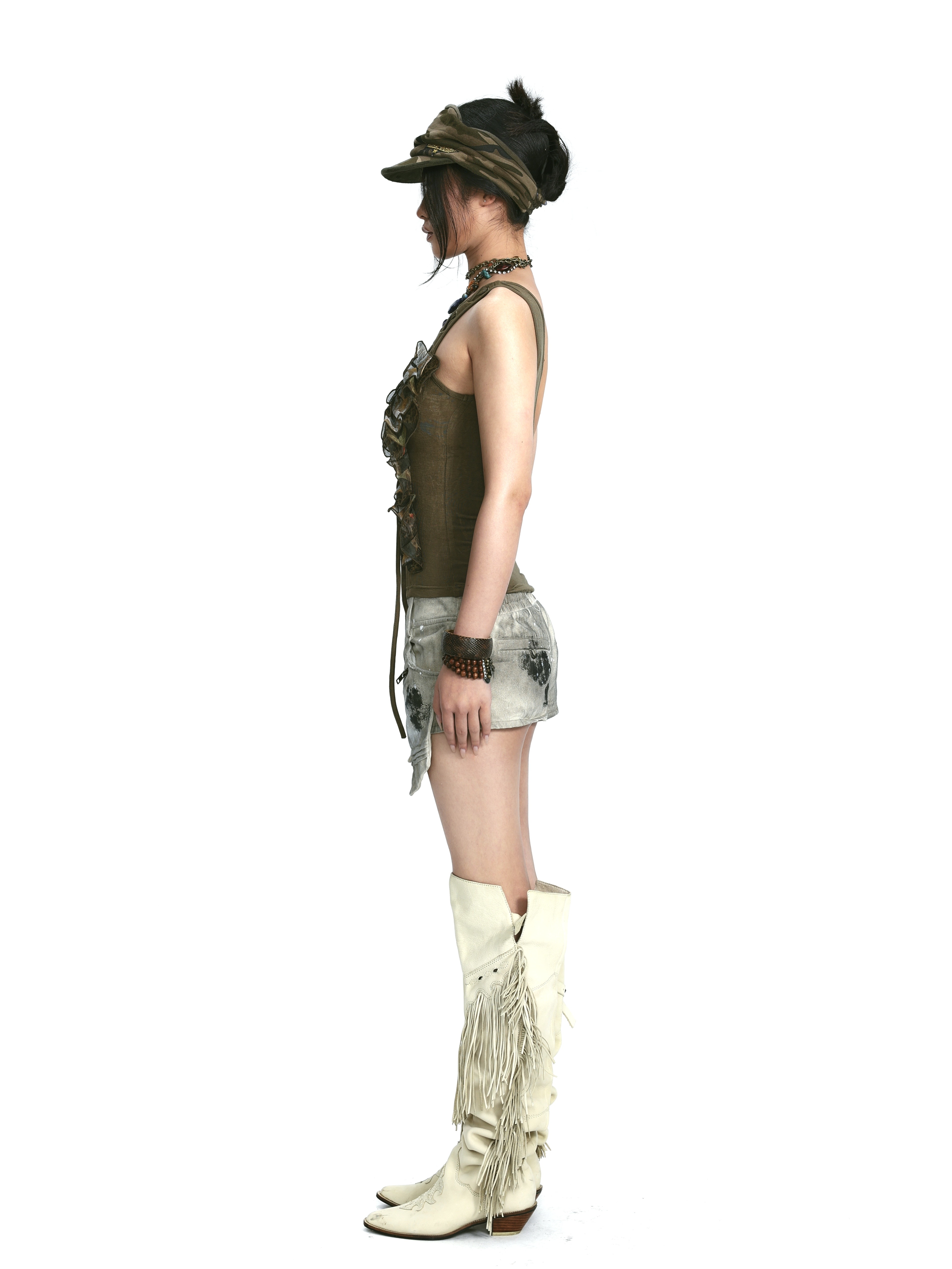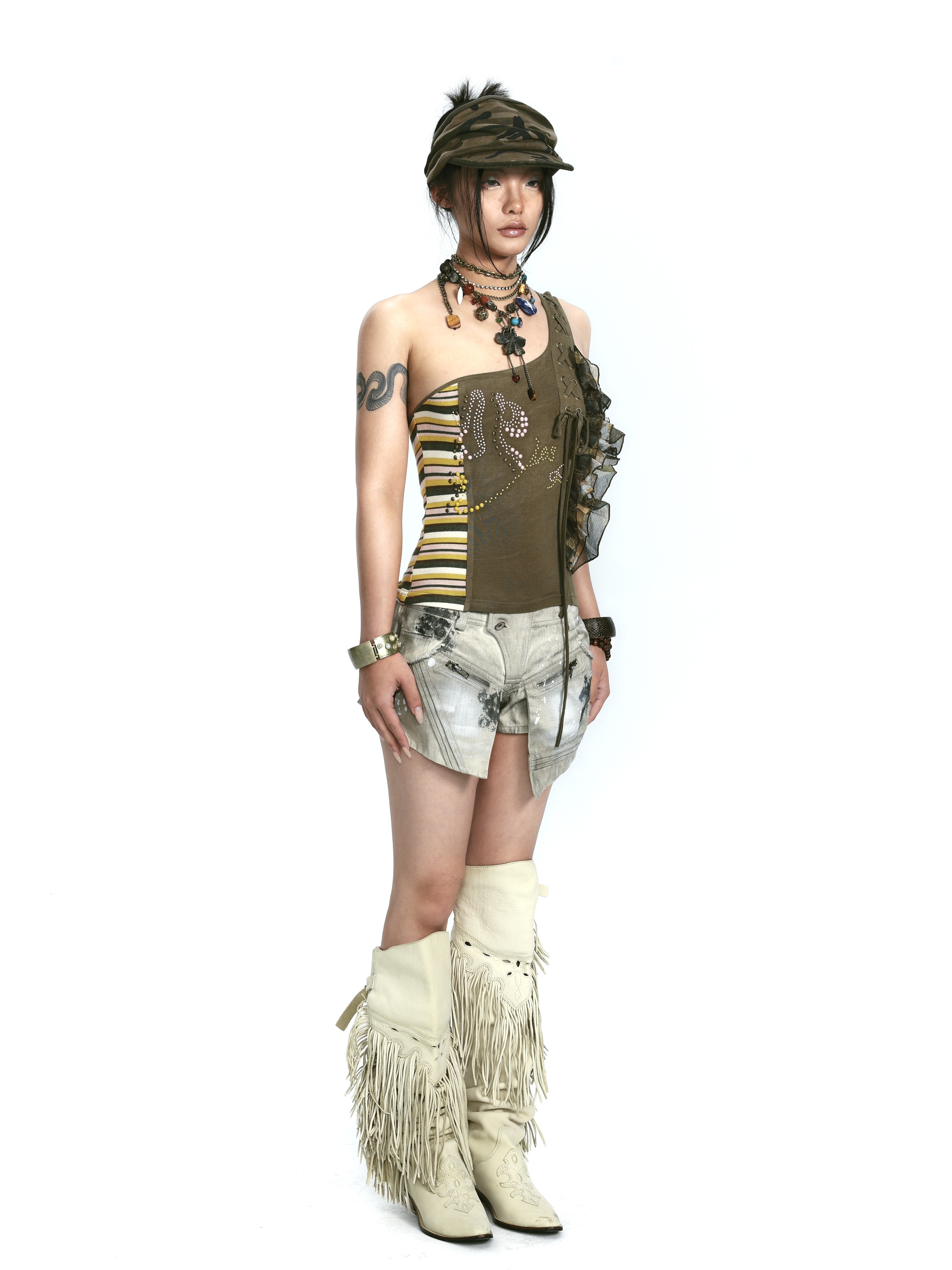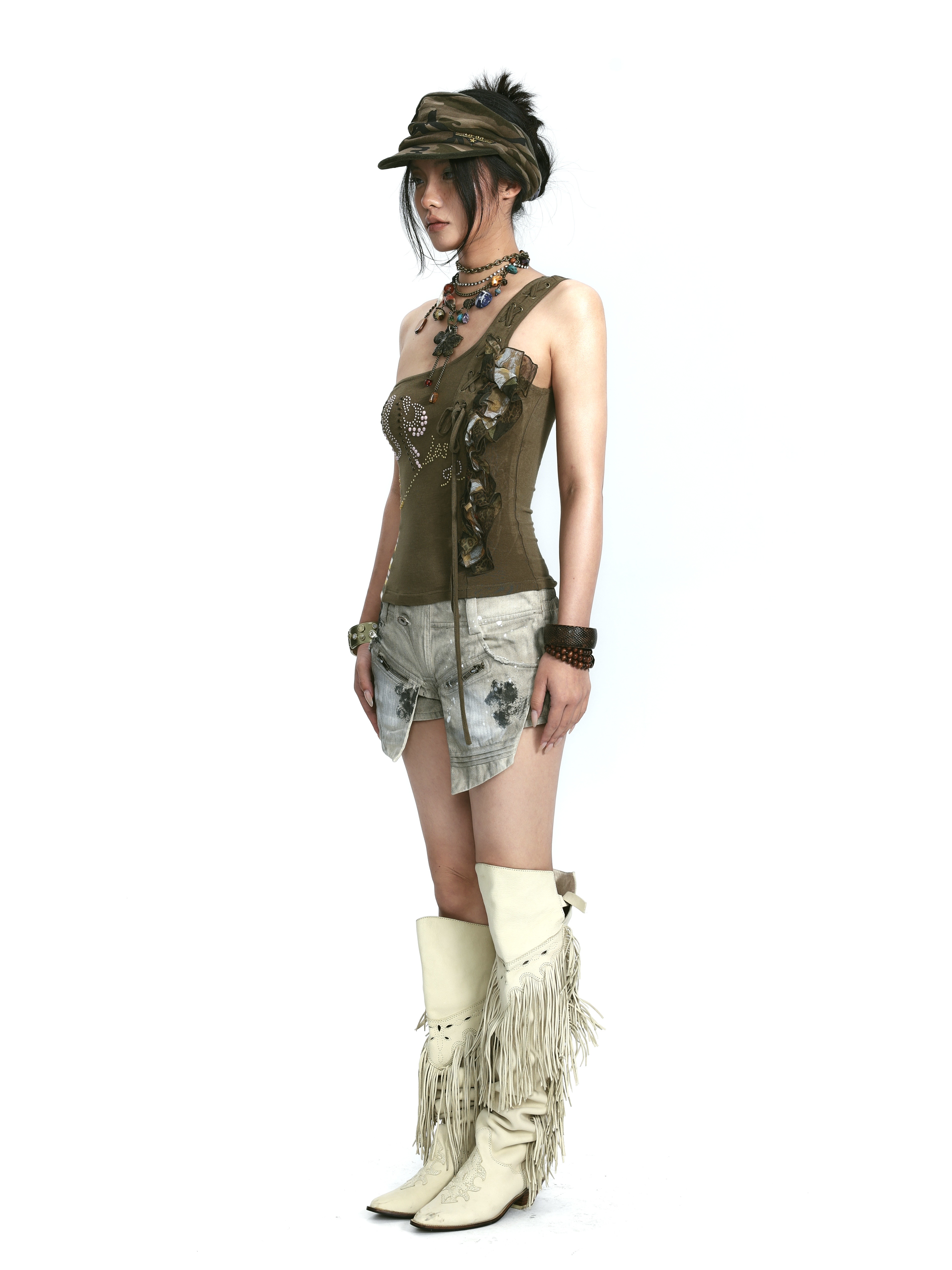 Diamond-Pattern One-Shoulder Cami – Lace Gauze Texture