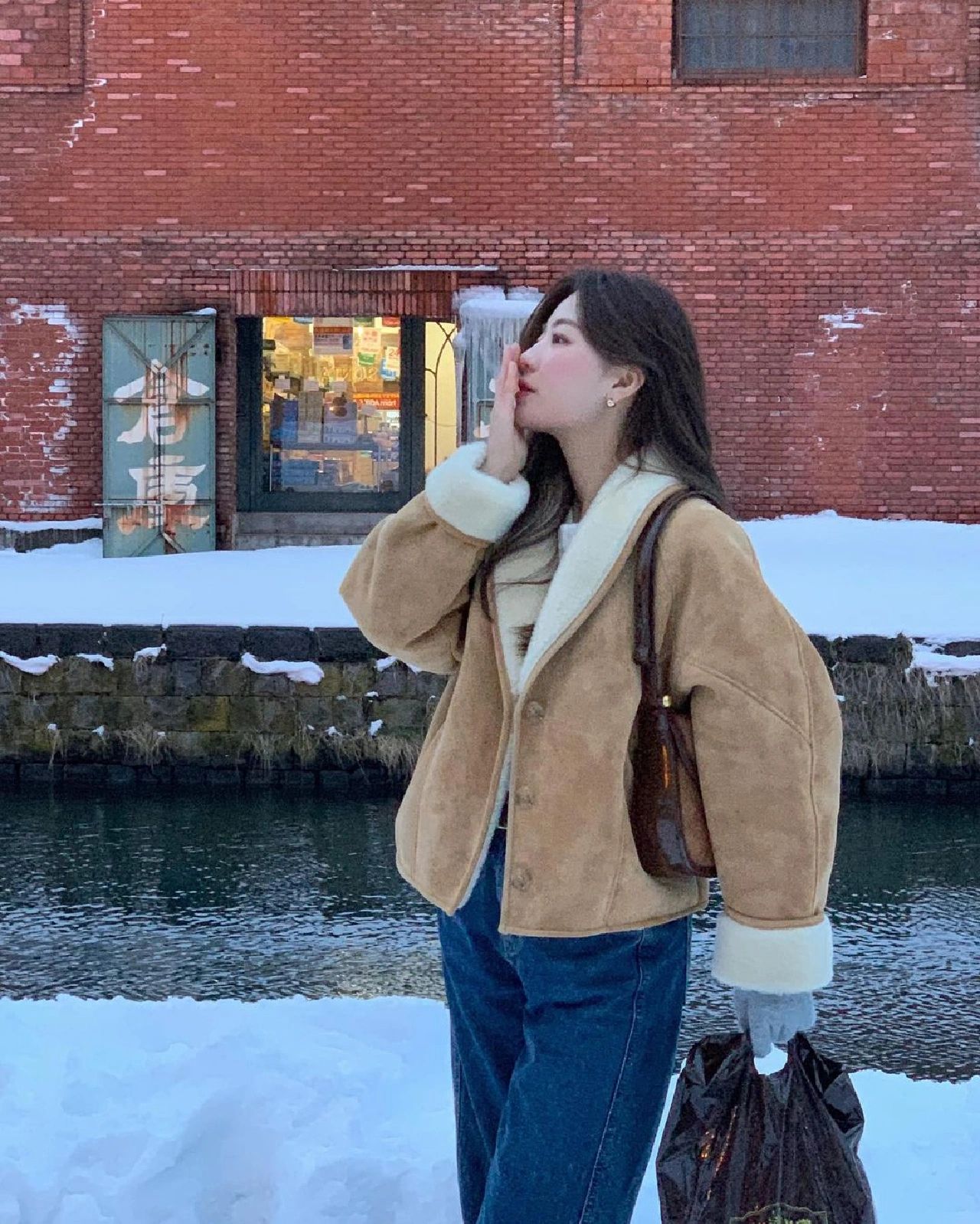 Suede Lambswool Biker Jacket – Short Fur-Lined Statement Piece