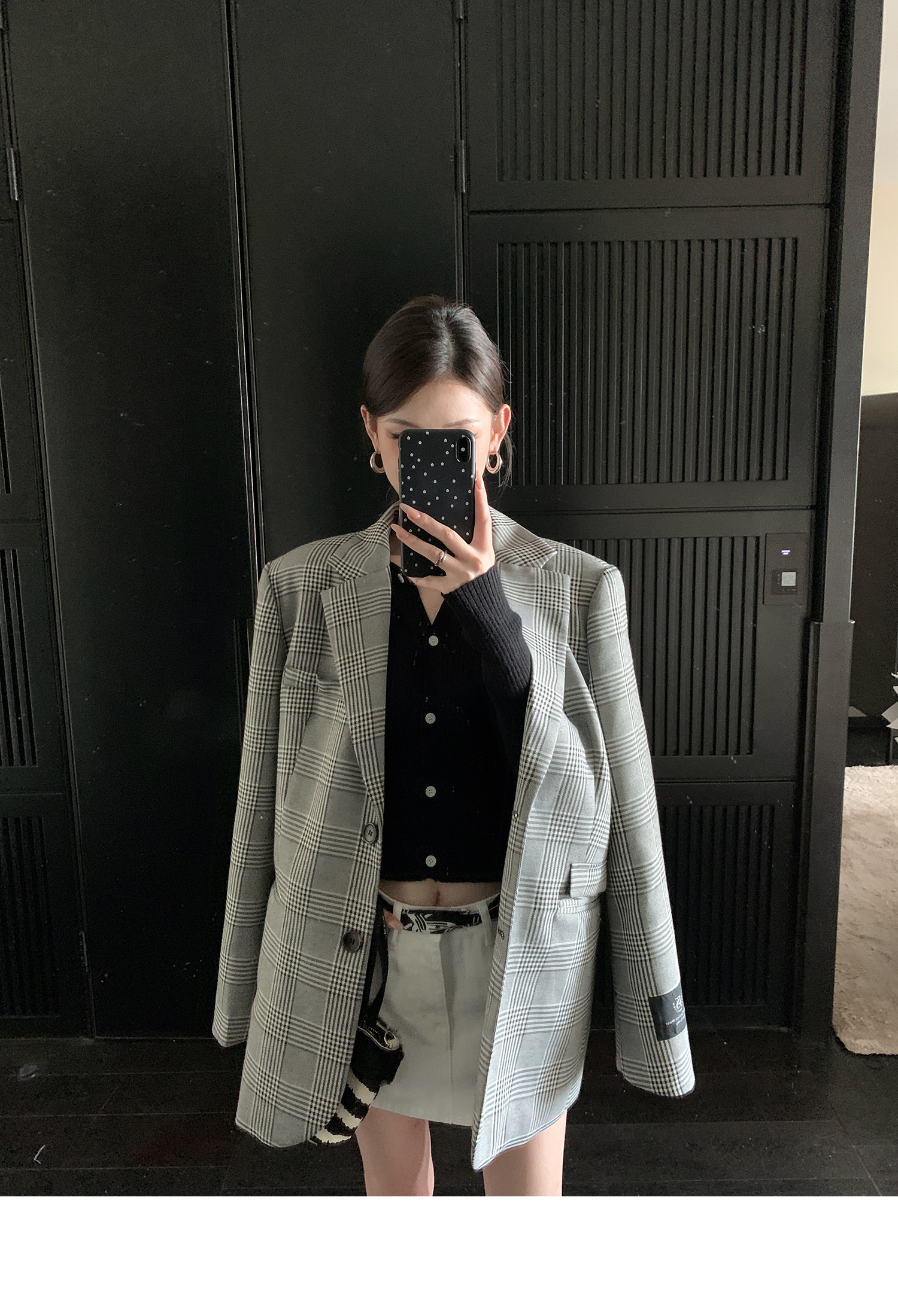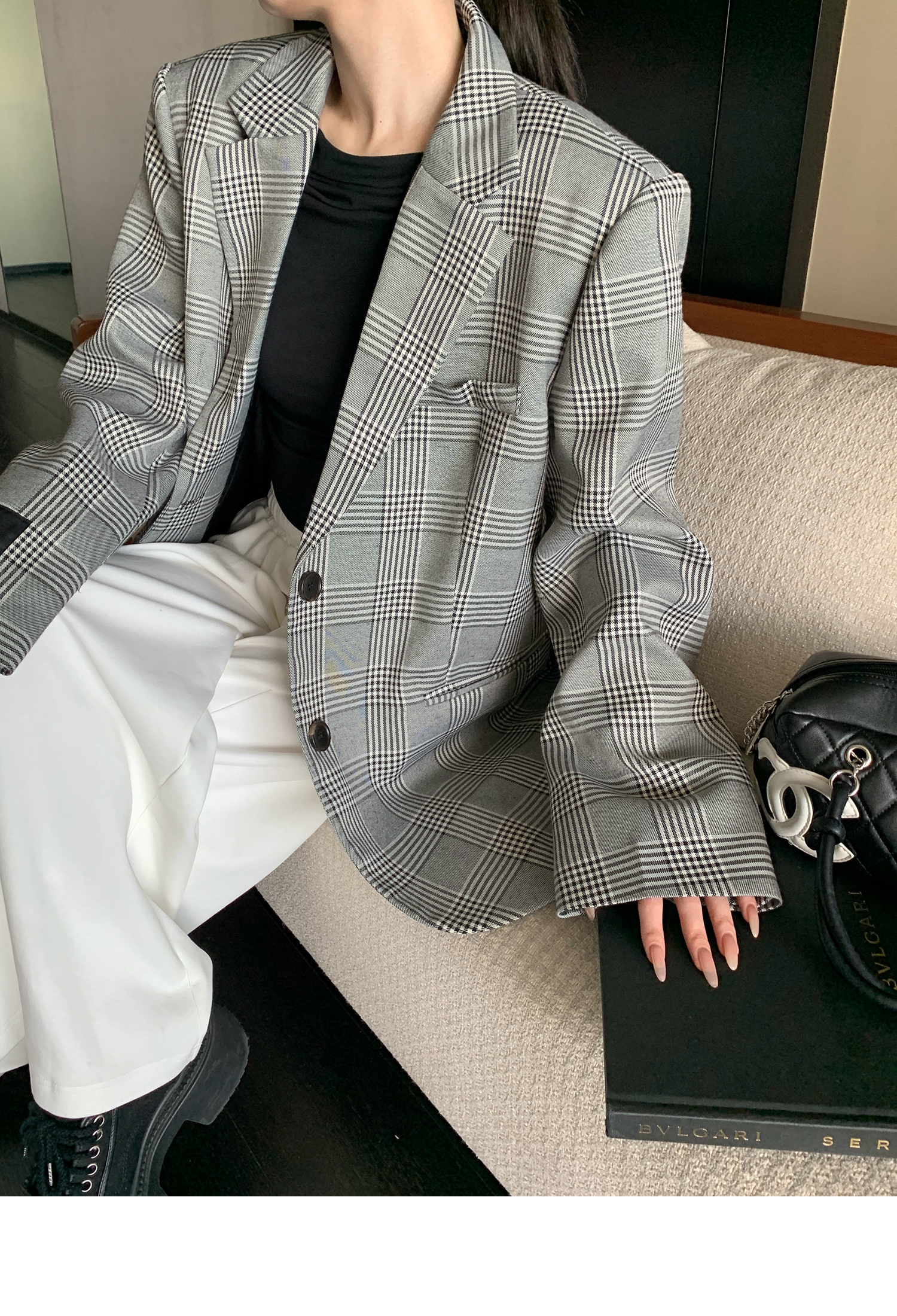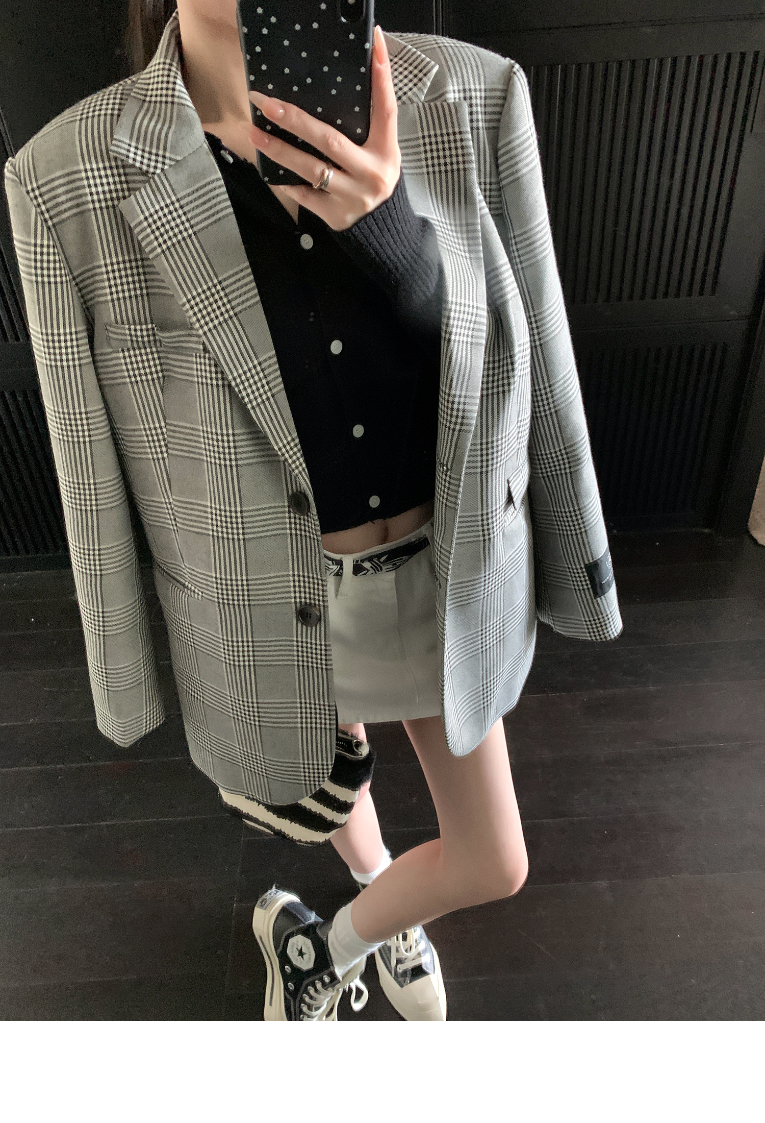 [Suit Mob] Old Money Grey Grid Suit Coat - Autumn Classic Style
