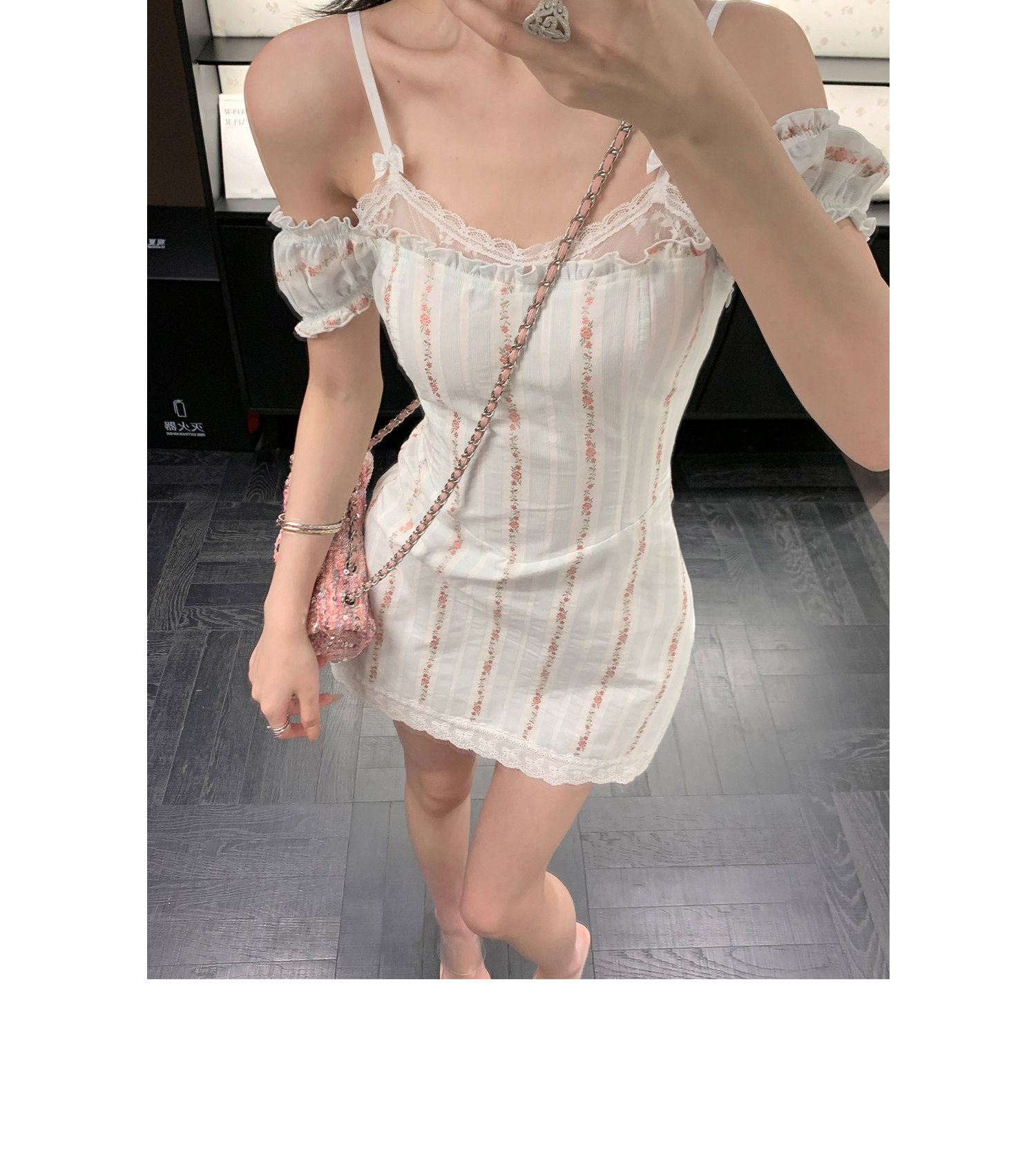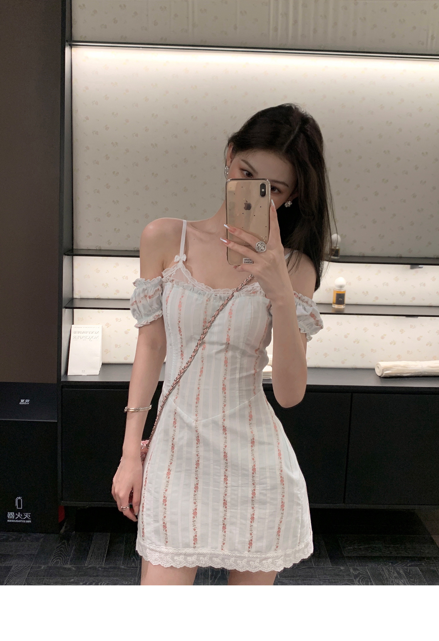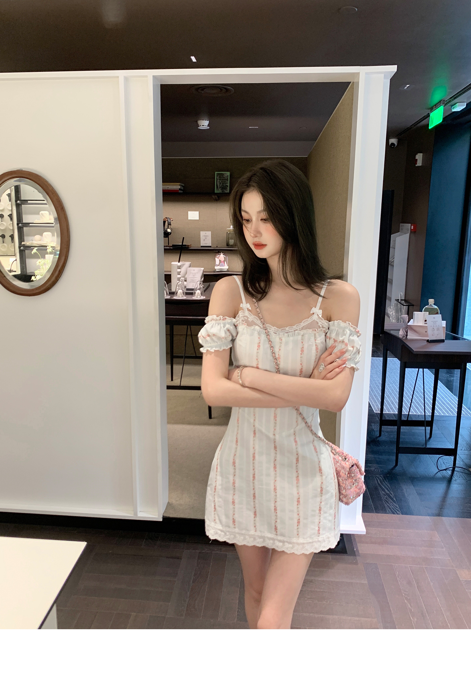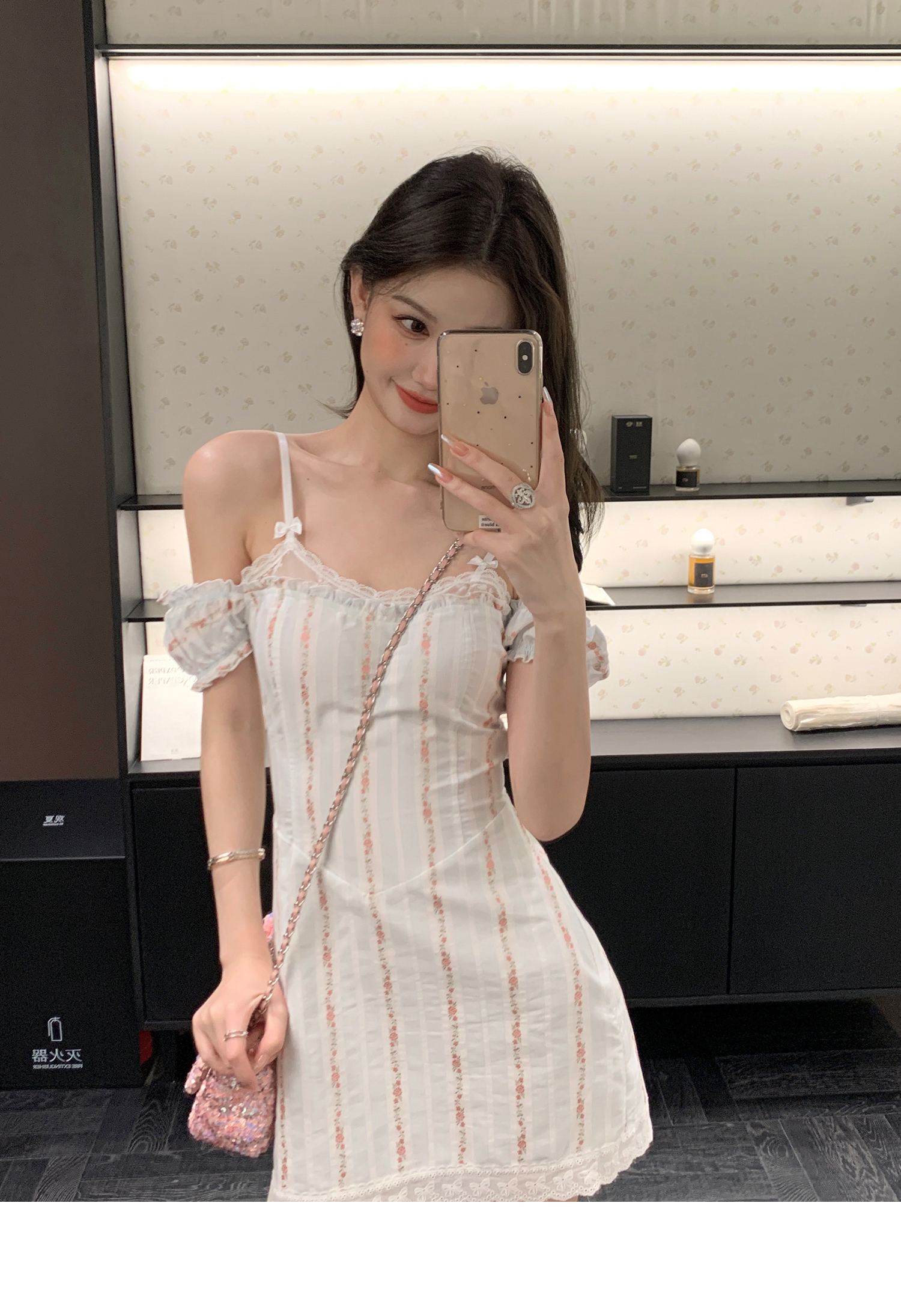 Tea Talk Sweetheart Lace & Floral Strap Dress - Summer Bubble Sleeve Style