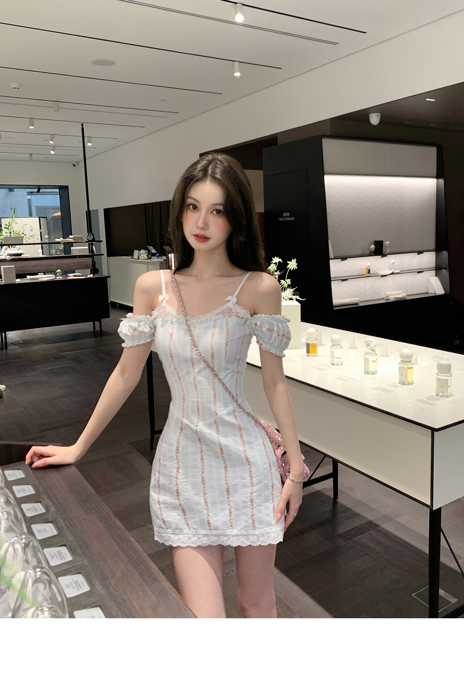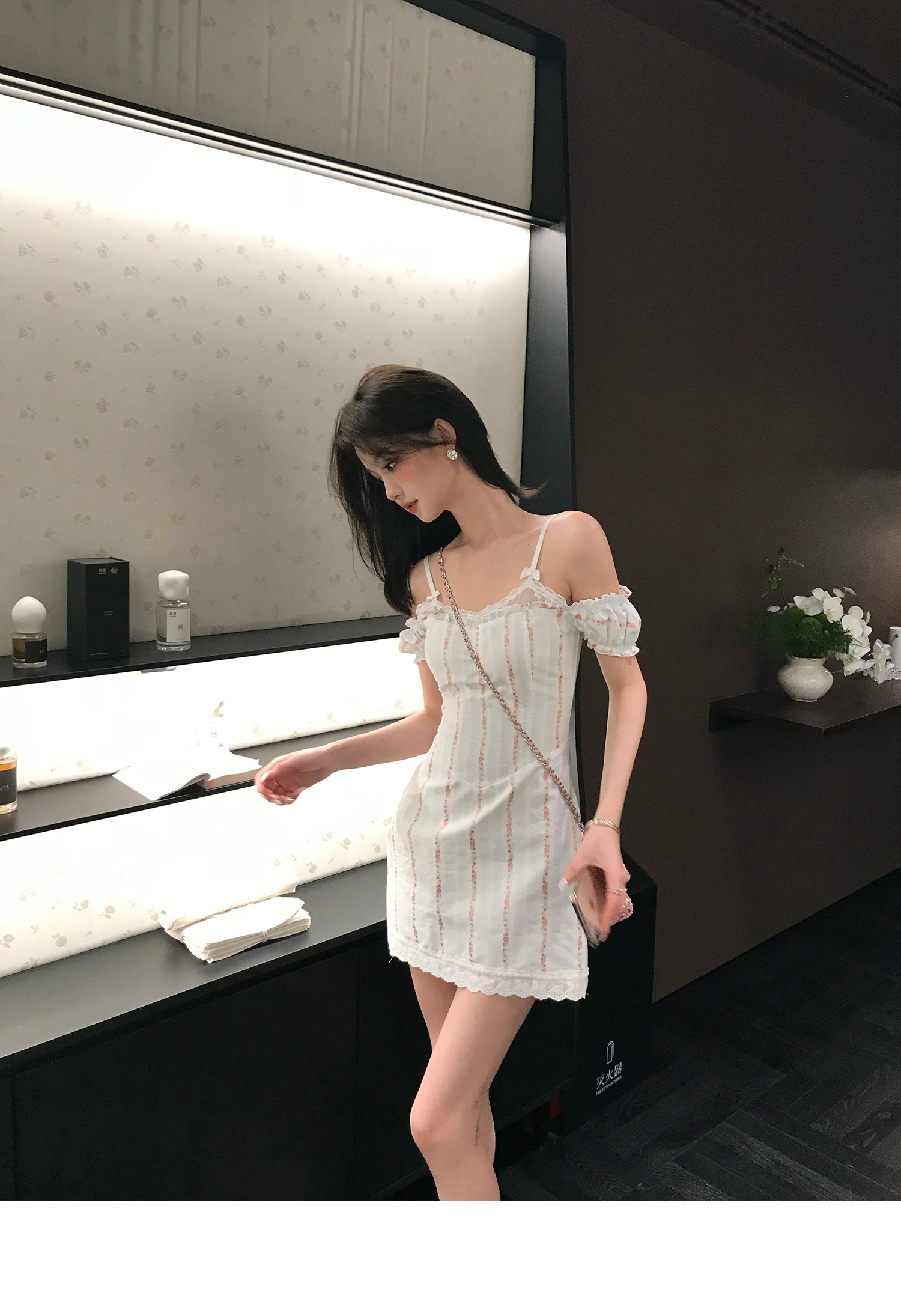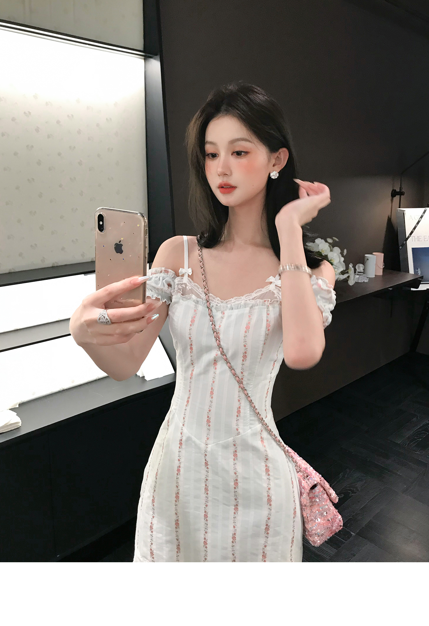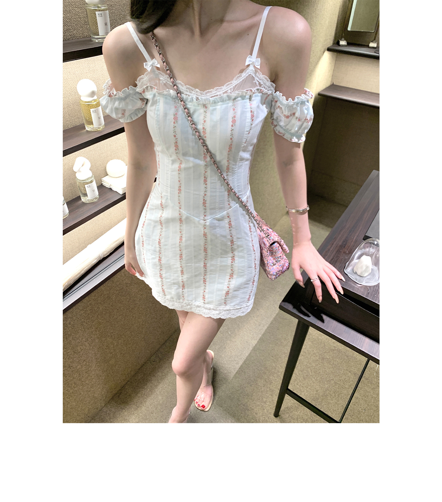 Tea Talk Sweetheart Lace & Floral Strap Dress - Summer Bubble Sleeve Style