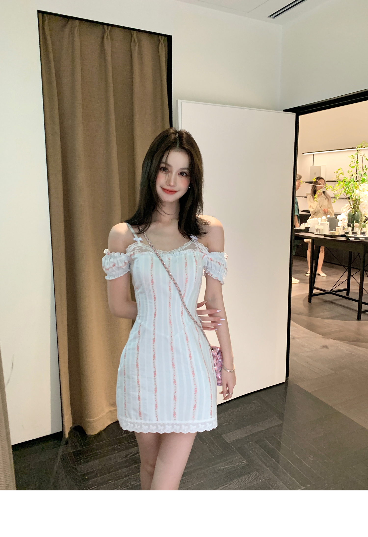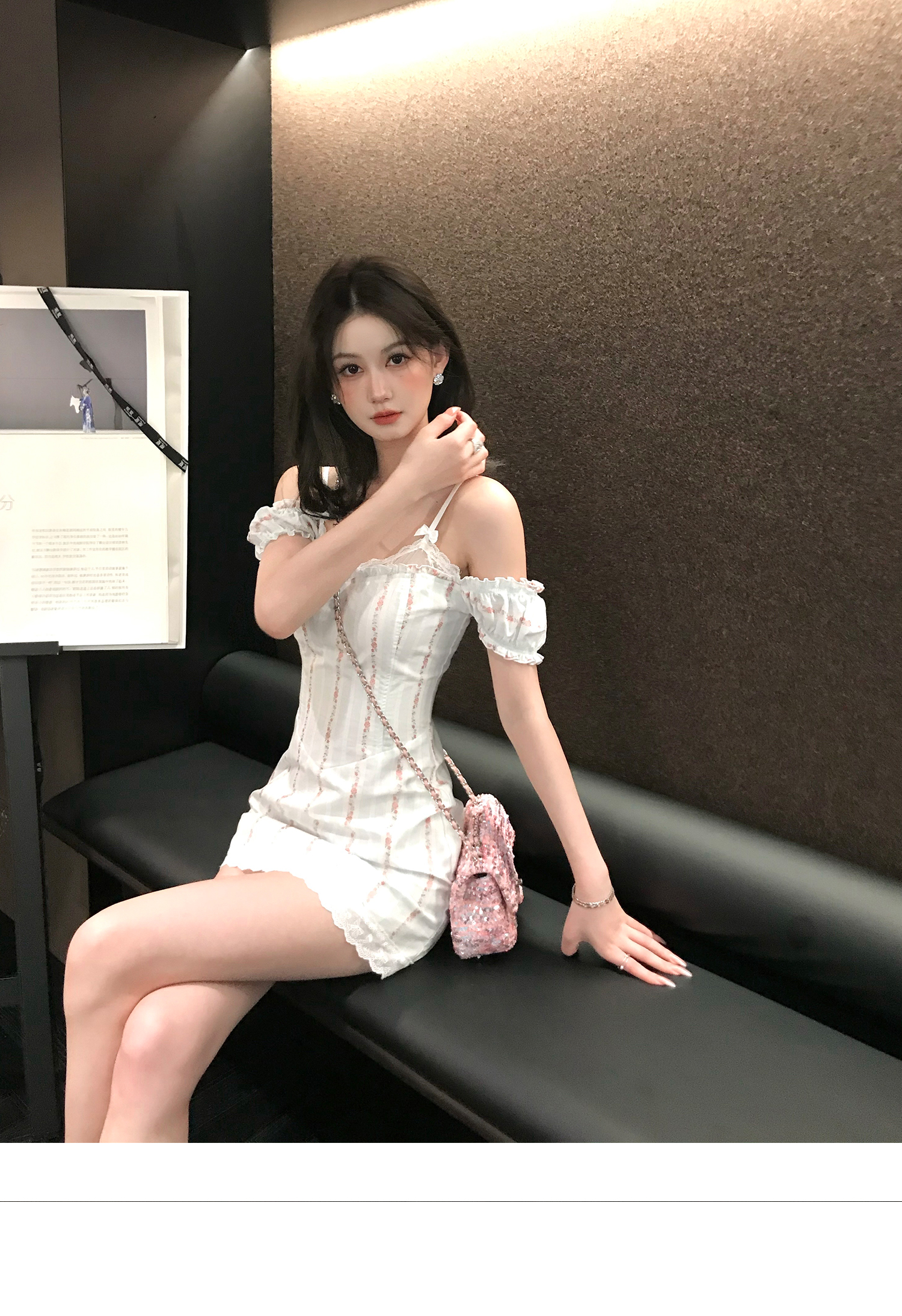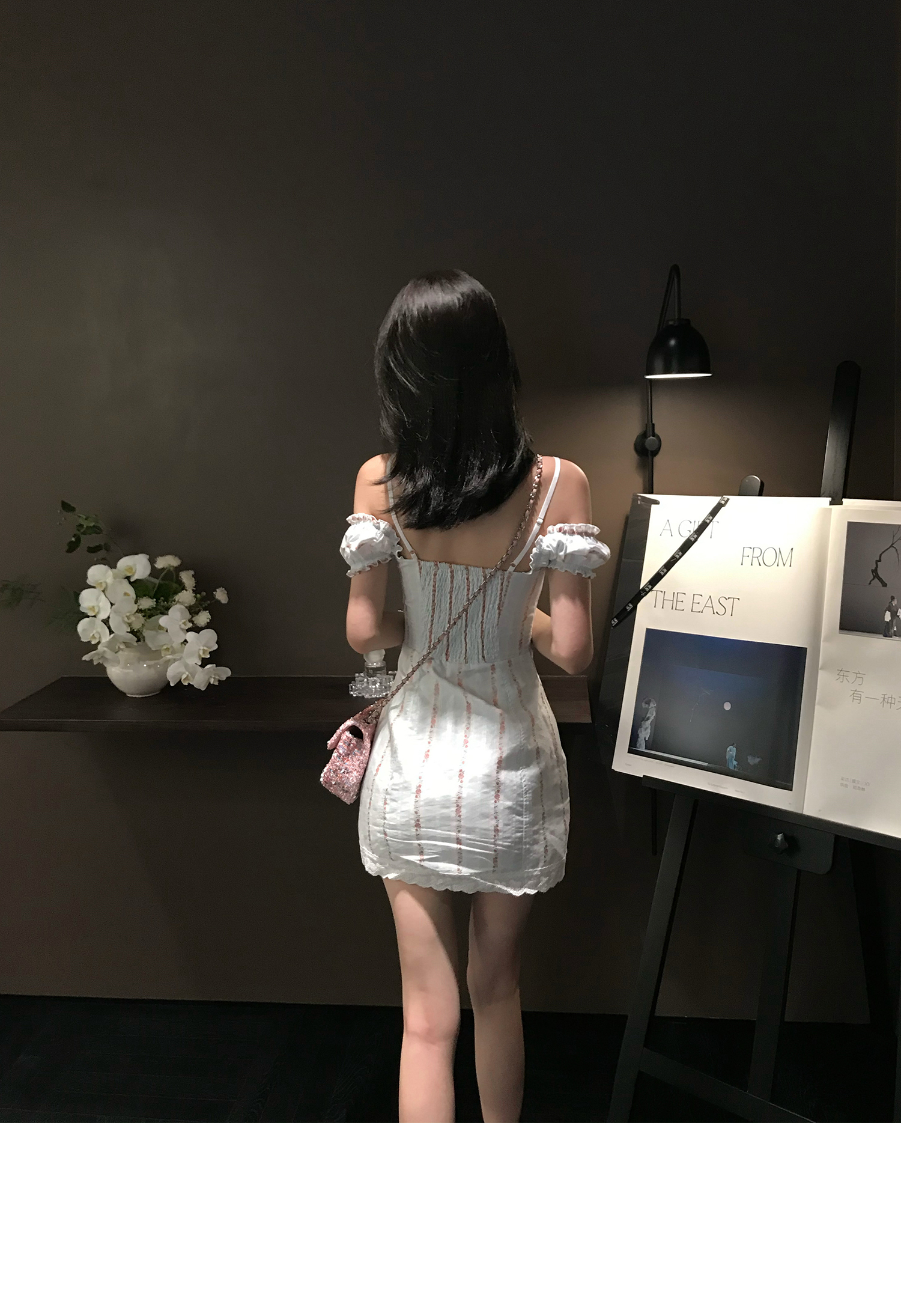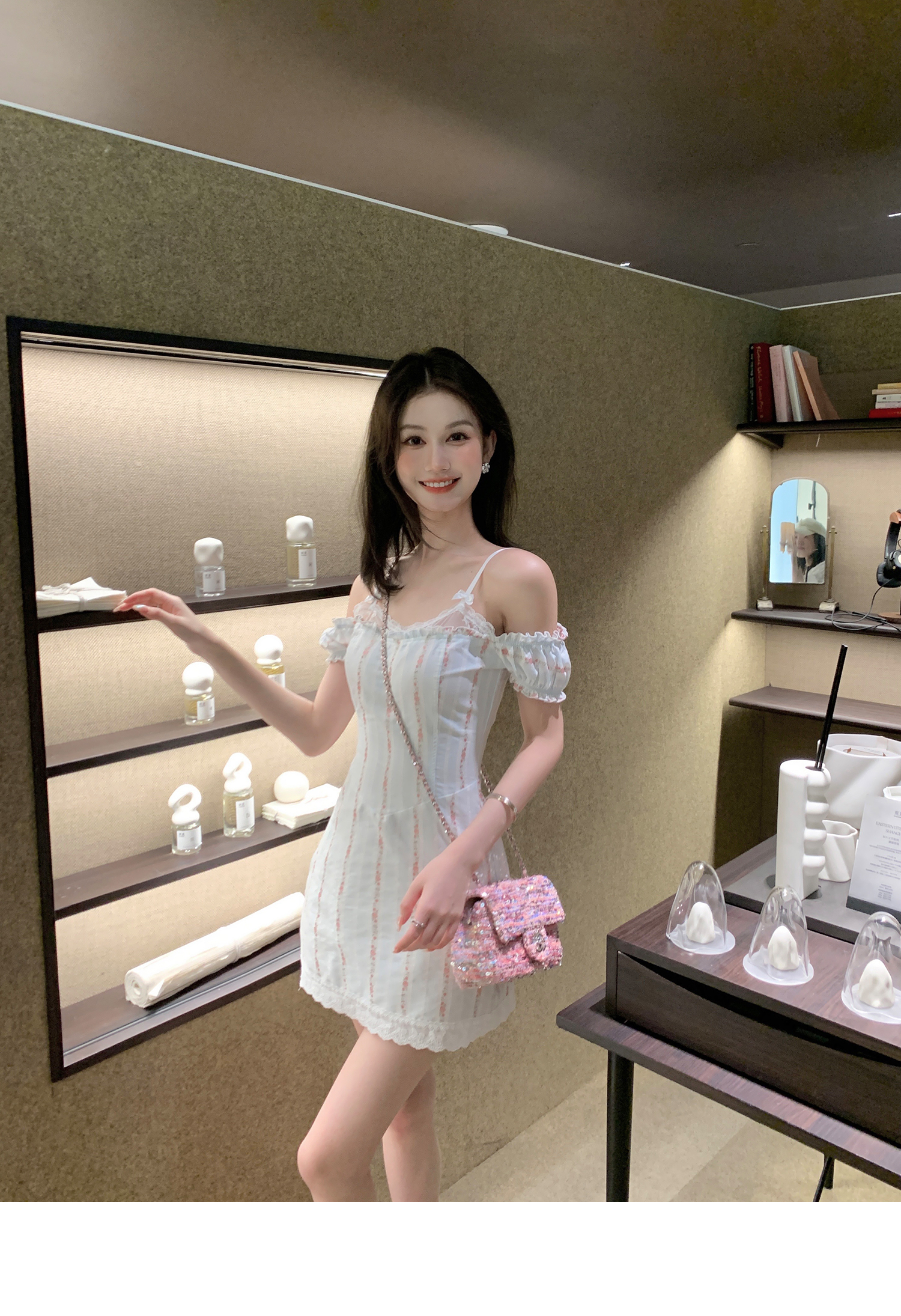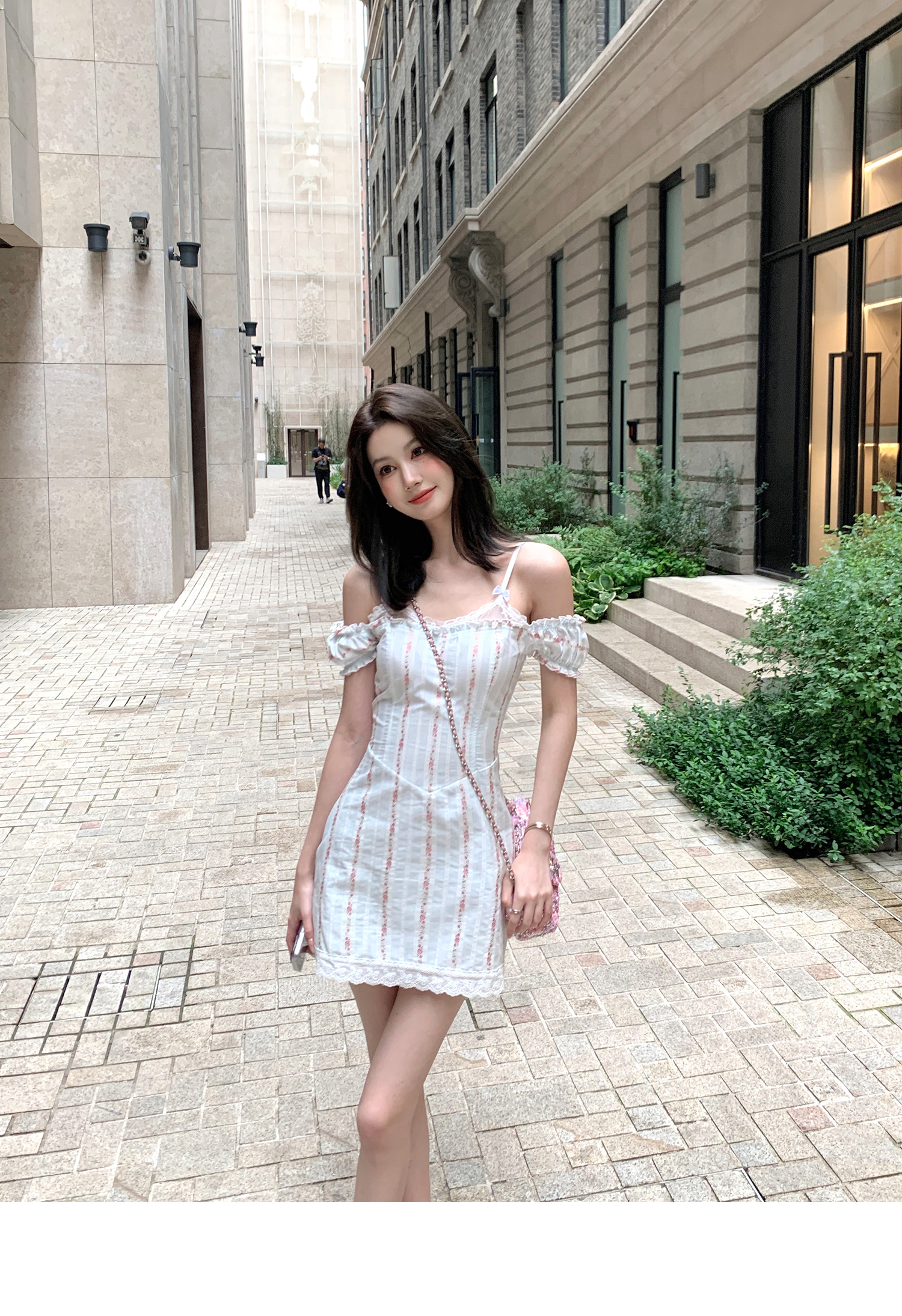 Tea Talk Sweetheart Lace & Floral Strap Dress - Summer Bubble Sleeve Style