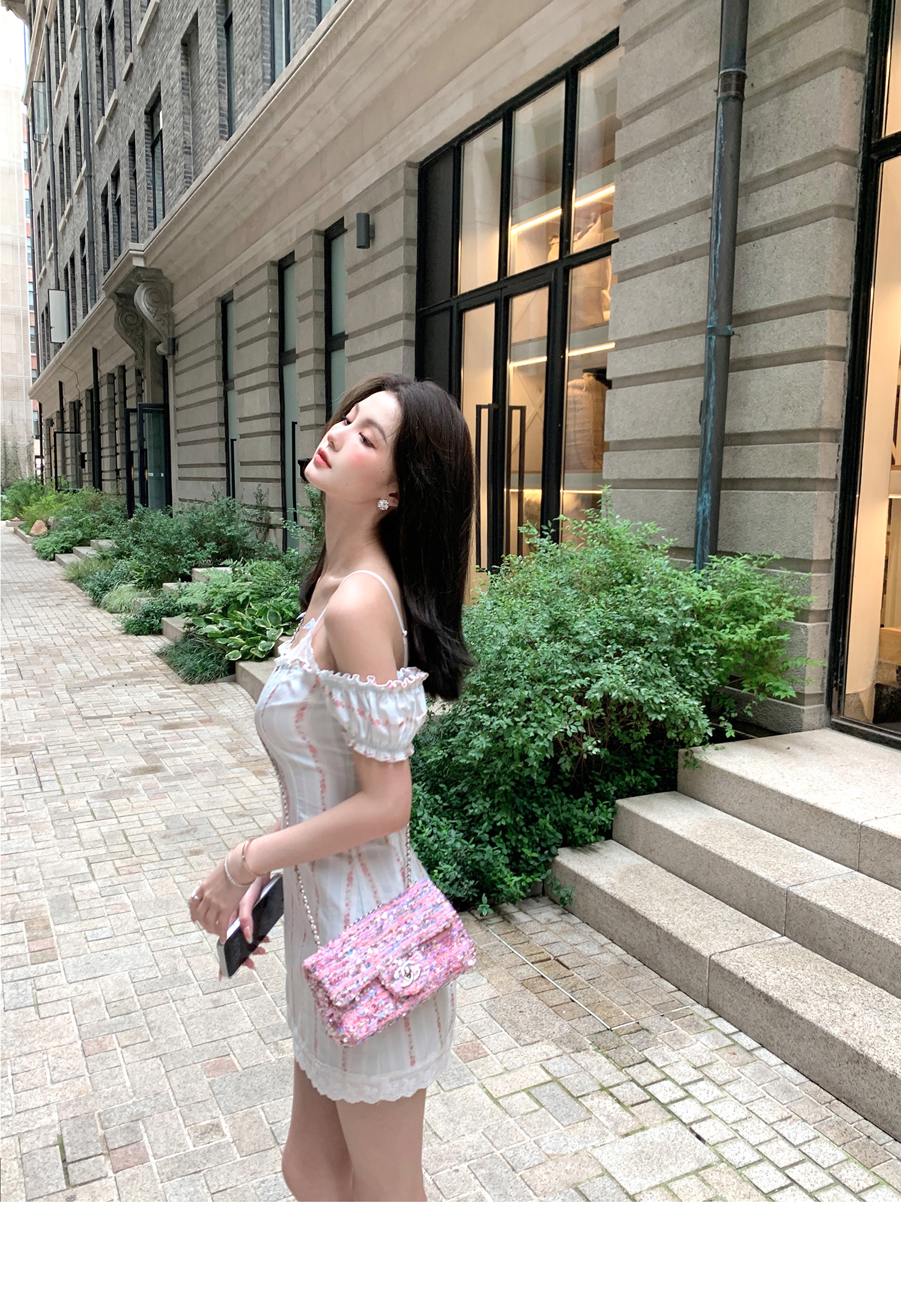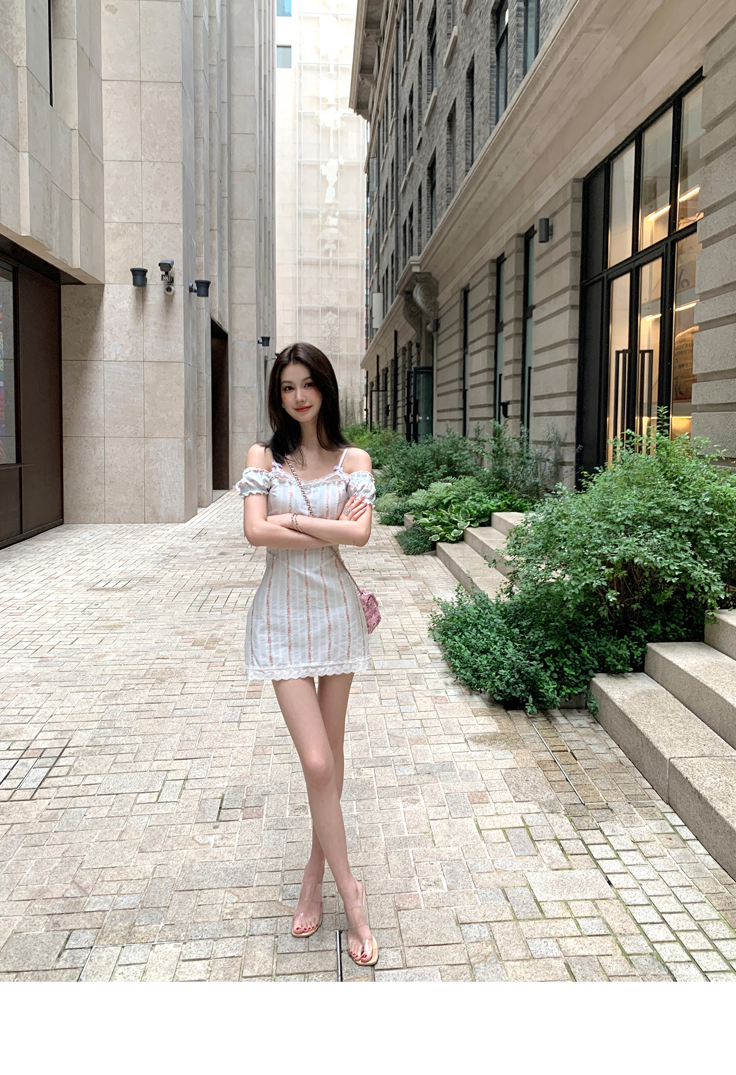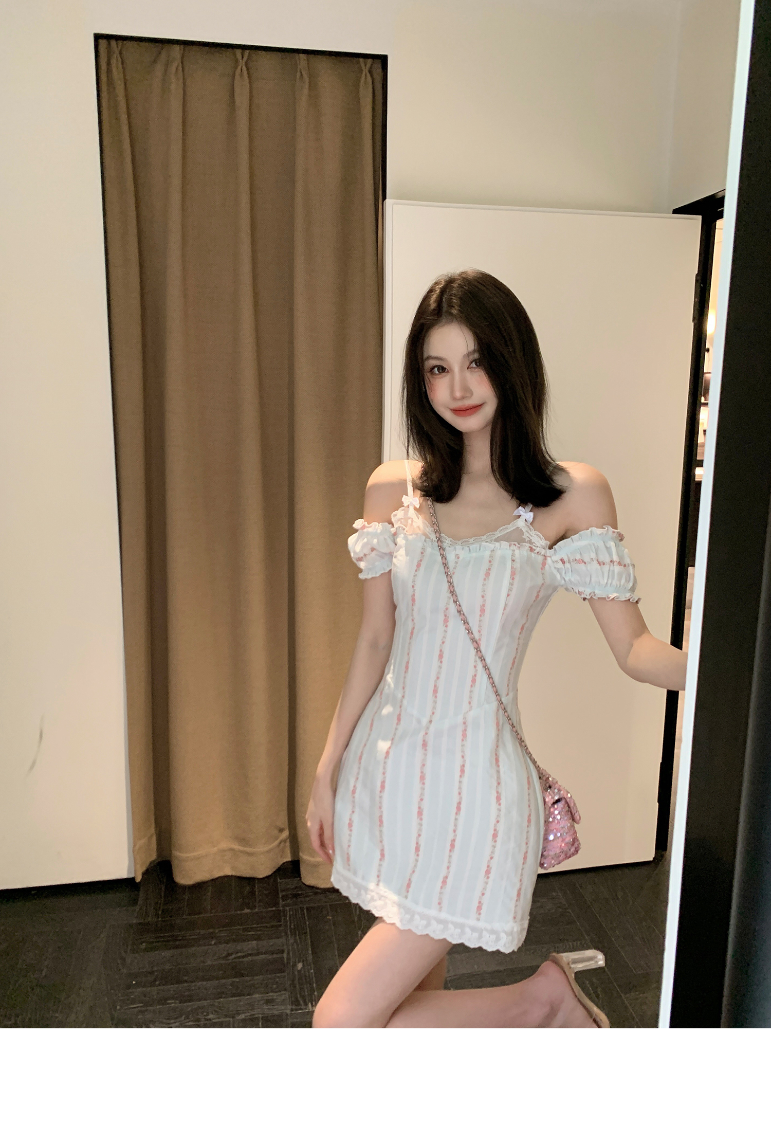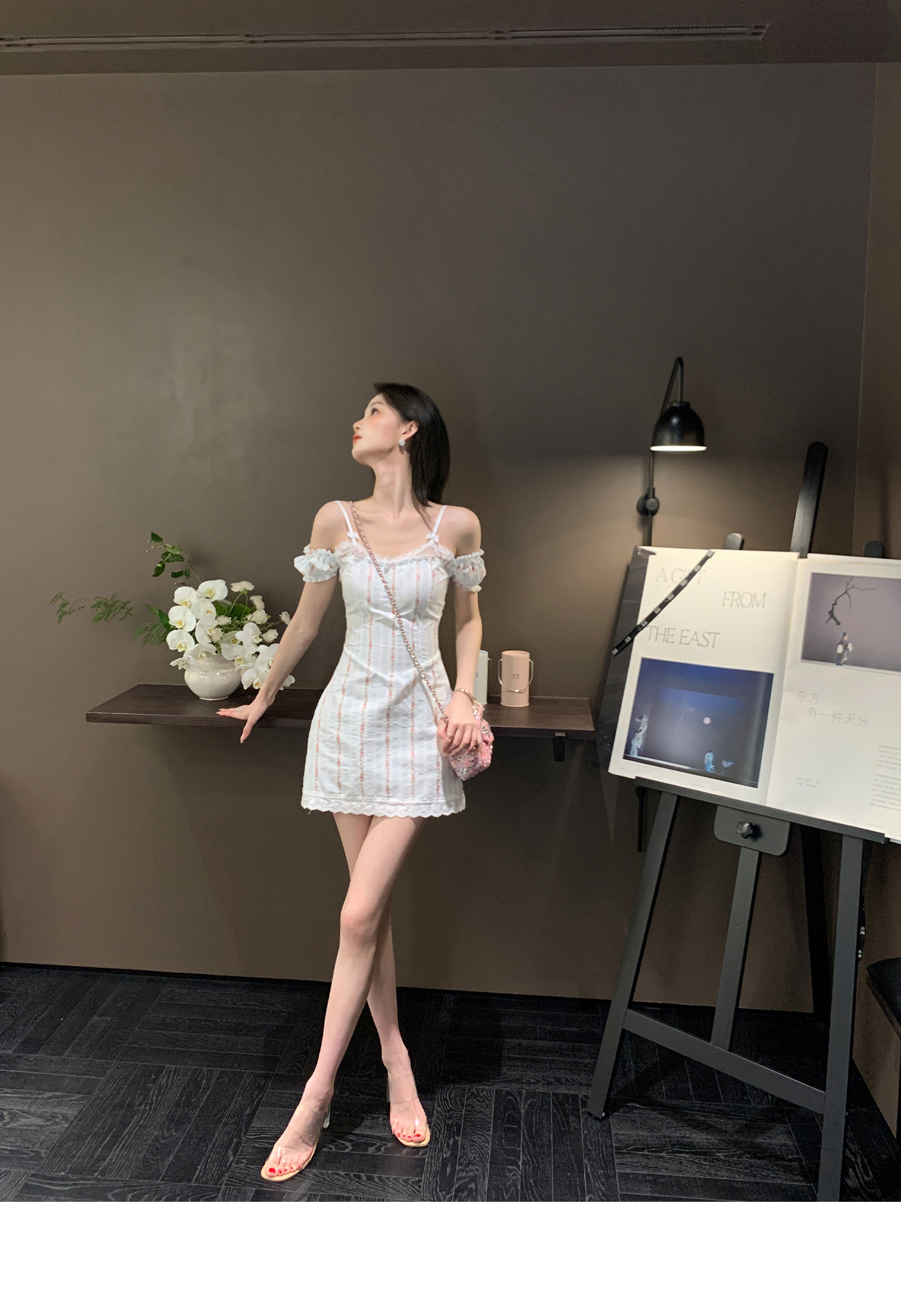 Tea Talk Sweetheart Lace & Floral Strap Dress - Summer Bubble Sleeve Style