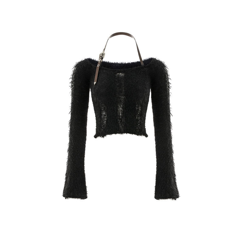 Faux Mink One-Shoulder Sweater