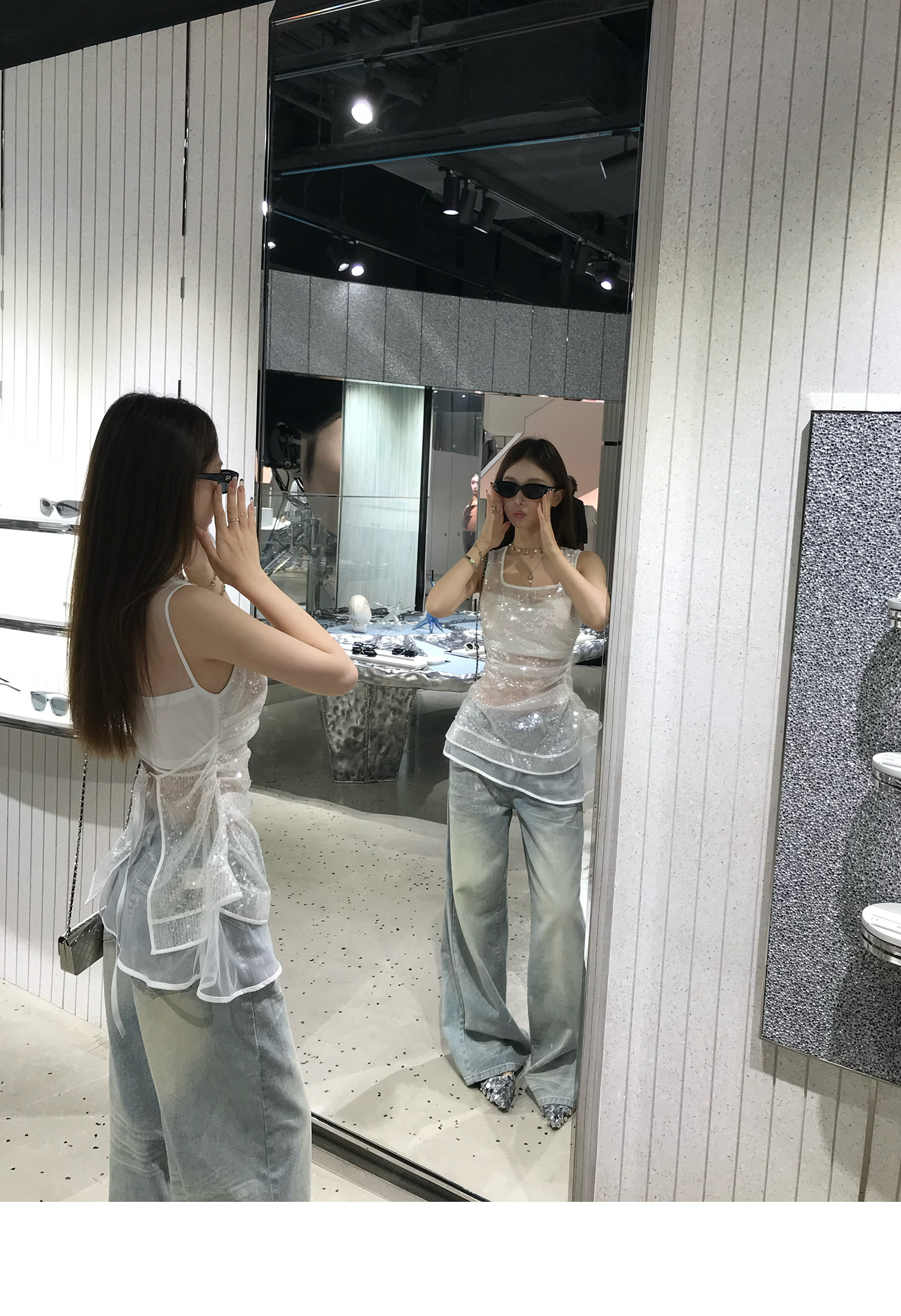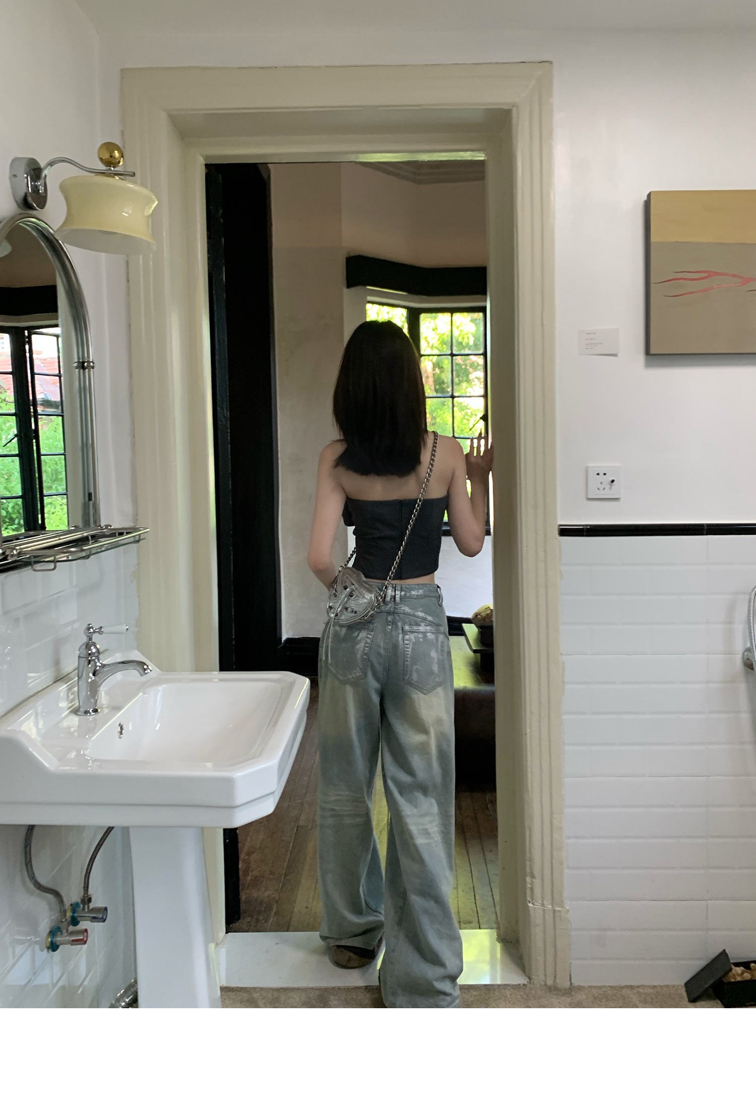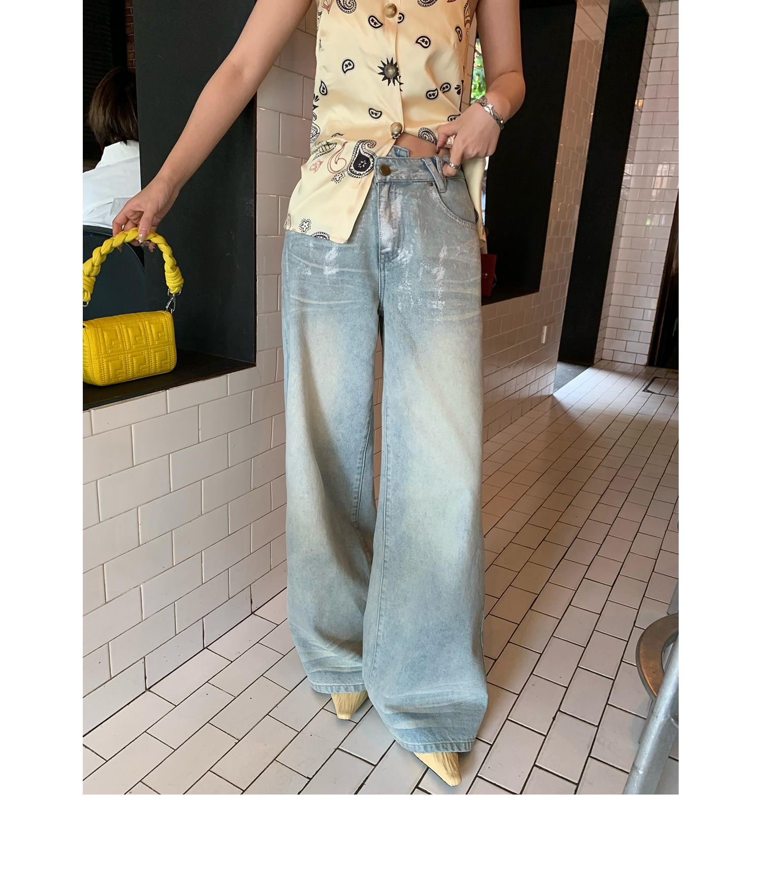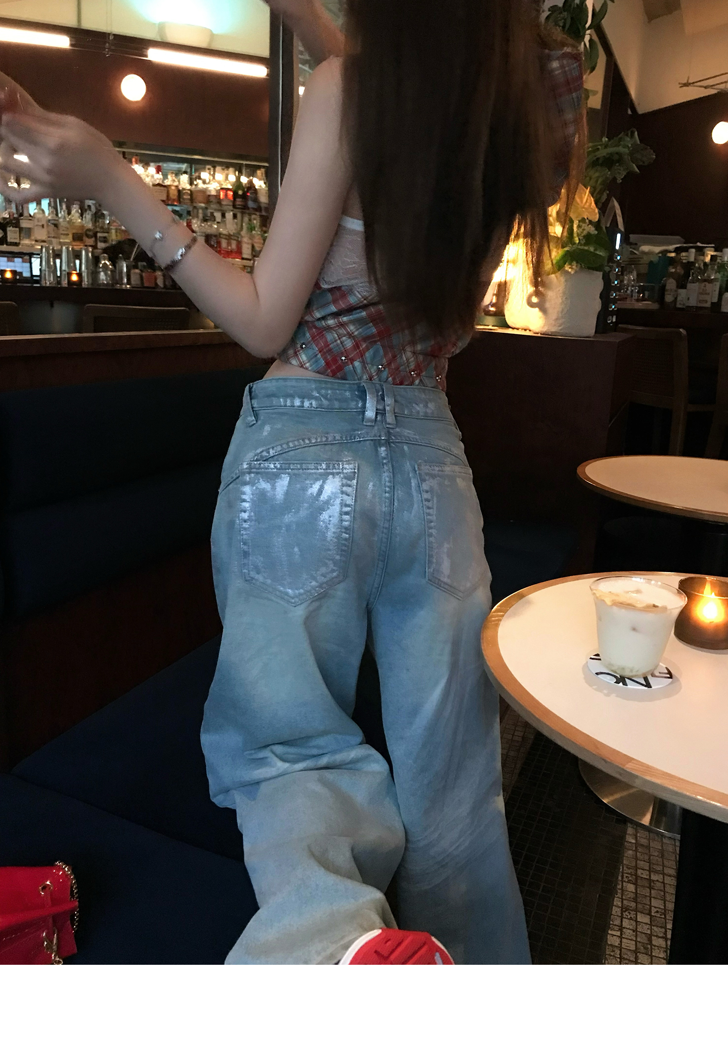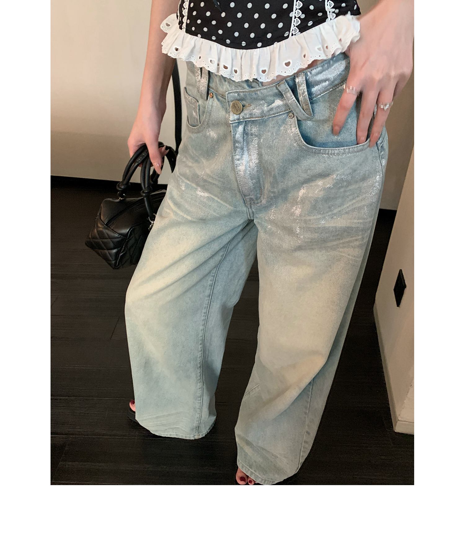 [Twilight Silver Galaxy] Silver Grey Low-Cut Loose Straight Jeans - Summer Style