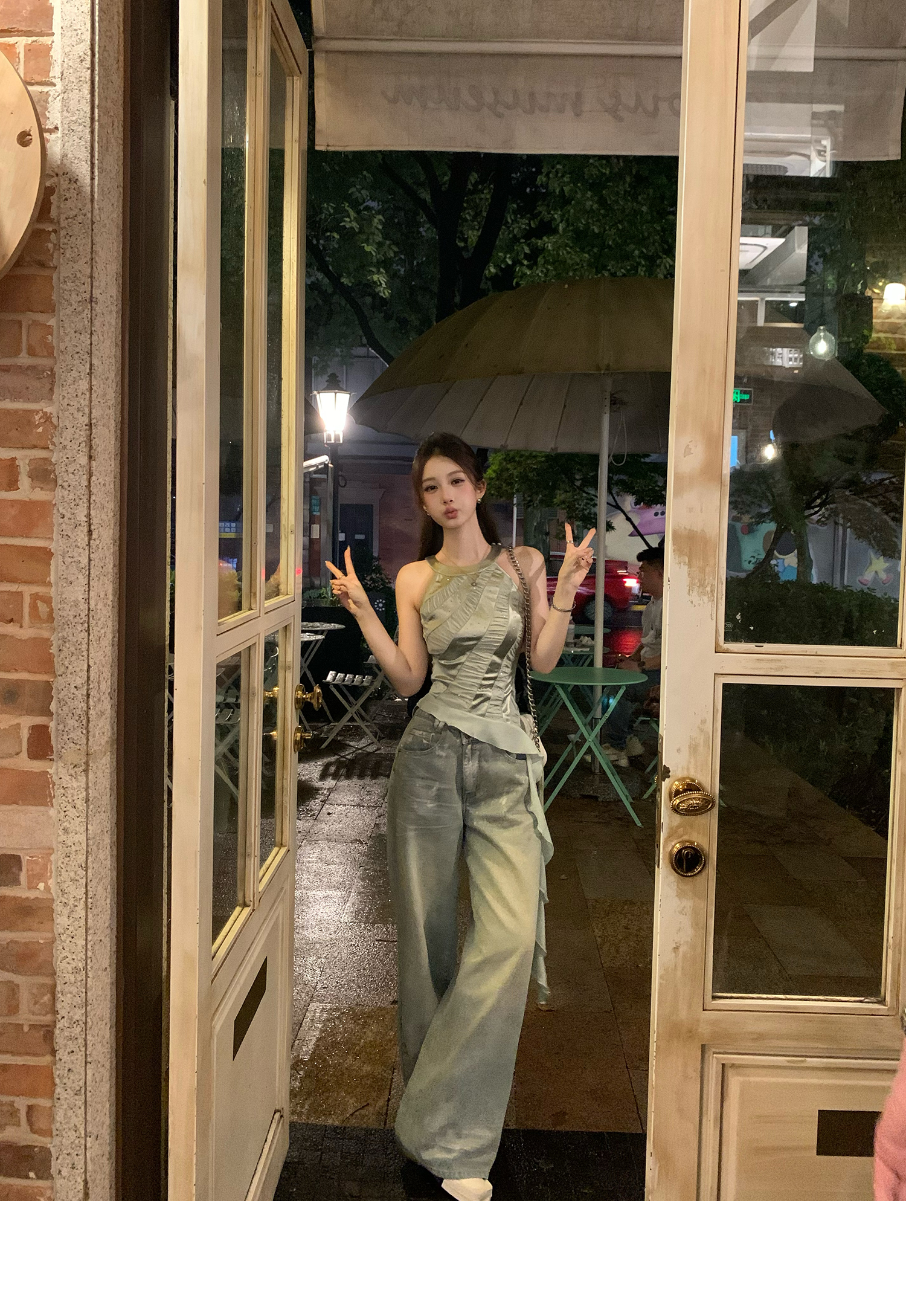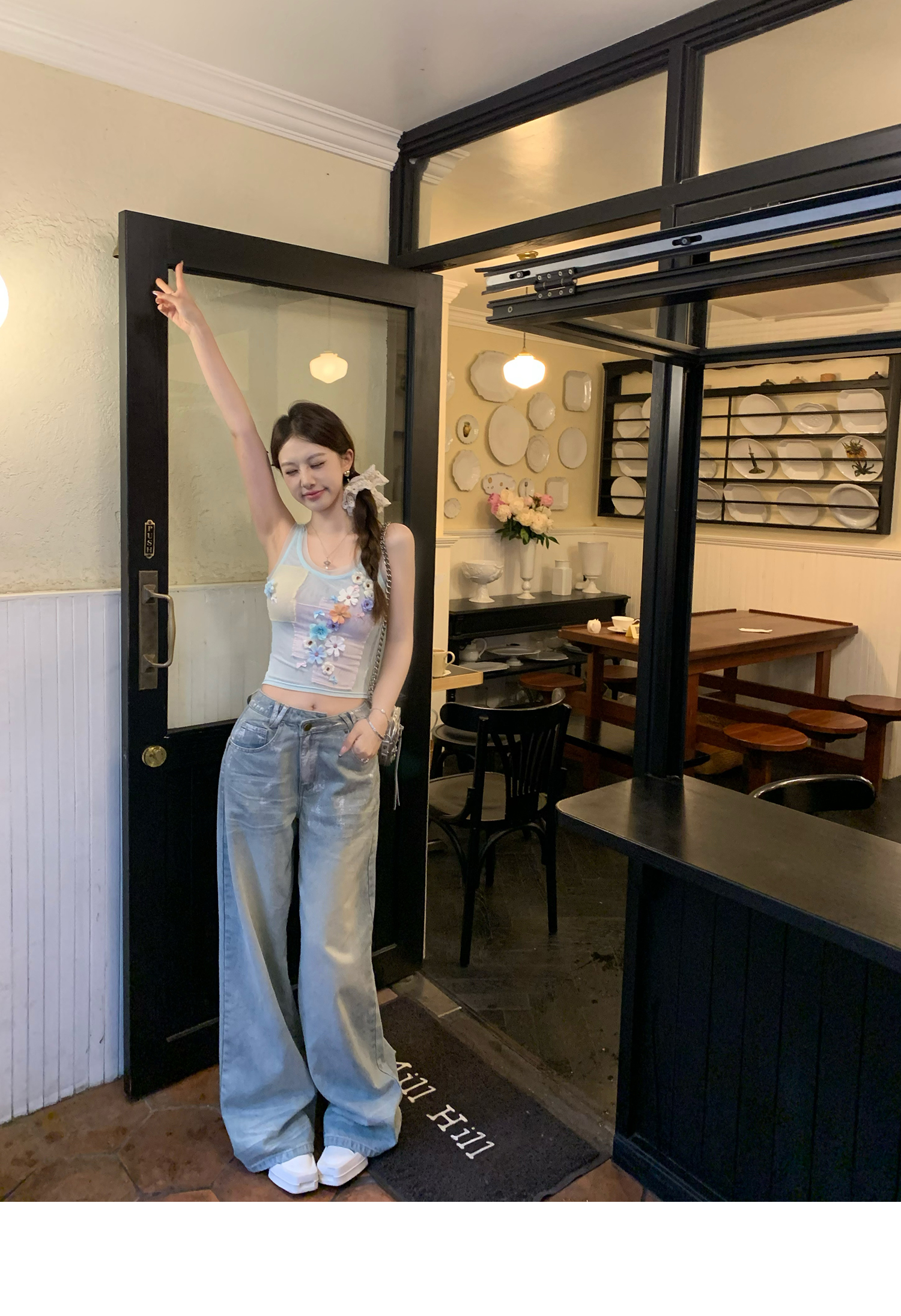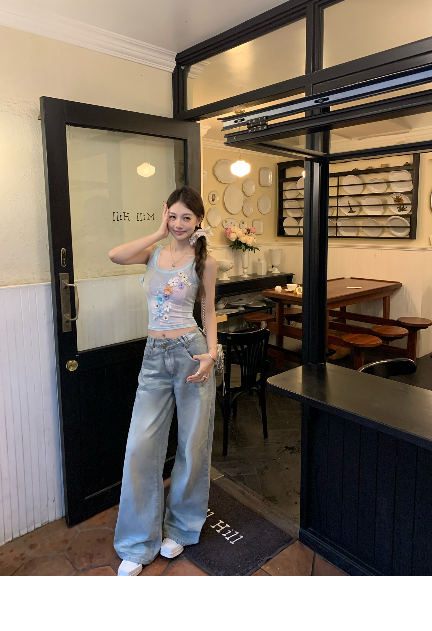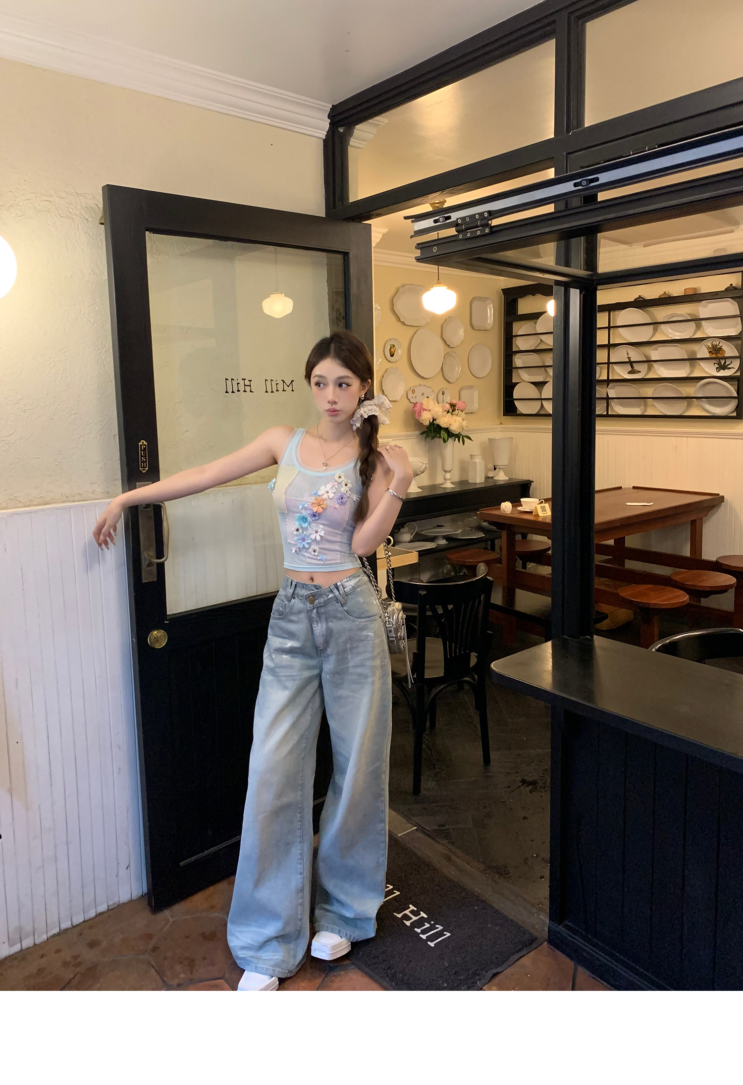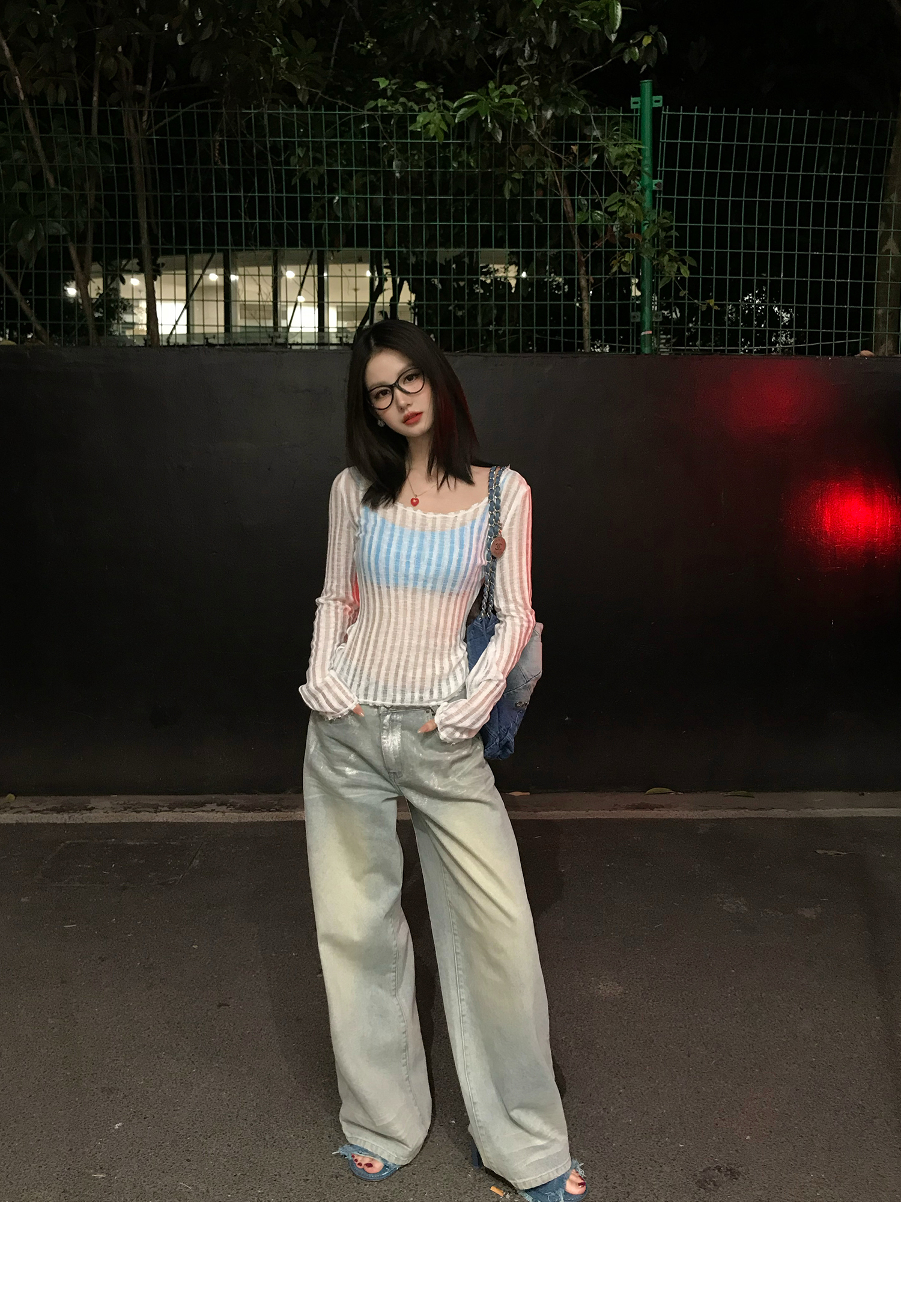 [Twilight Silver Galaxy] Silver Grey Low-Cut Loose Straight Jeans - Summer Style