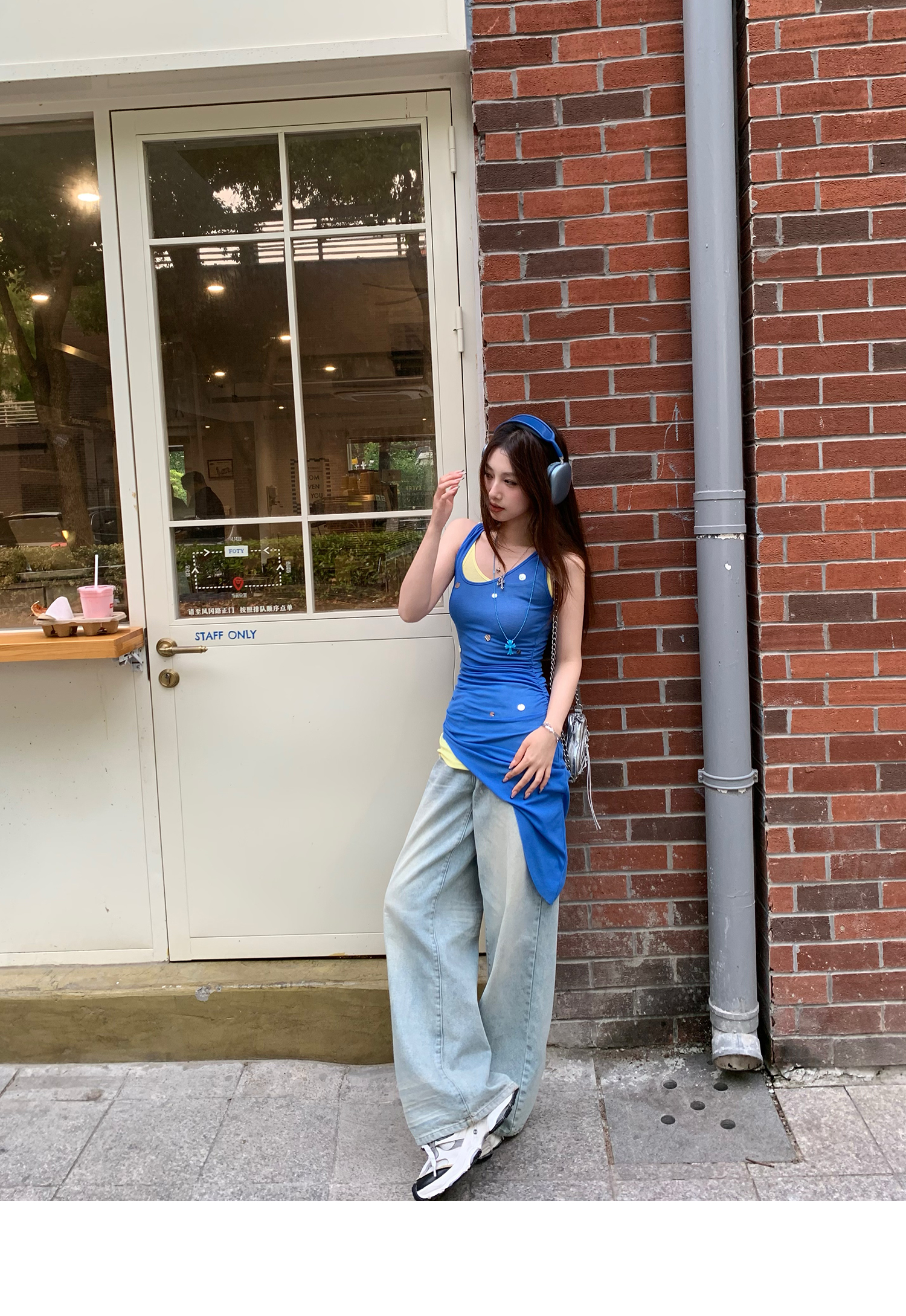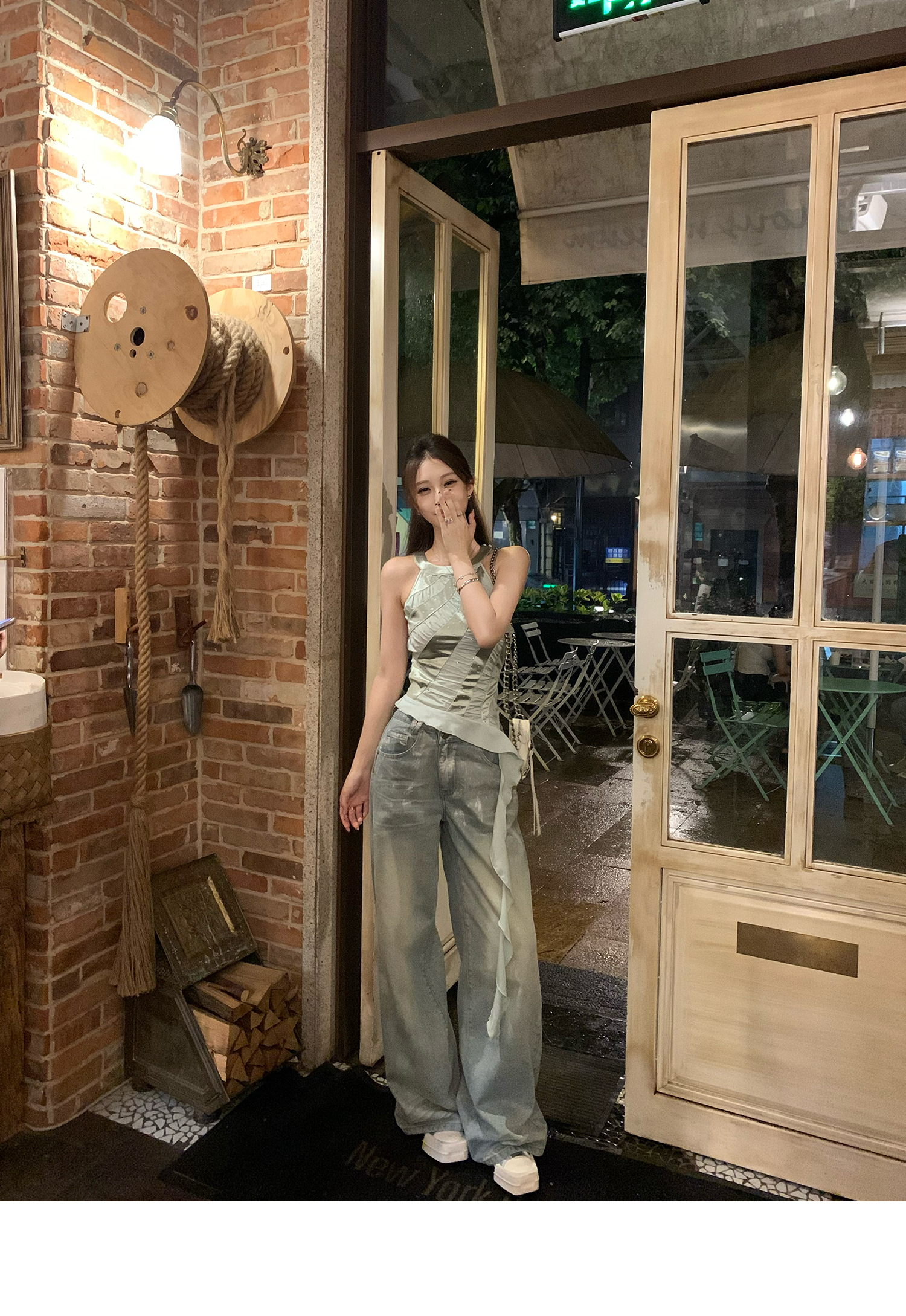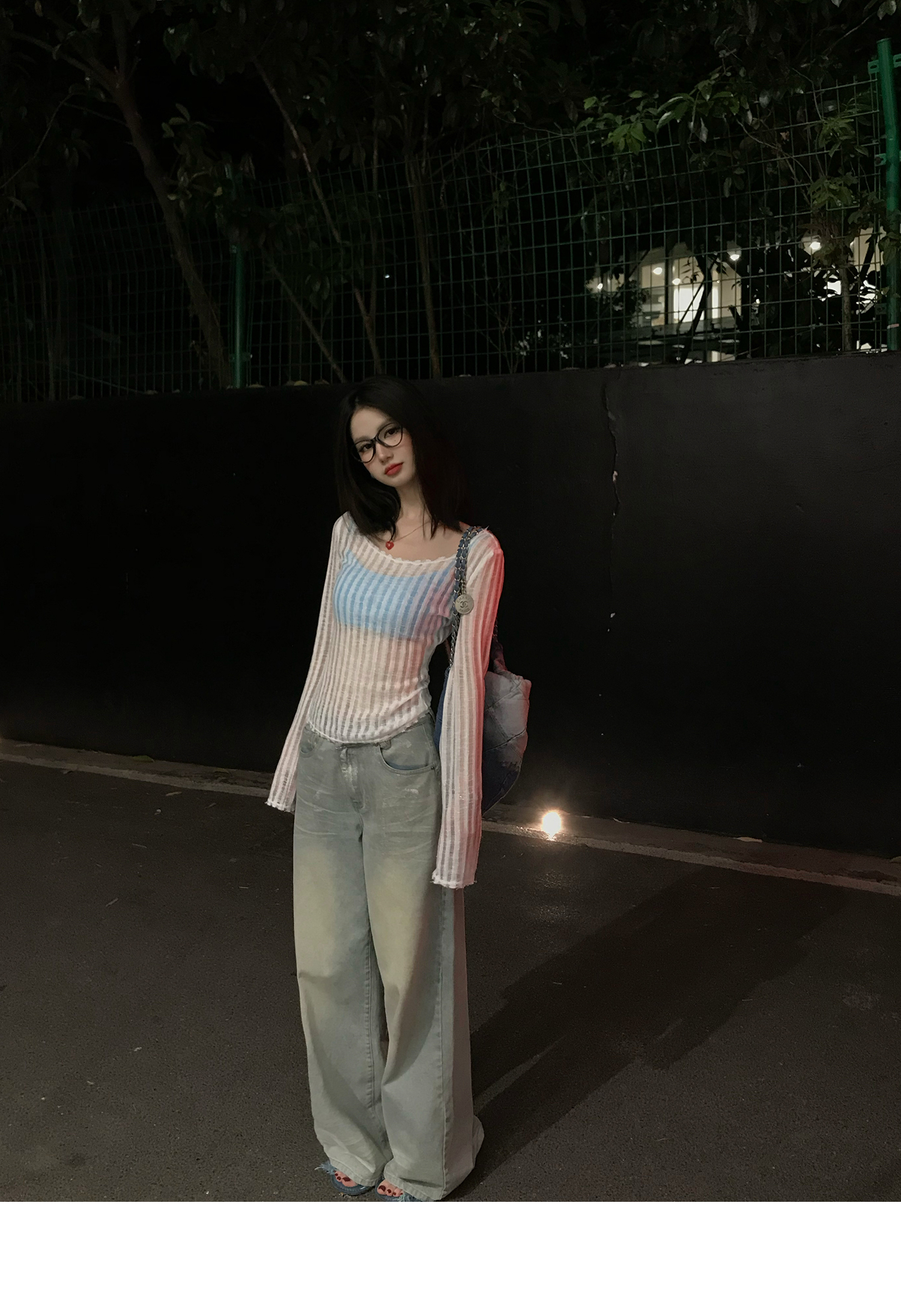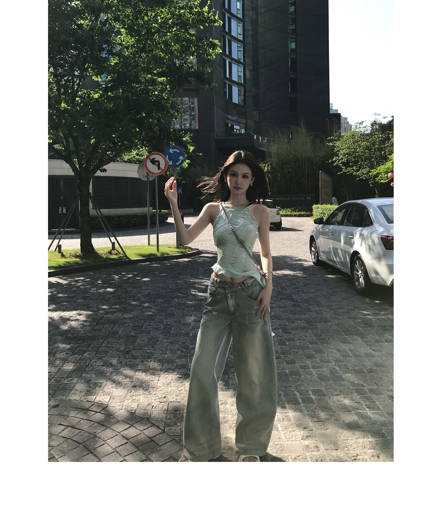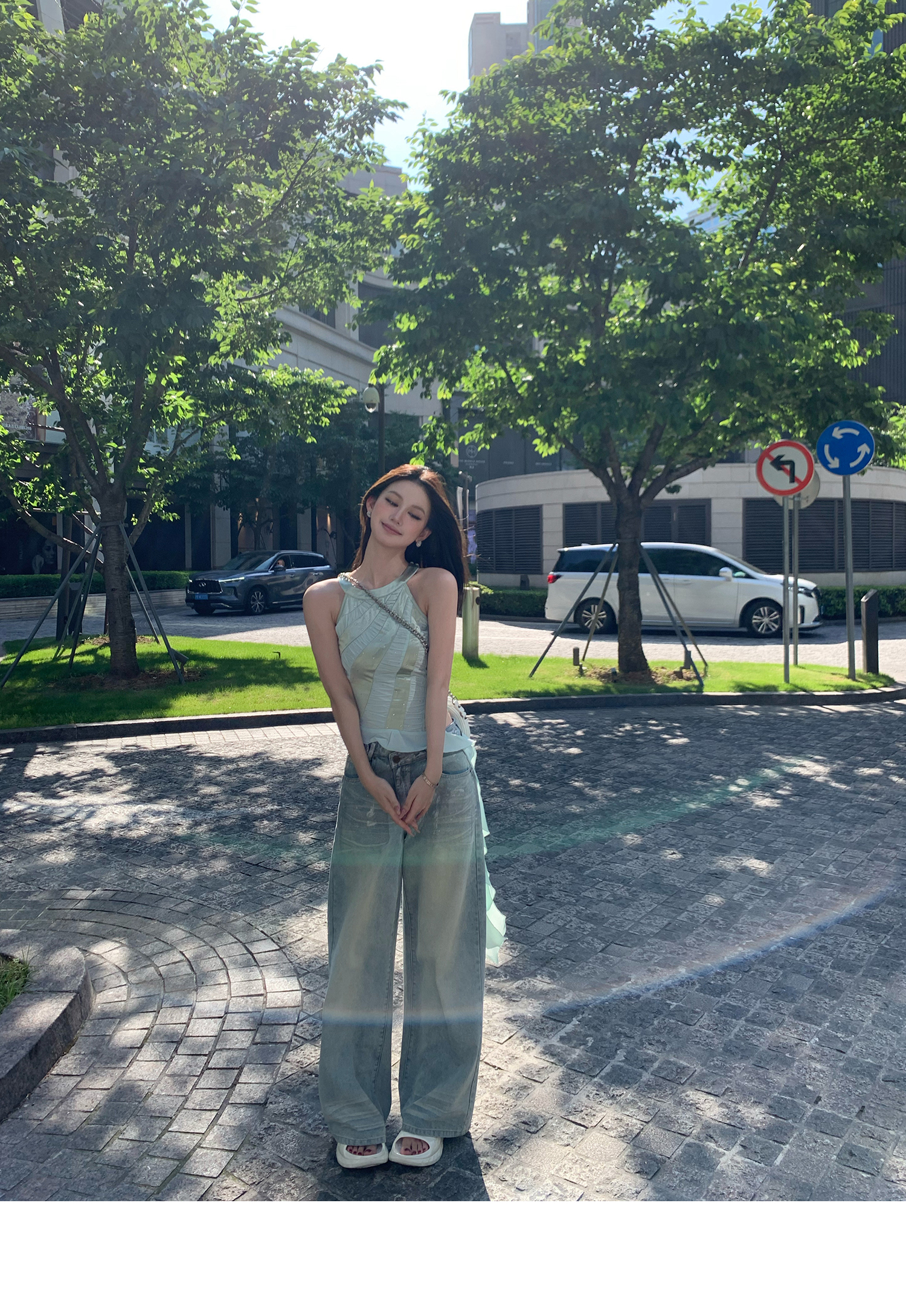 [Twilight Silver Galaxy] Silver Grey Low-Cut Loose Straight Jeans - Summer Style