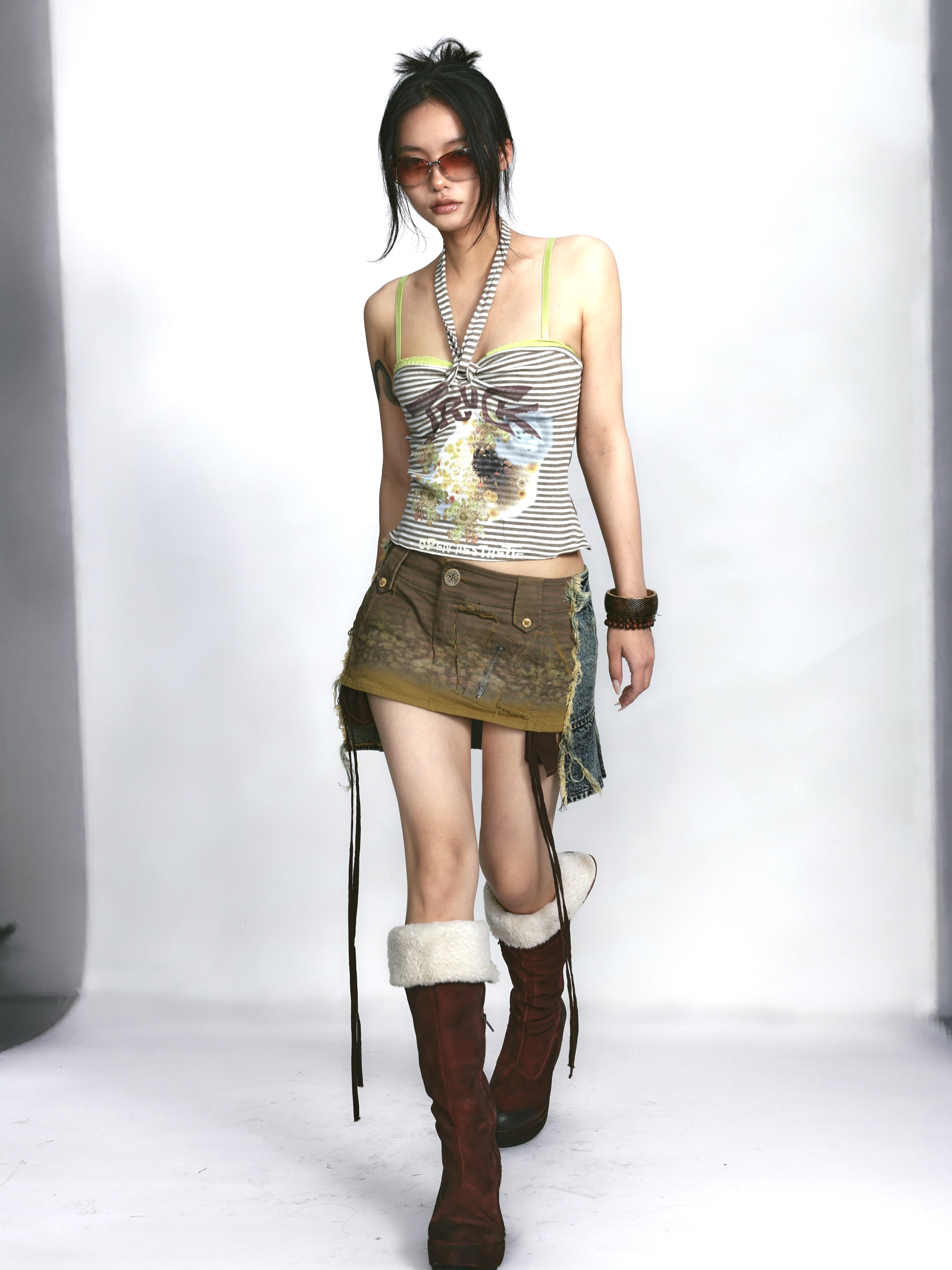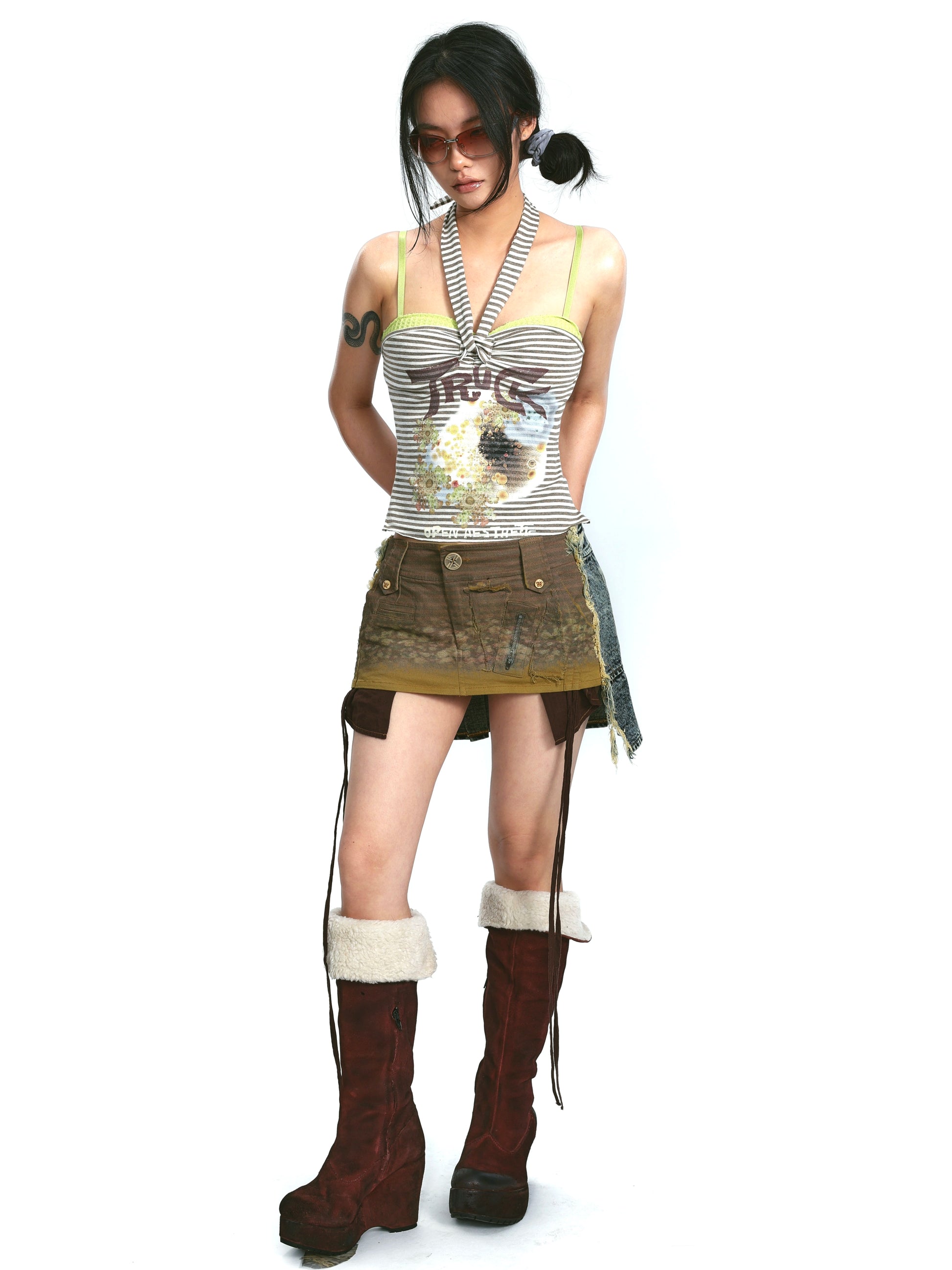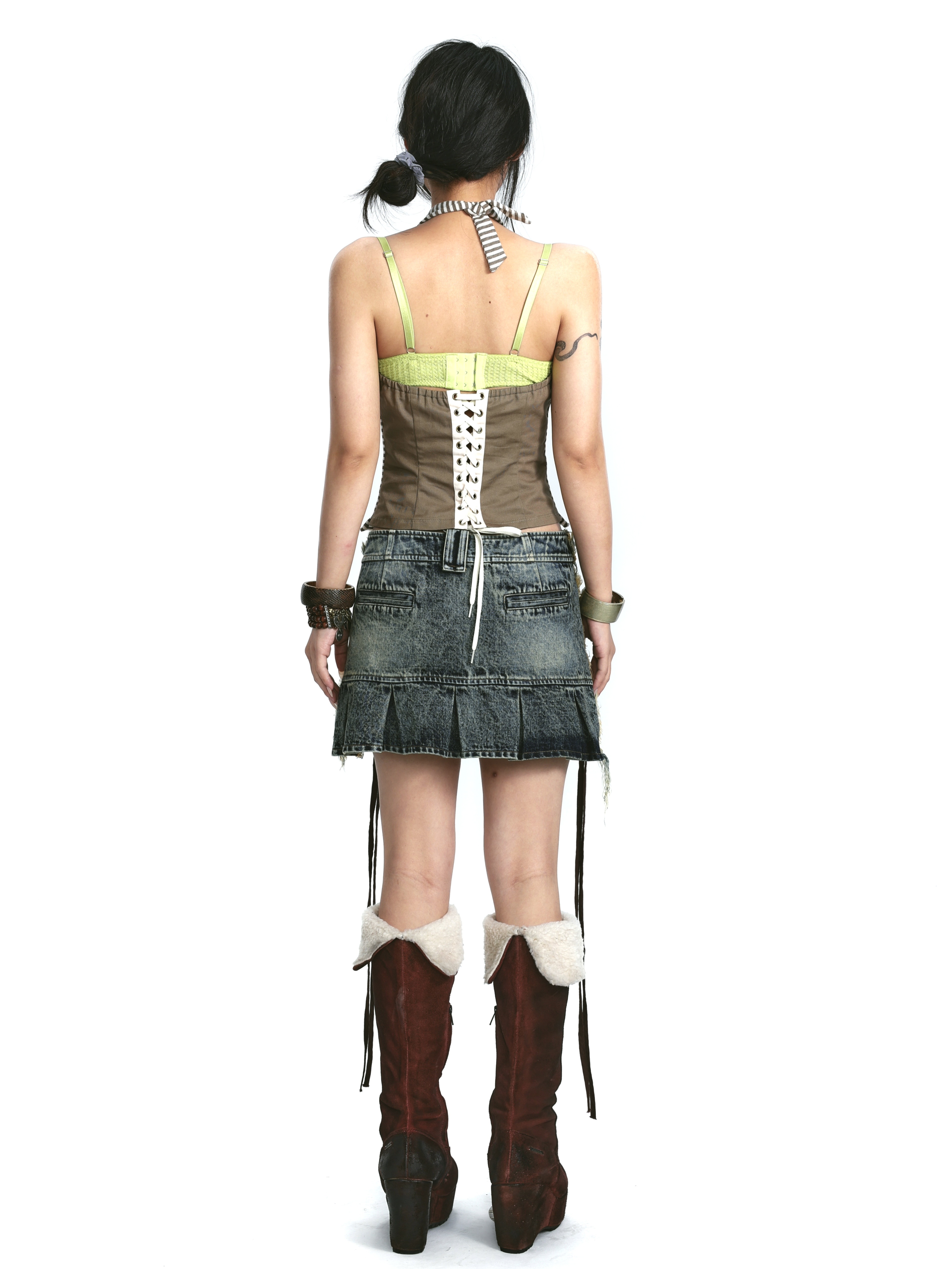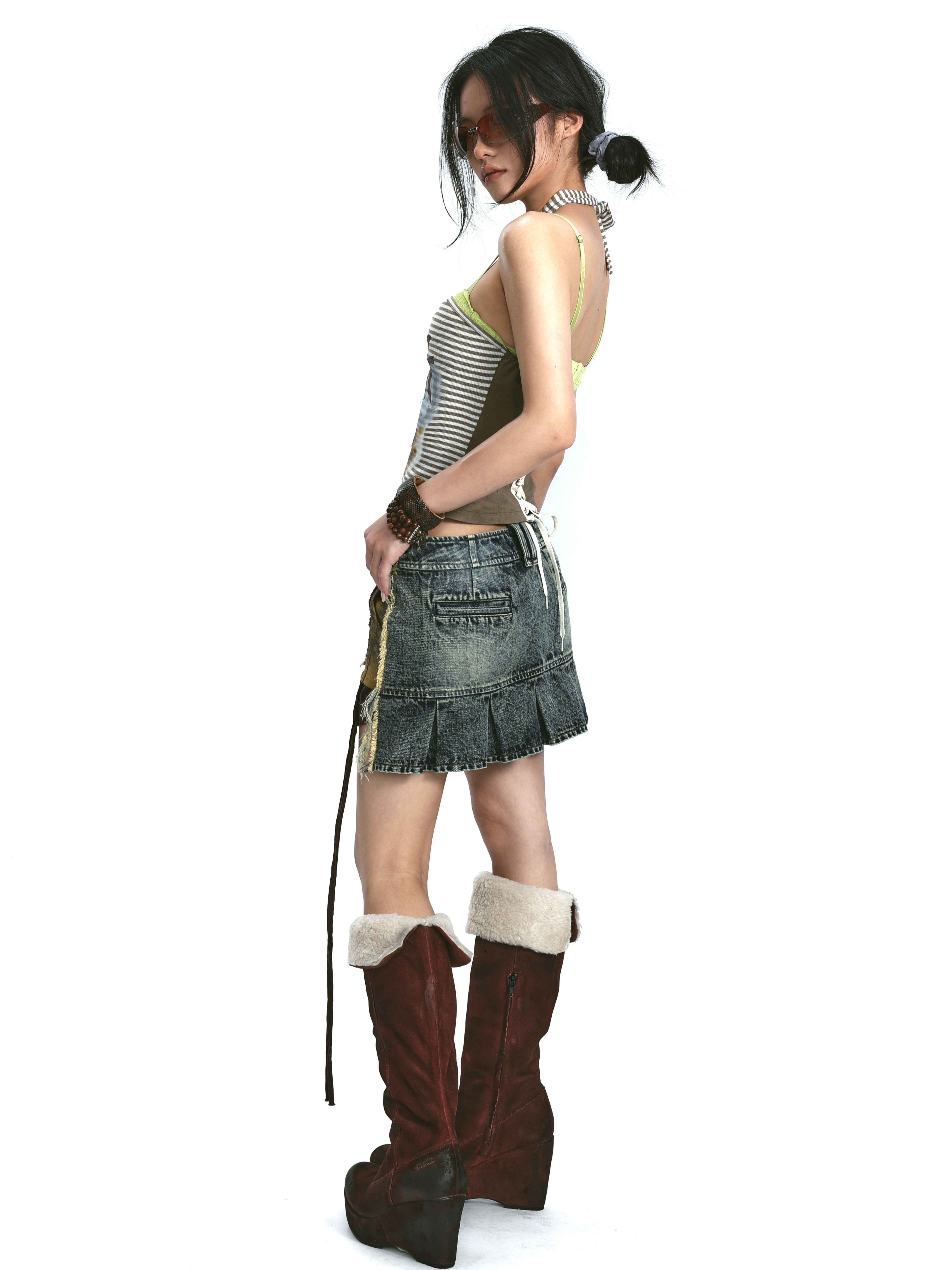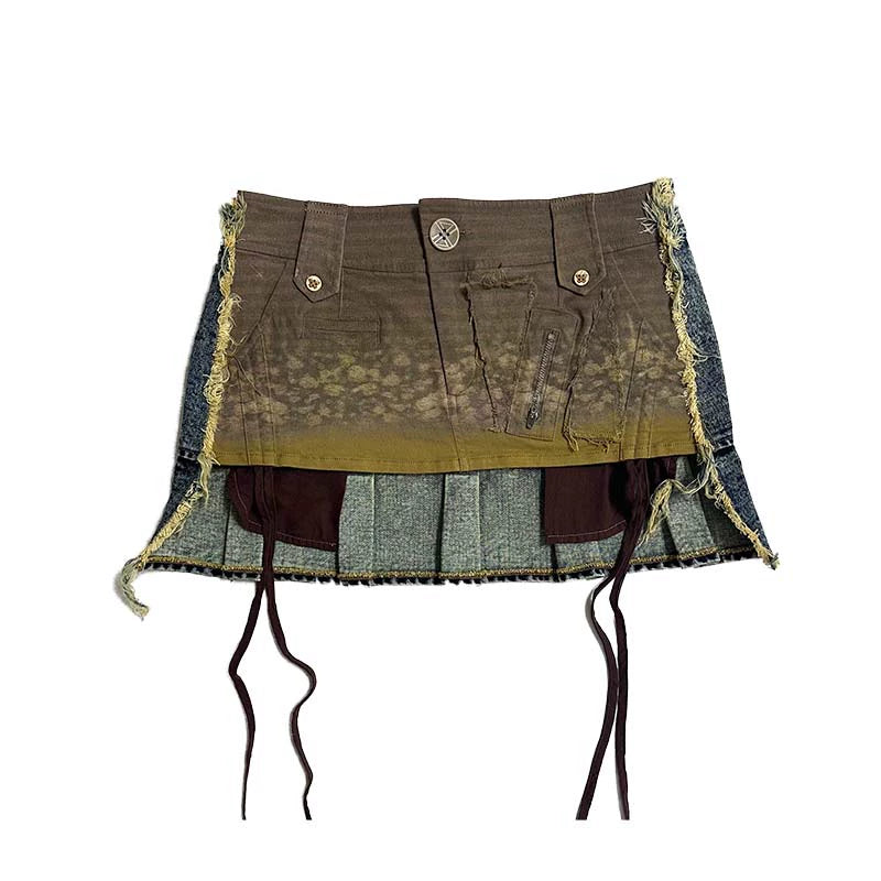Denim Print Raw Edge Skirt – Tinted Washed Look