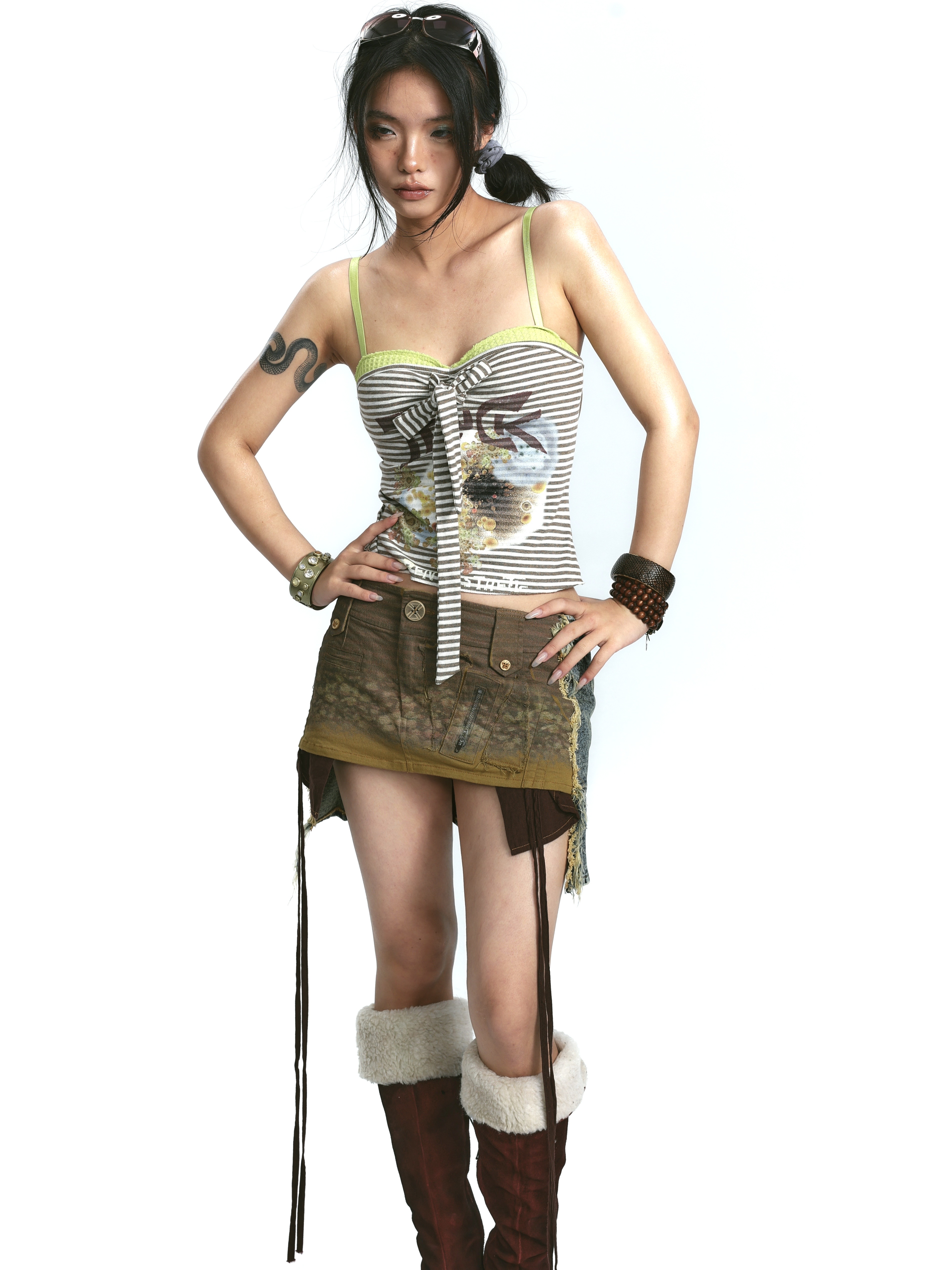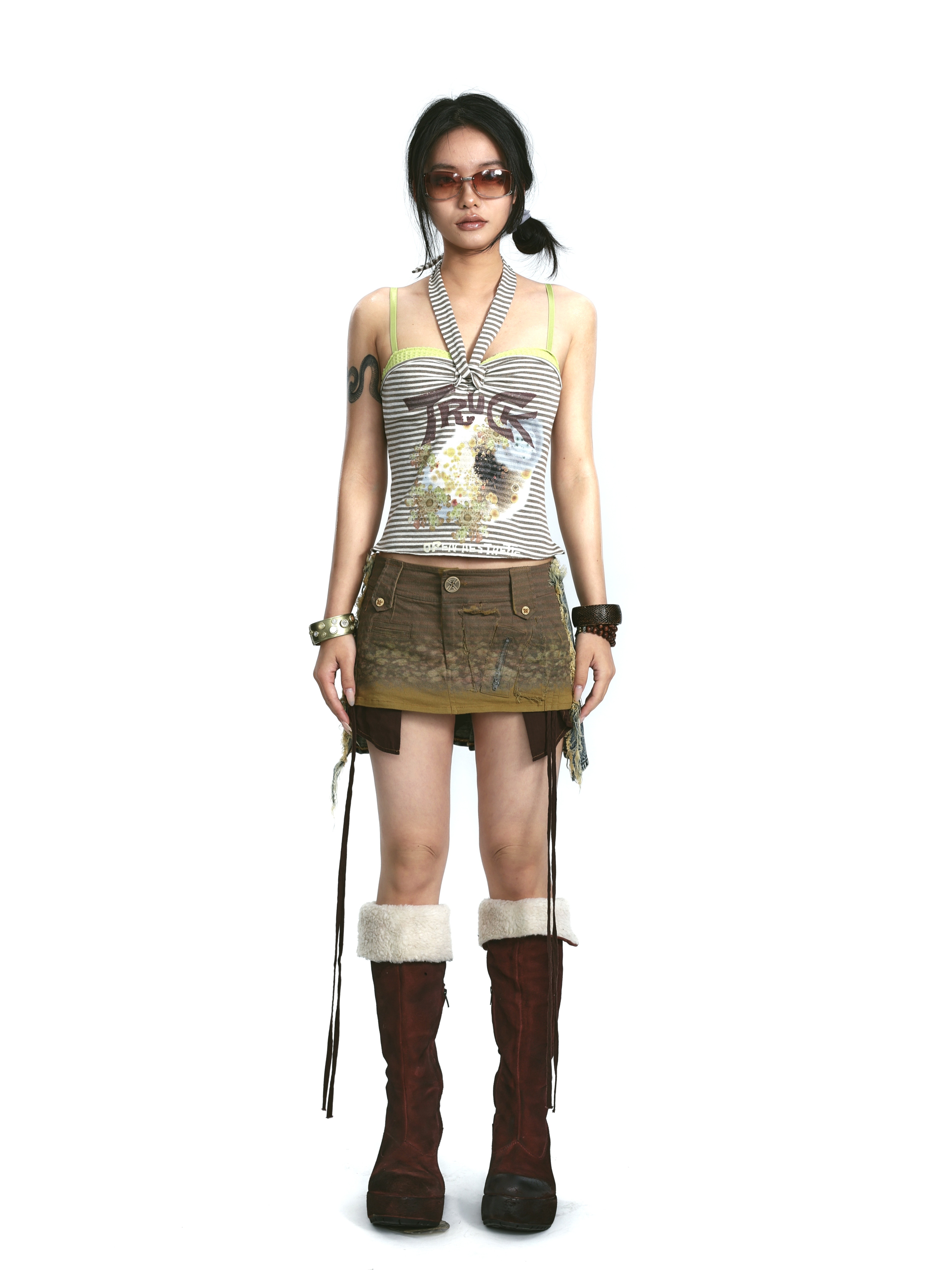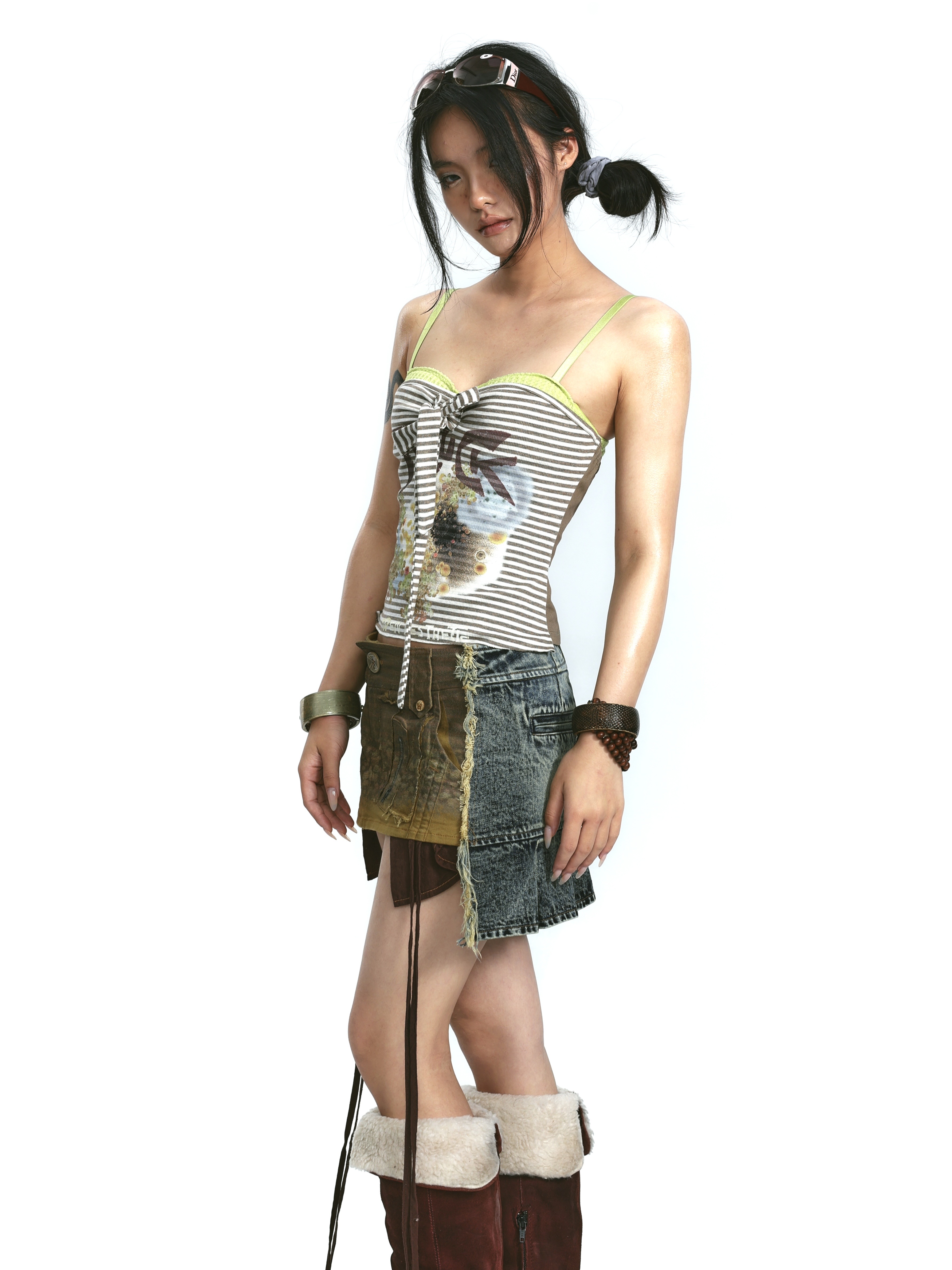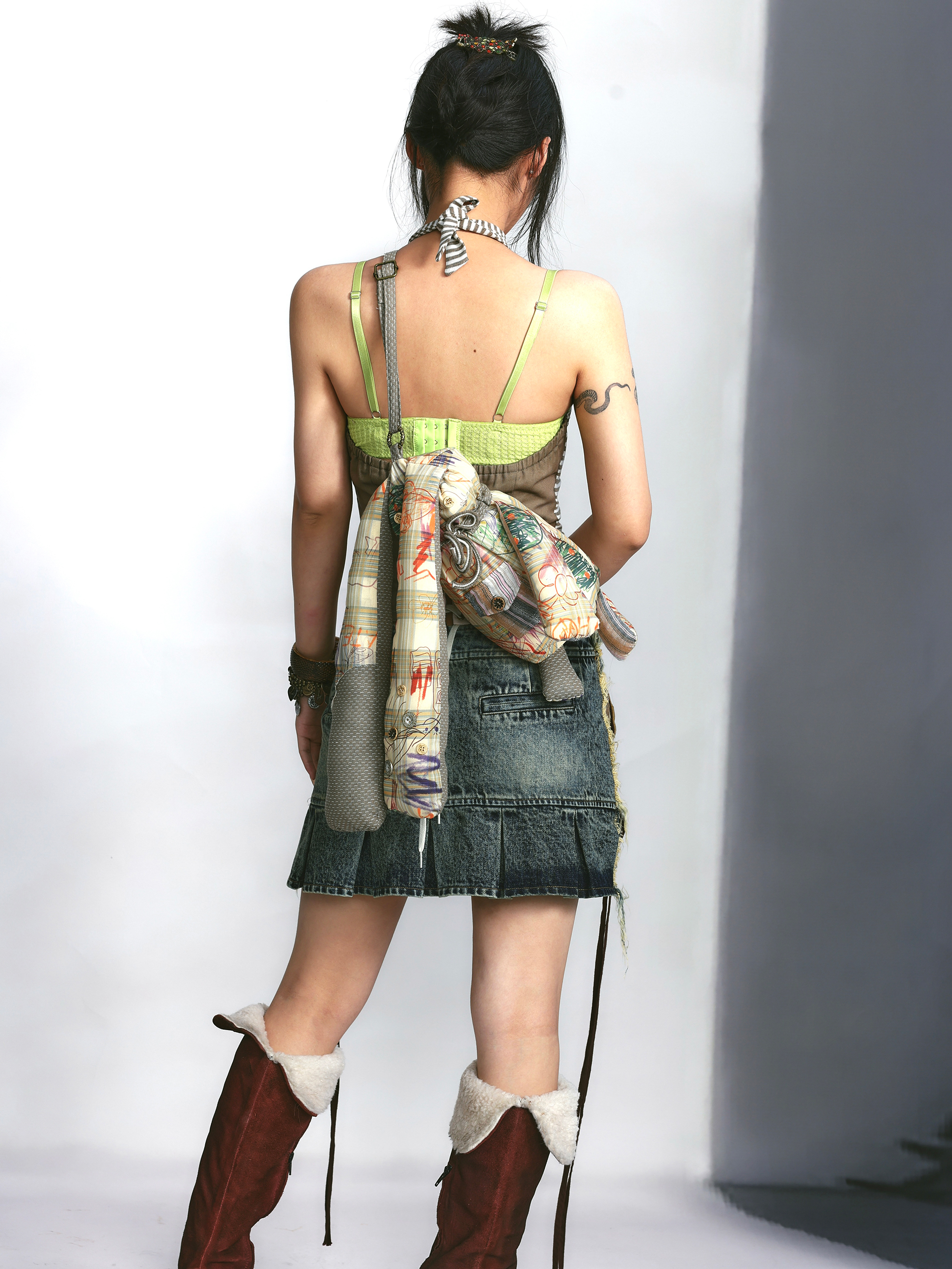 Denim Print Raw Edge Skirt – Tinted Washed Look
