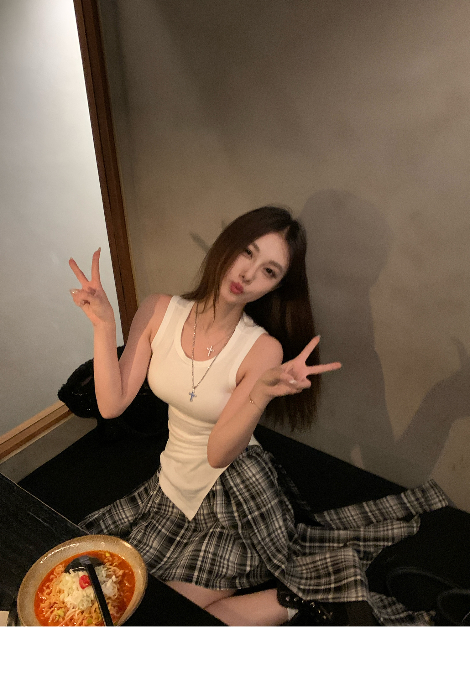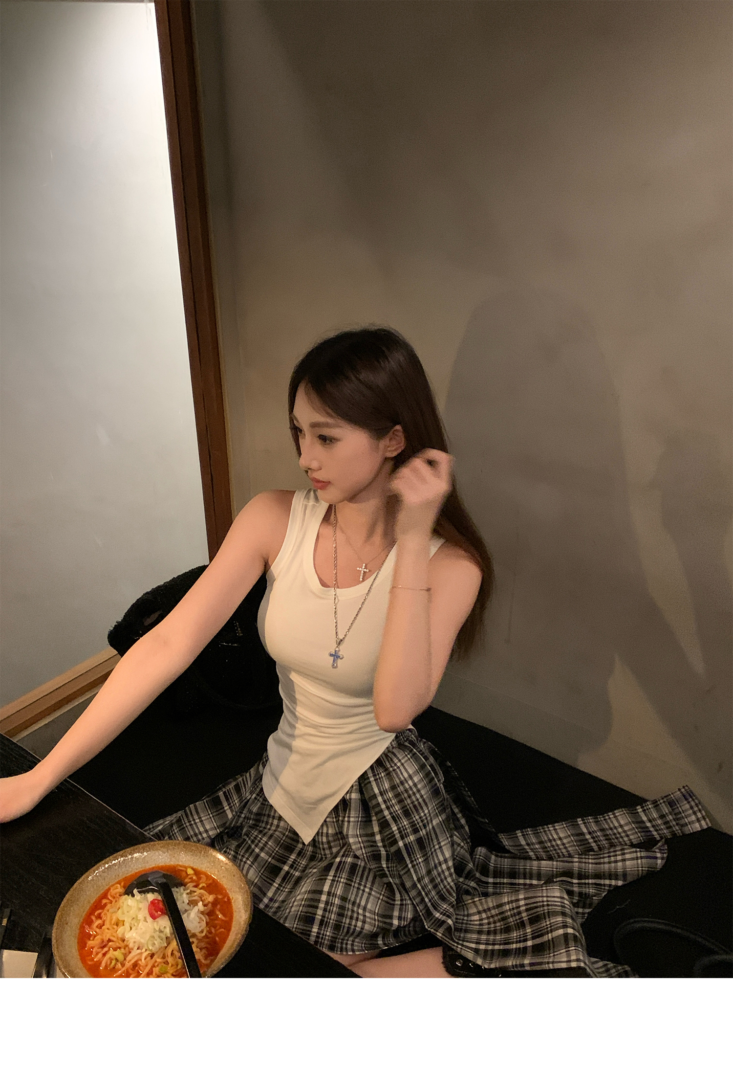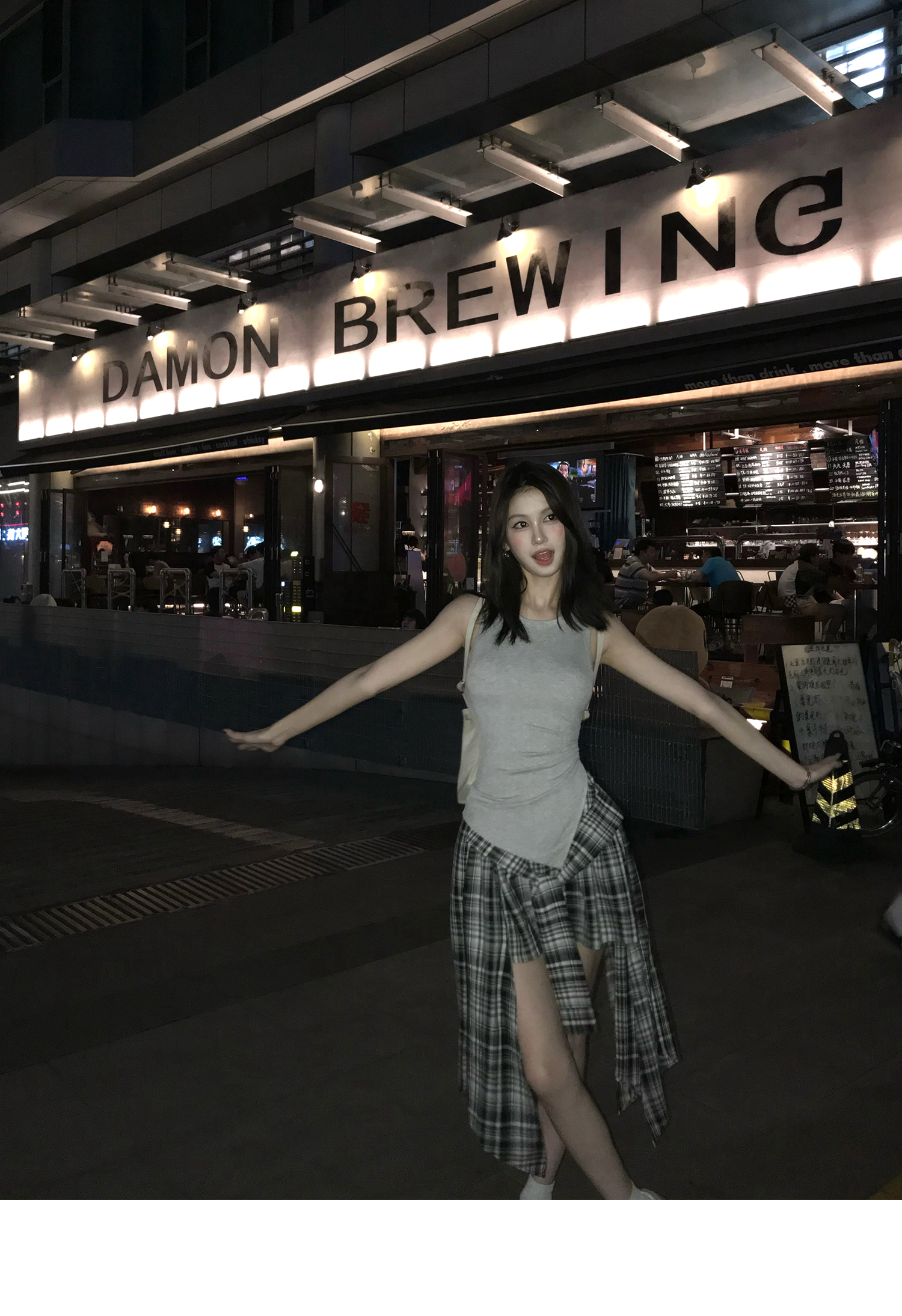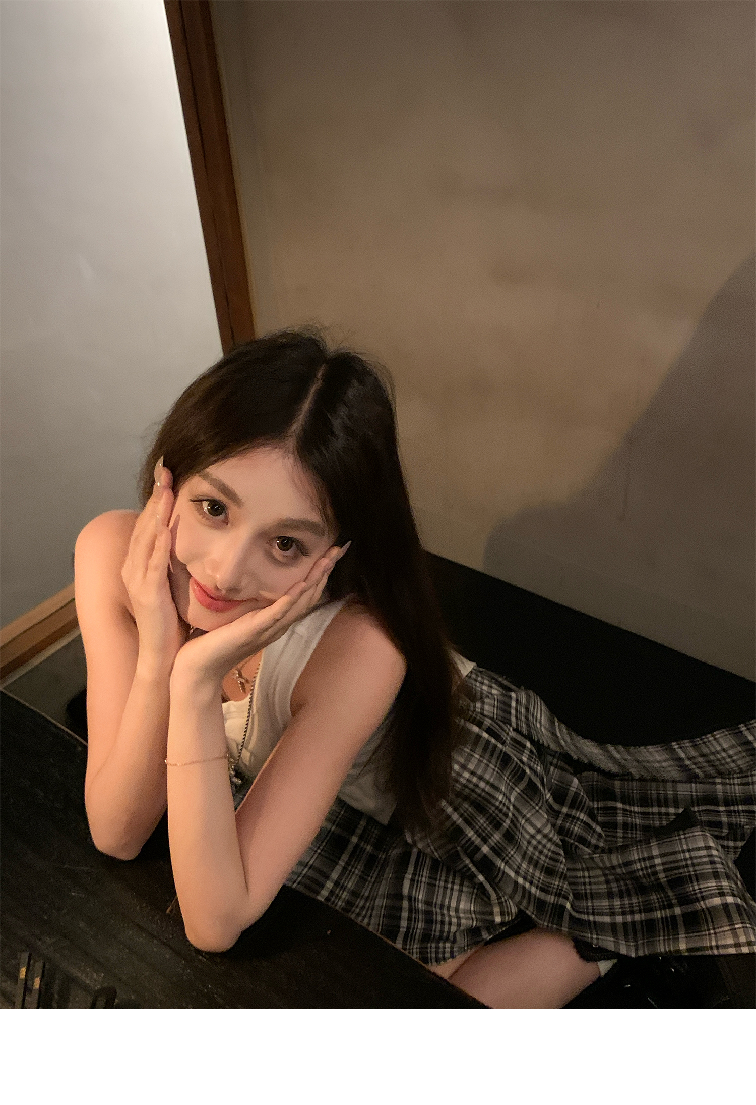 Weird Girl Irregular Sleeveless Vest + Checkered Half Skirt Set - Summer Style