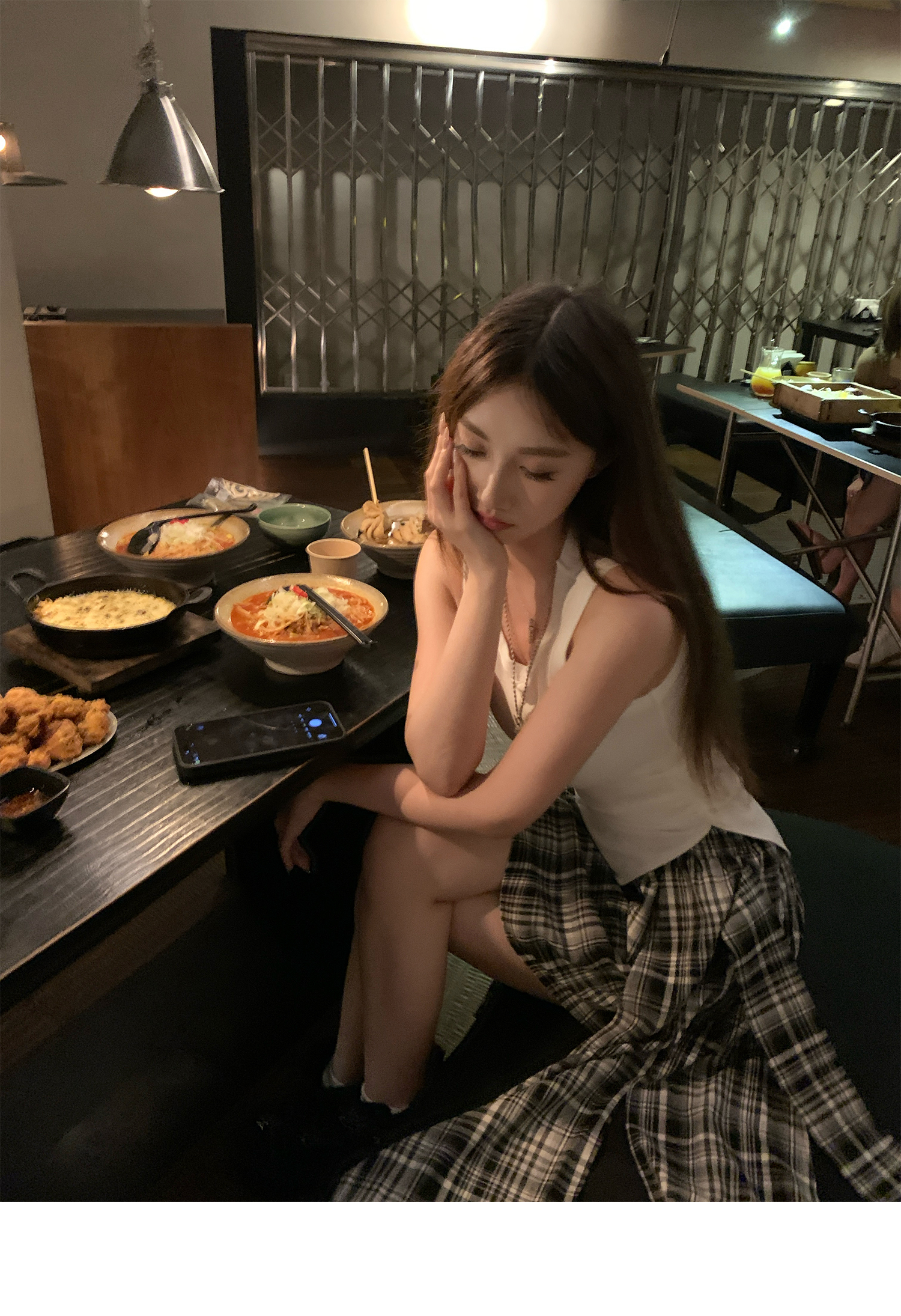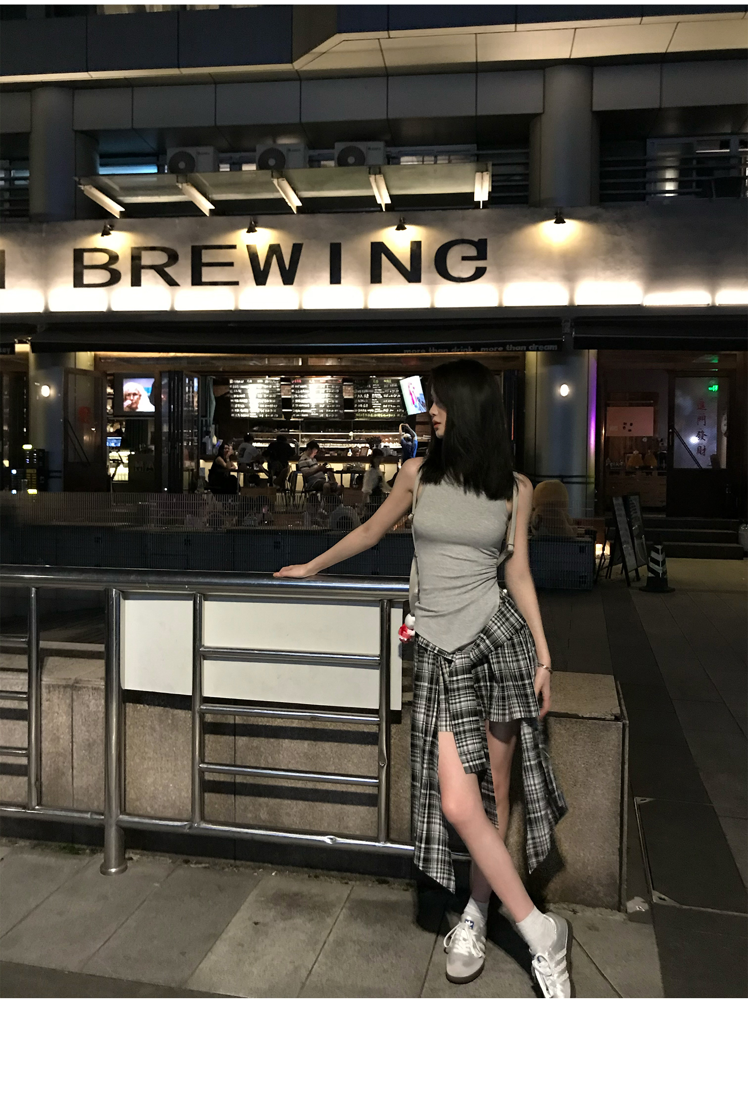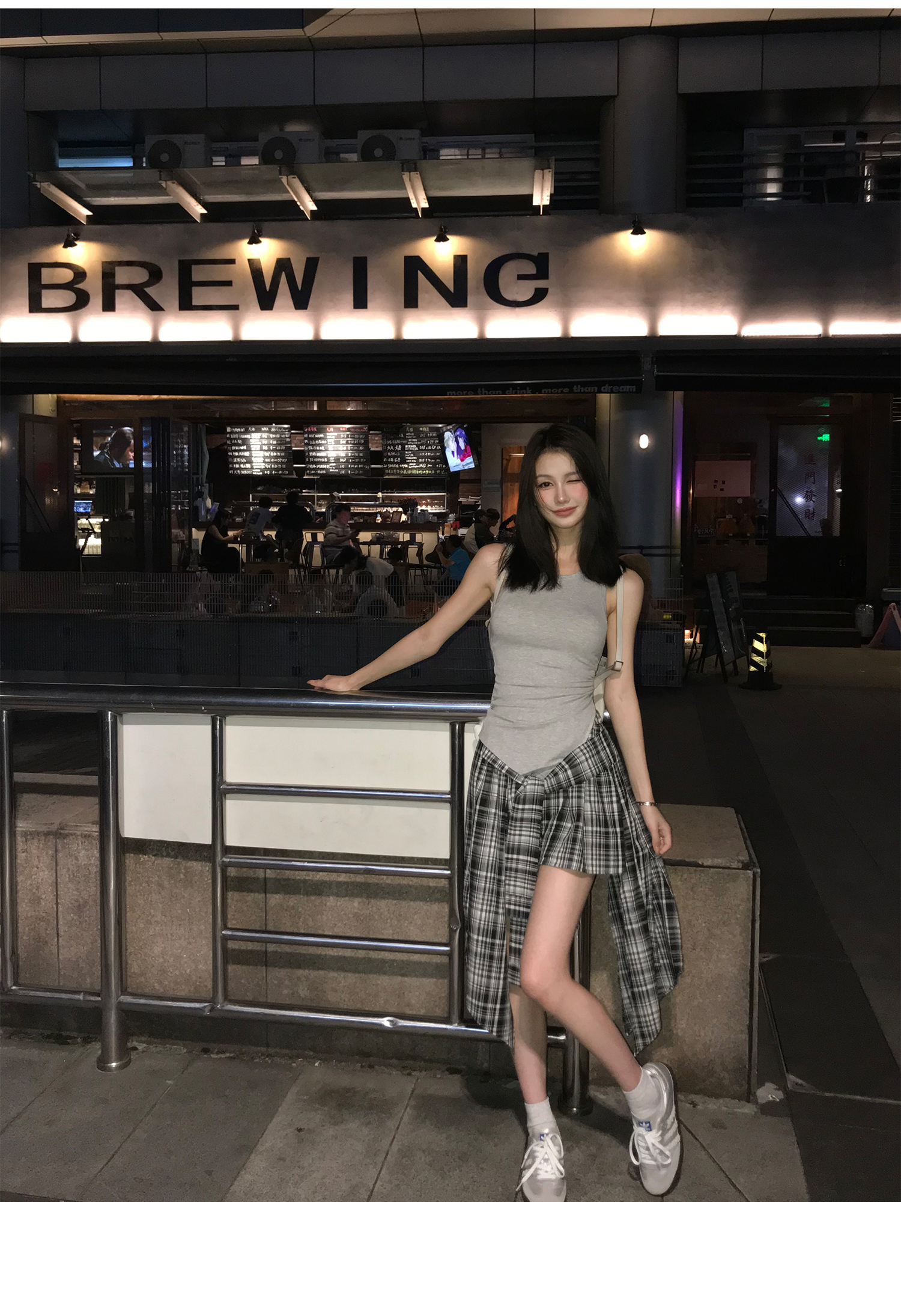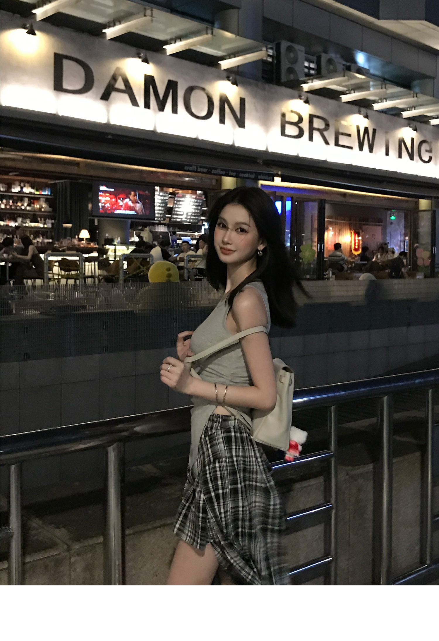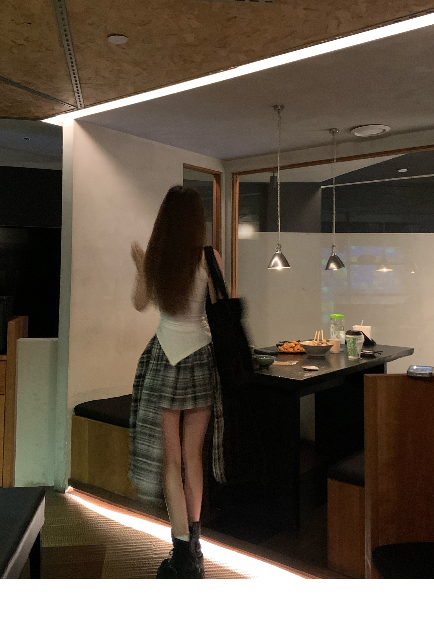Weird Girl Irregular Sleeveless Vest + Checkered Half Skirt Set - Summer Style