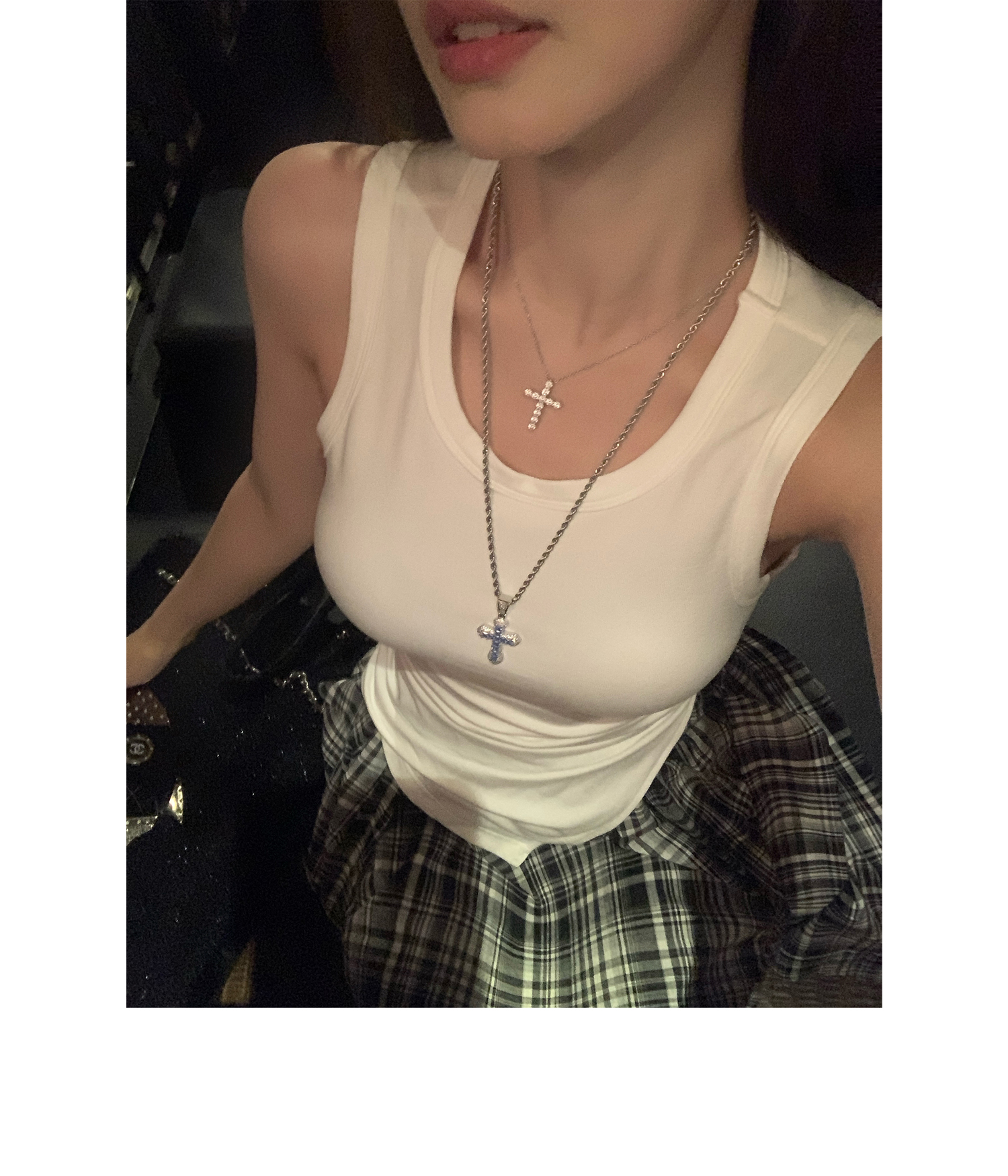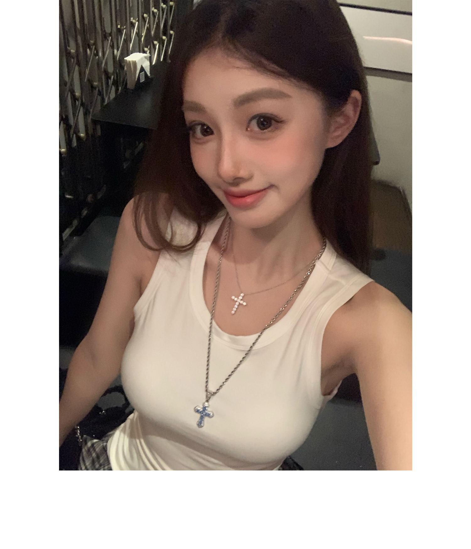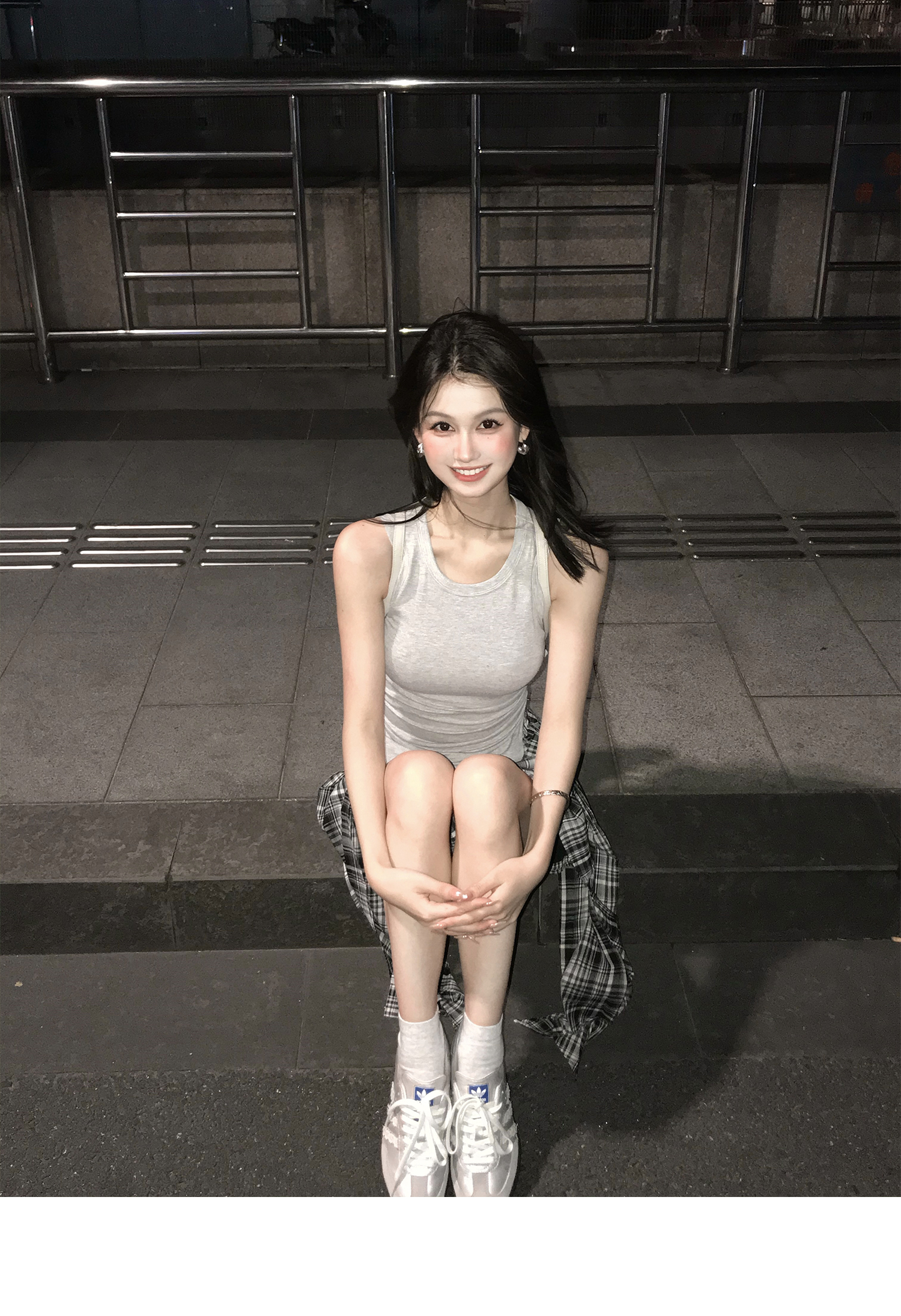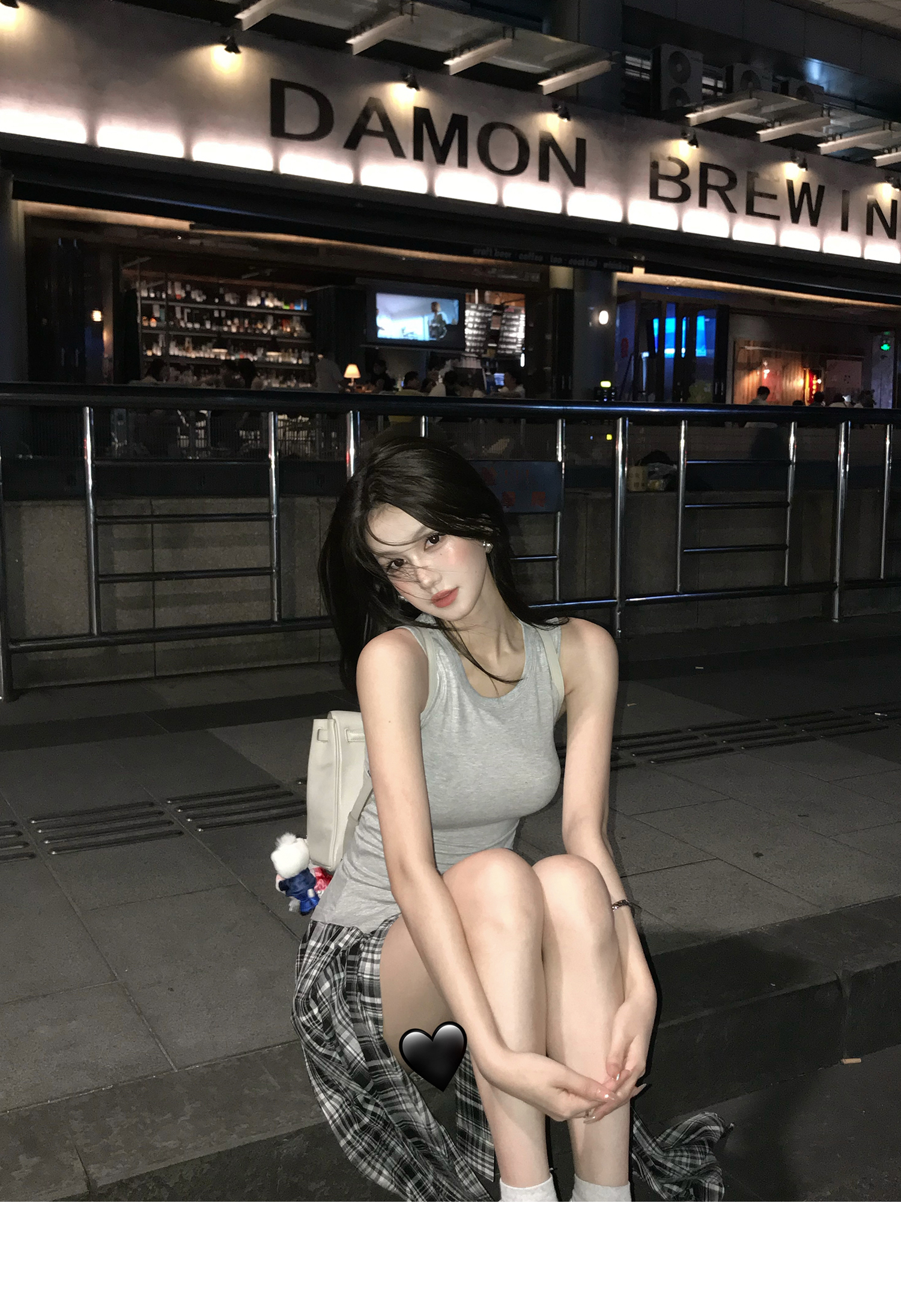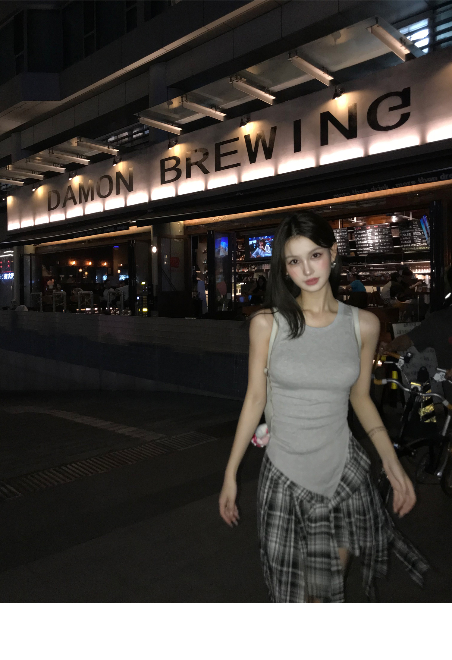 Weird Girl Irregular Sleeveless Vest + Checkered Half Skirt Set - Summer Style