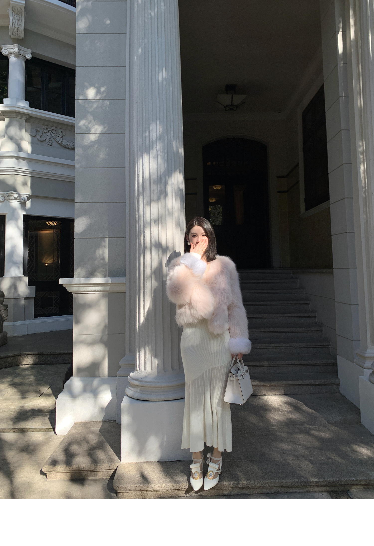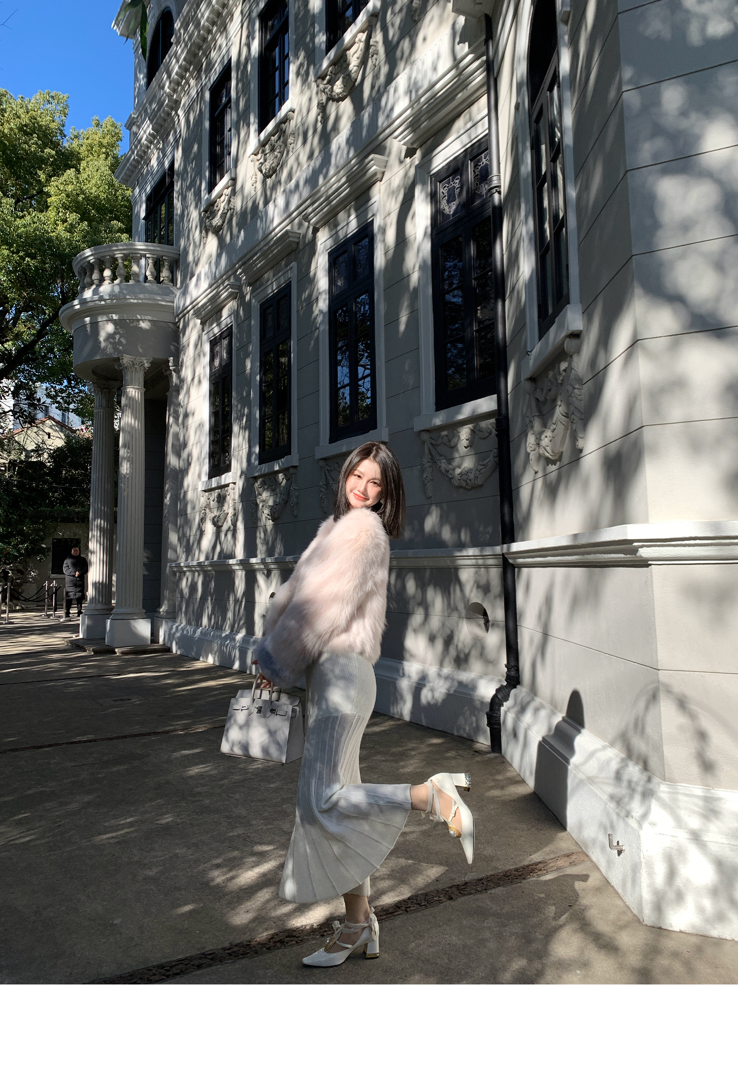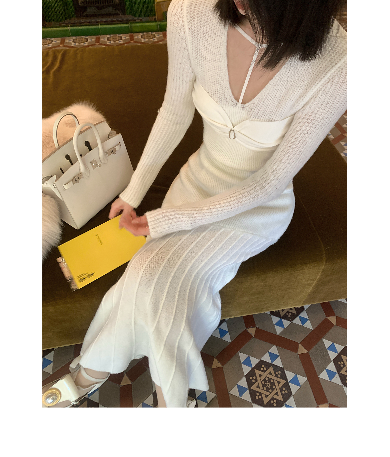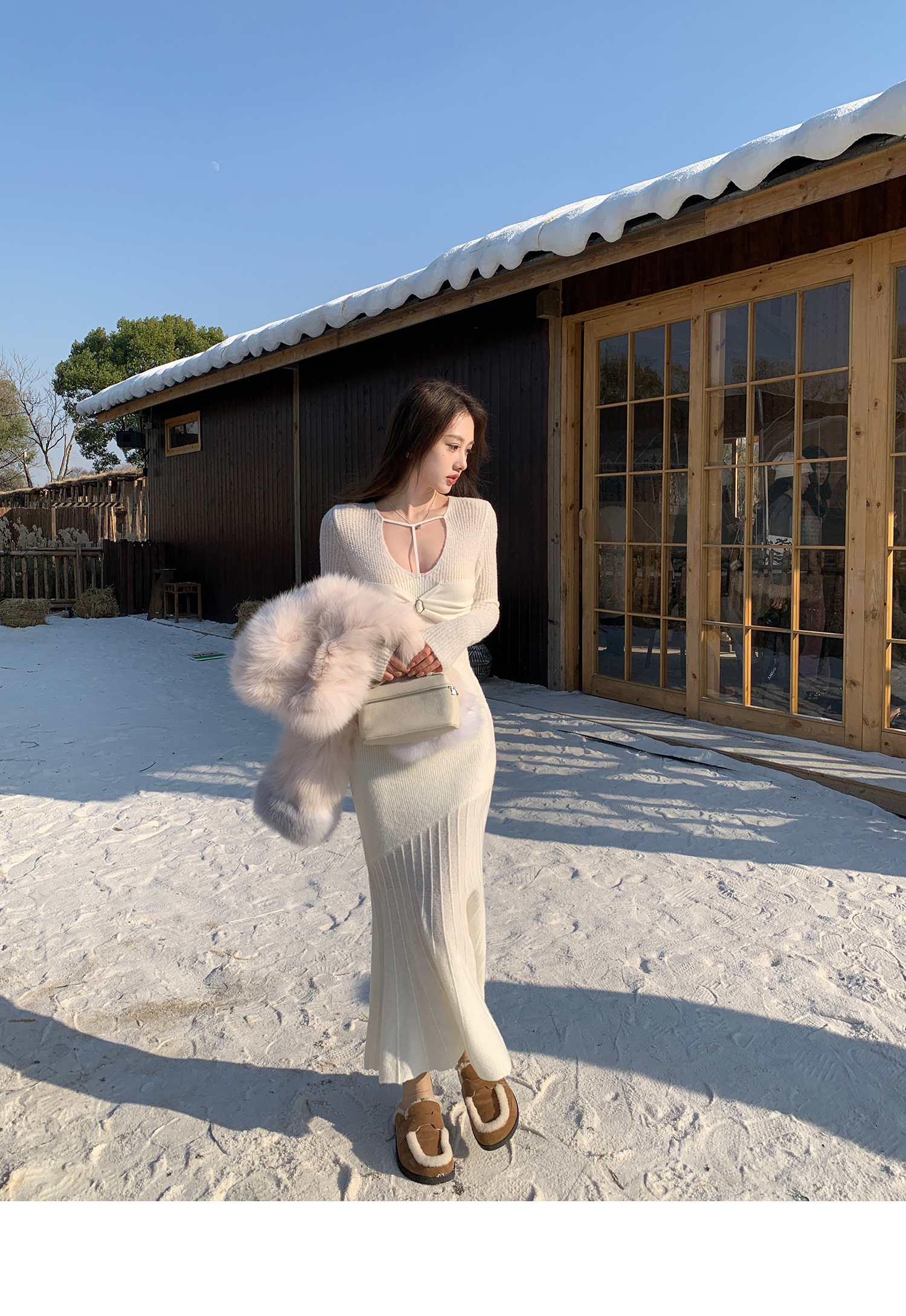 White Gentle Striped Knitted Fishtail Skirt - Autumn/Winter Inner Skirt
