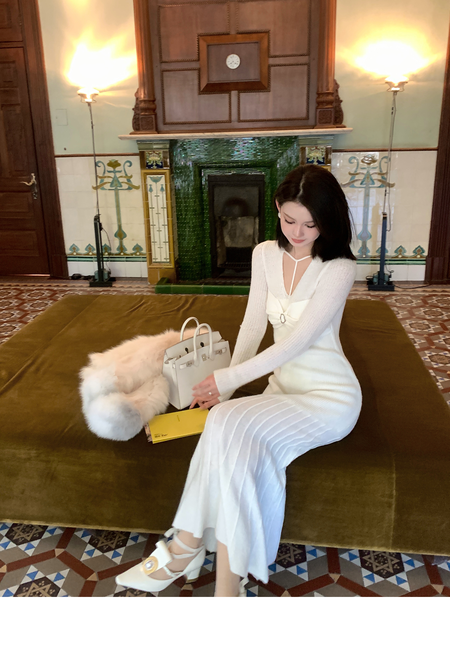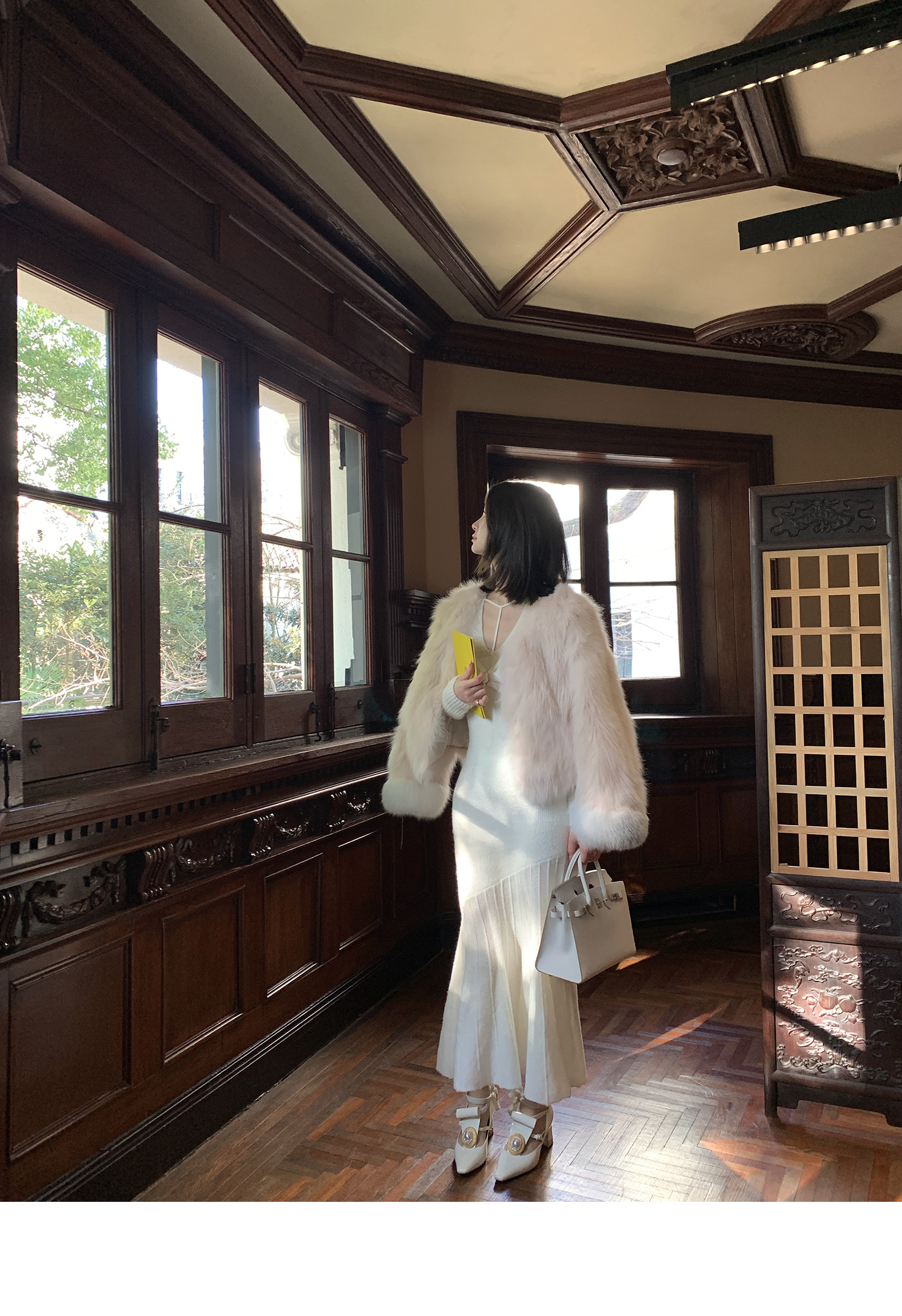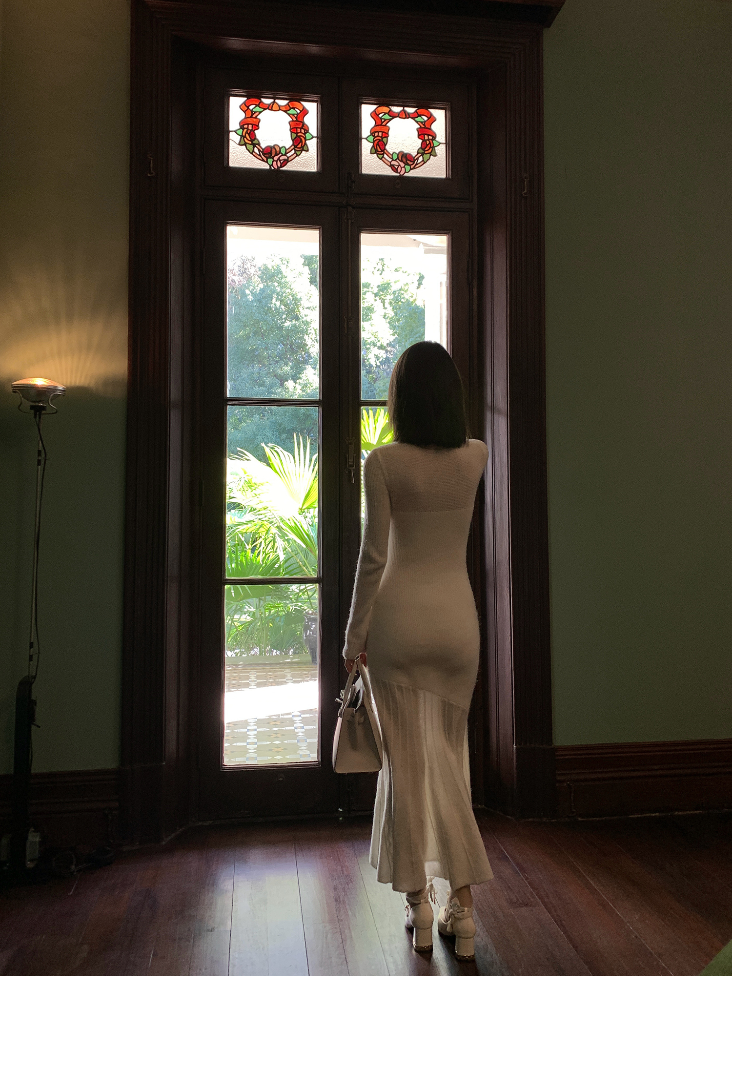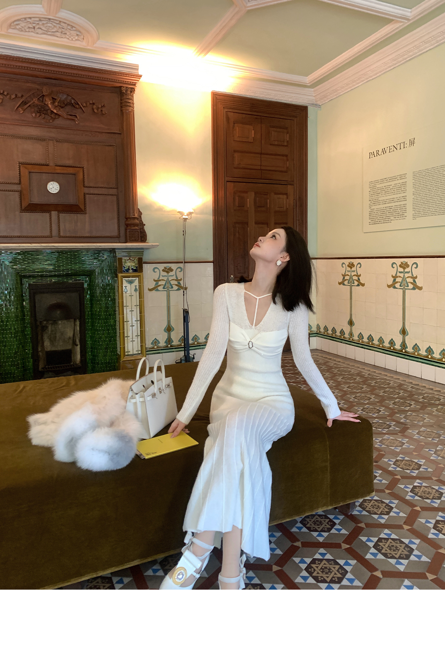 White Gentle Striped Knitted Fishtail Skirt - Autumn/Winter Inner Skirt