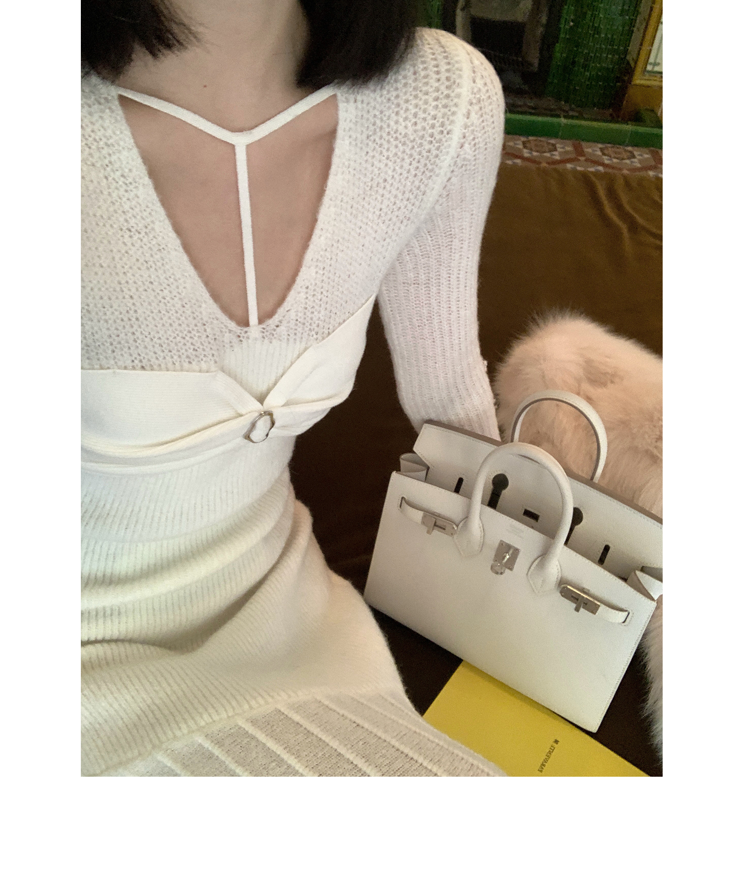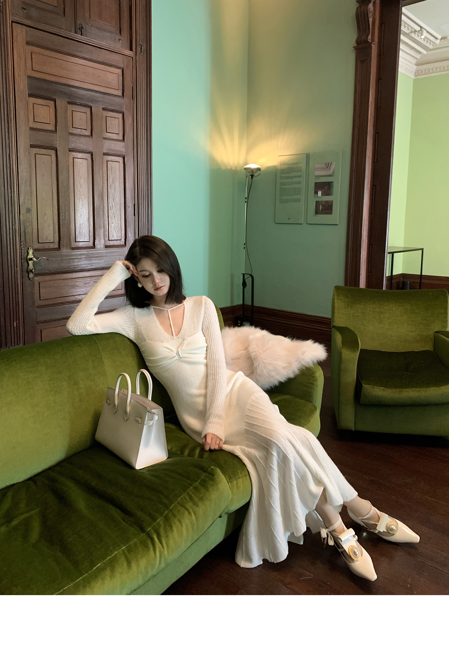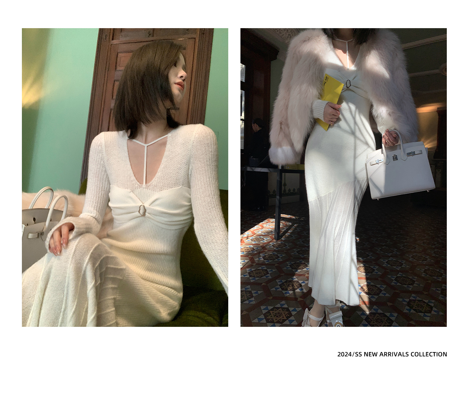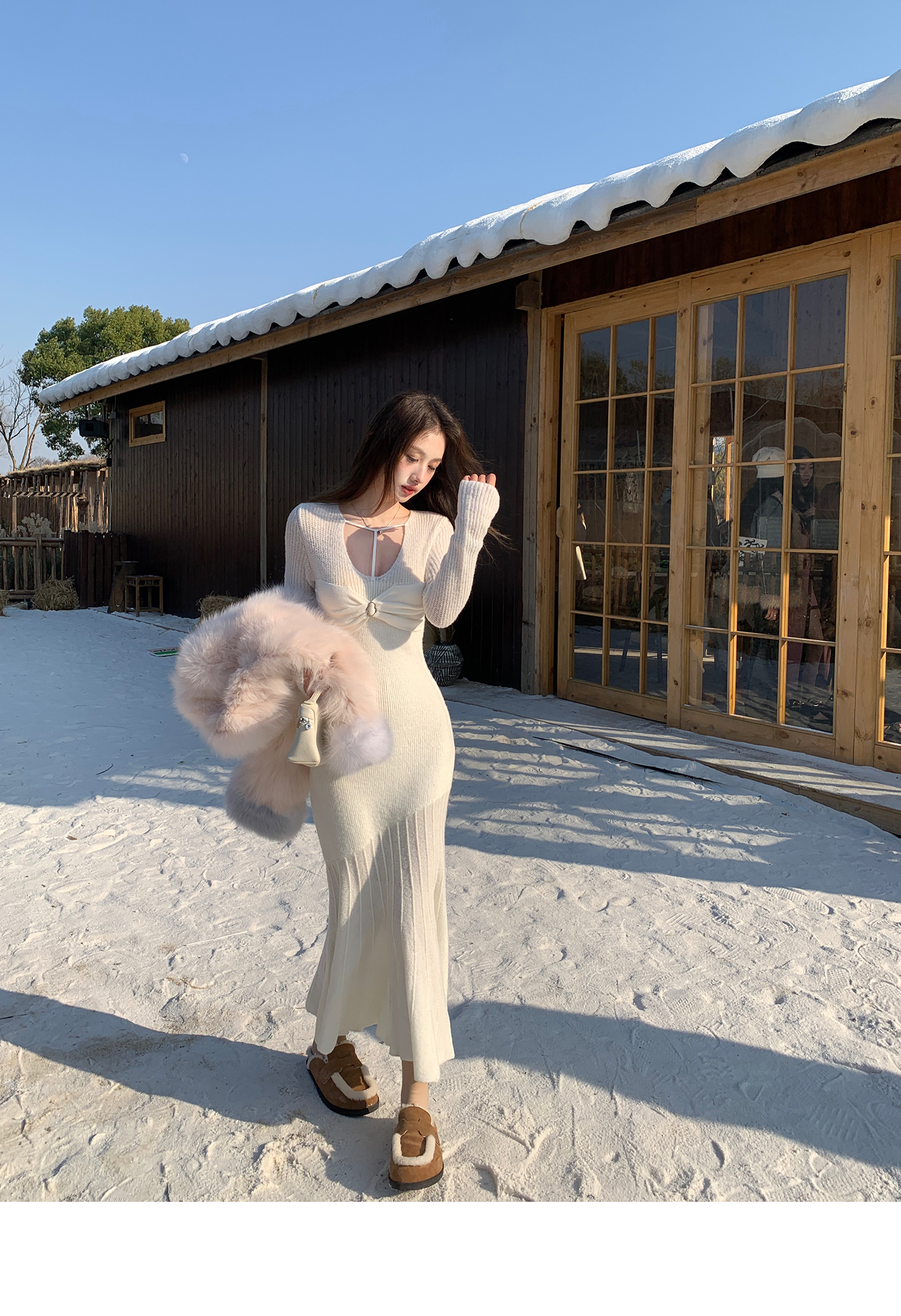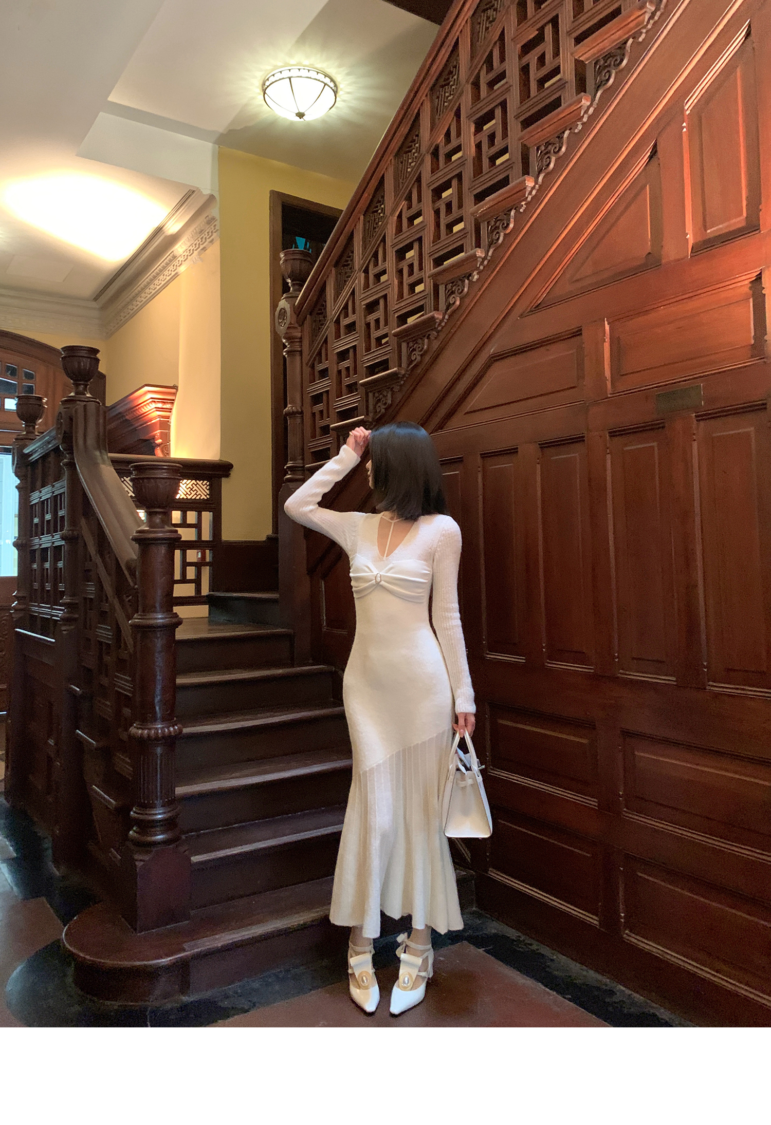 White Gentle Striped Knitted Fishtail Skirt - Autumn/Winter Inner Skirt