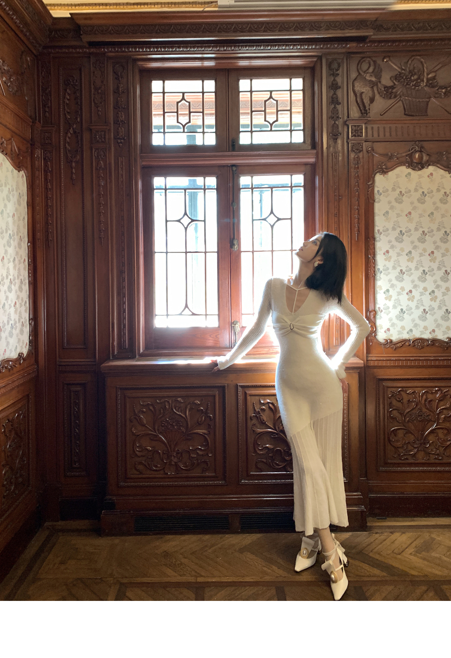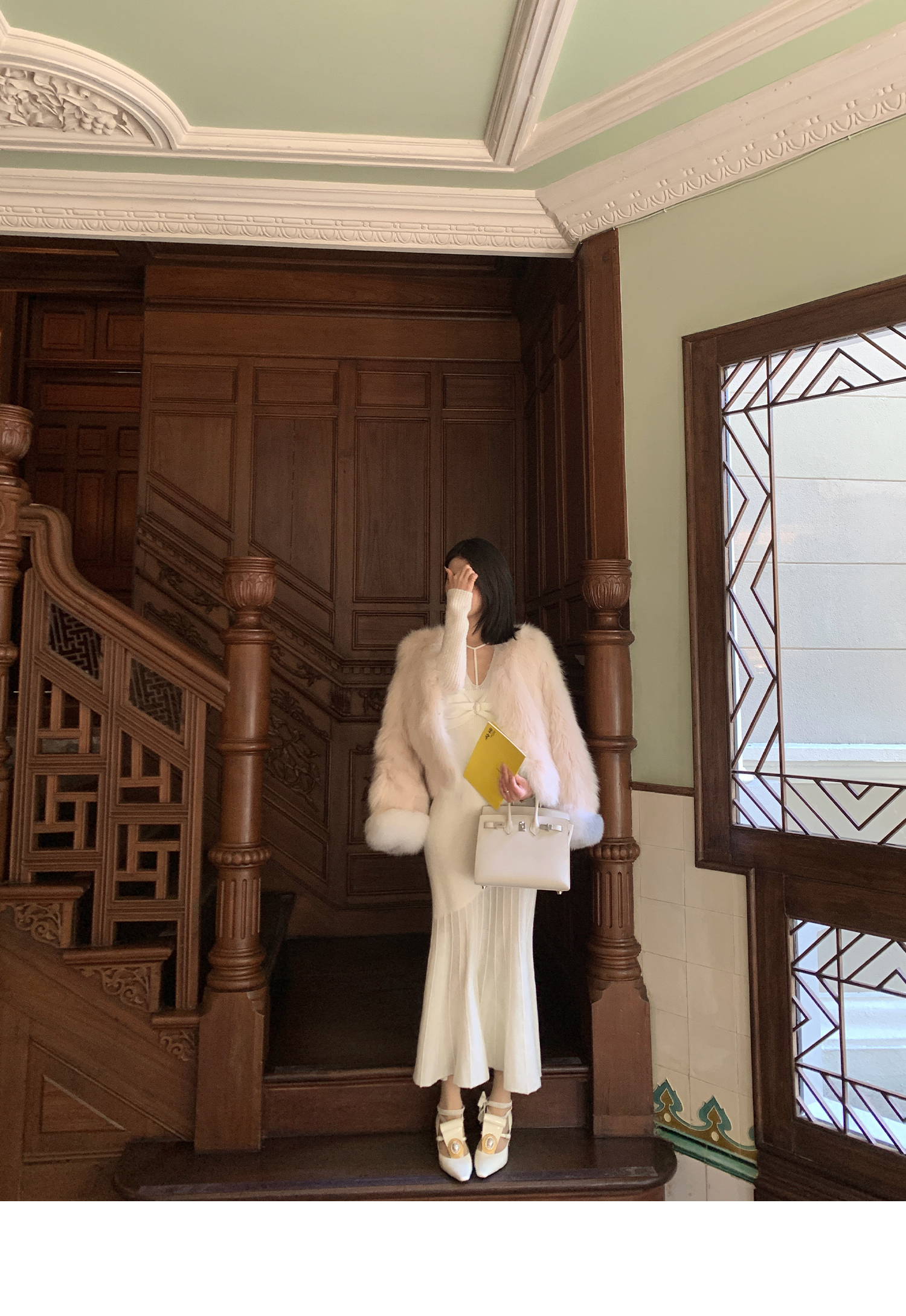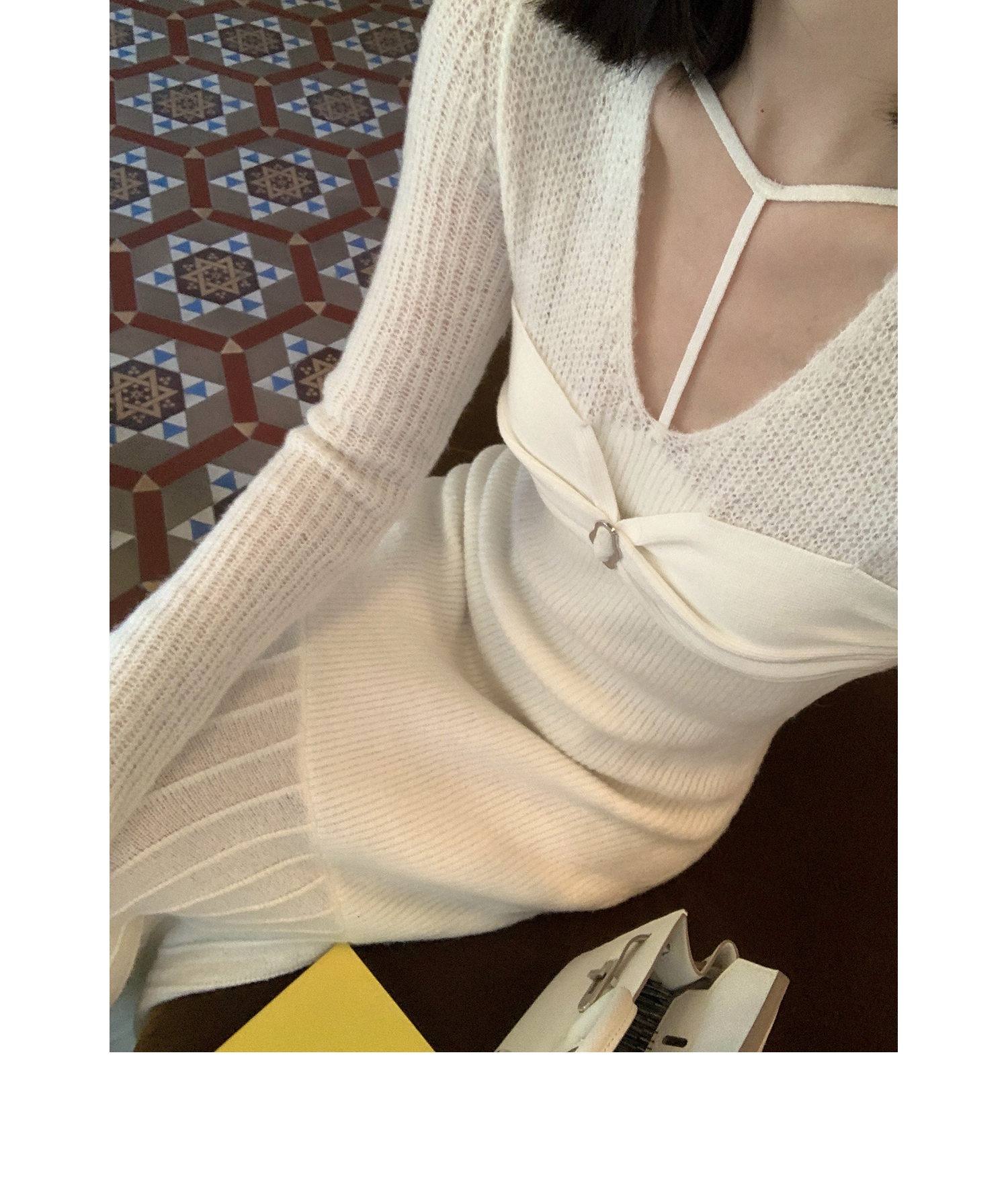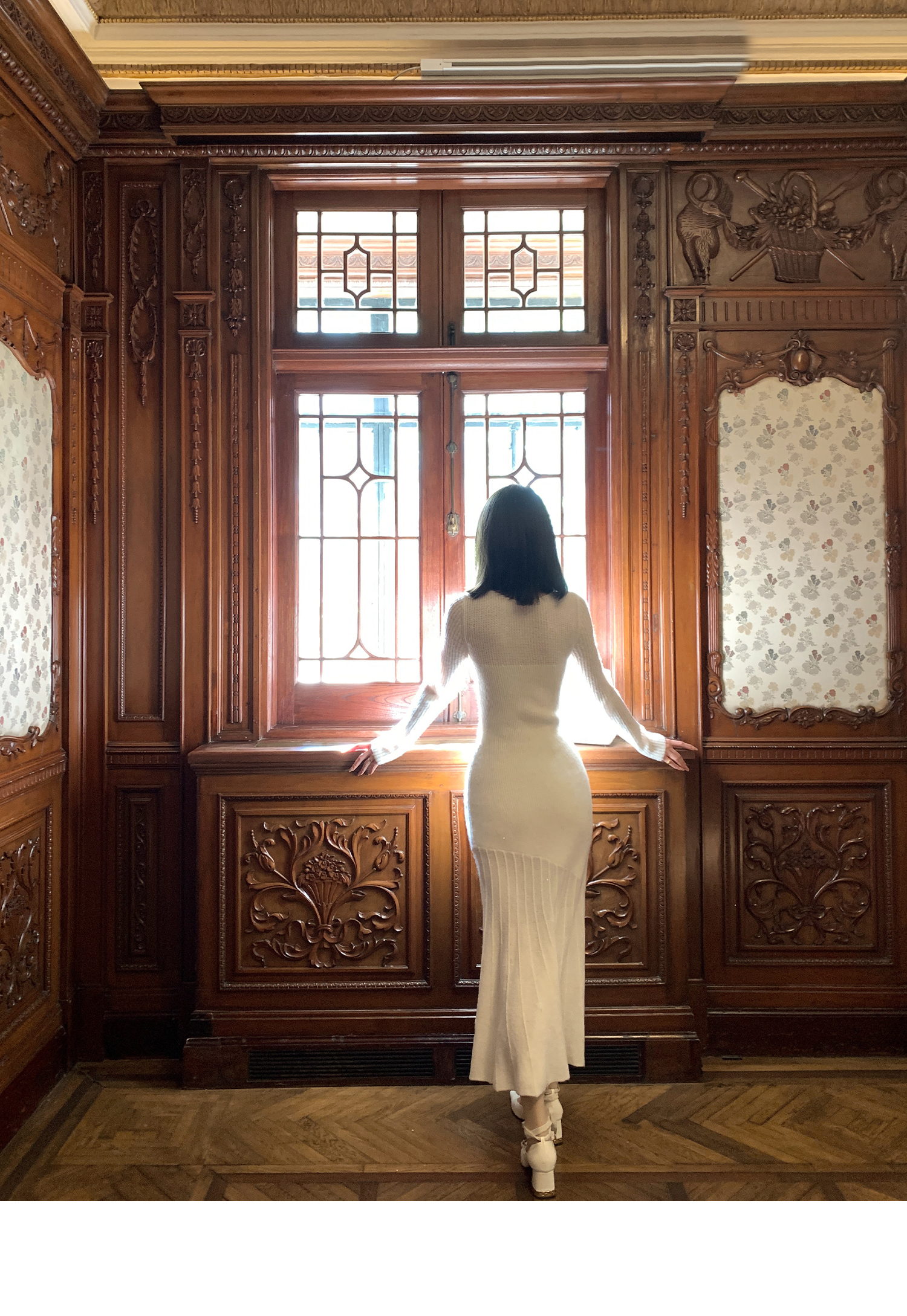 White Gentle Striped Knitted Fishtail Skirt - Autumn/Winter Inner Skirt