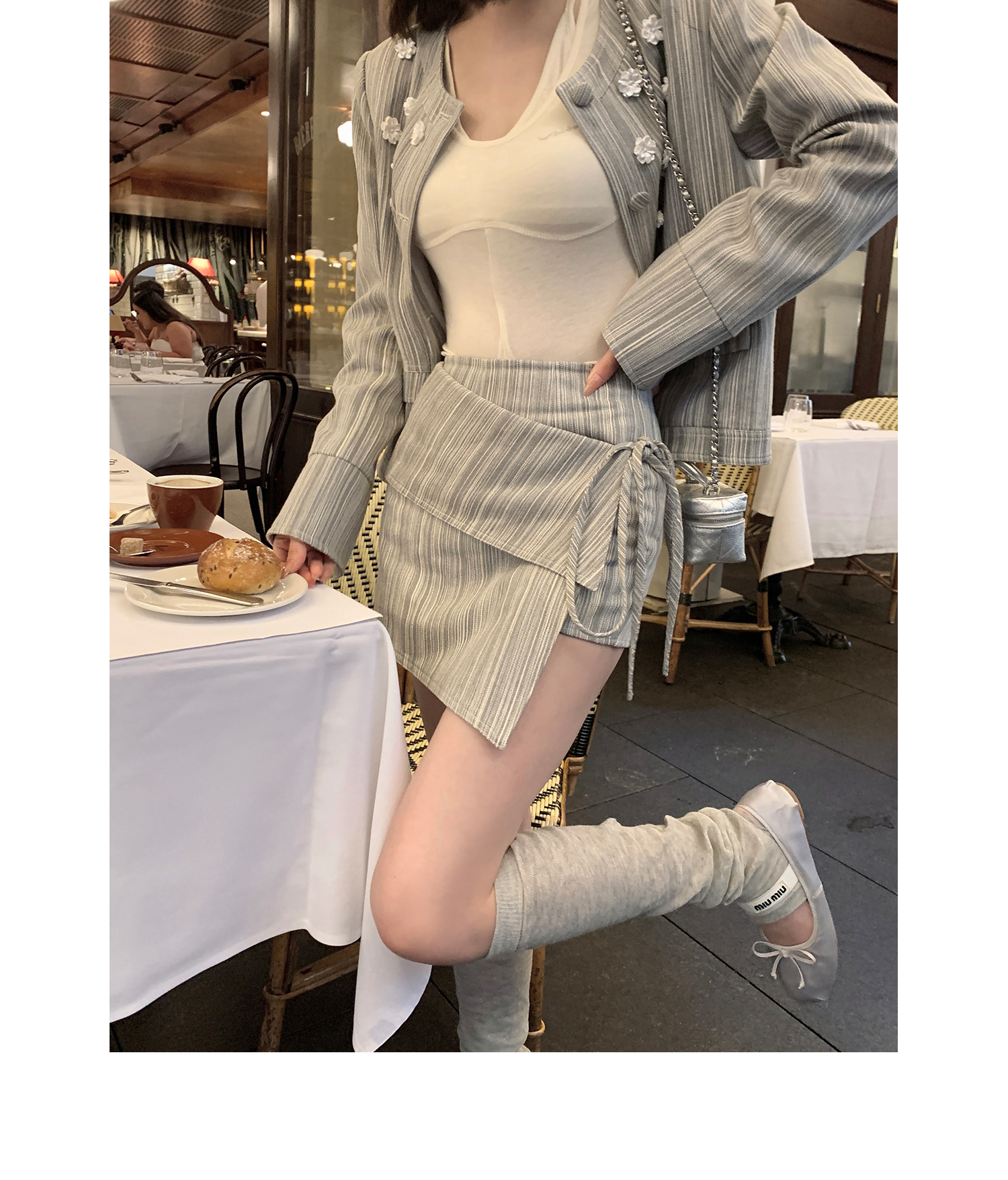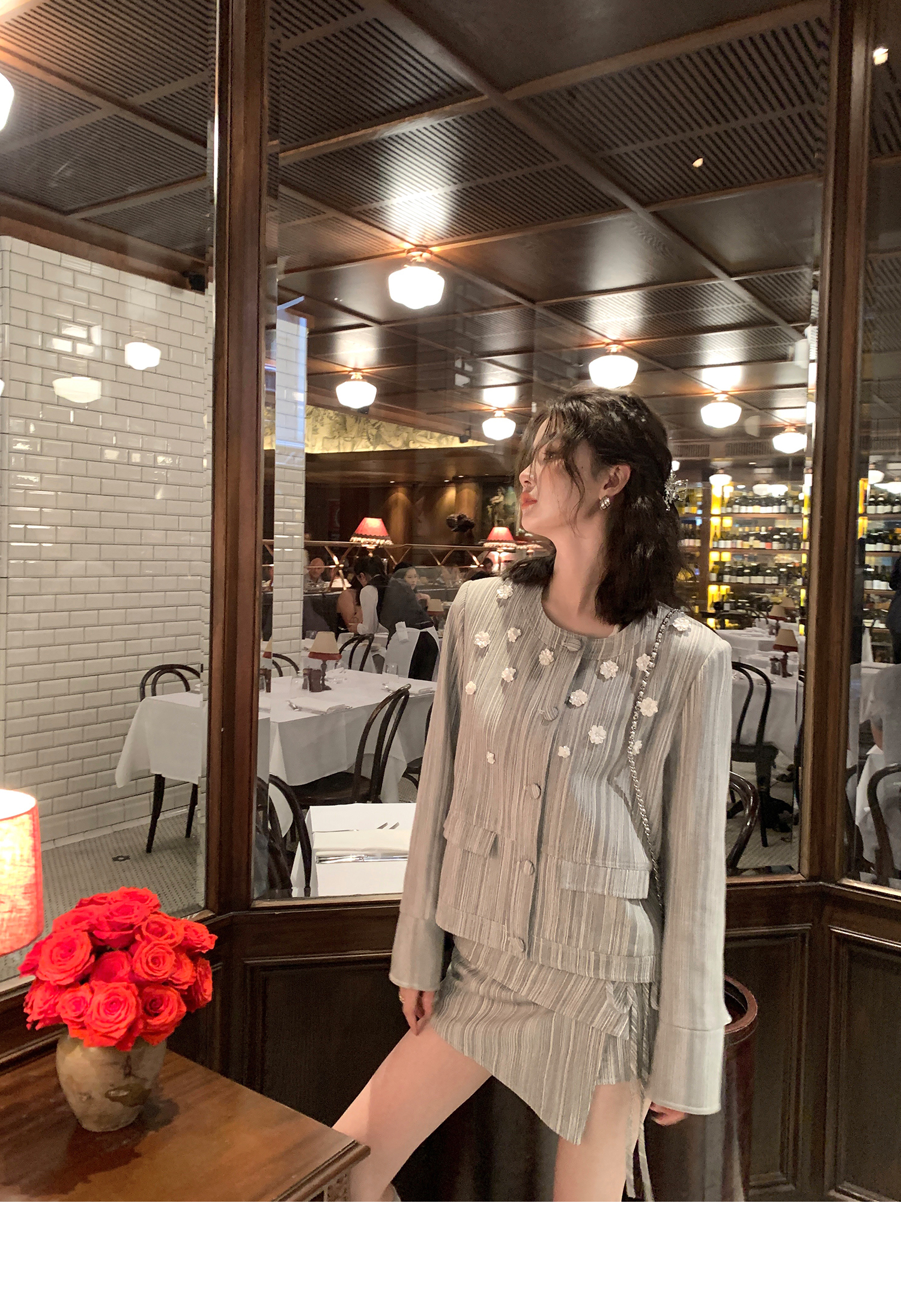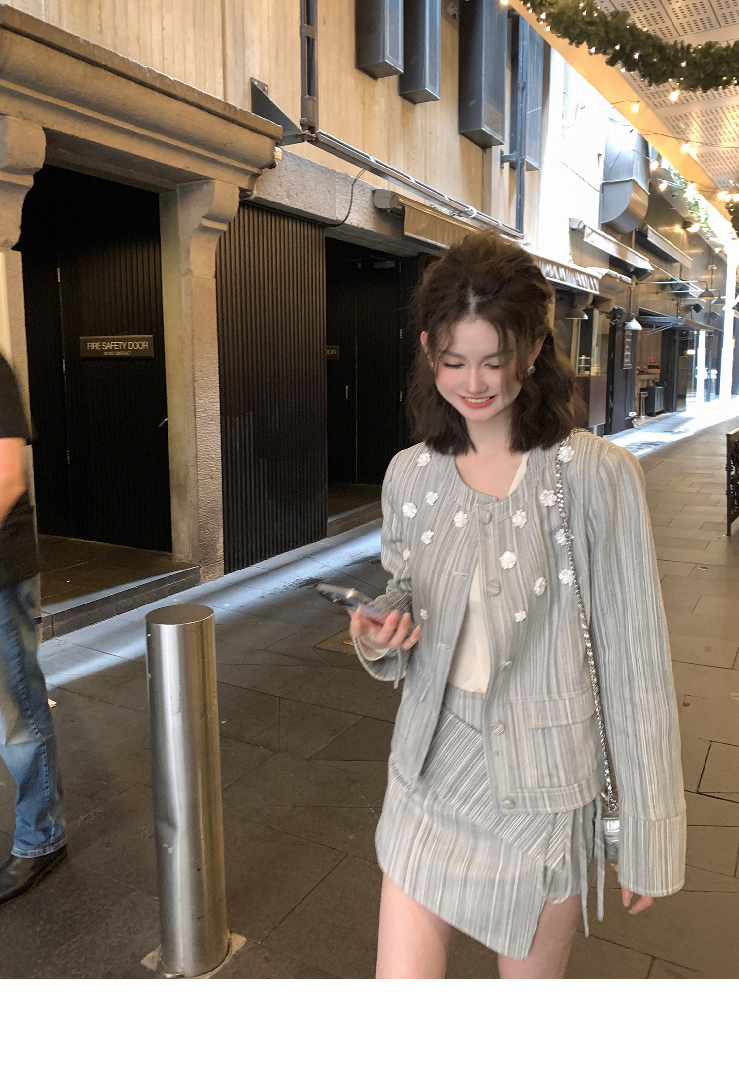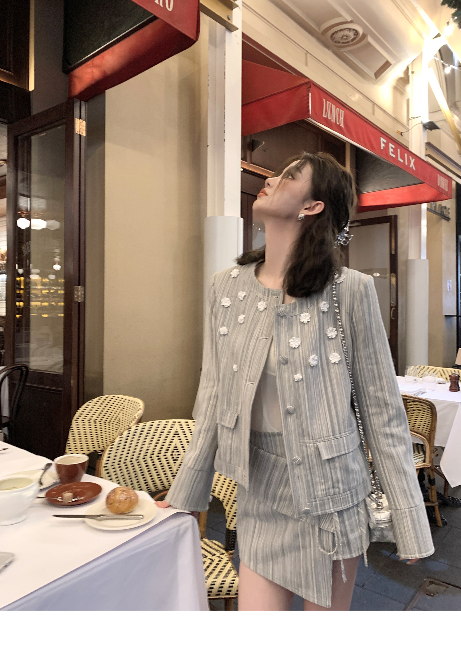 [White Rose] 3D Rose Denim Jacket & Skirt Two-Piece Set